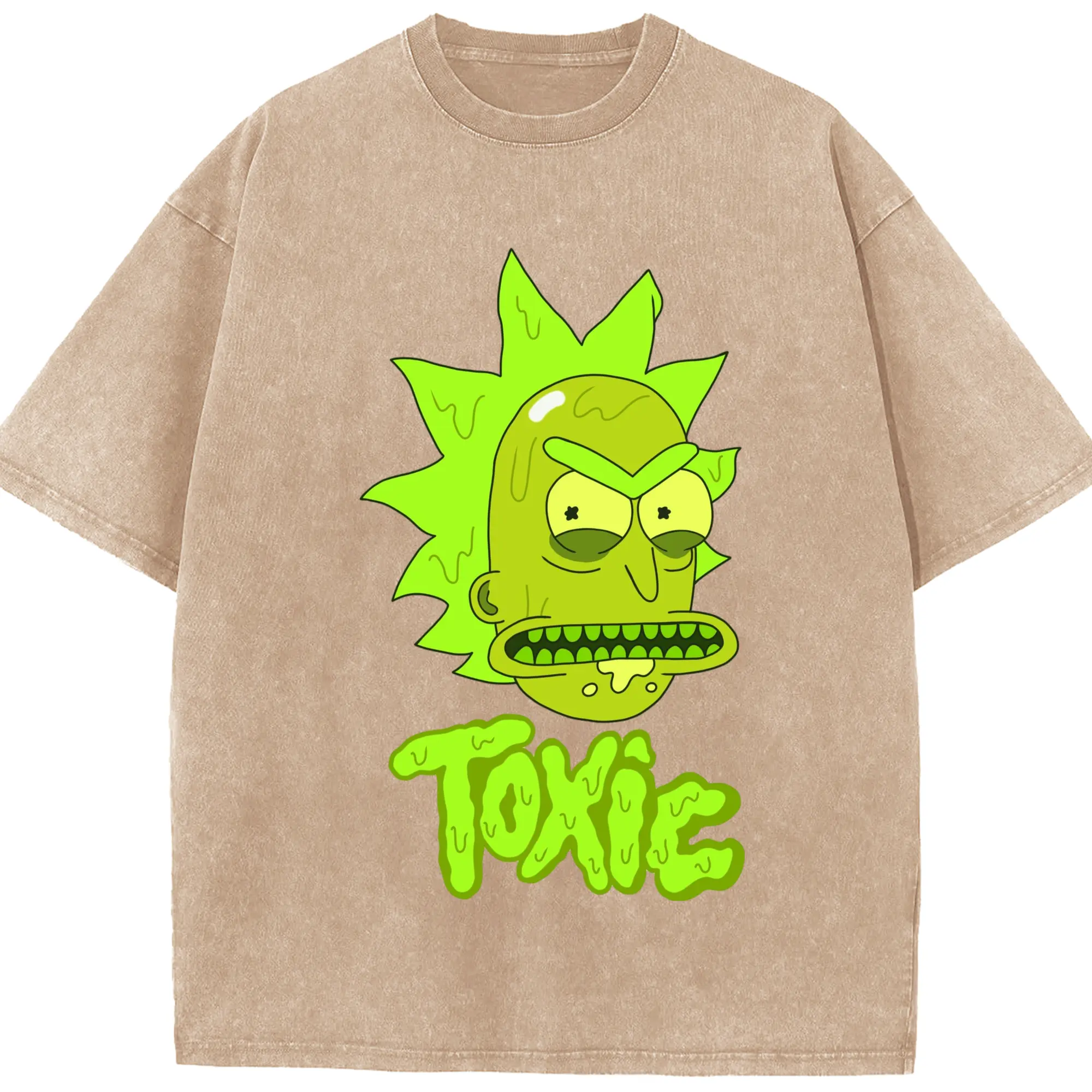 Rick sanchez cartoon t shirt - Washed Vintage Look 230g Cotton Oversized T-Shirt With Front Heat Transfer Print – Soft, Lightweight, Stylish Fit – Comfortable Casual Wear For Sports & Everyday Use