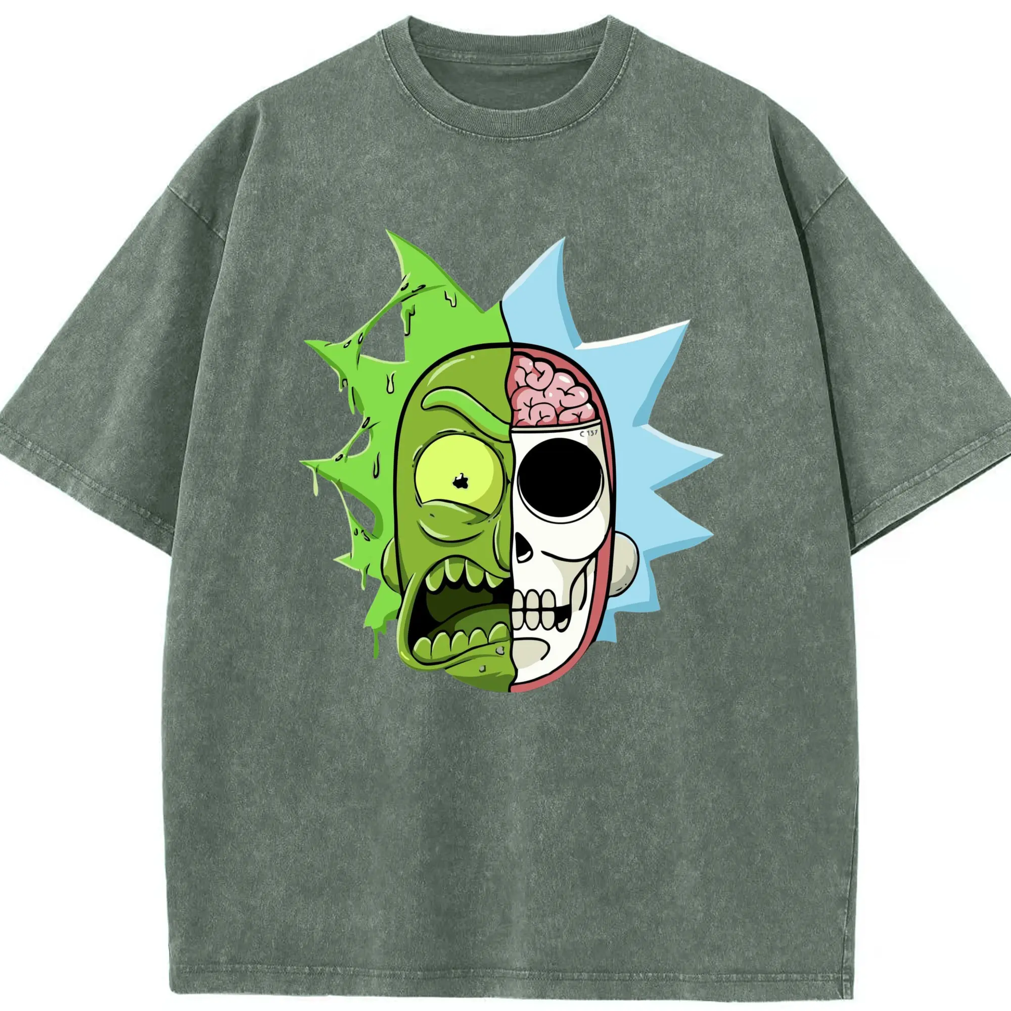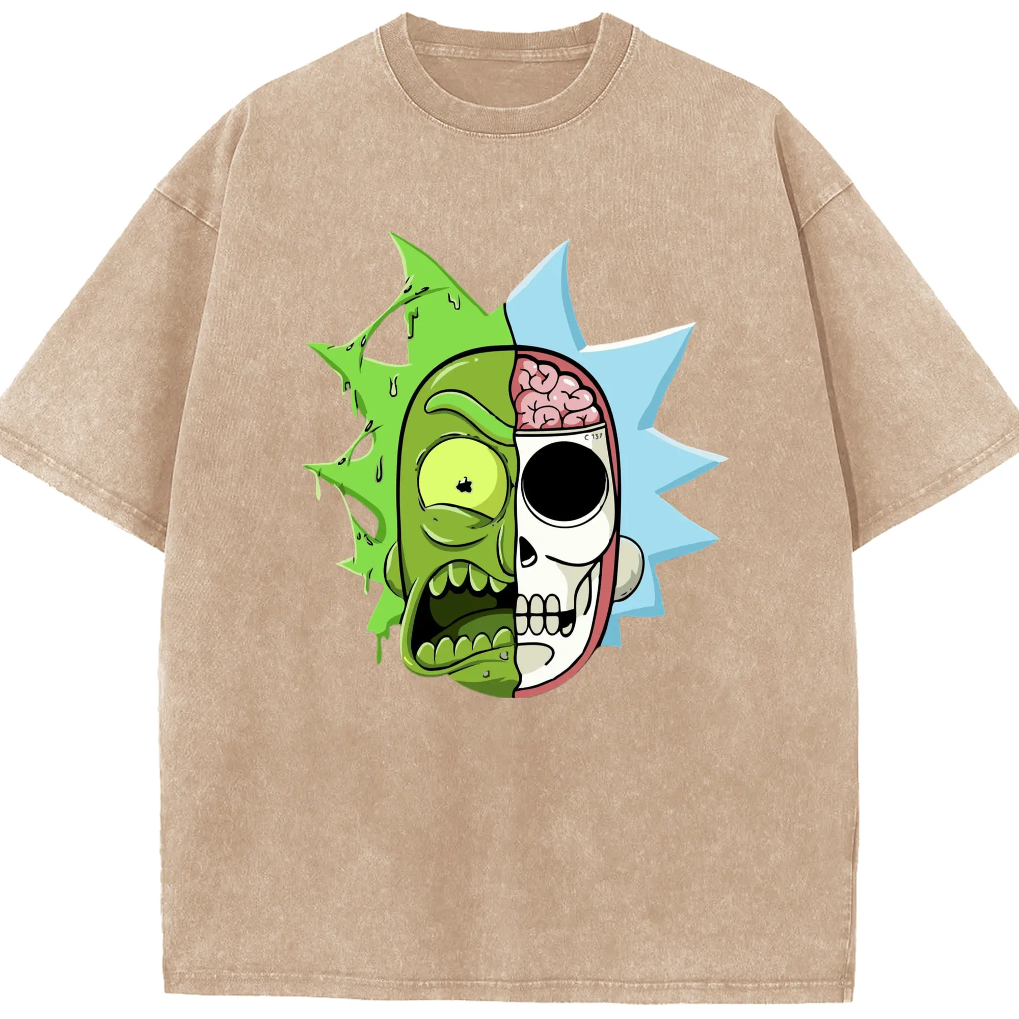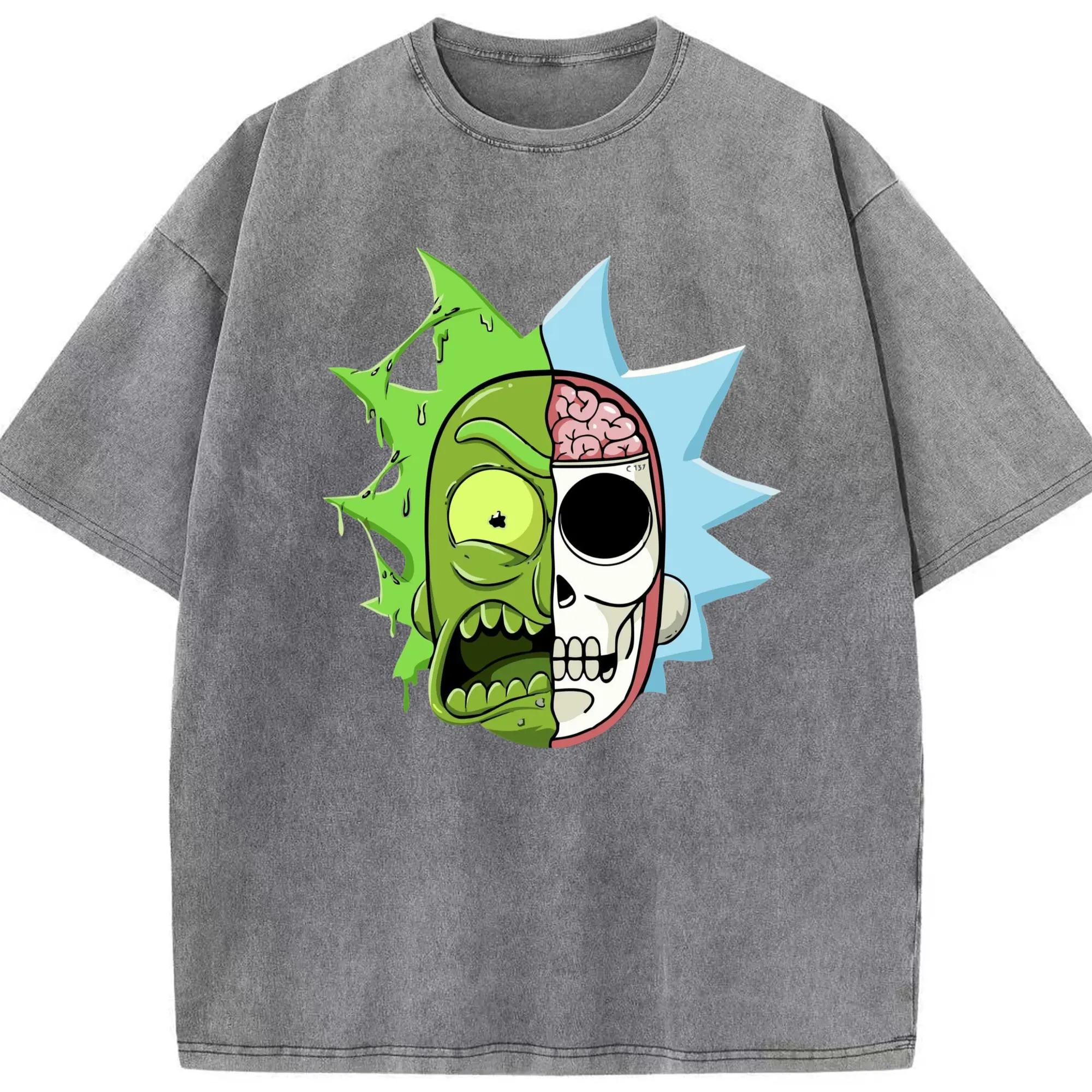 Rick sanchez face t shirt - Washed Vintage Look 230g Cotton Oversized T-Shirt With Front Heat Transfer Print – Soft, Lightweight, Stylish Fit – Comfortable Casual Wear For Sports & Everyday Use