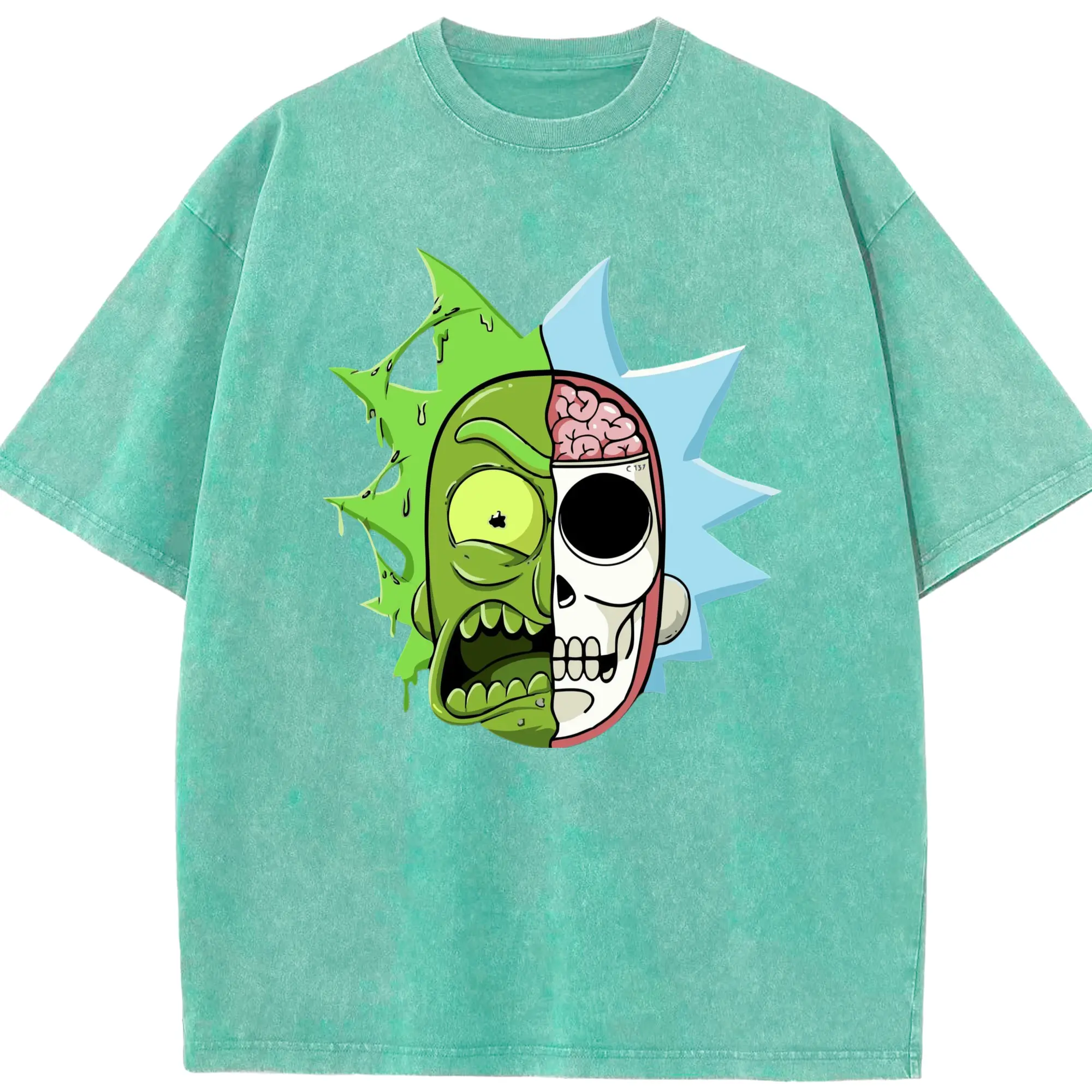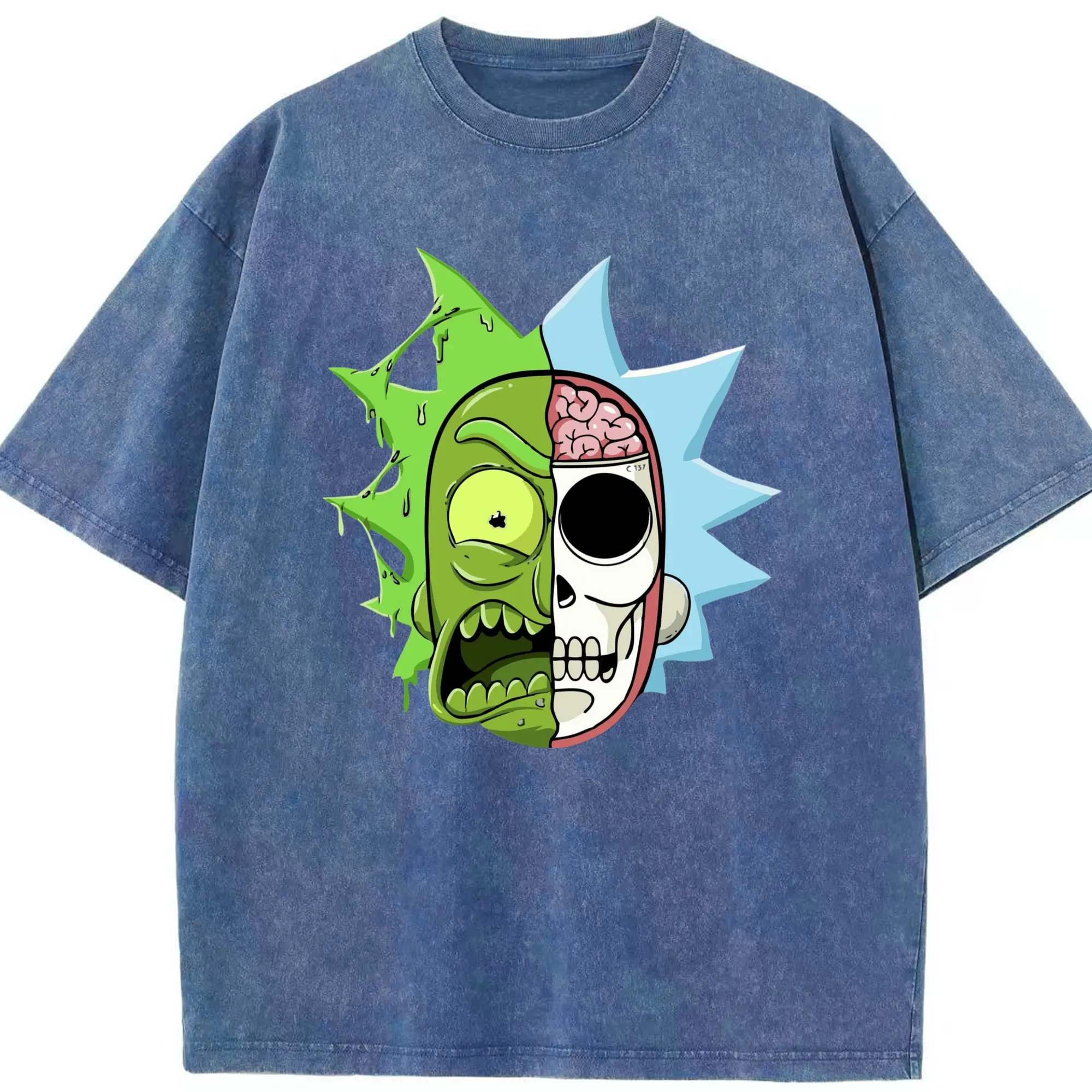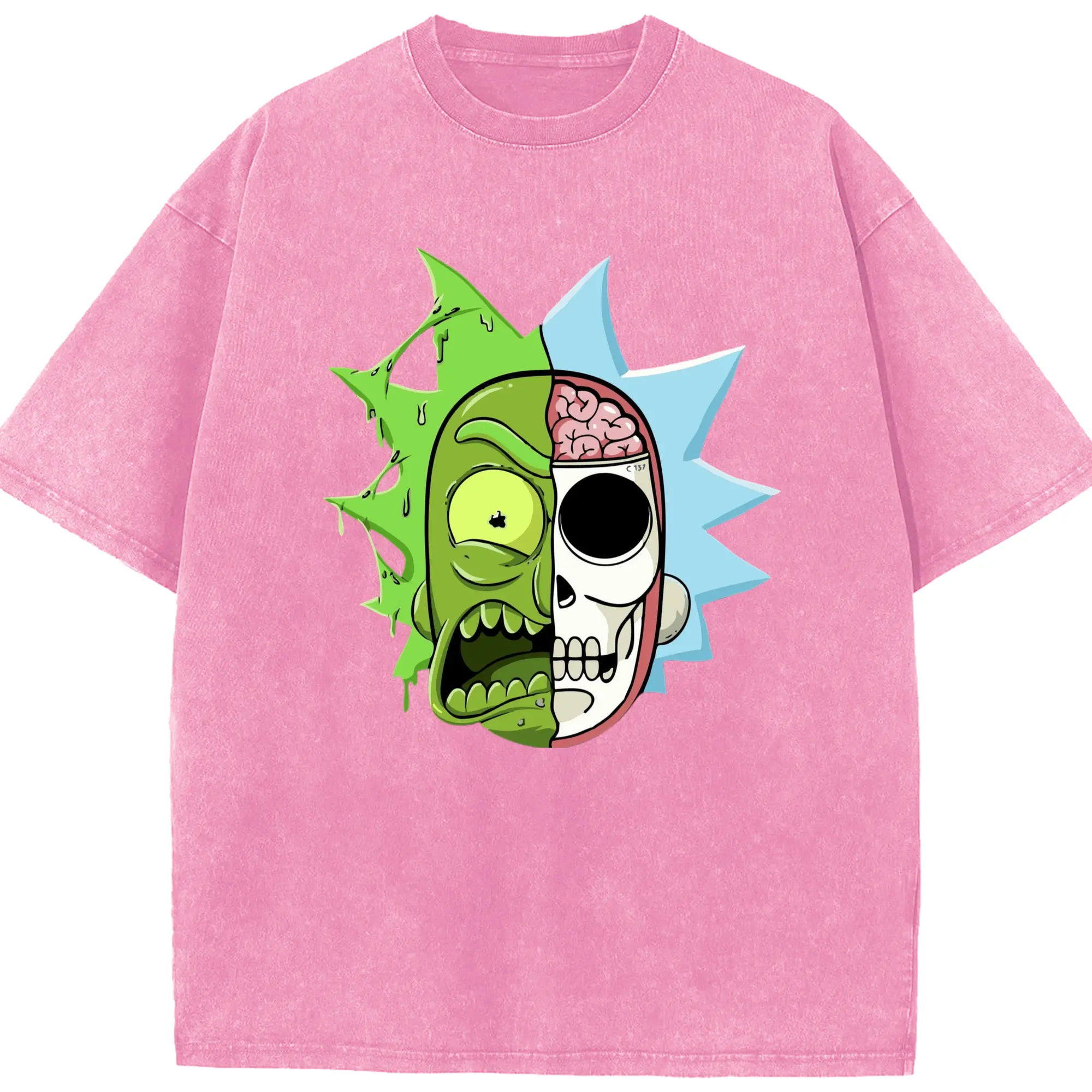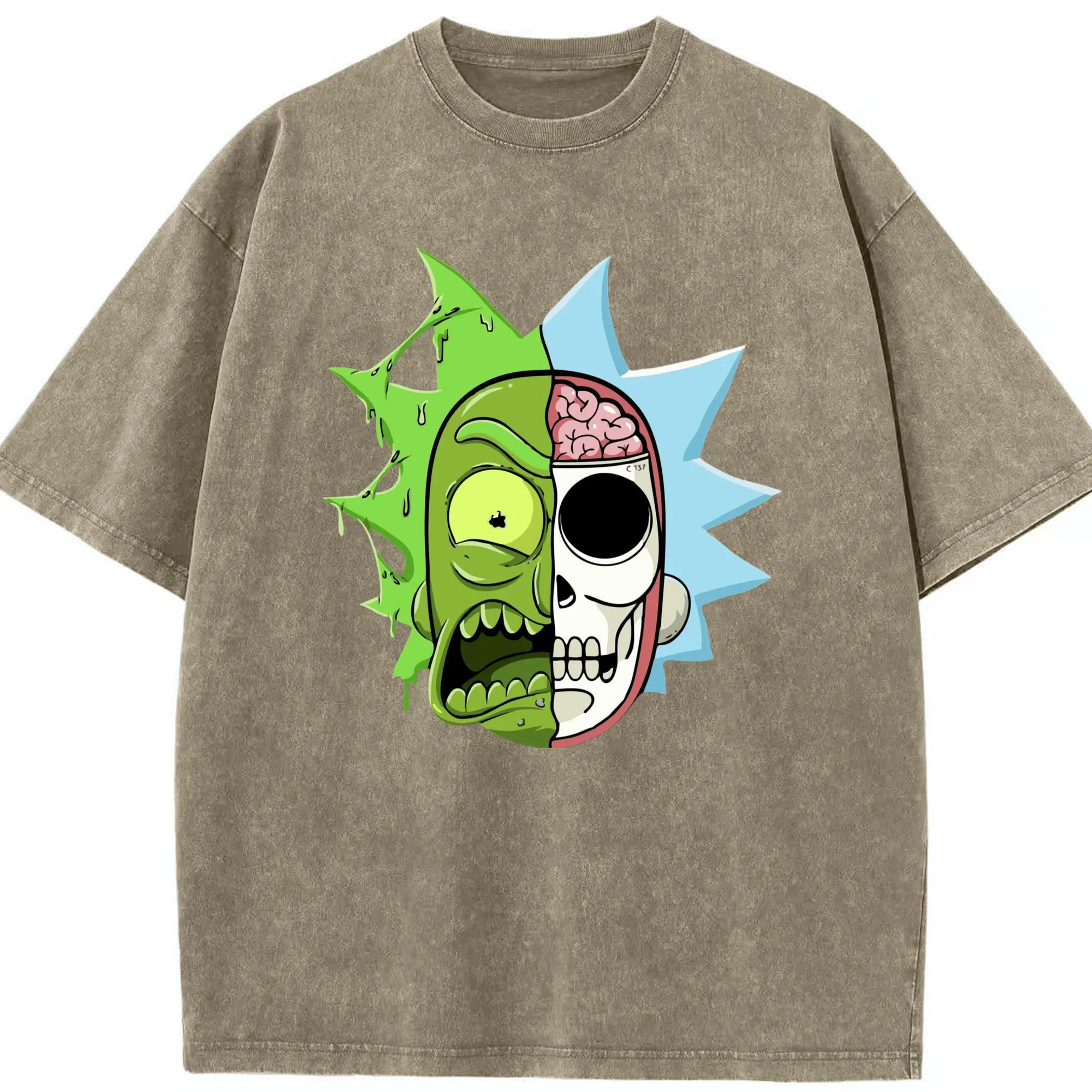 Rick sanchez face t shirt - Washed Vintage Look 230g Cotton Oversized T-Shirt With Front Heat Transfer Print – Soft, Lightweight, Stylish Fit – Comfortable Casual Wear For Sports & Everyday Use