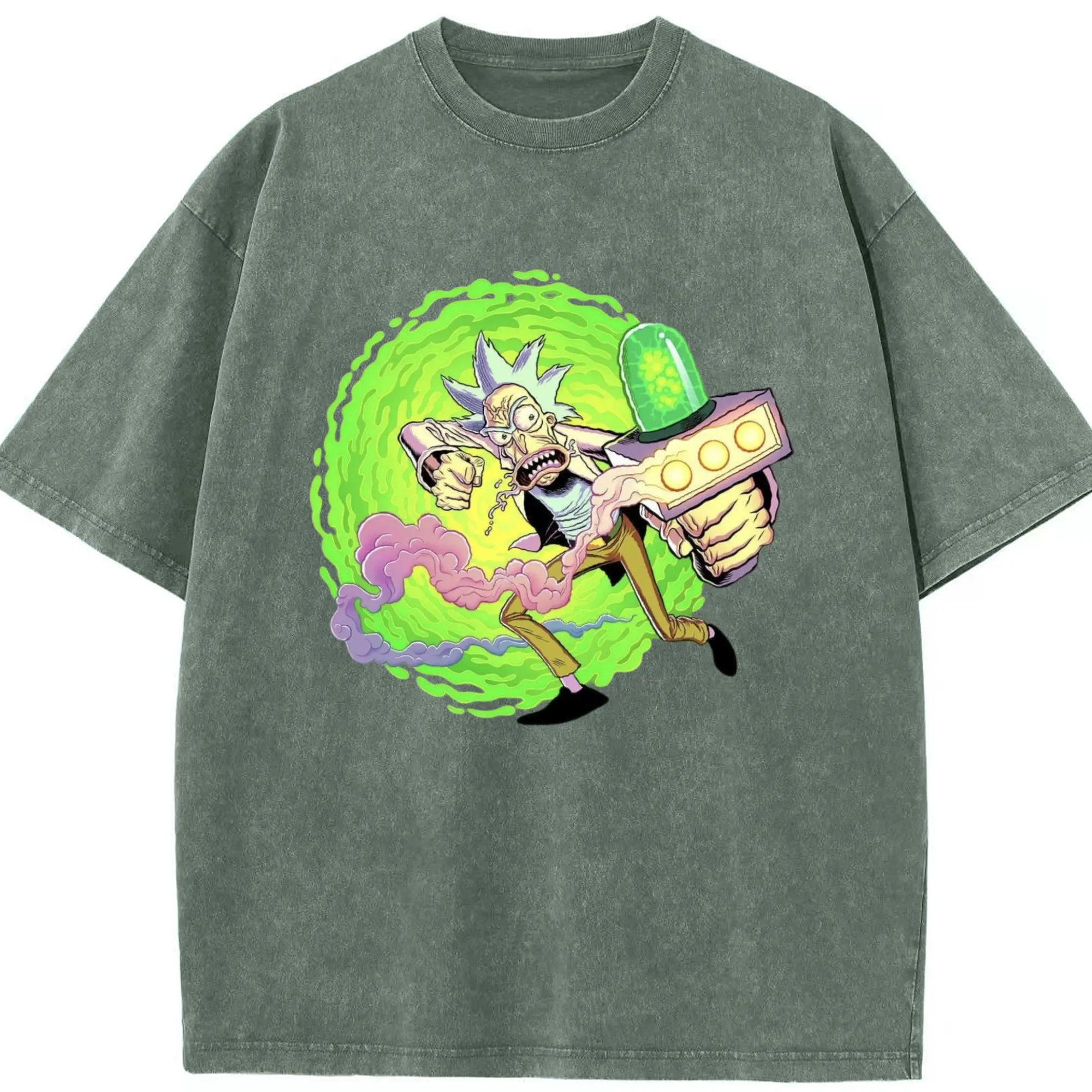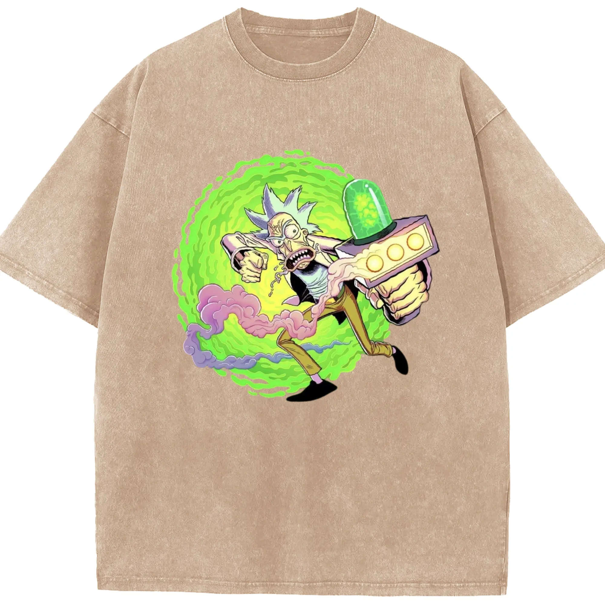 Rick sanchez graphic tee - Washed Vintage Look 230g Cotton Oversized T-Shirt With Front Heat Transfer Print – Soft, Lightweight, Stylish Fit – Comfortable Casual Wear For Sports & Everyday Use
