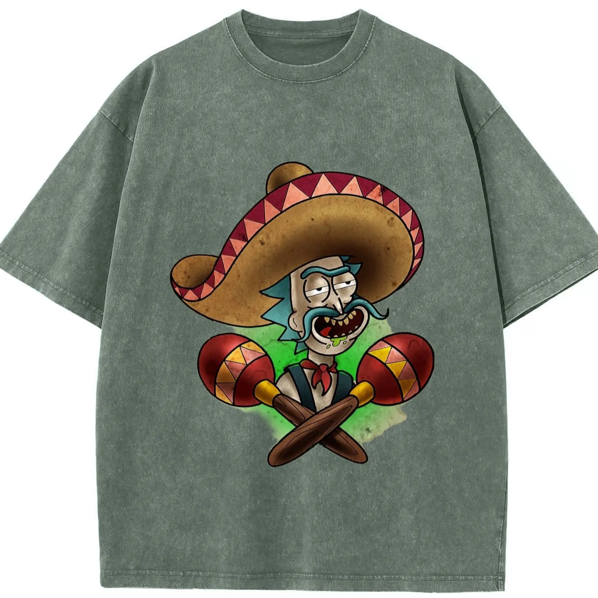 Rick sanchez graphic t-shirt - Washed Vintage Look 230g Cotton Oversized T-Shirt With Front Heat Transfer Print – Soft, Lightweight, Stylish Fit – Comfortable Casual Wear For Sports & Everyday Use