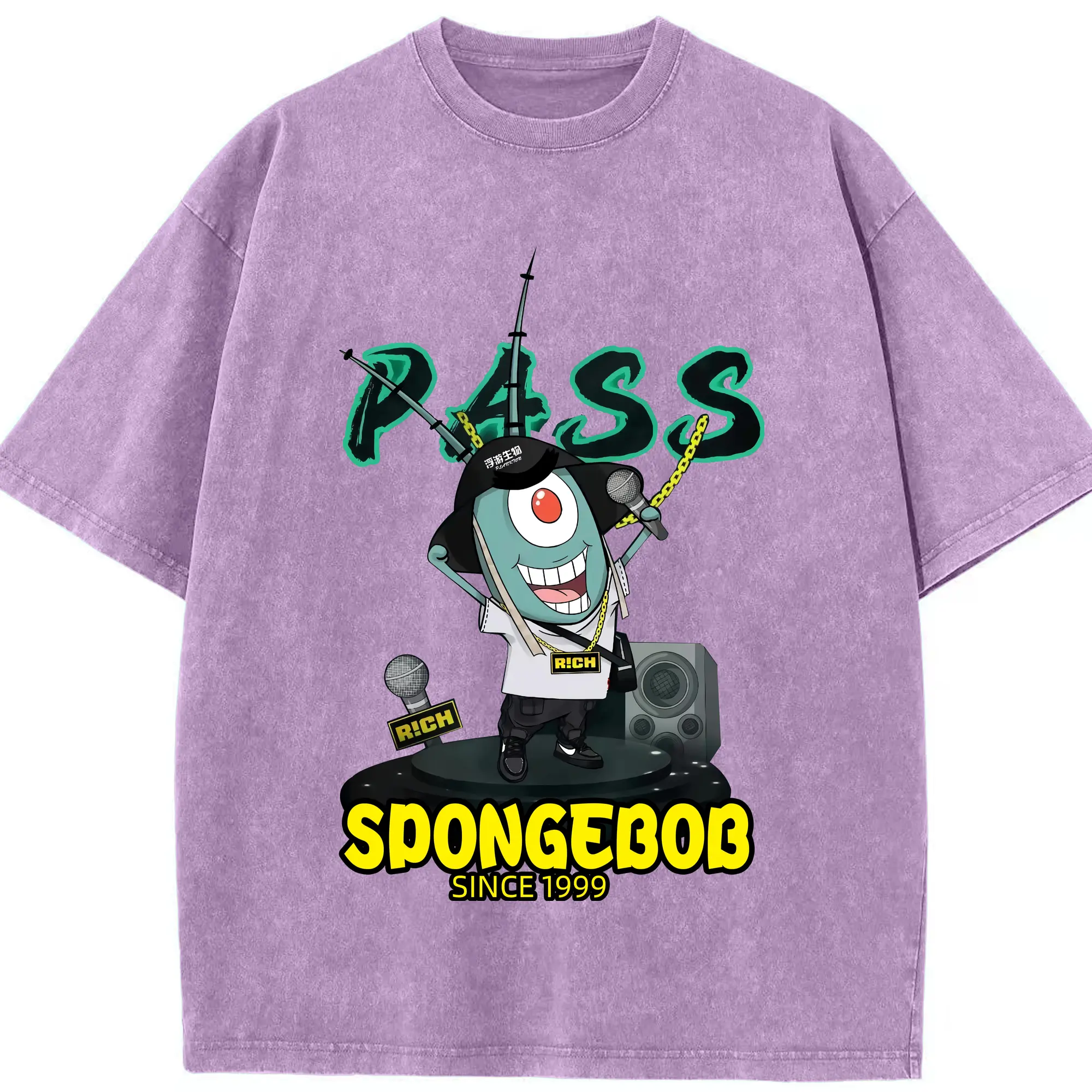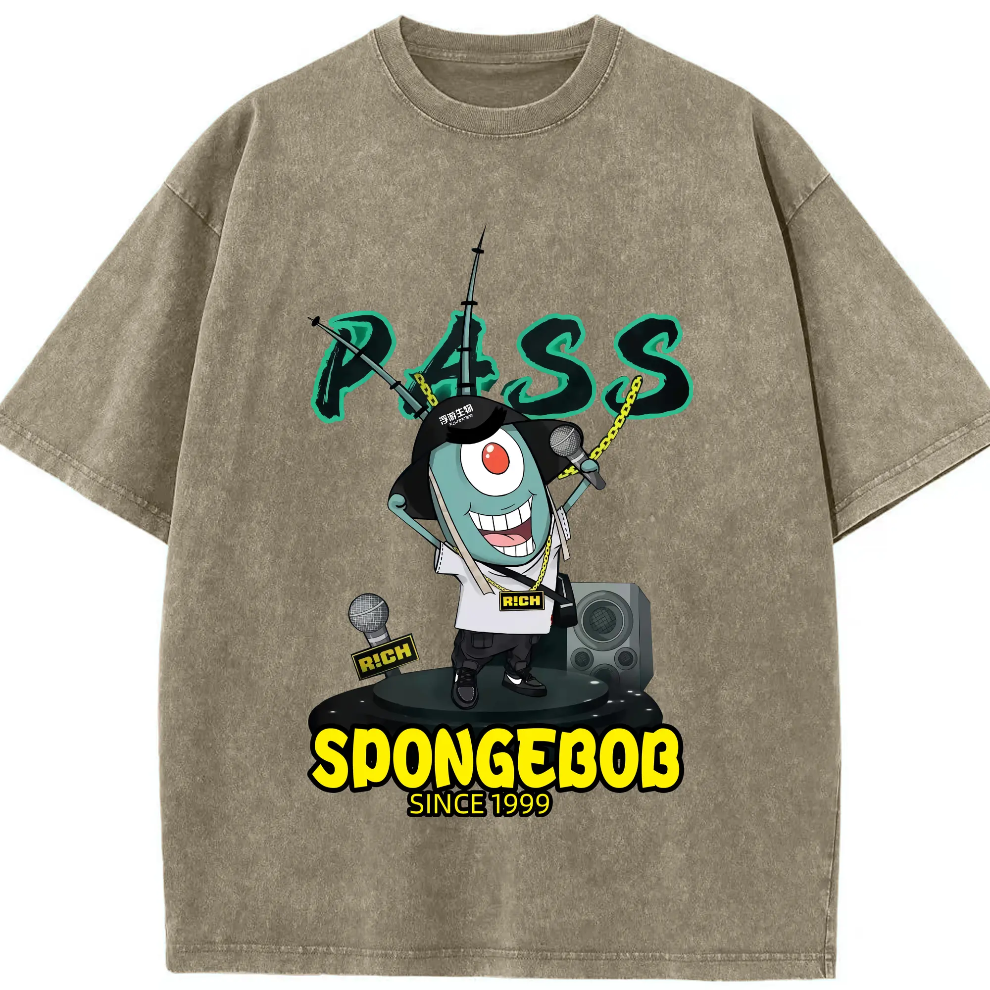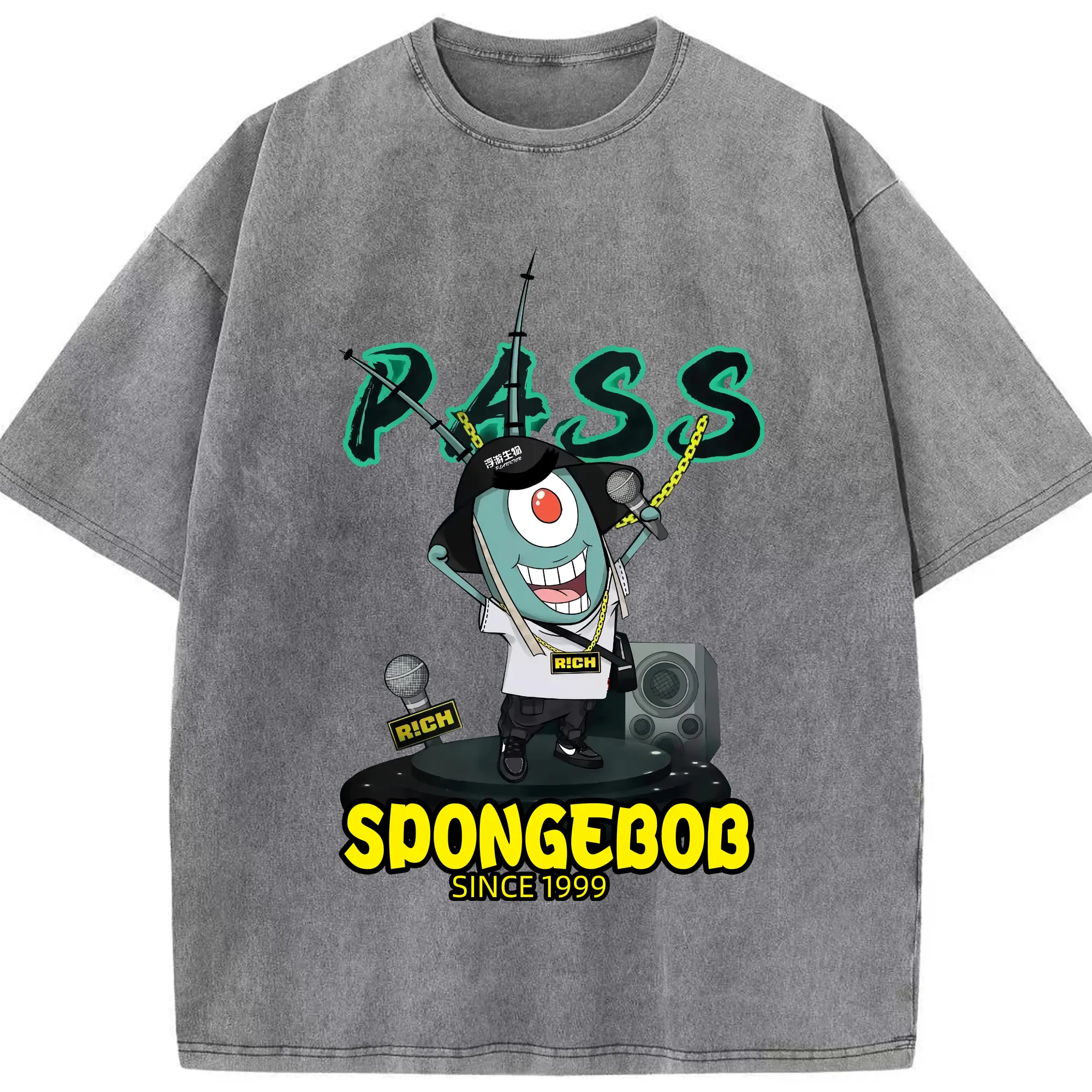 Sheldon J. Plankton hip hop shirt - Washed Vintage Look 230g Cotton Oversized T-Shirt With Front Heat Transfer Print – Soft, Lightweight, Stylish Fit – Comfortable Casual Wear For Sports & Everyday Use