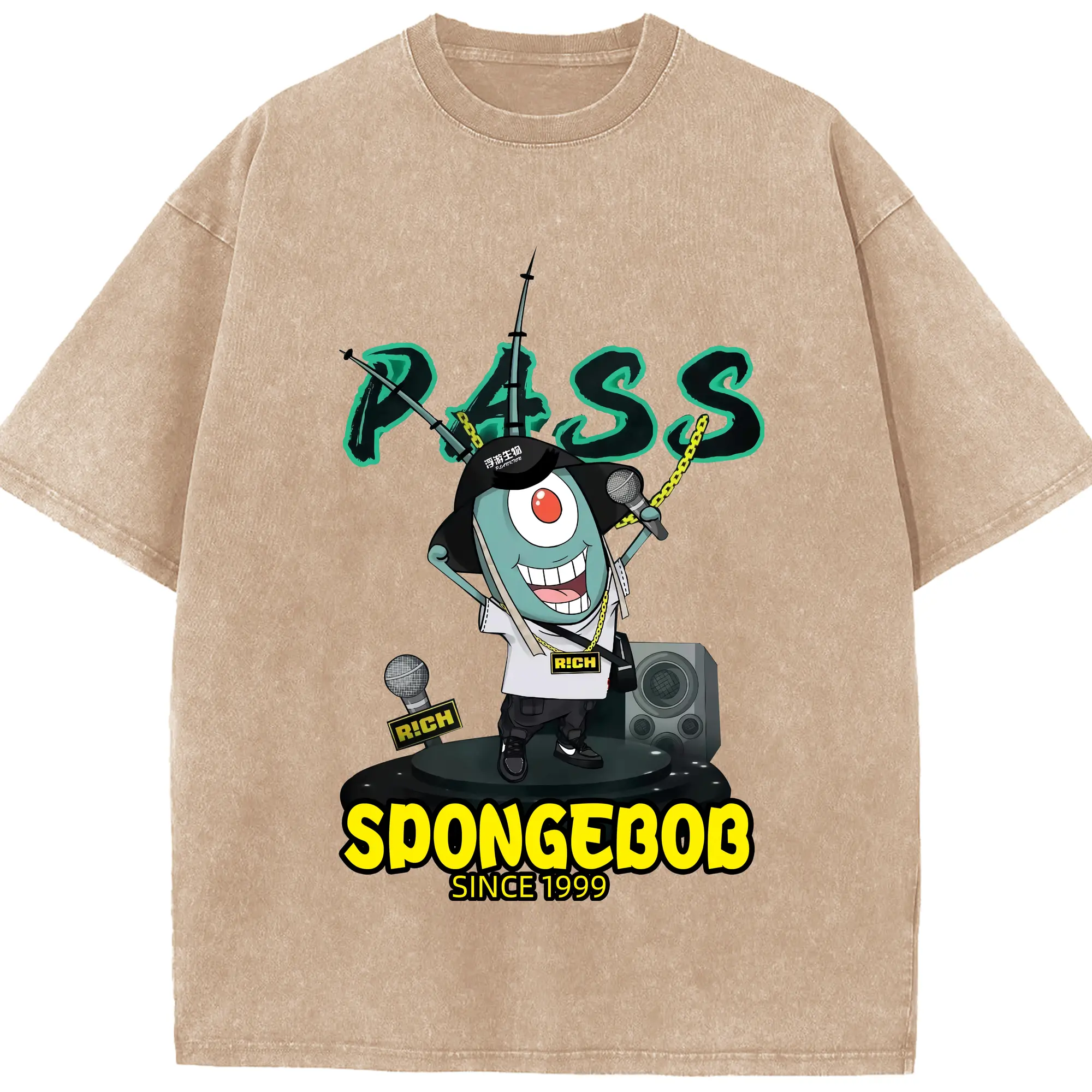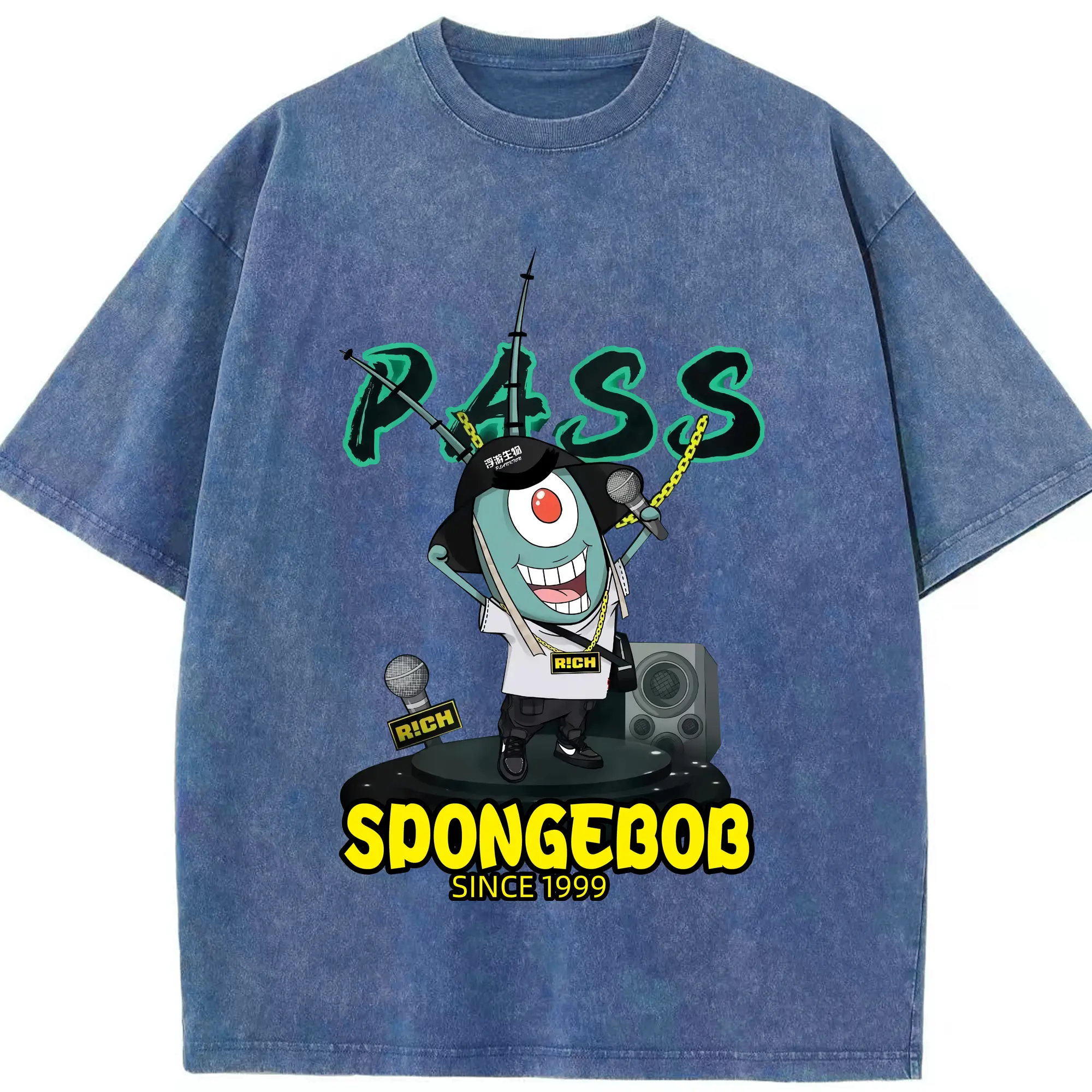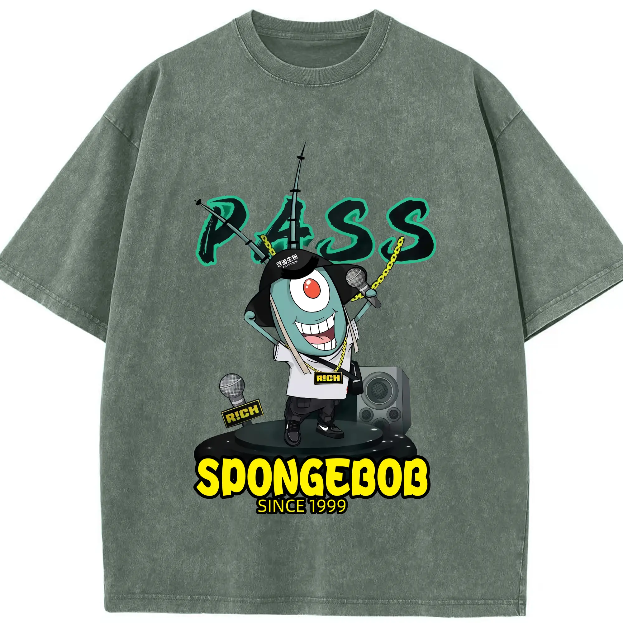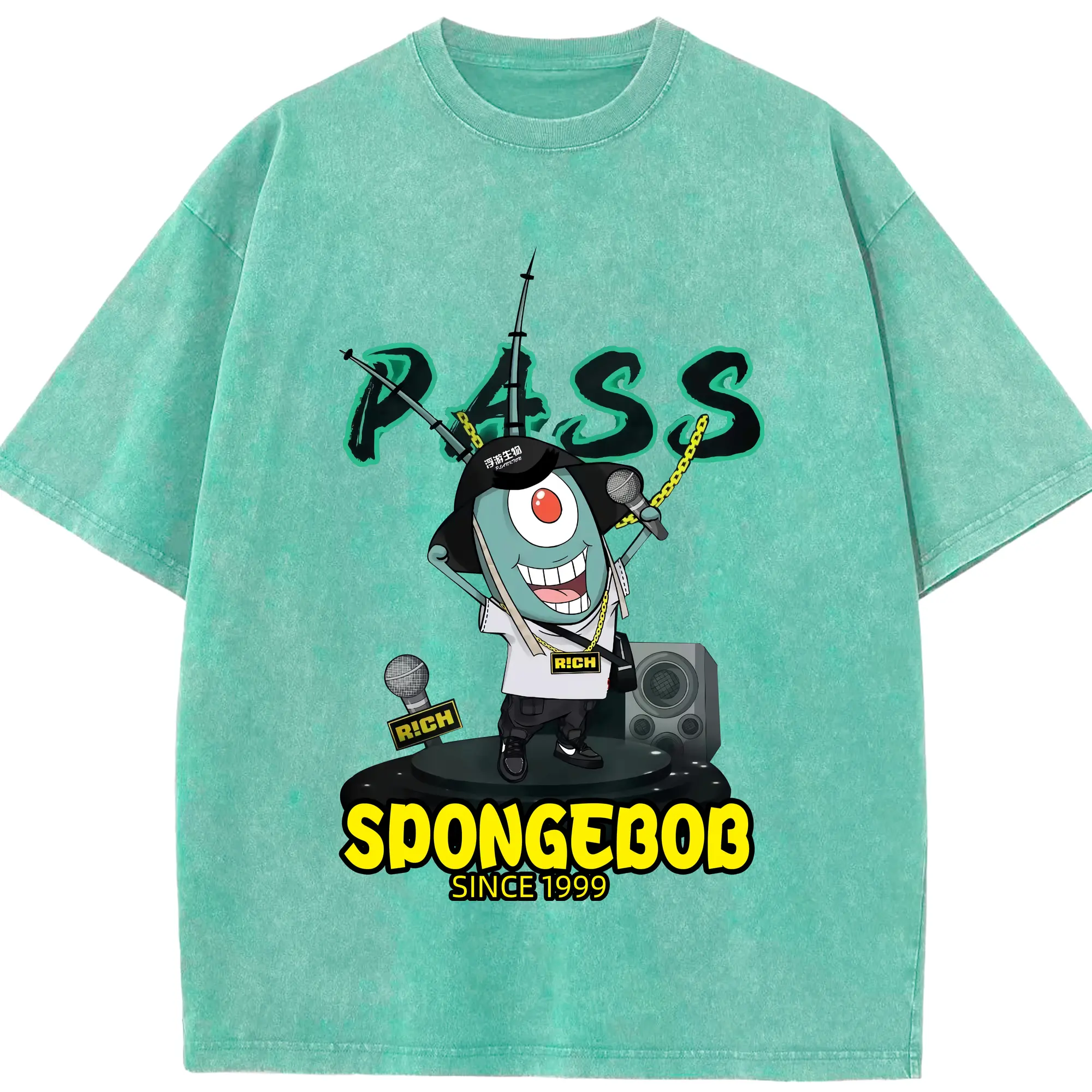 Sheldon J. Plankton hip hop shirt - Washed Vintage Look 230g Cotton Oversized T-Shirt With Front Heat Transfer Print – Soft, Lightweight, Stylish Fit – Comfortable Casual Wear For Sports & Everyday Use