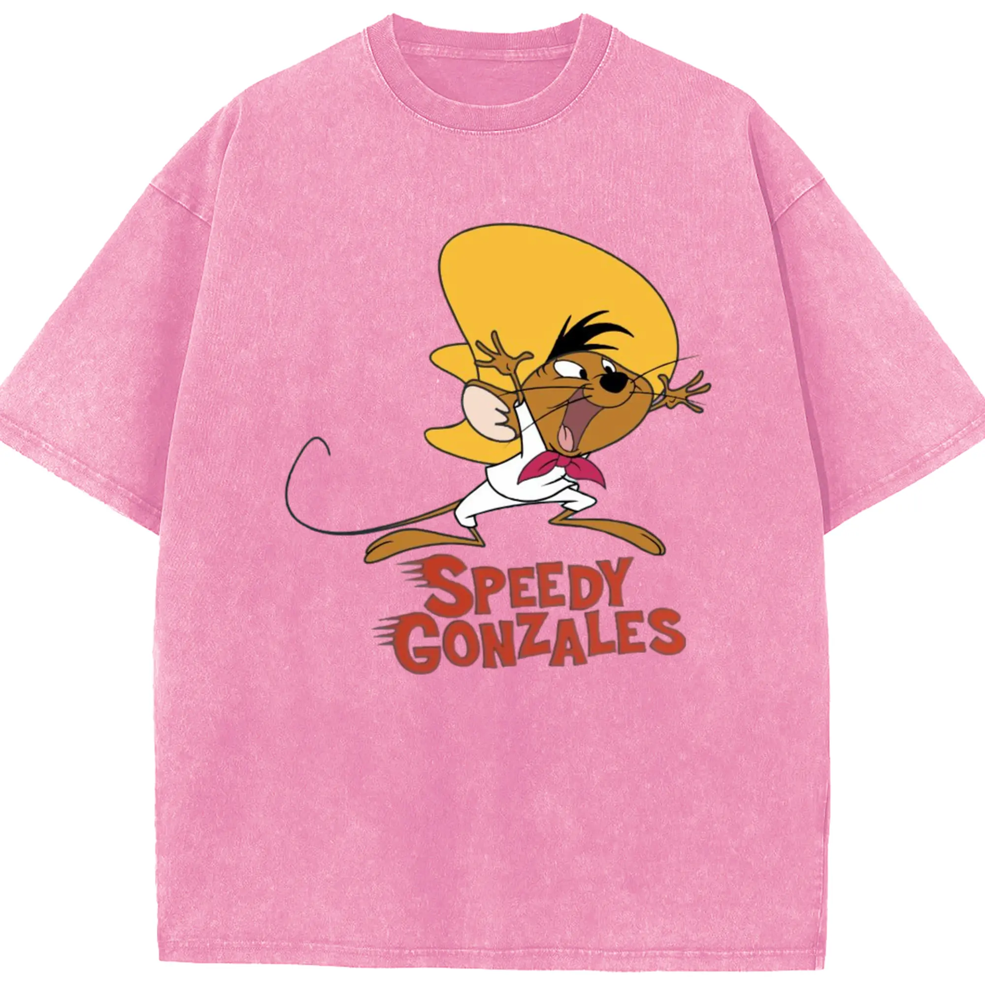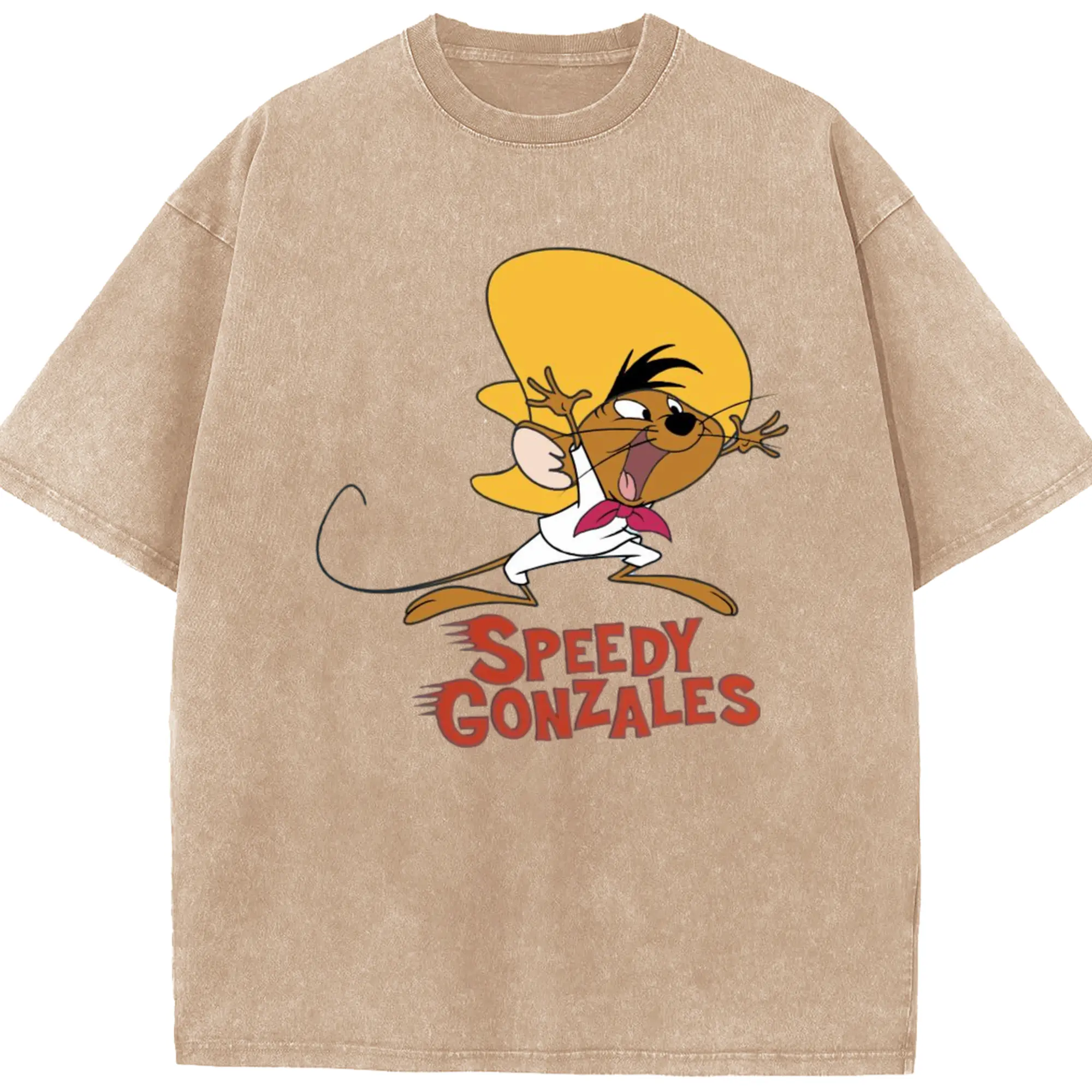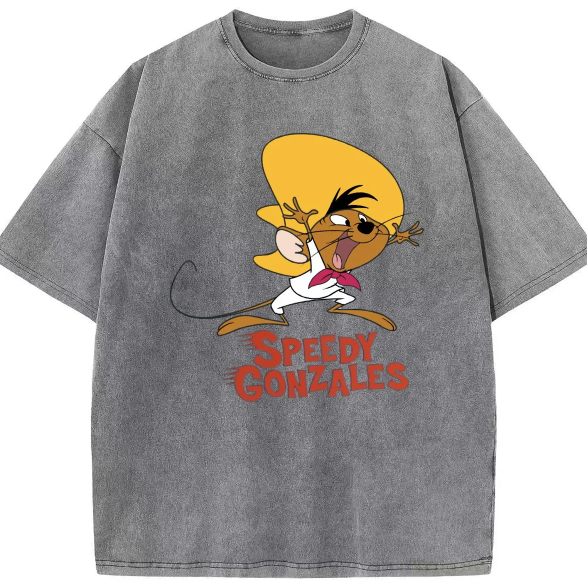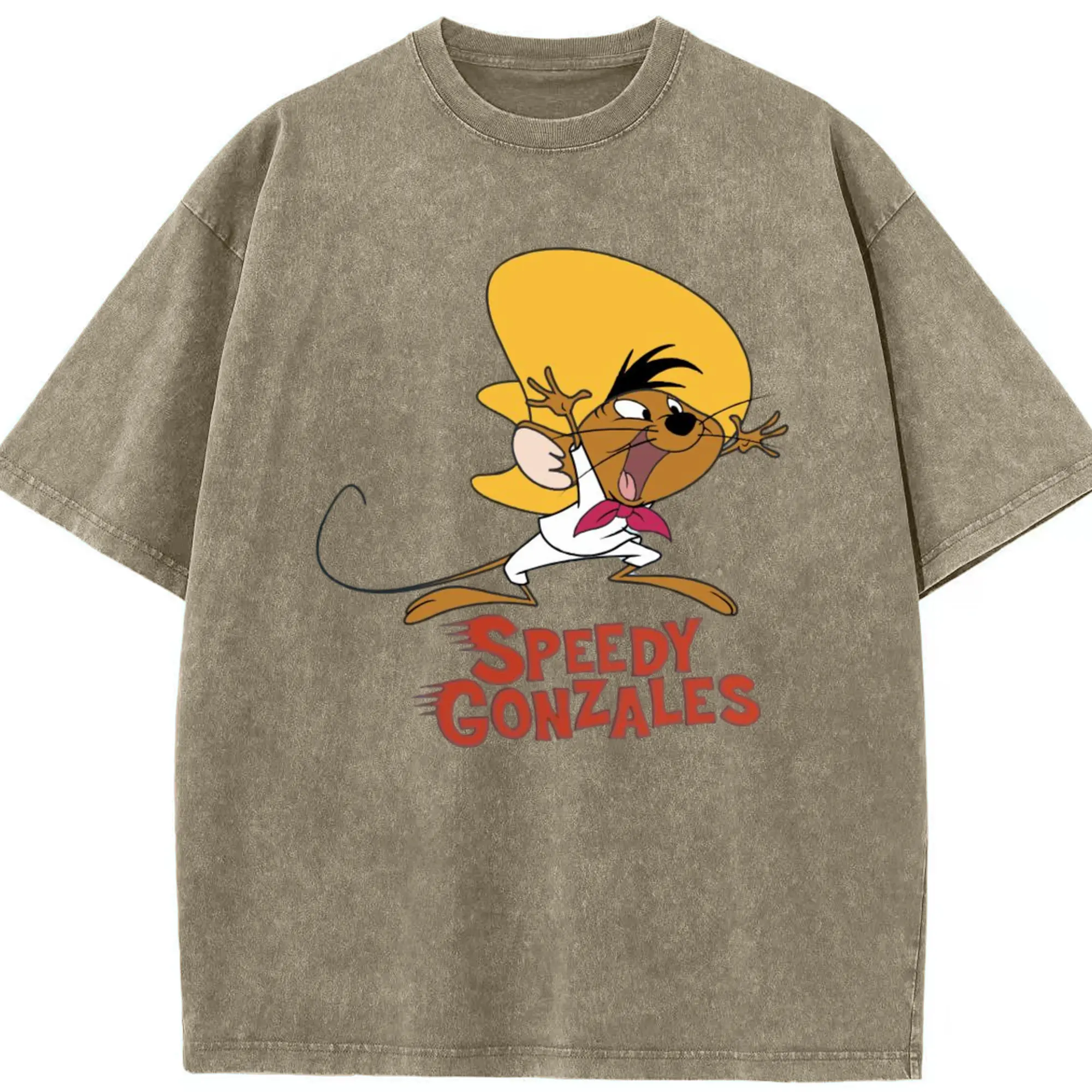 Speedy Gonzales graphic t shirt​ - Washed Vintage Look 230g Cotton Oversized T-Shirt With Front Heat Transfer Print – Soft, Lightweight, Stylish Fit – Comfortable Casual Wear For Sports & Everyday Use
