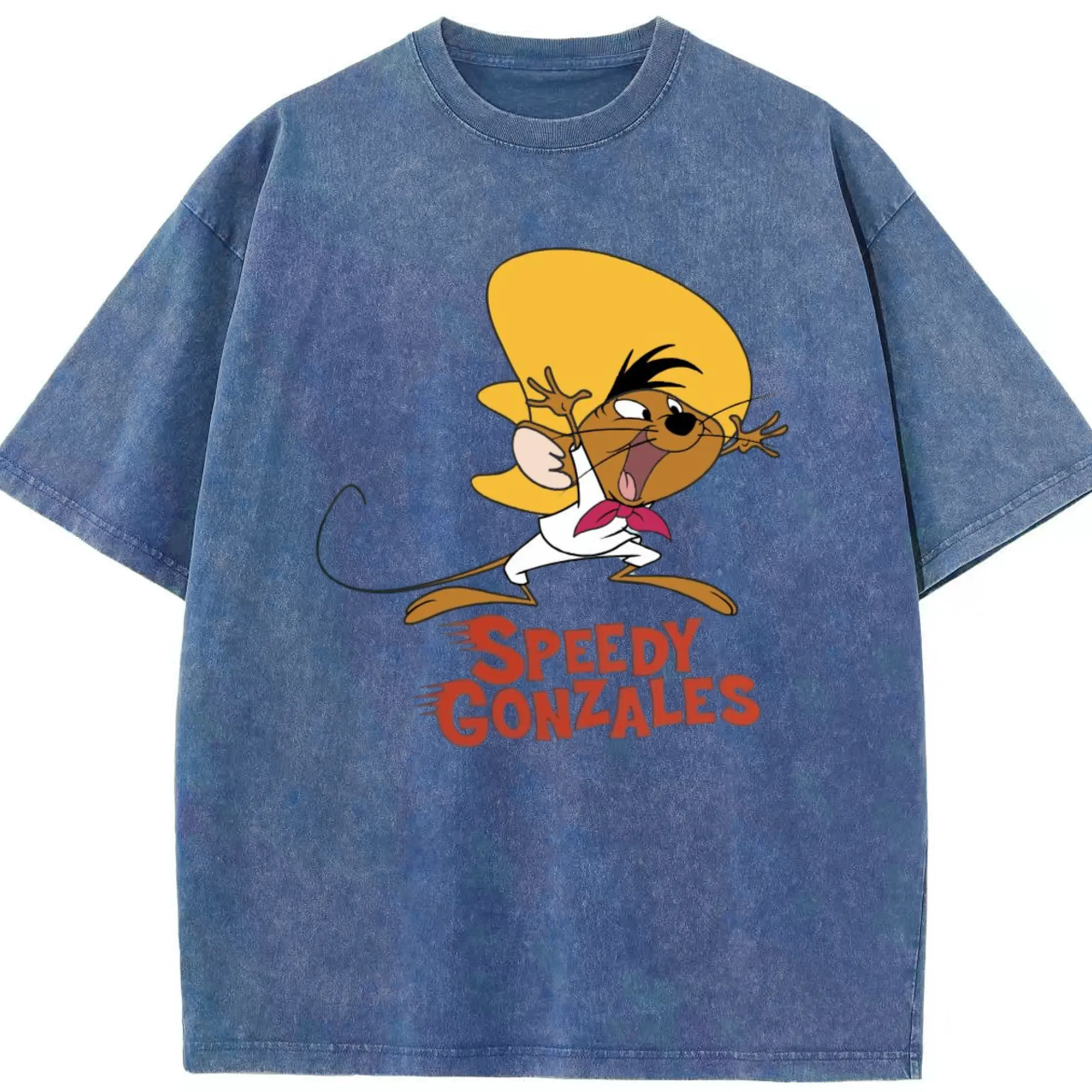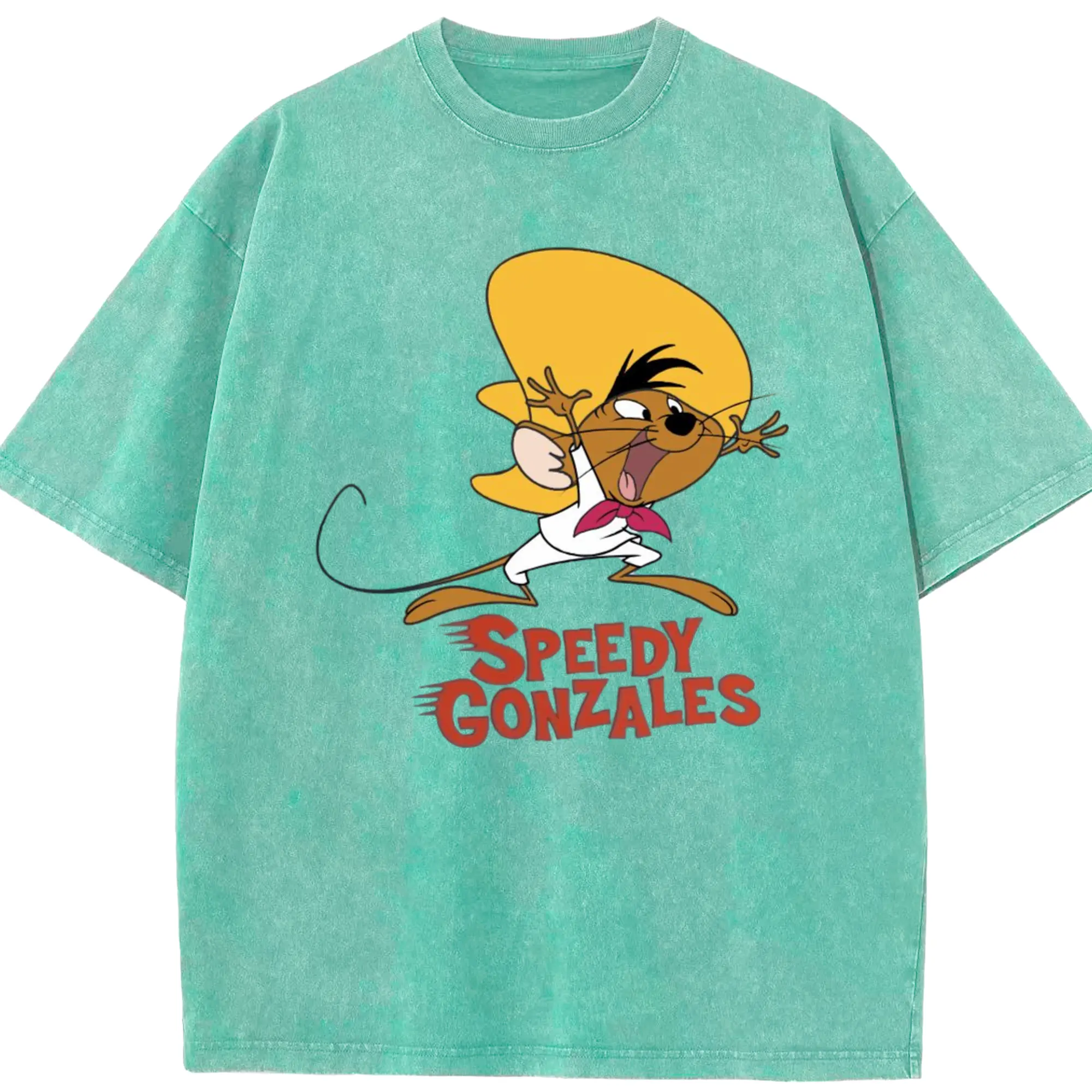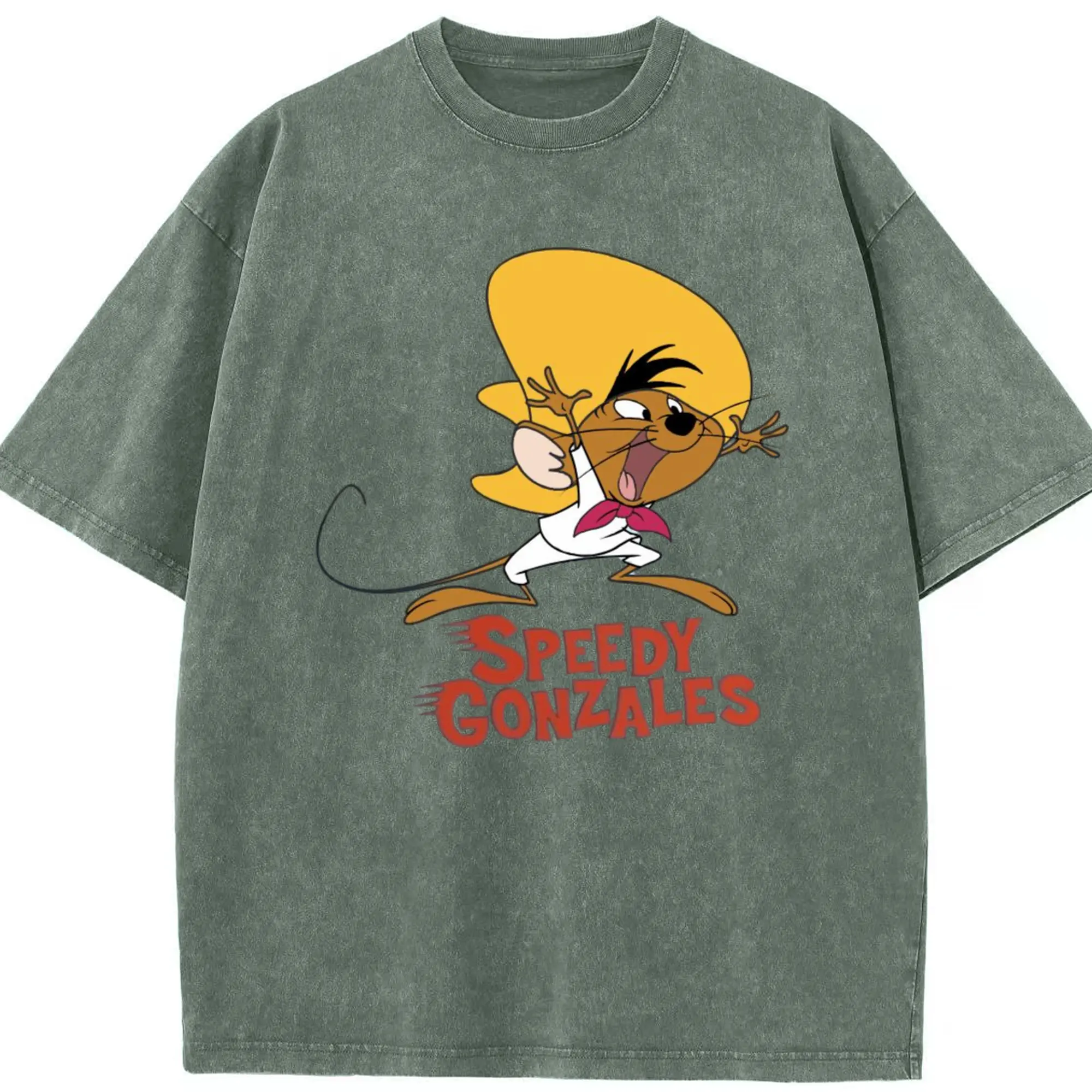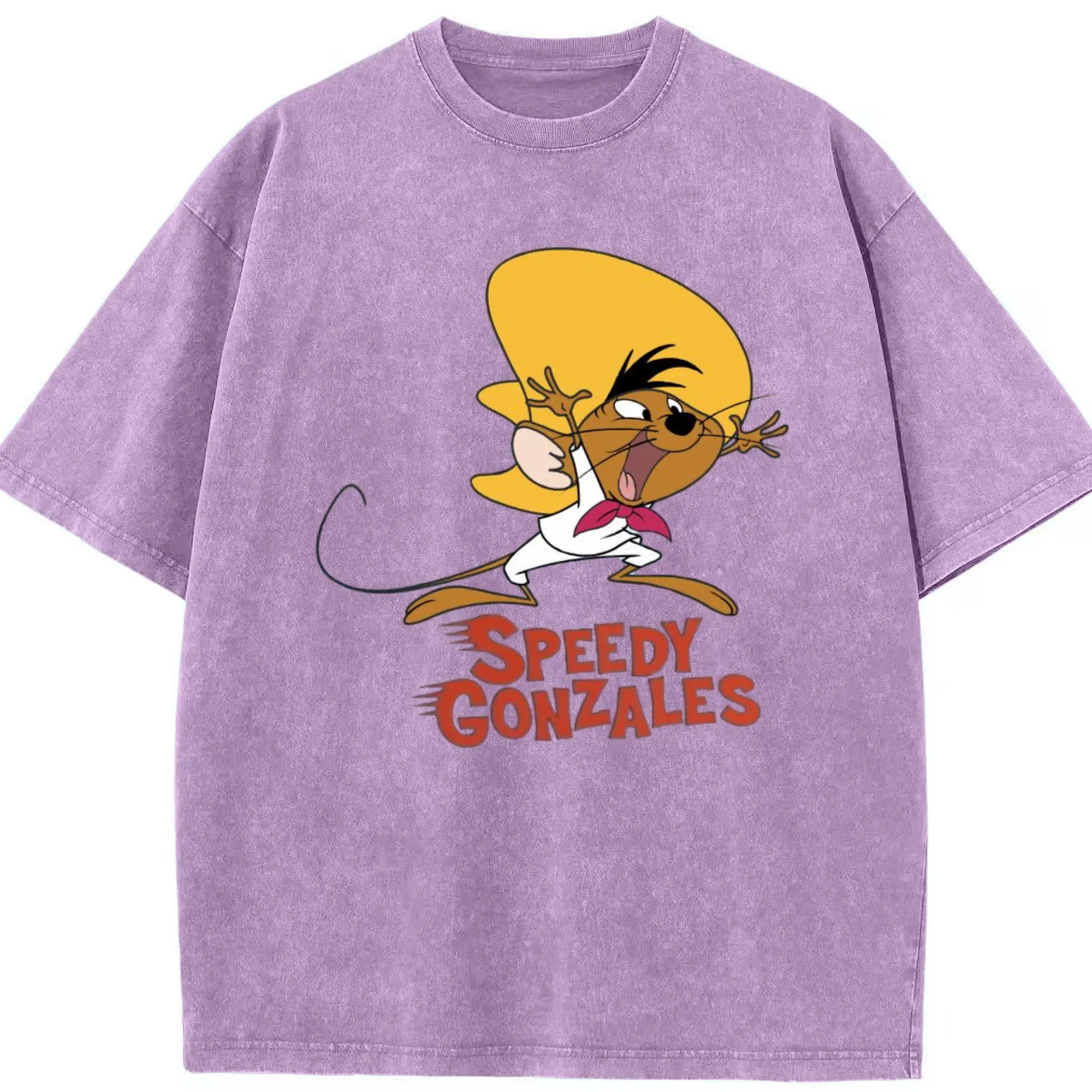 Speedy Gonzales graphic t shirt​ - Washed Vintage Look 230g Cotton Oversized T-Shirt With Front Heat Transfer Print – Soft, Lightweight, Stylish Fit – Comfortable Casual Wear For Sports & Everyday Use