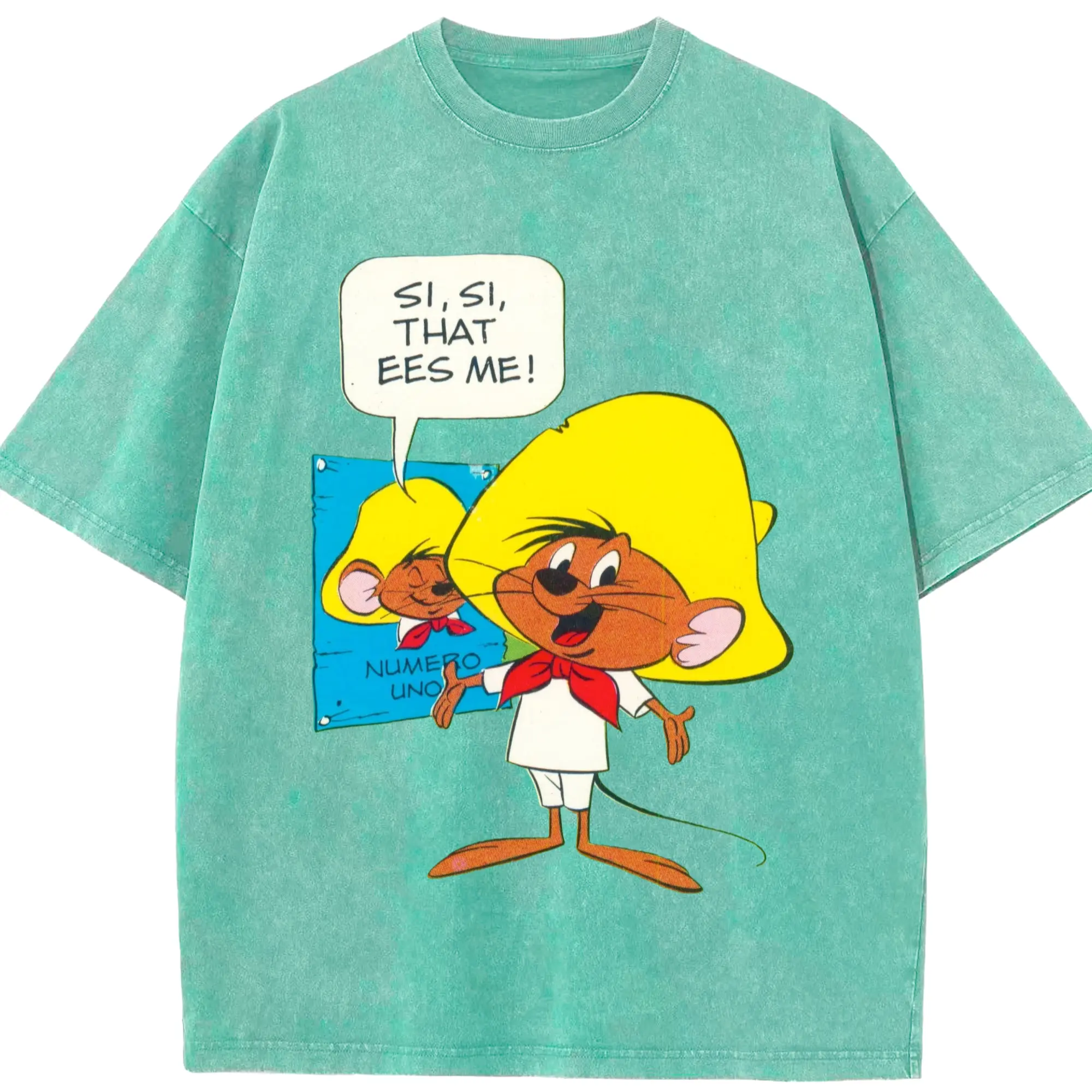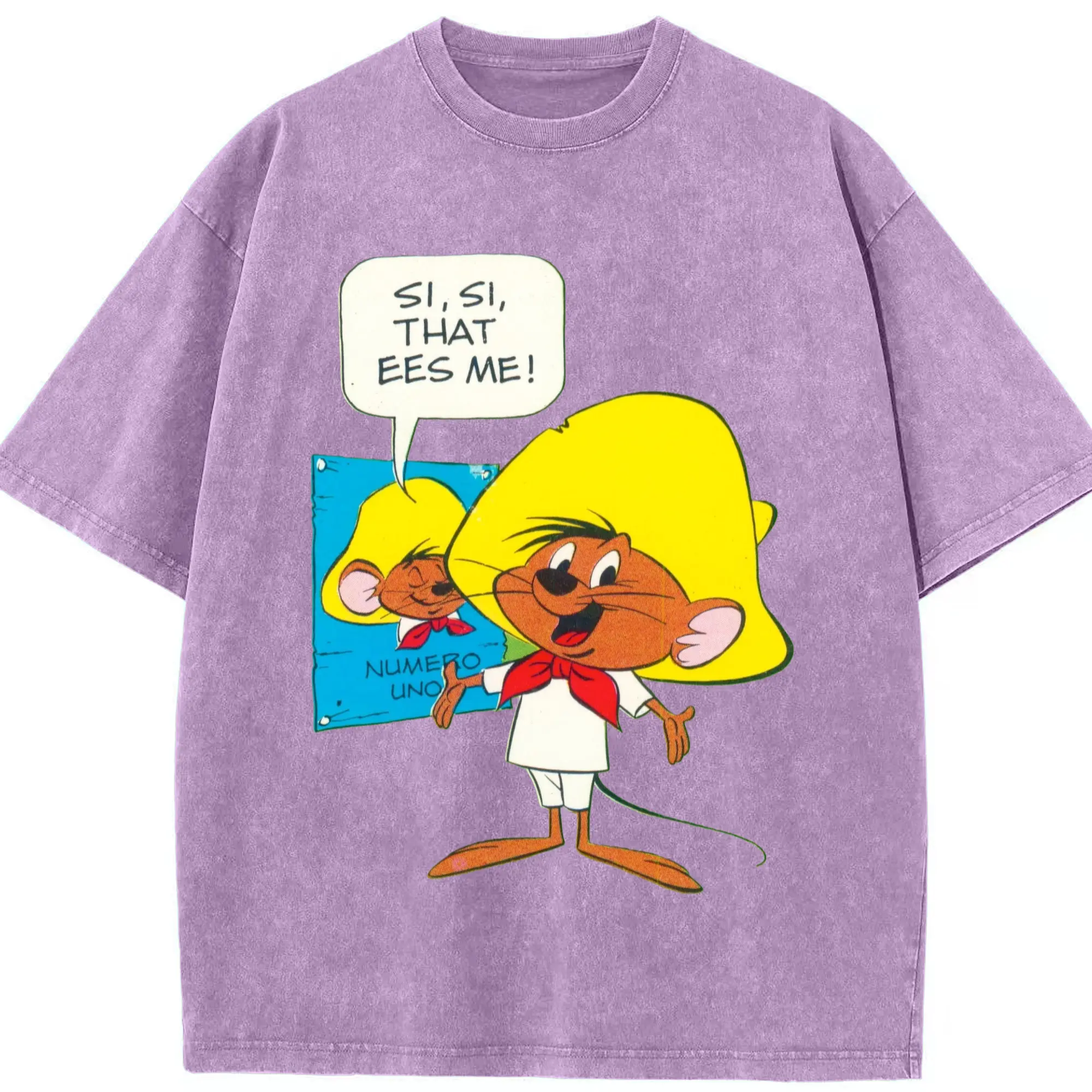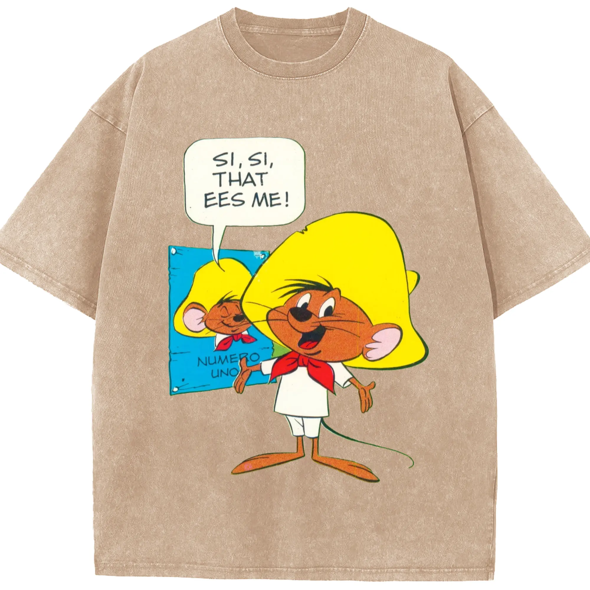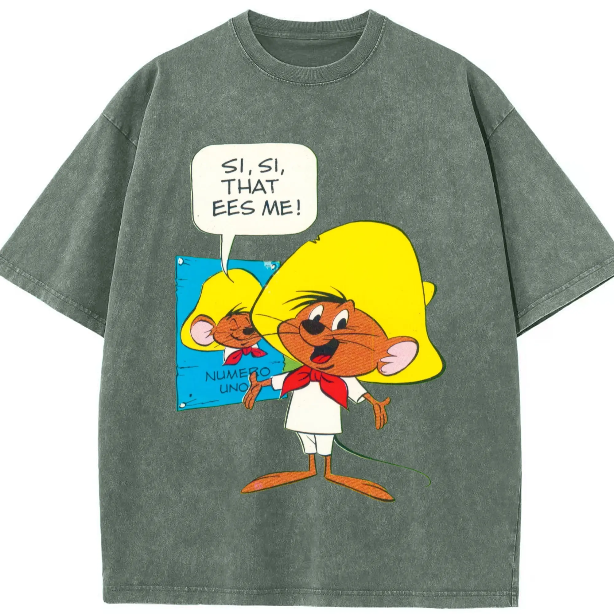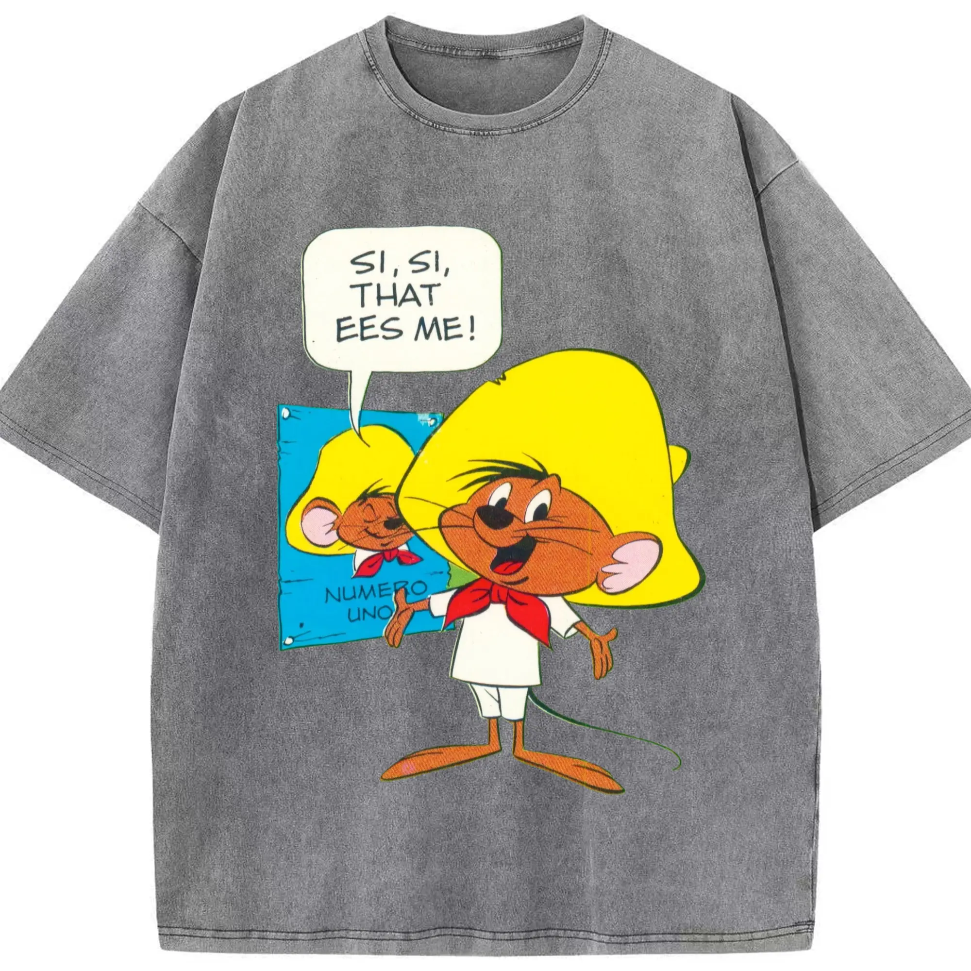 Speedy gonzales tee shirts​ - Washed Vintage Look 230g Cotton Oversized T-Shirt With Front Heat Transfer Print – Soft, Lightweight, Stylish Fit – Comfortable Casual Wear For Sports & Everyday Use