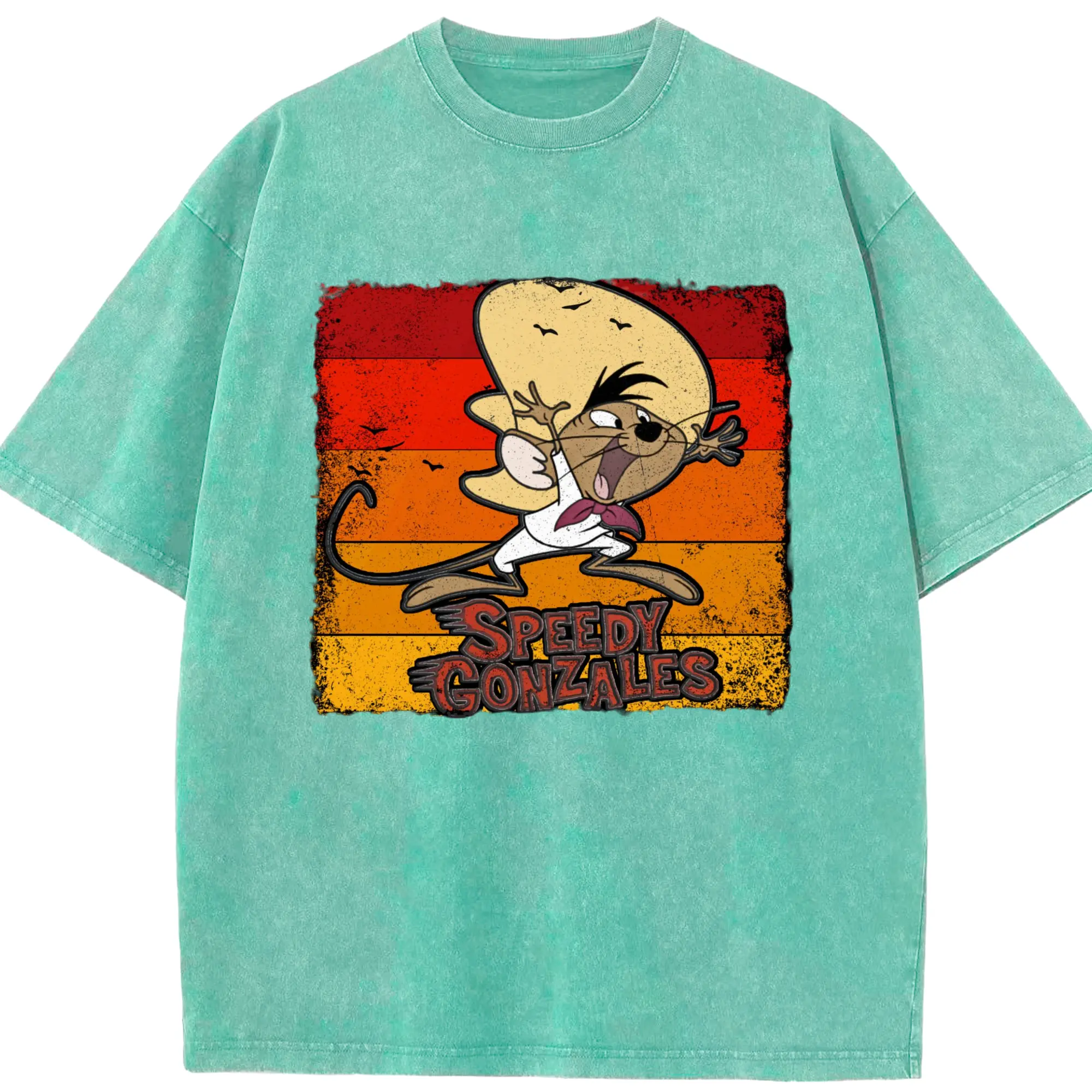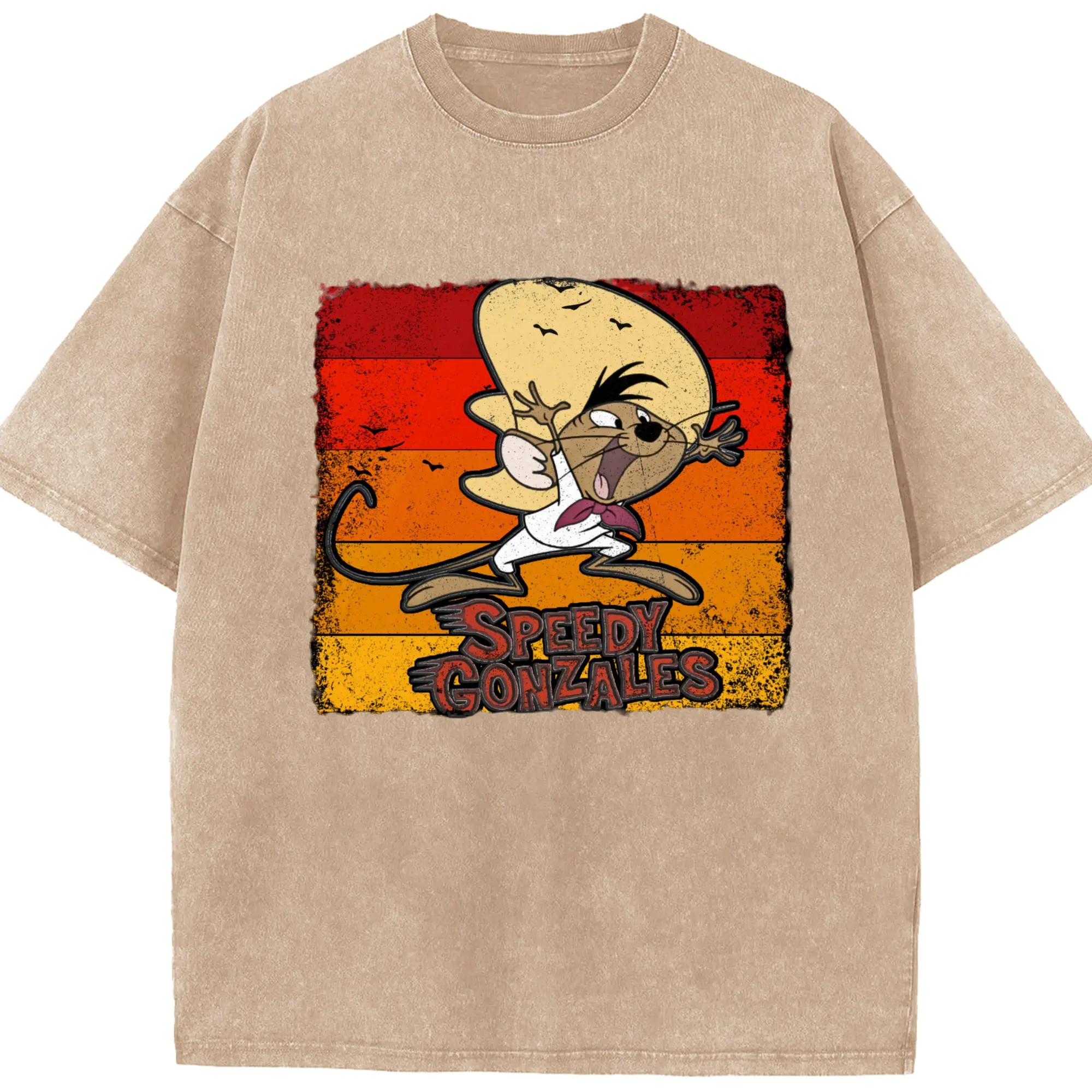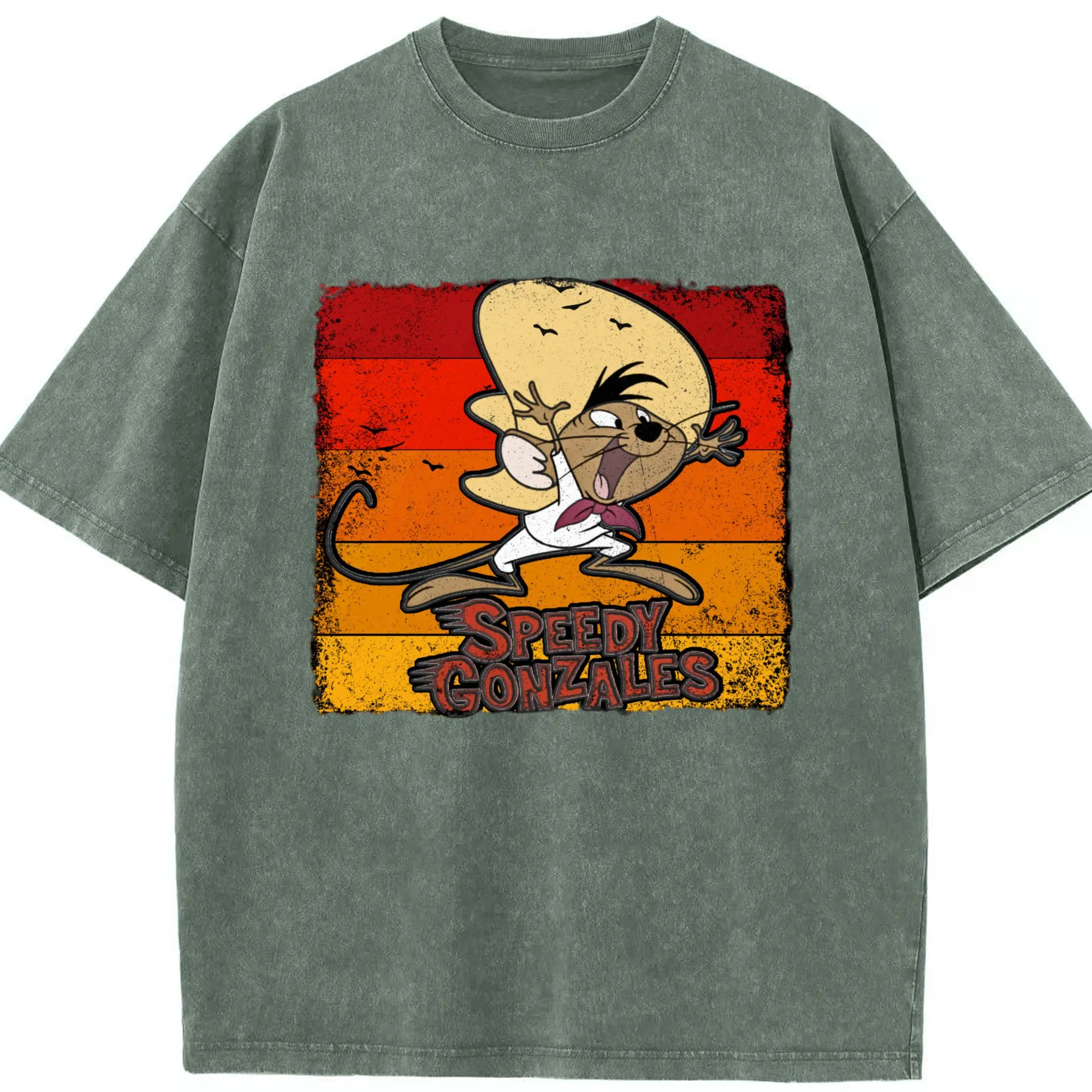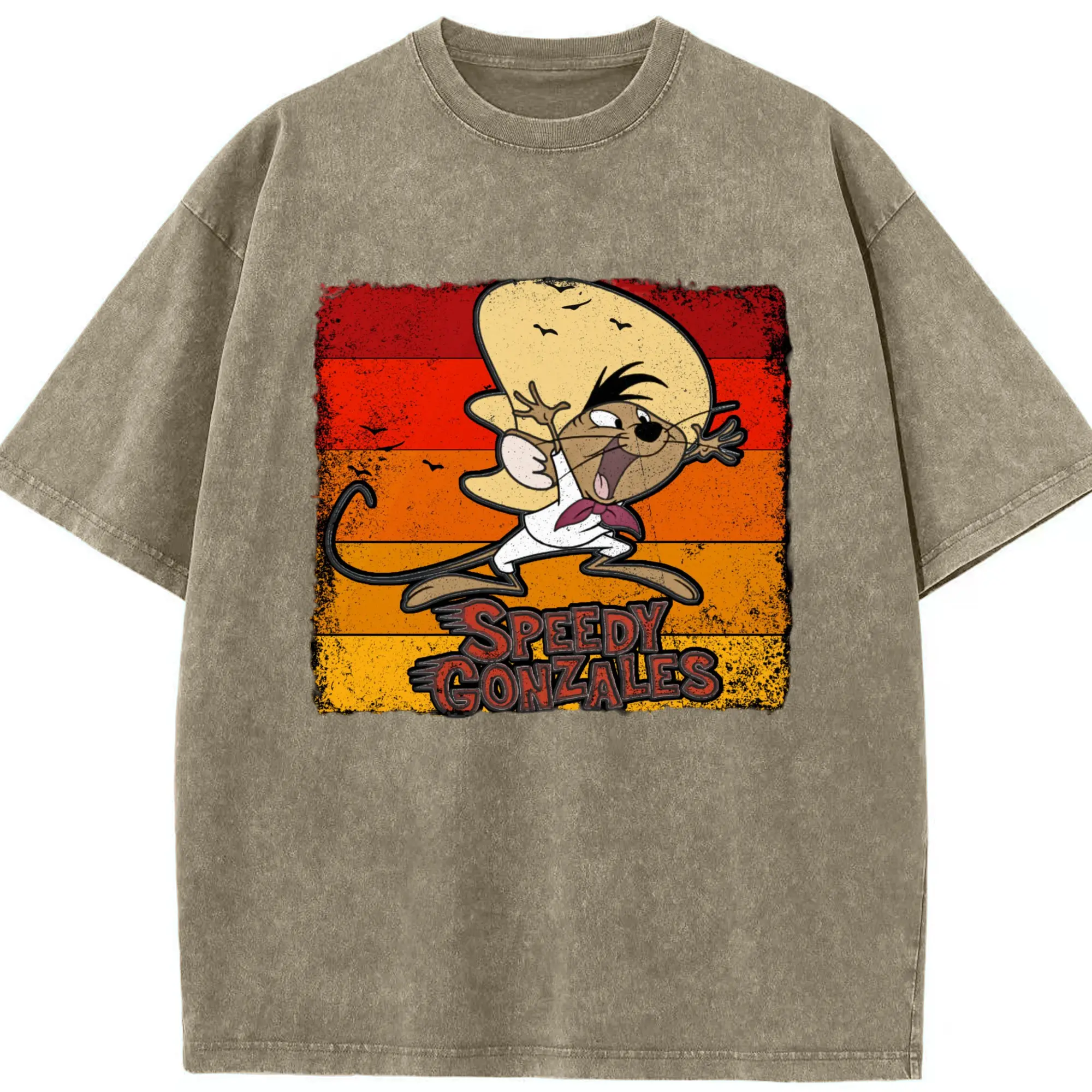 Speedy gonzales t-shirt - Washed Vintage Look 230g Cotton Oversized T-Shirt With Front Heat Transfer Print – Soft, Lightweight, Stylish Fit – Comfortable Casual Wear For Sports & Everyday Use