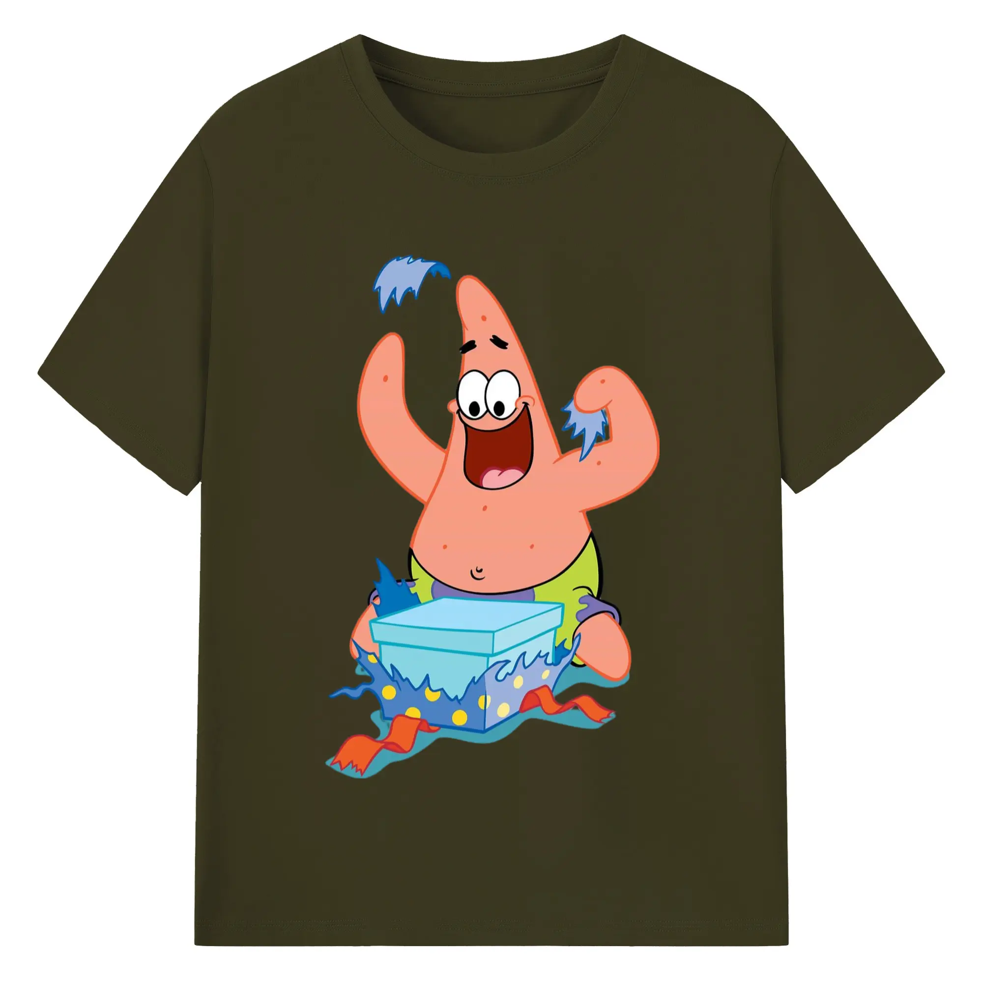 Spongebob patrick star gift t-shirt - 180g Cotton T-Shirt With Front Heat Transfer Print – Soft, Lightweight, Fitted Design – Comfortable Casual Wear For Sports & Everyday Use