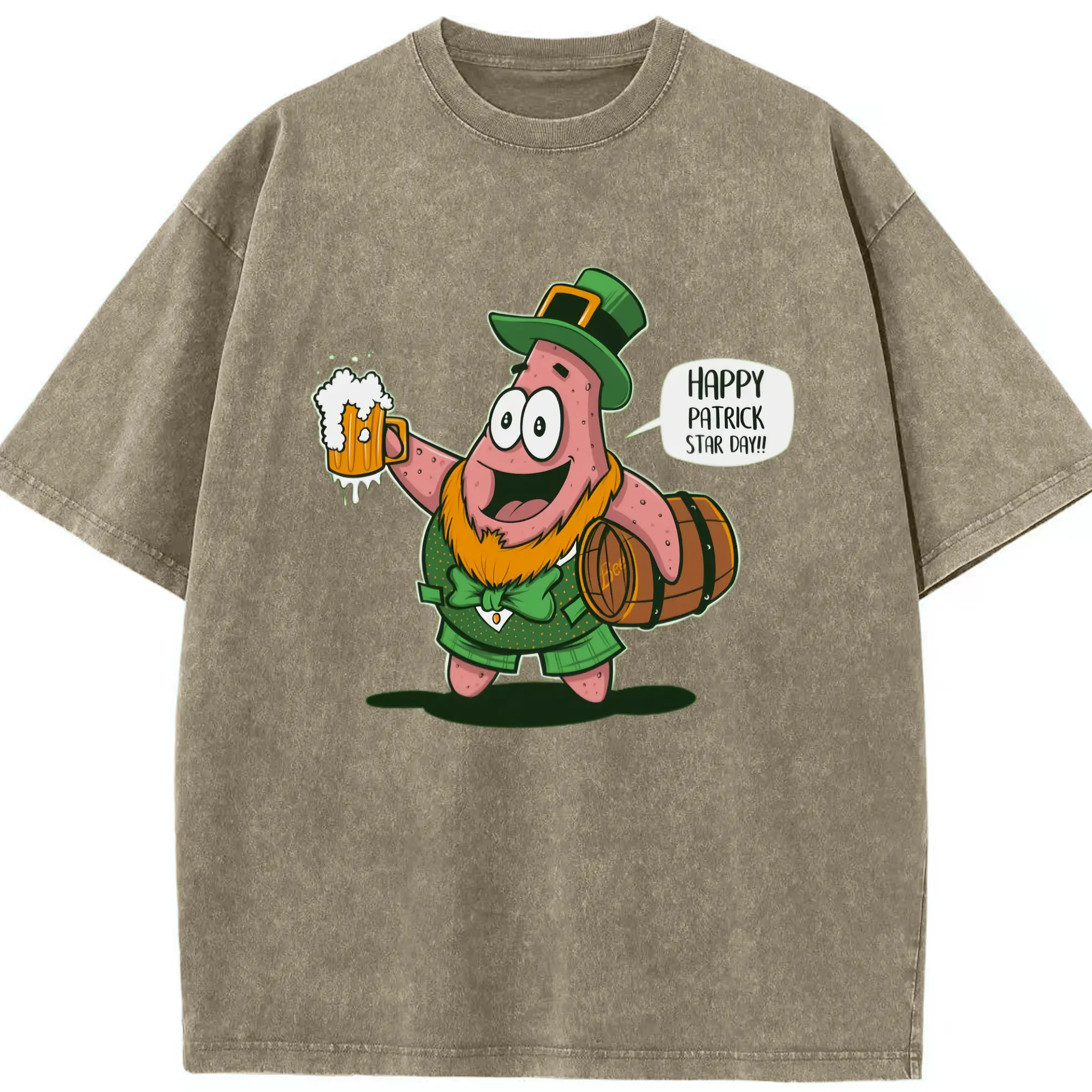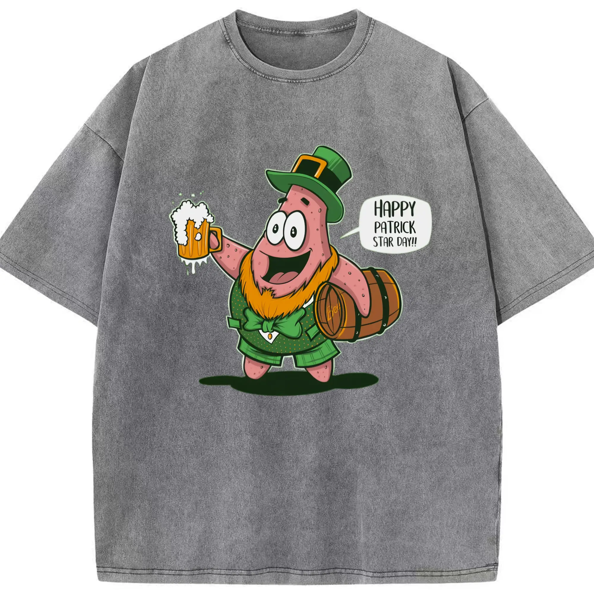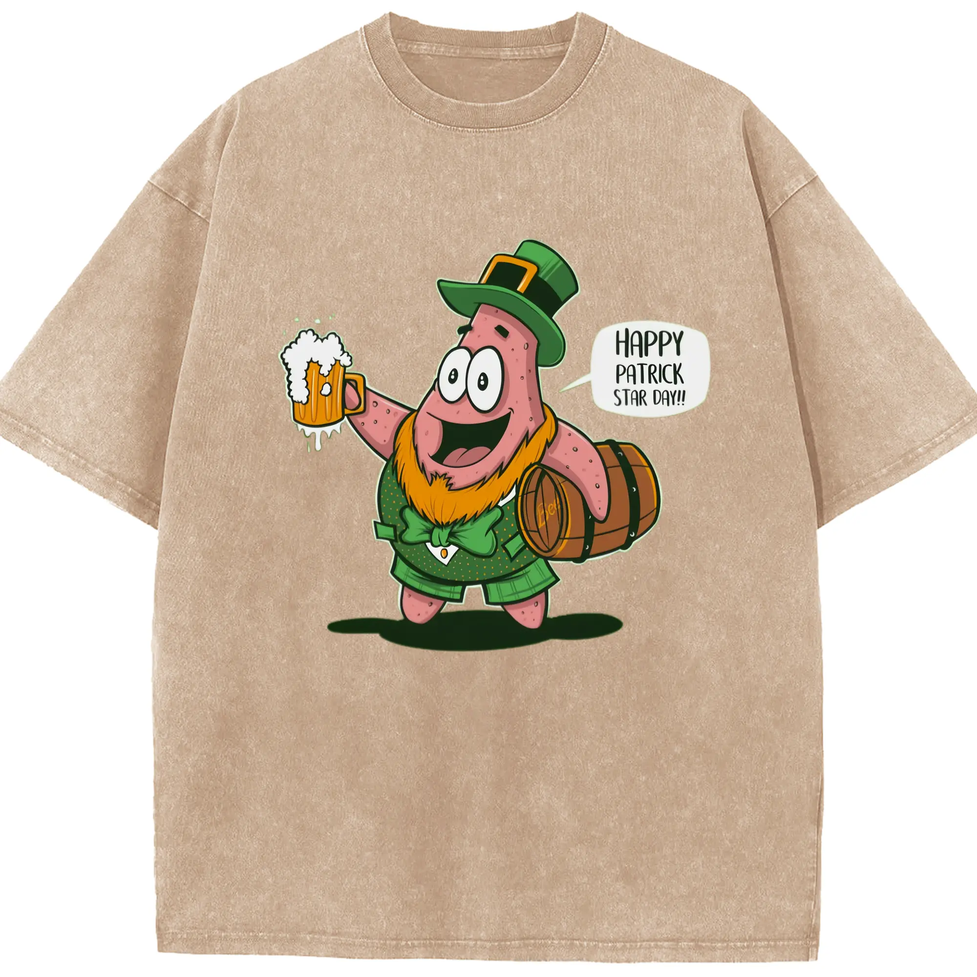 Spongebob Patrick Star PATRICK t-shirt - Washed Vintage Look 230g Cotton Oversized T-Shirt With Front Heat Transfer Print – Soft, Lightweight, Stylish Fit – Comfortable Casual Wear For Sports & Everyday Use