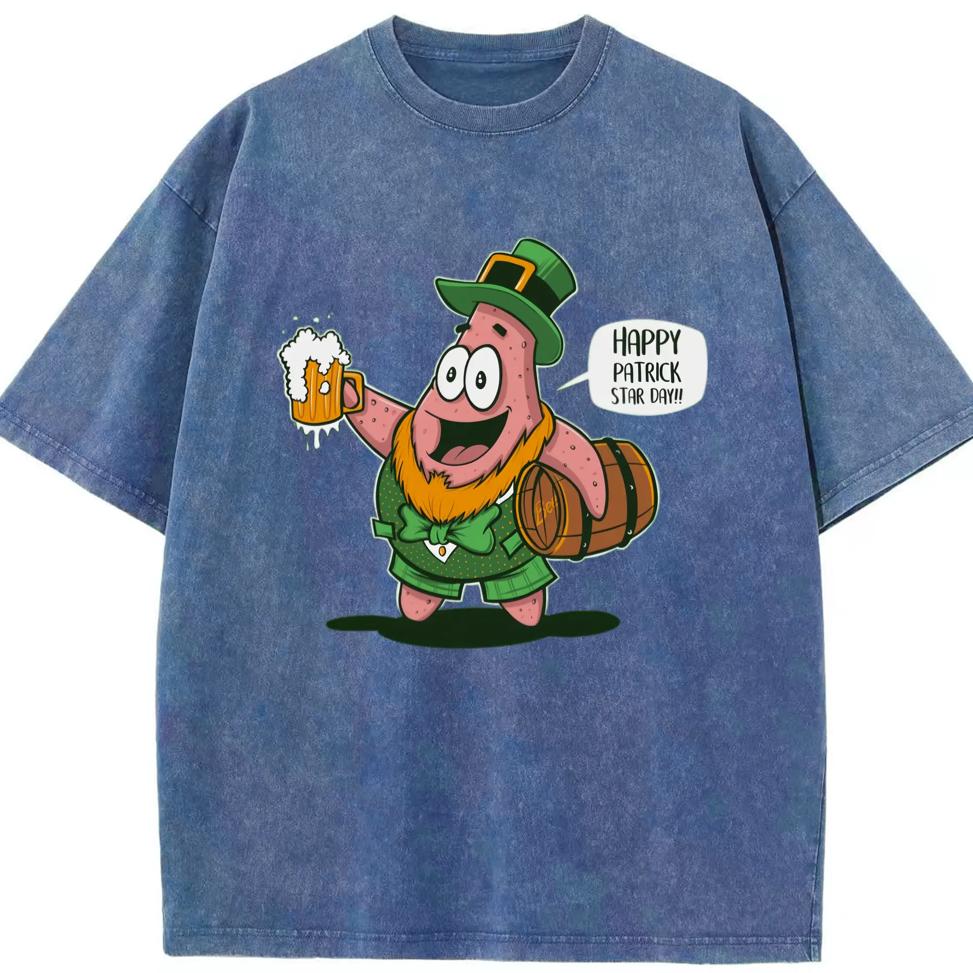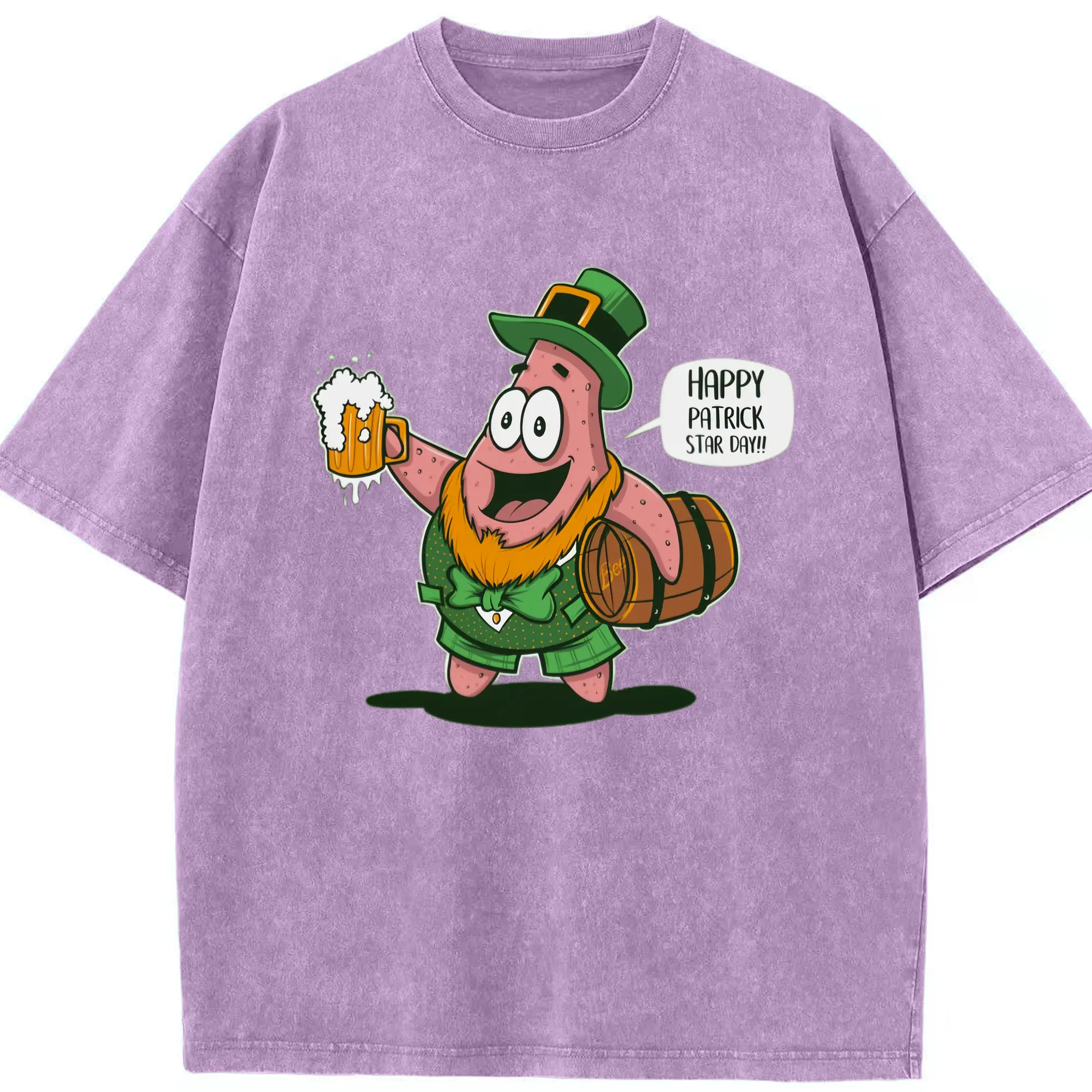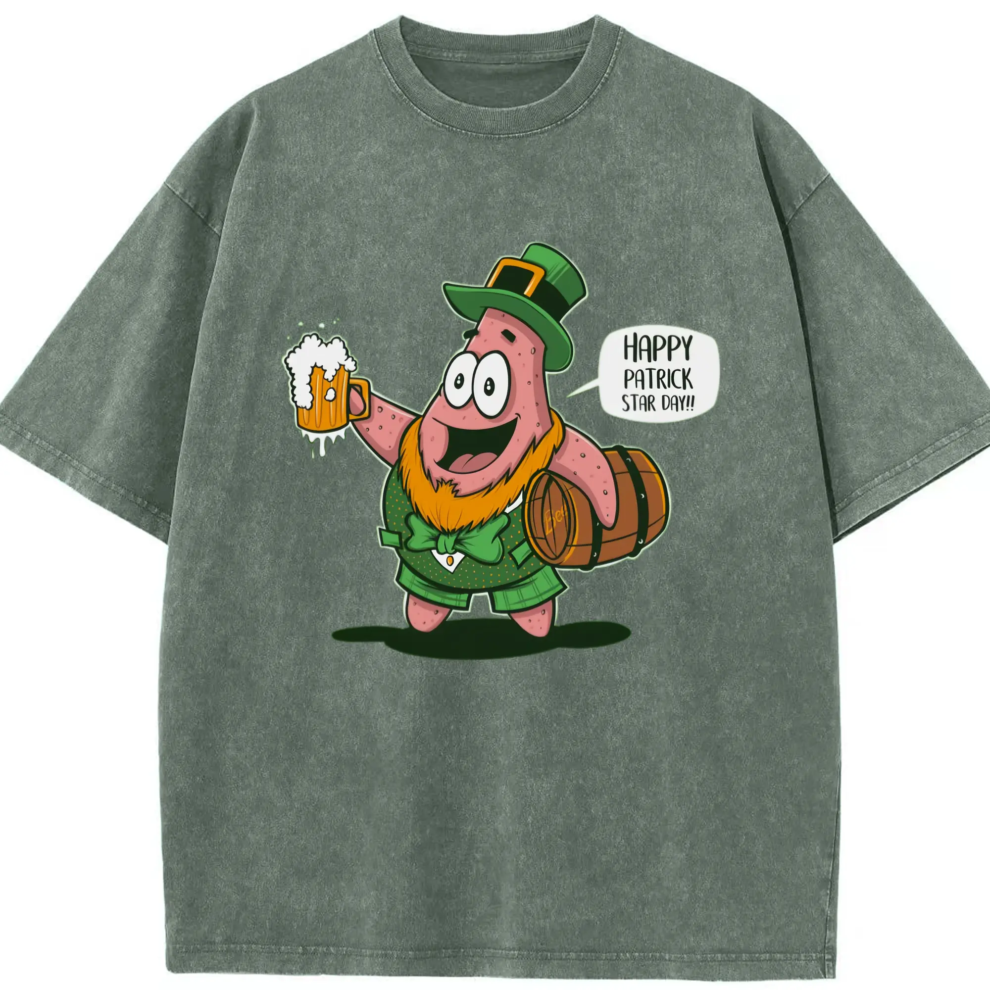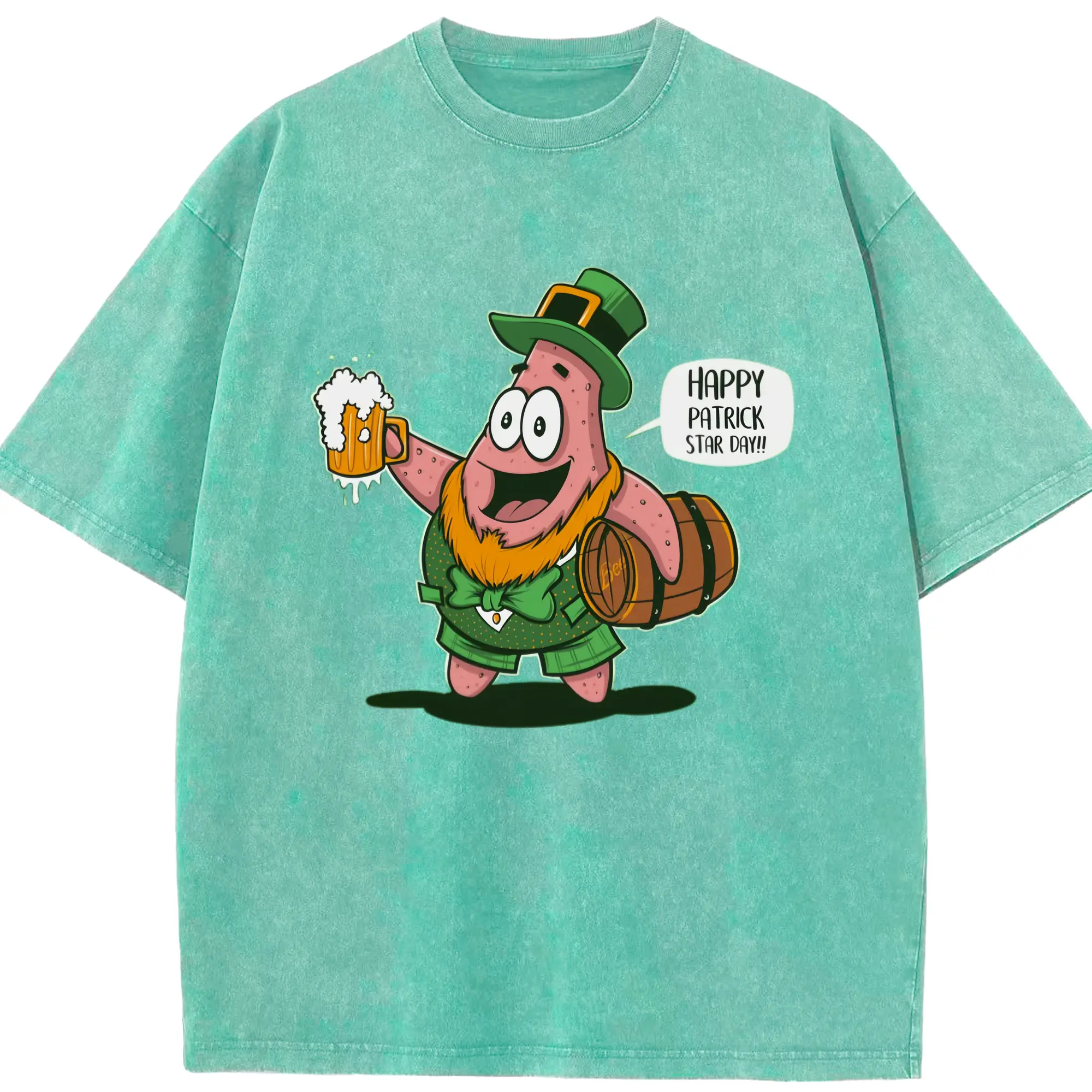 Spongebob Patrick Star PATRICK t-shirt - Washed Vintage Look 230g Cotton Oversized T-Shirt With Front Heat Transfer Print – Soft, Lightweight, Stylish Fit – Comfortable Casual Wear For Sports & Everyday Use