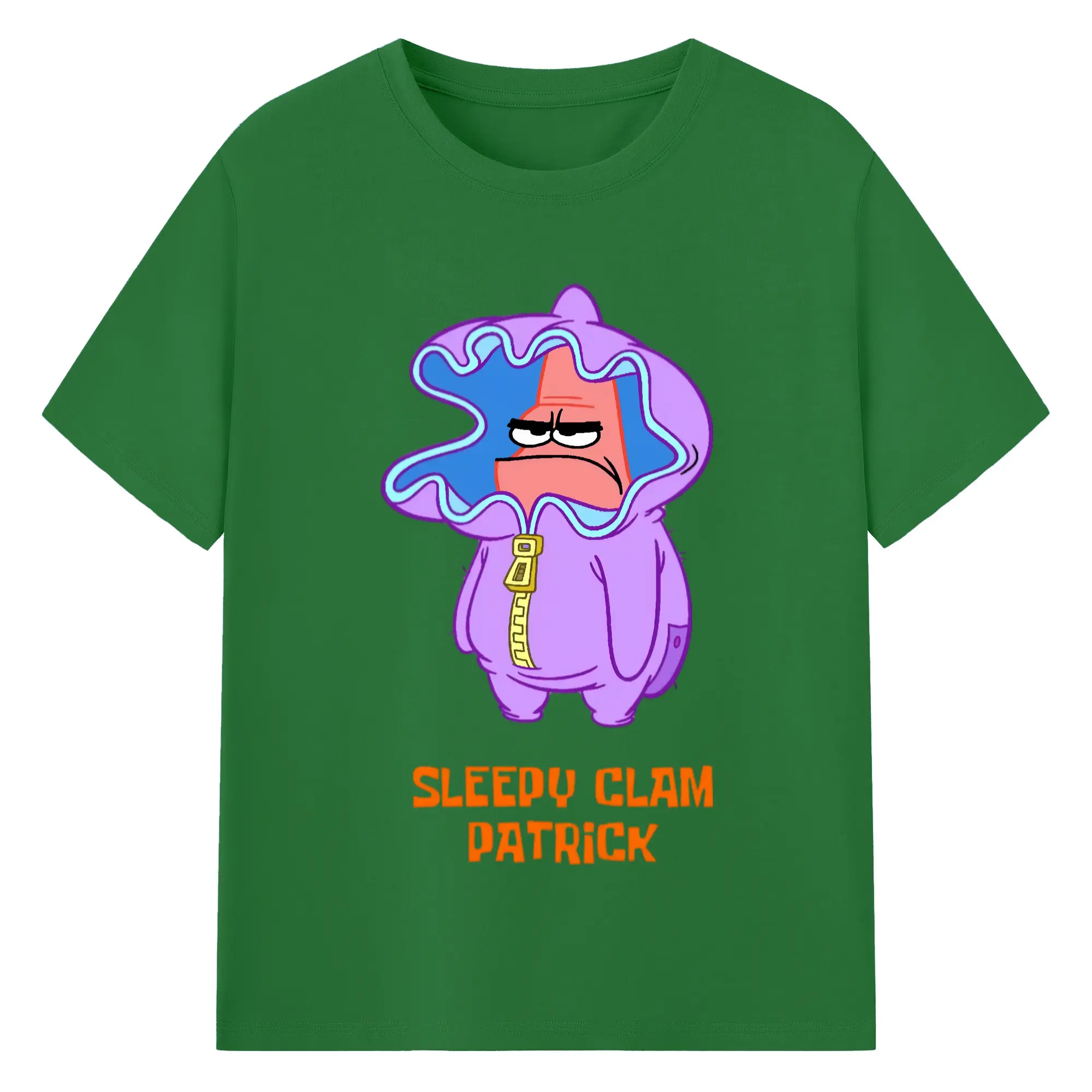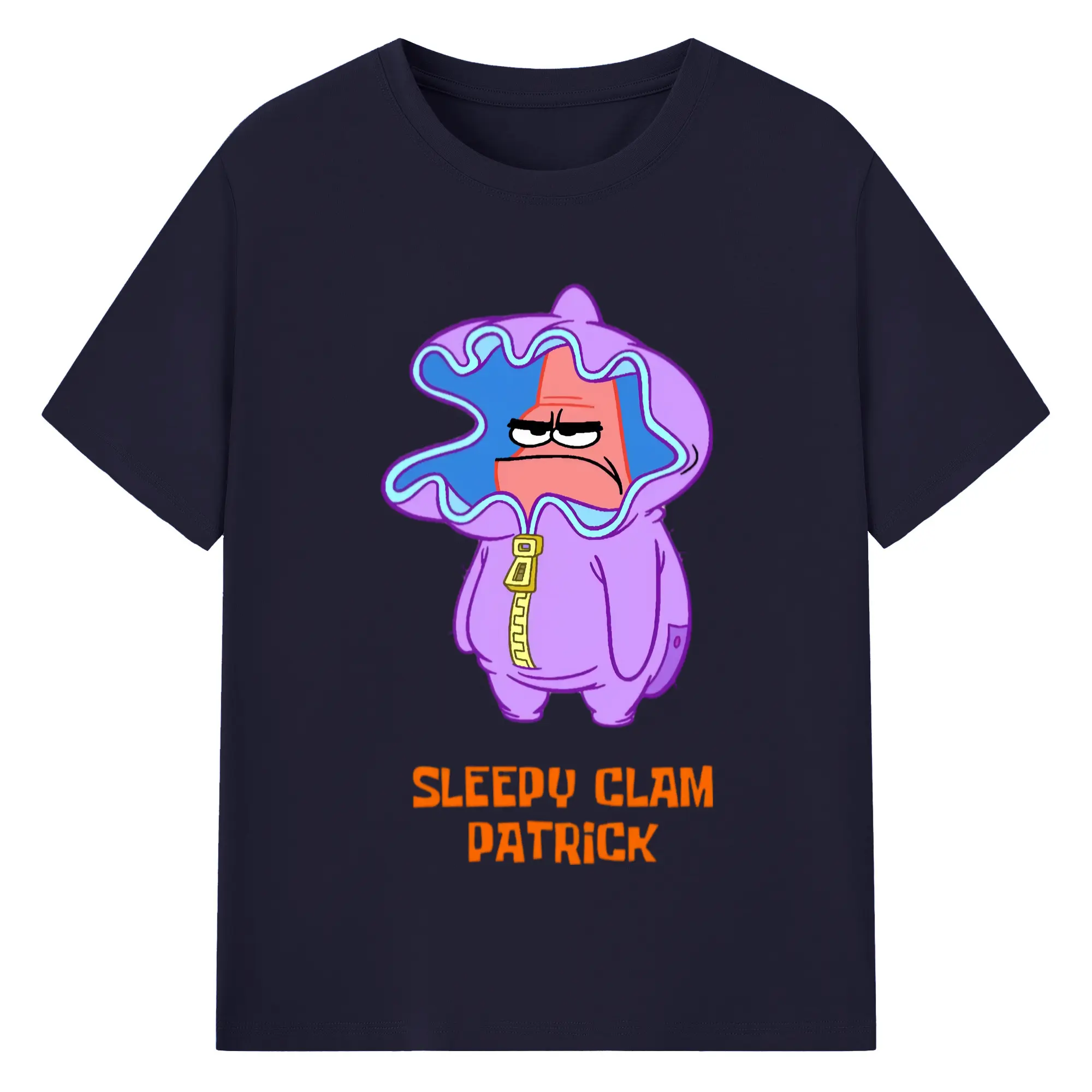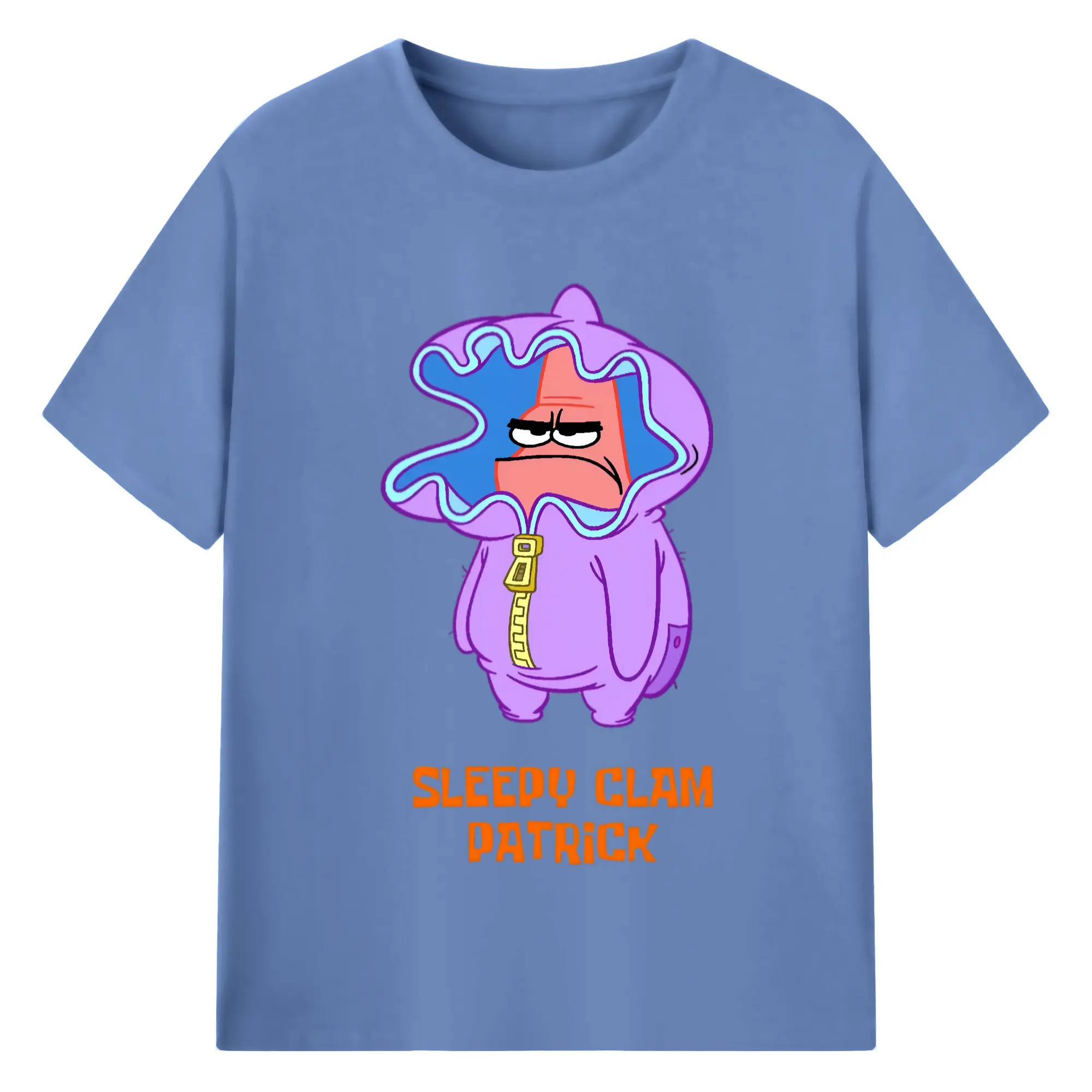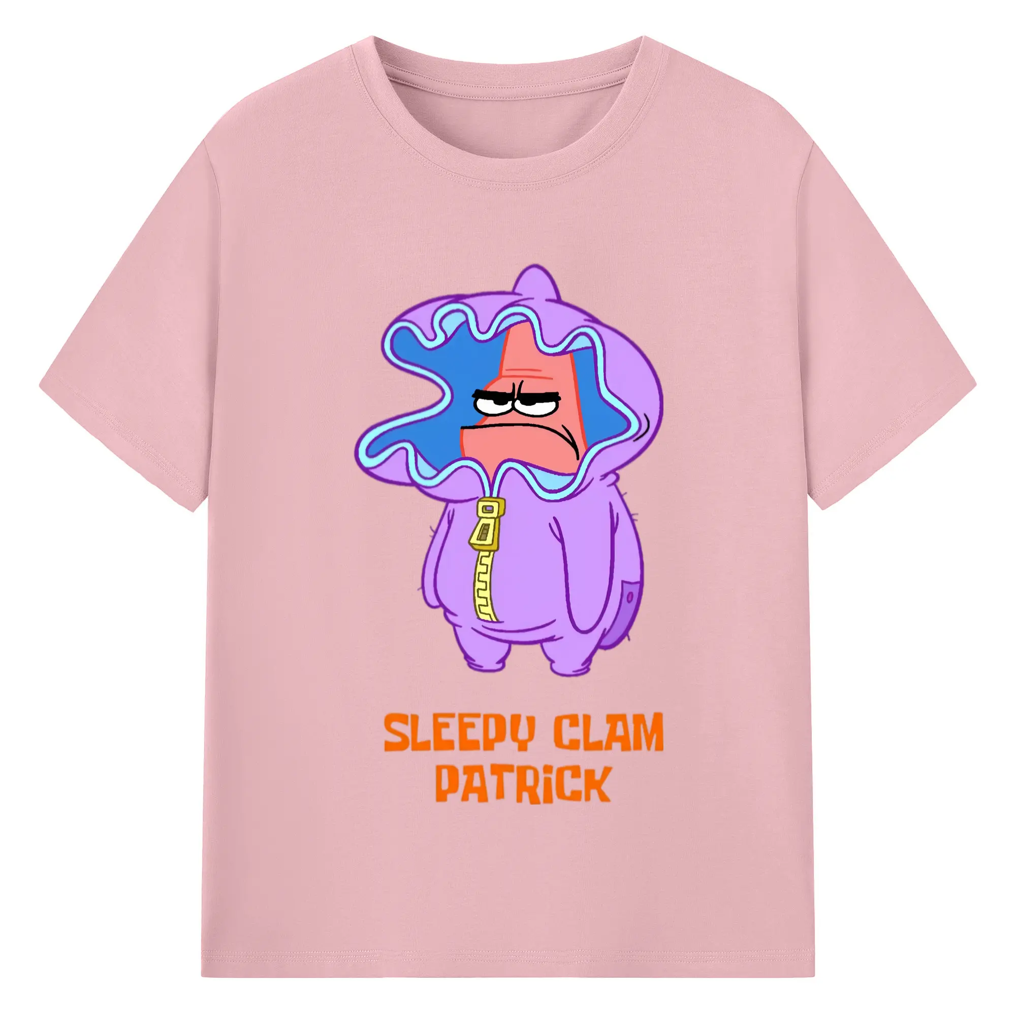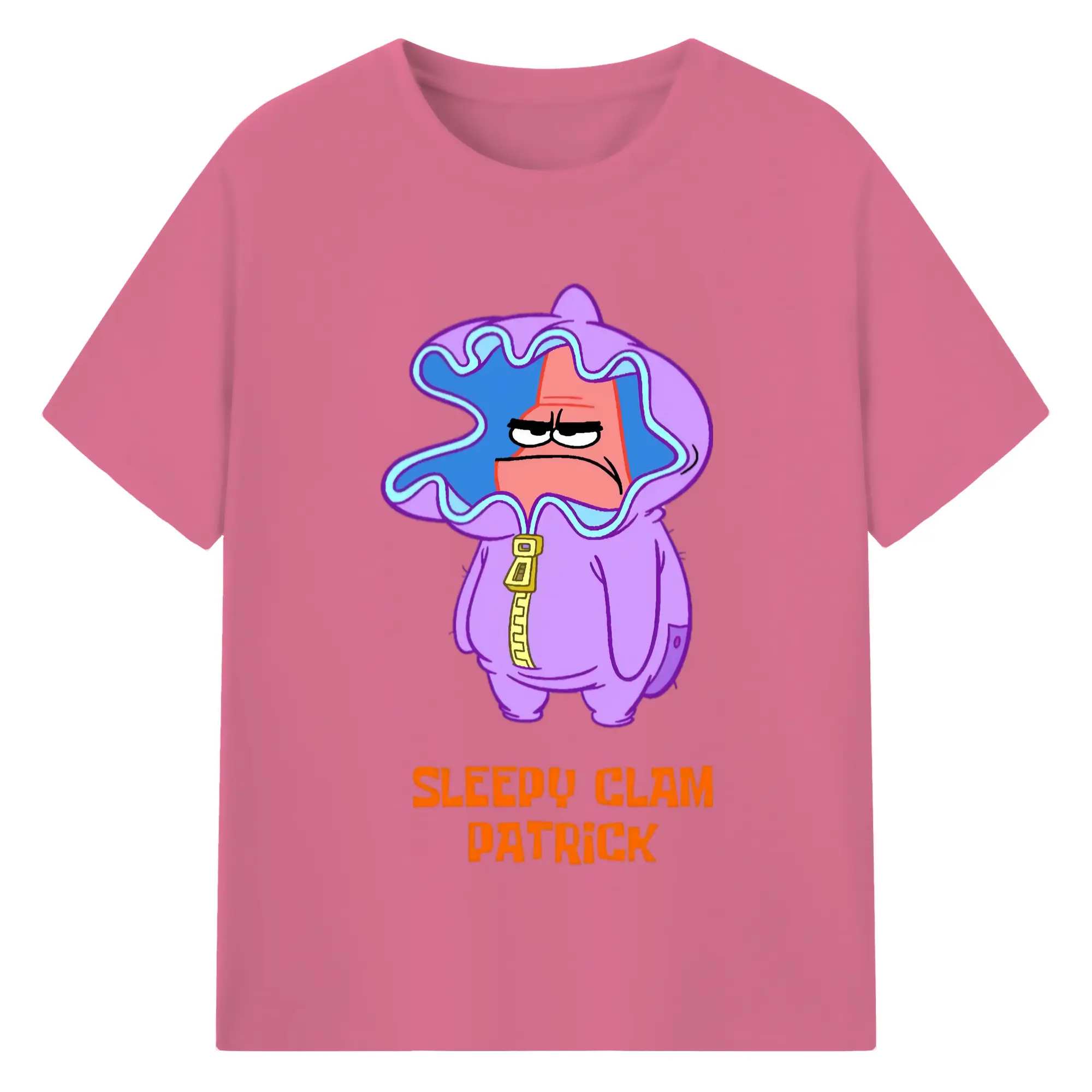 Spongebob patrick star sleepy clam t-shirt - 180g Cotton T-Shirt With Front Heat Transfer Print – Soft, Lightweight, Fitted Design – Comfortable Casual Wear For Sports & Everyday Use