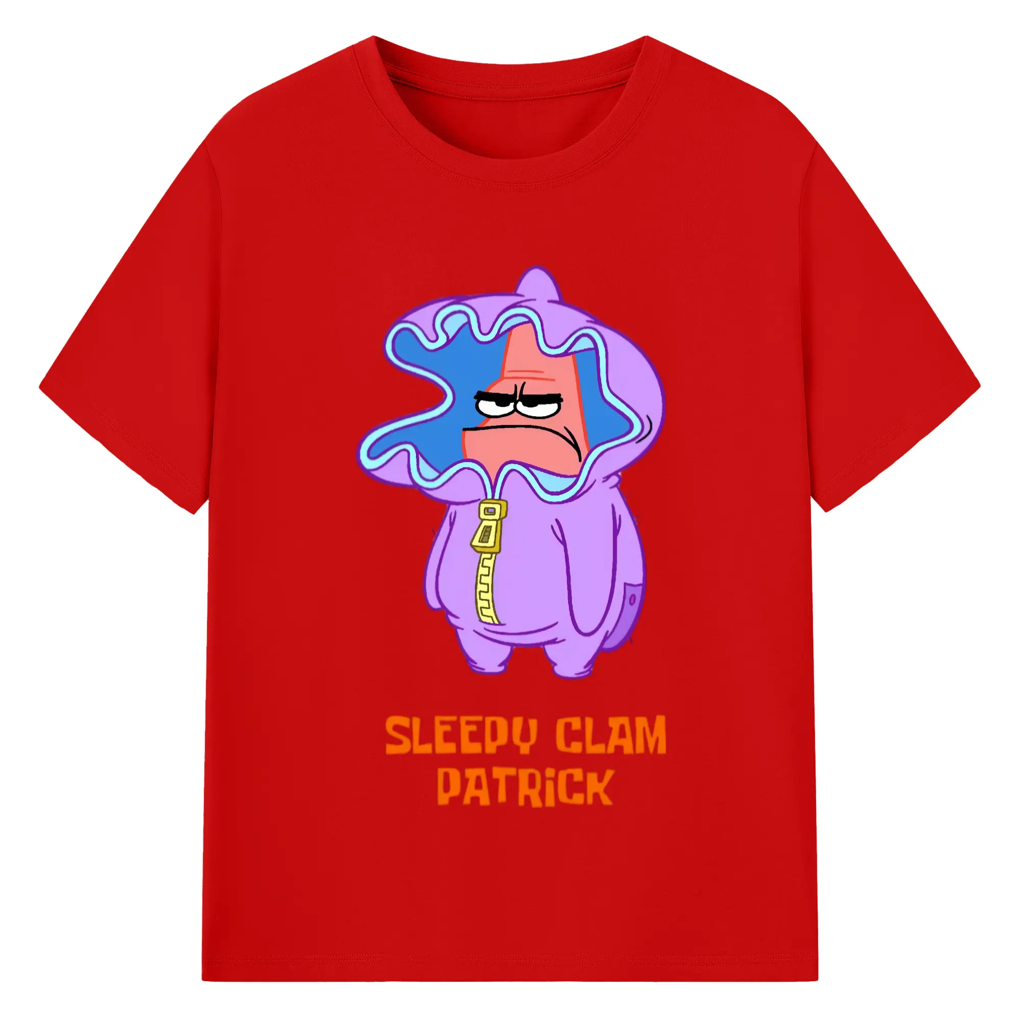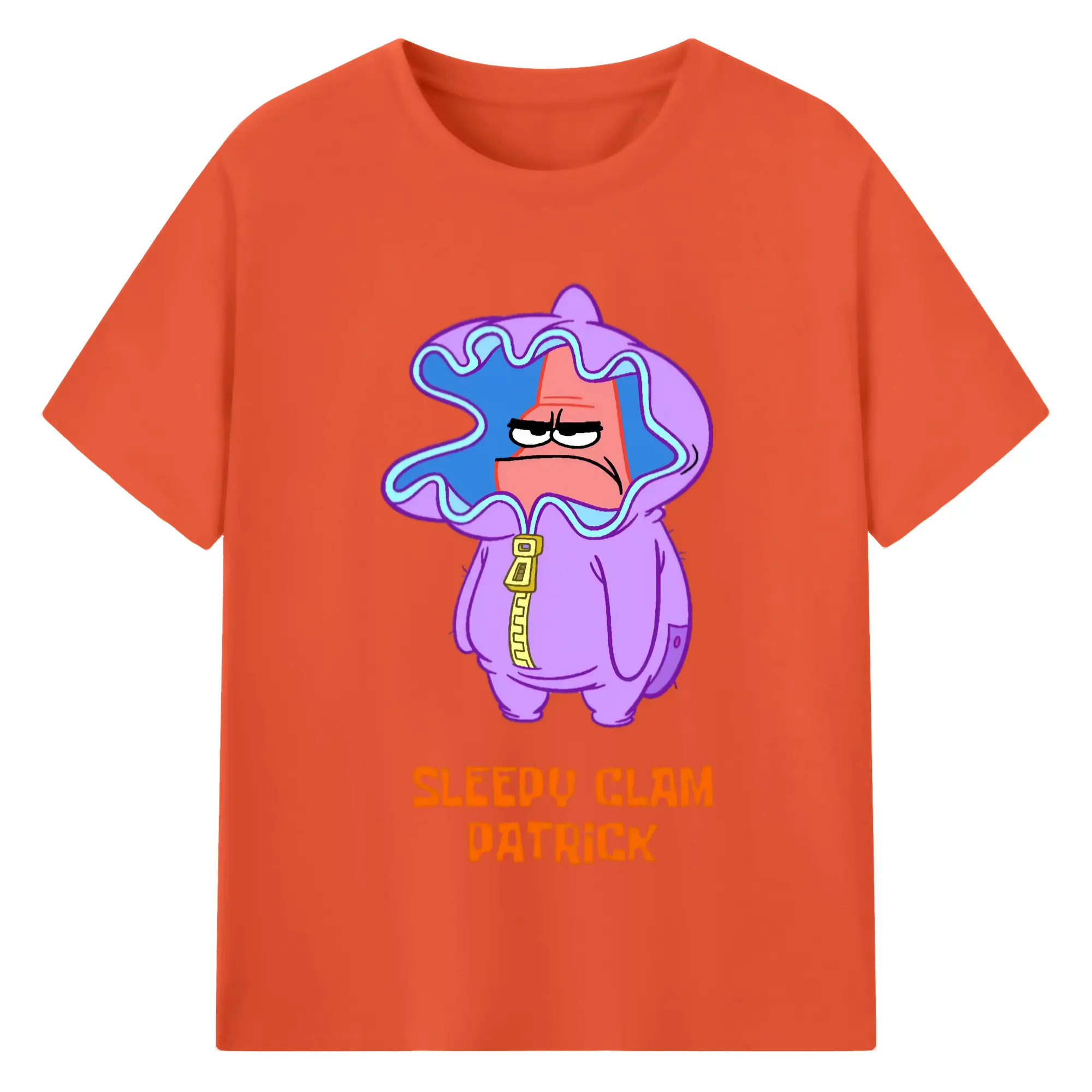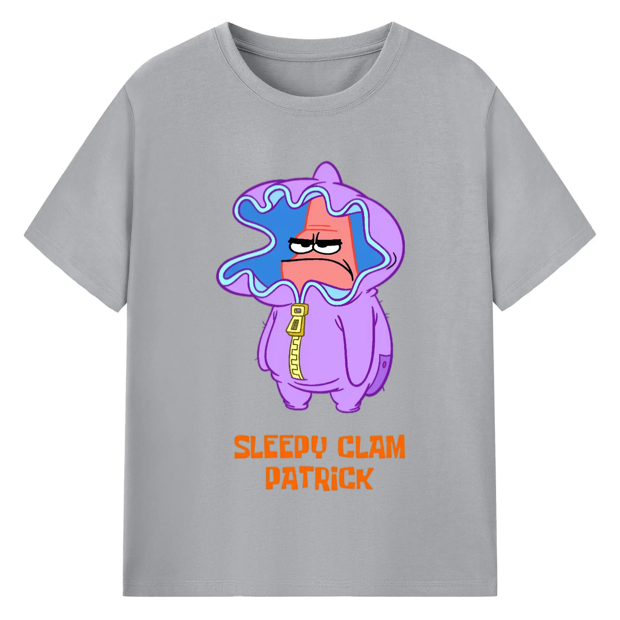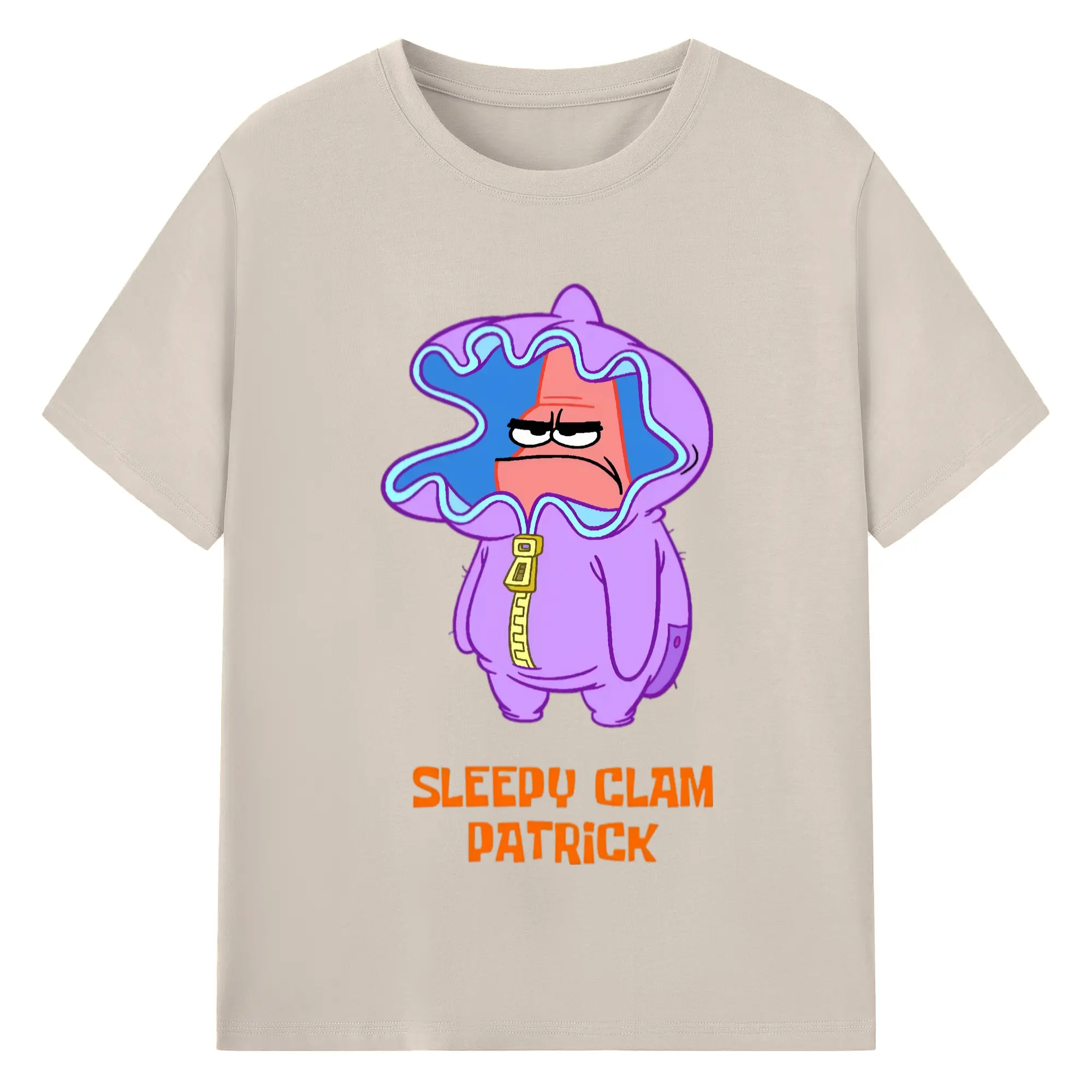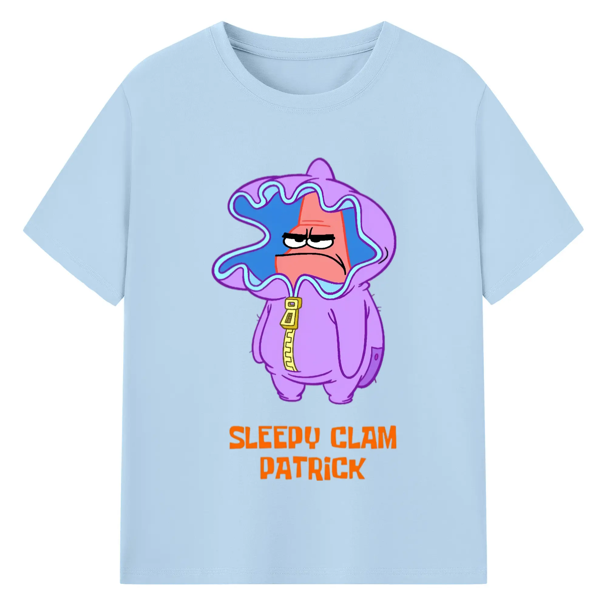 Spongebob patrick star sleepy clam t-shirt - 180g Cotton T-Shirt With Front Heat Transfer Print – Soft, Lightweight, Fitted Design – Comfortable Casual Wear For Sports & Everyday Use