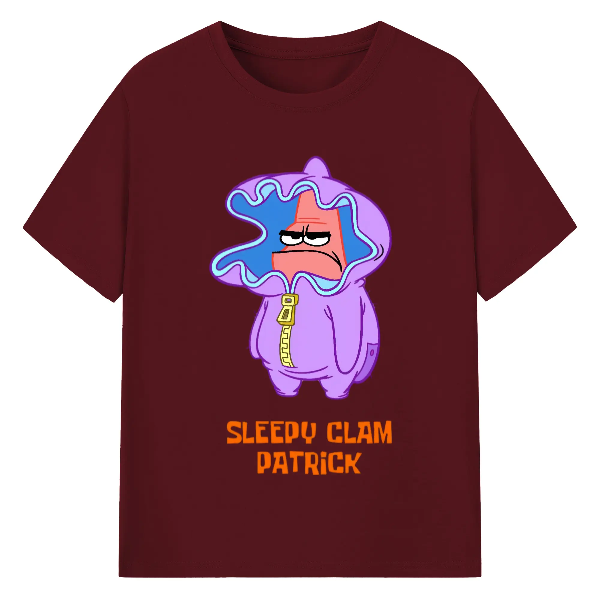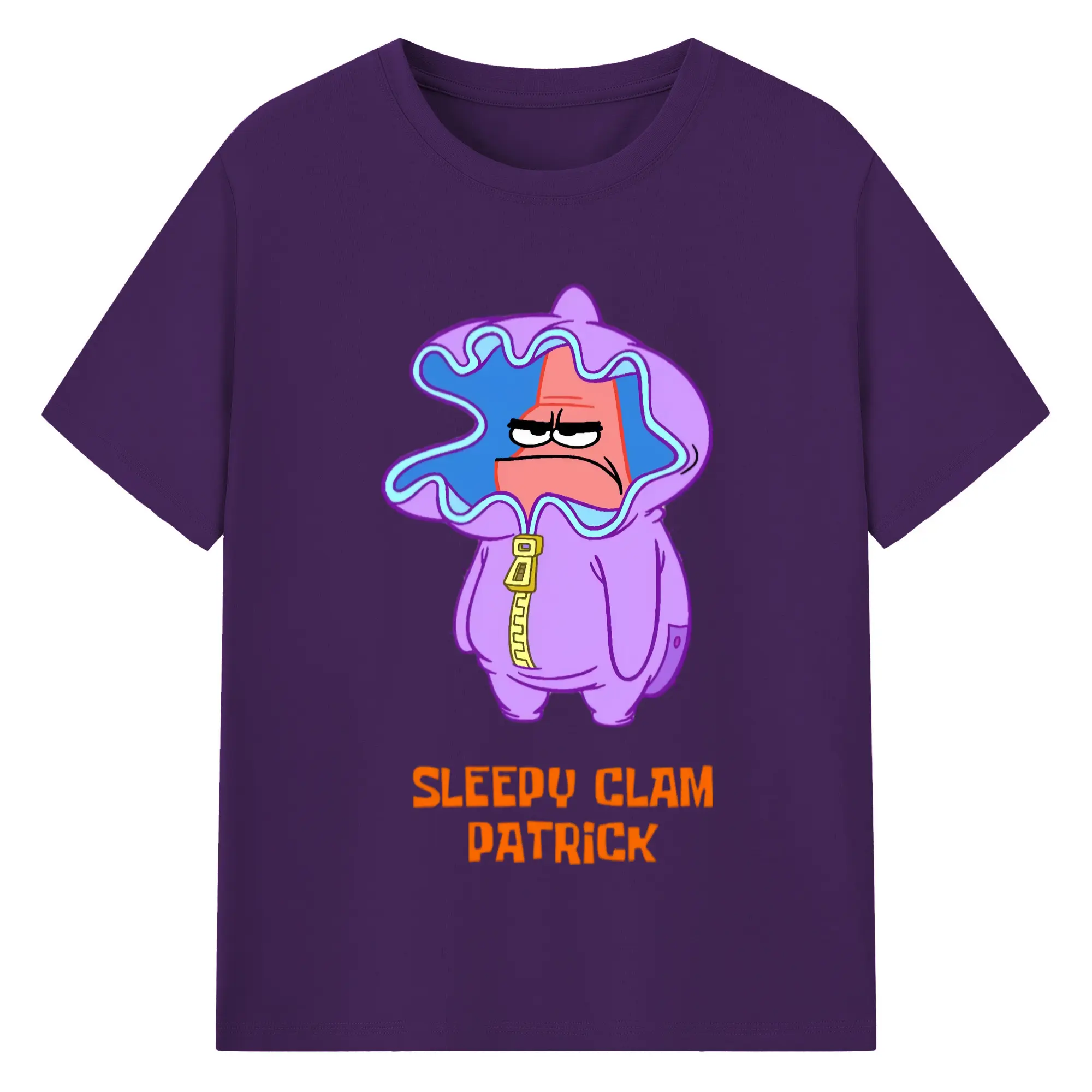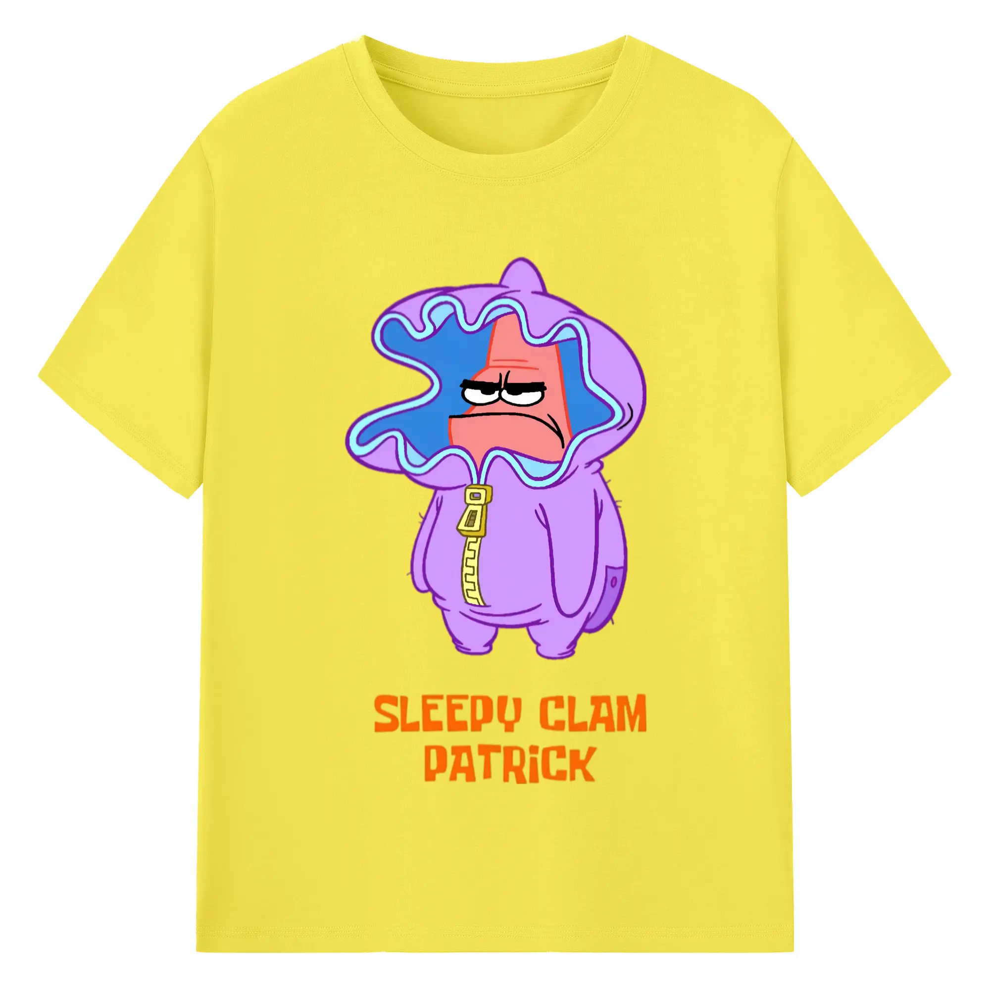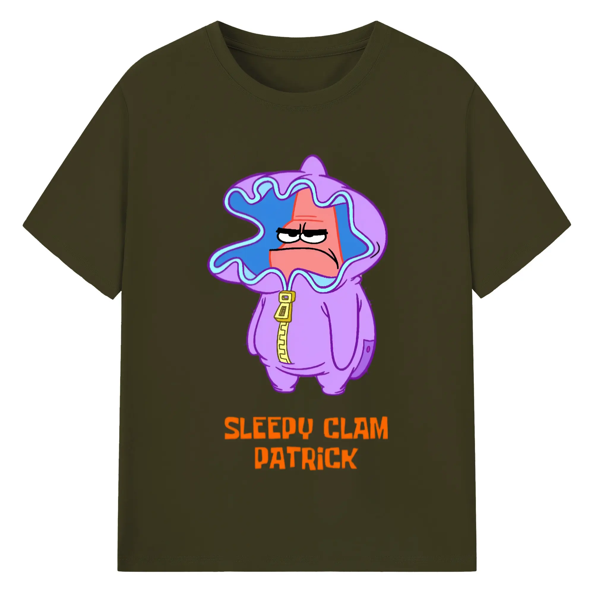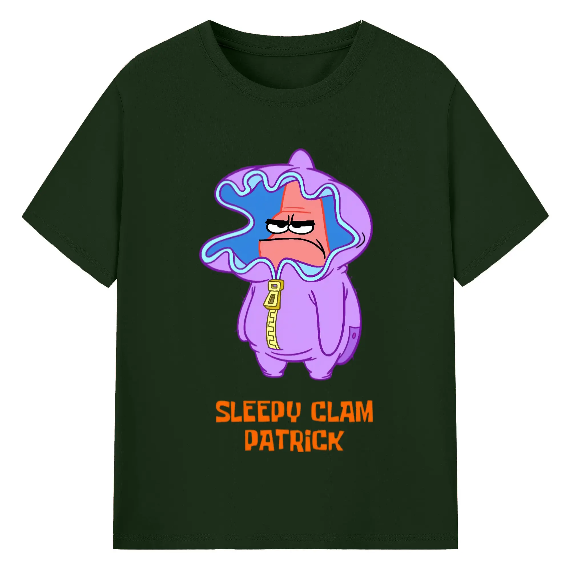 Spongebob patrick star sleepy clam t-shirt - 180g Cotton T-Shirt With Front Heat Transfer Print – Soft, Lightweight, Fitted Design – Comfortable Casual Wear For Sports & Everyday Use