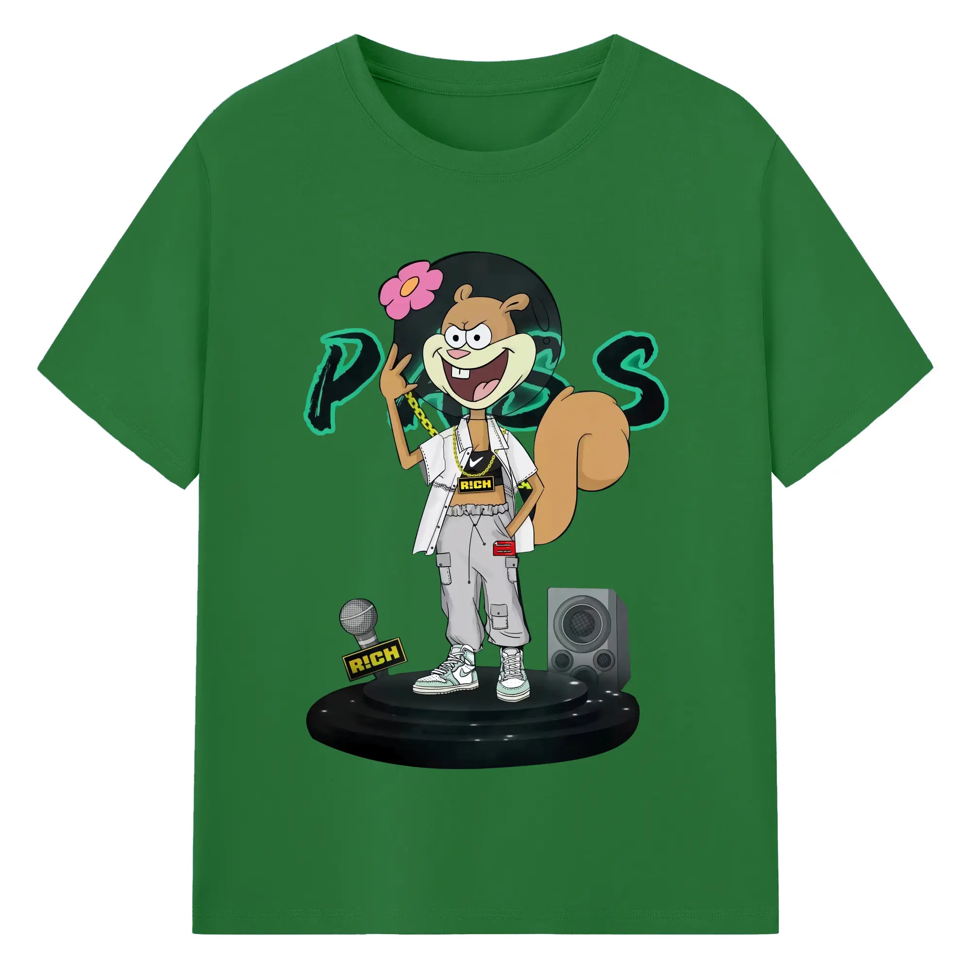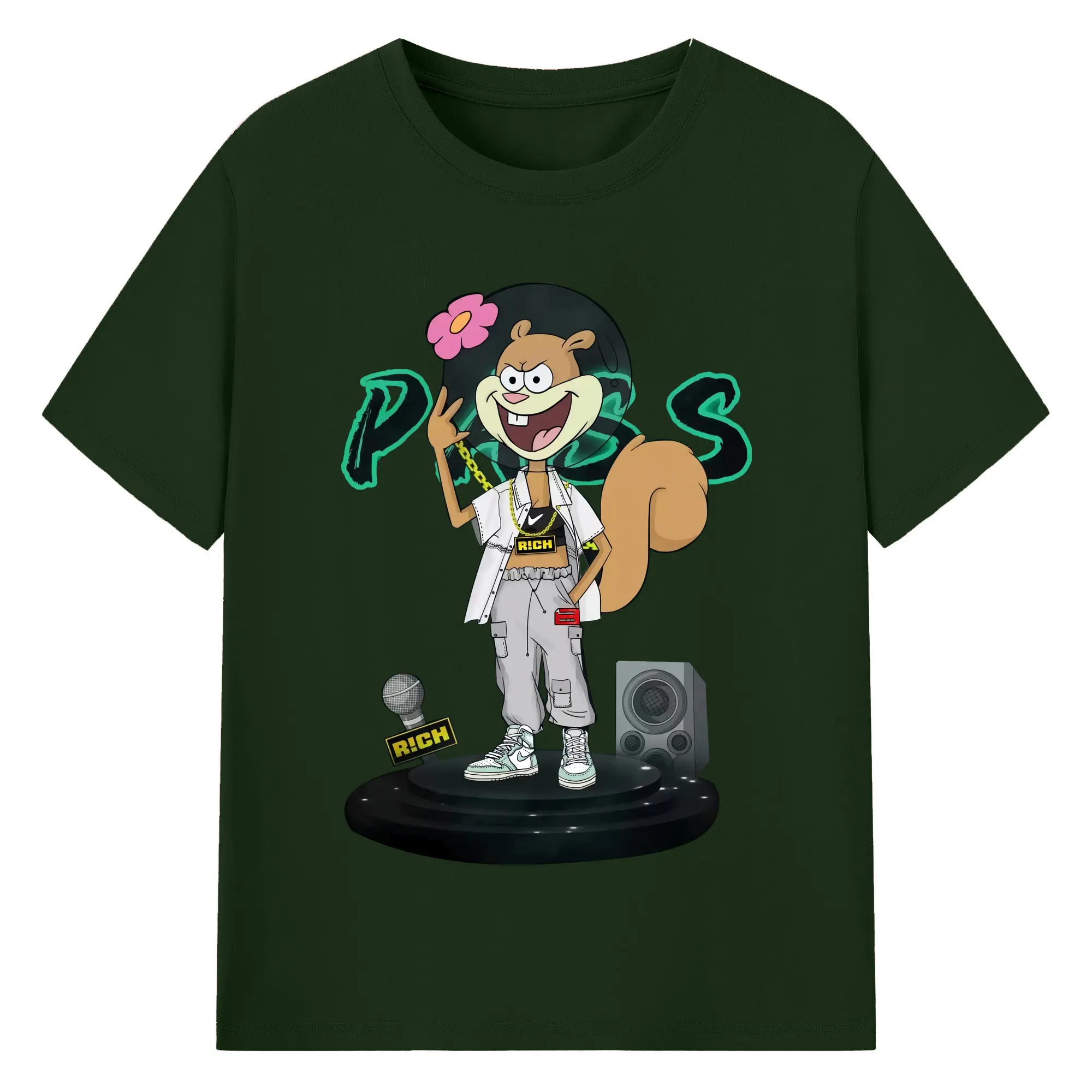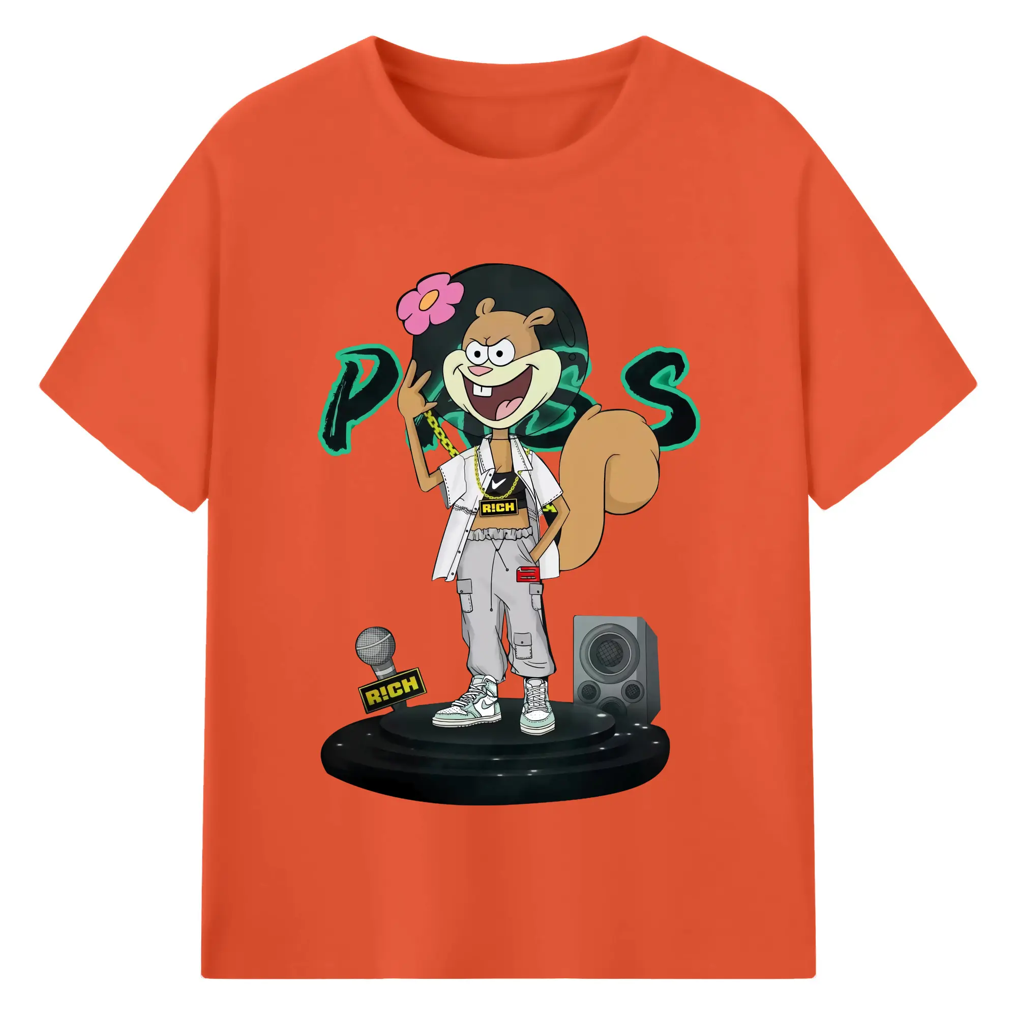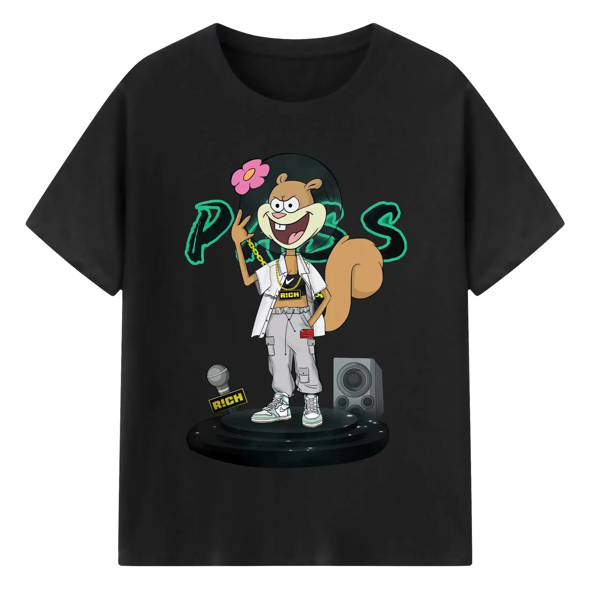 SpongeBob Sandy Cheeks hip hop Graphic Tee - 180g Cotton T-Shirt With Front Heat Transfer Print – Soft, Lightweight, Fitted Design – Comfortable Casual Wear For Sports & Everyday Use