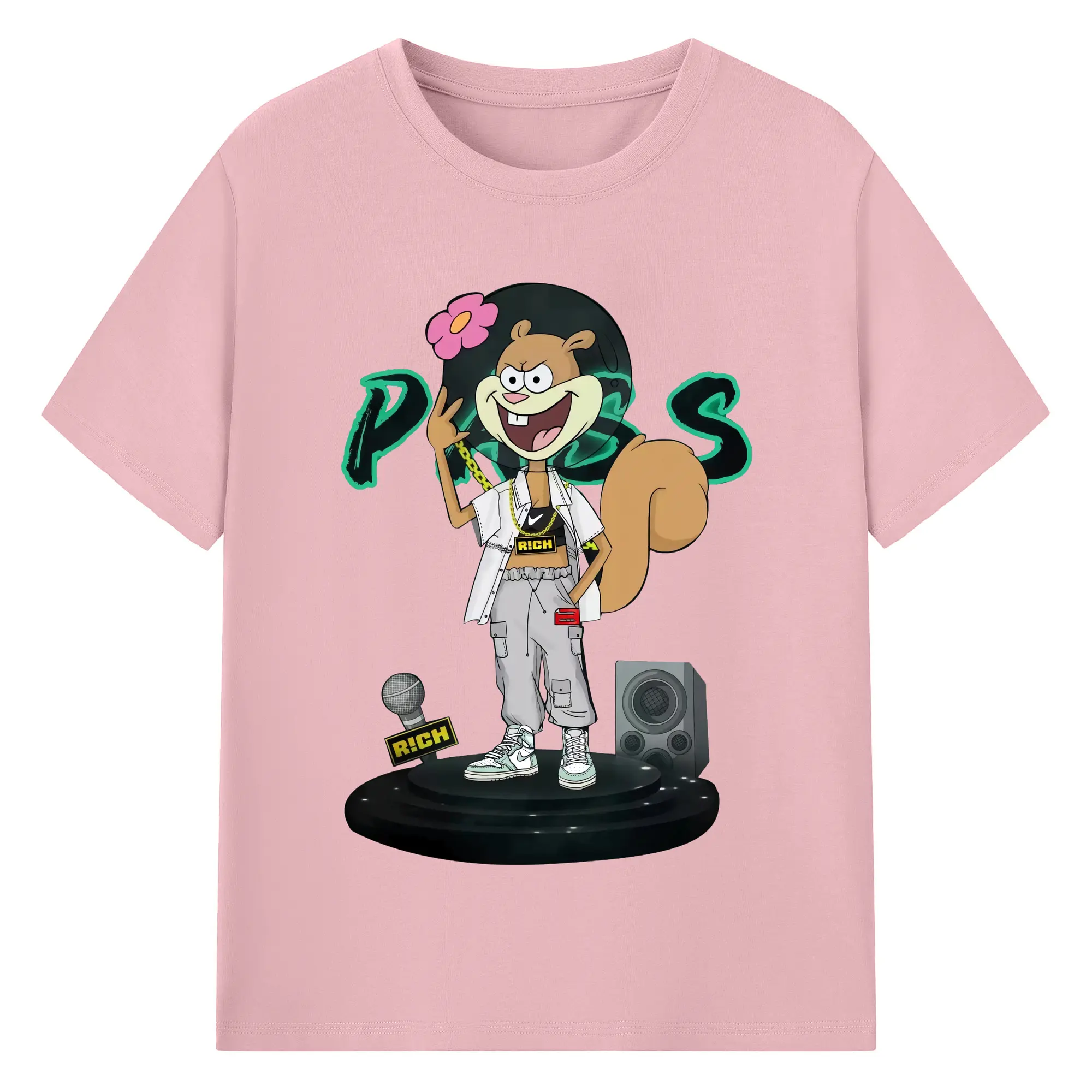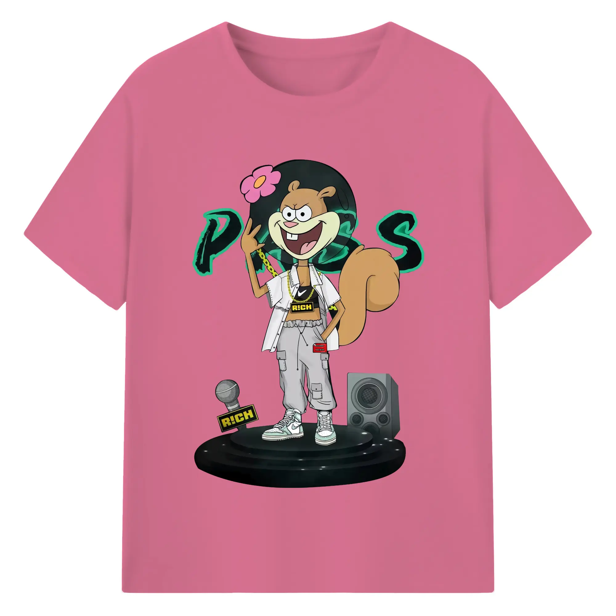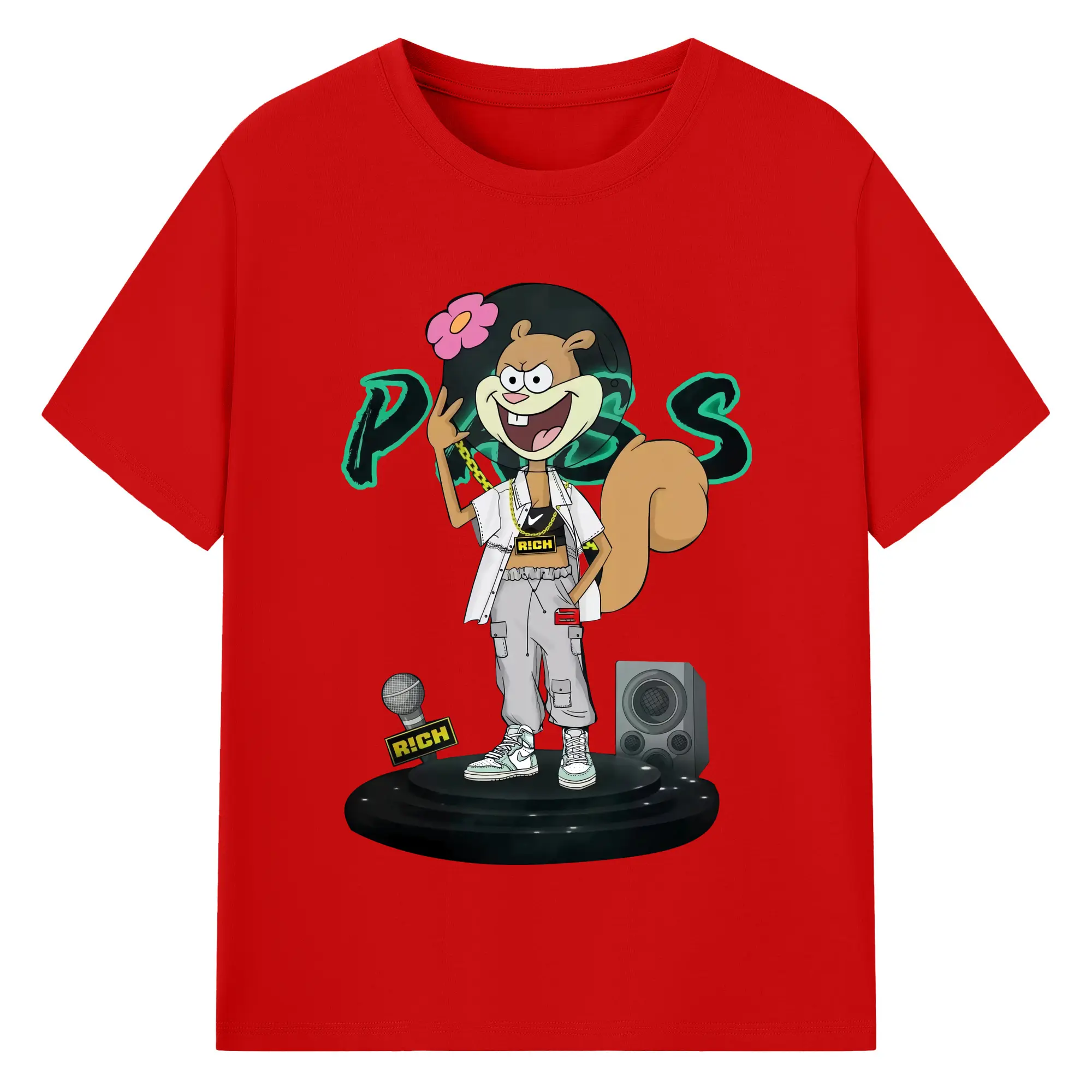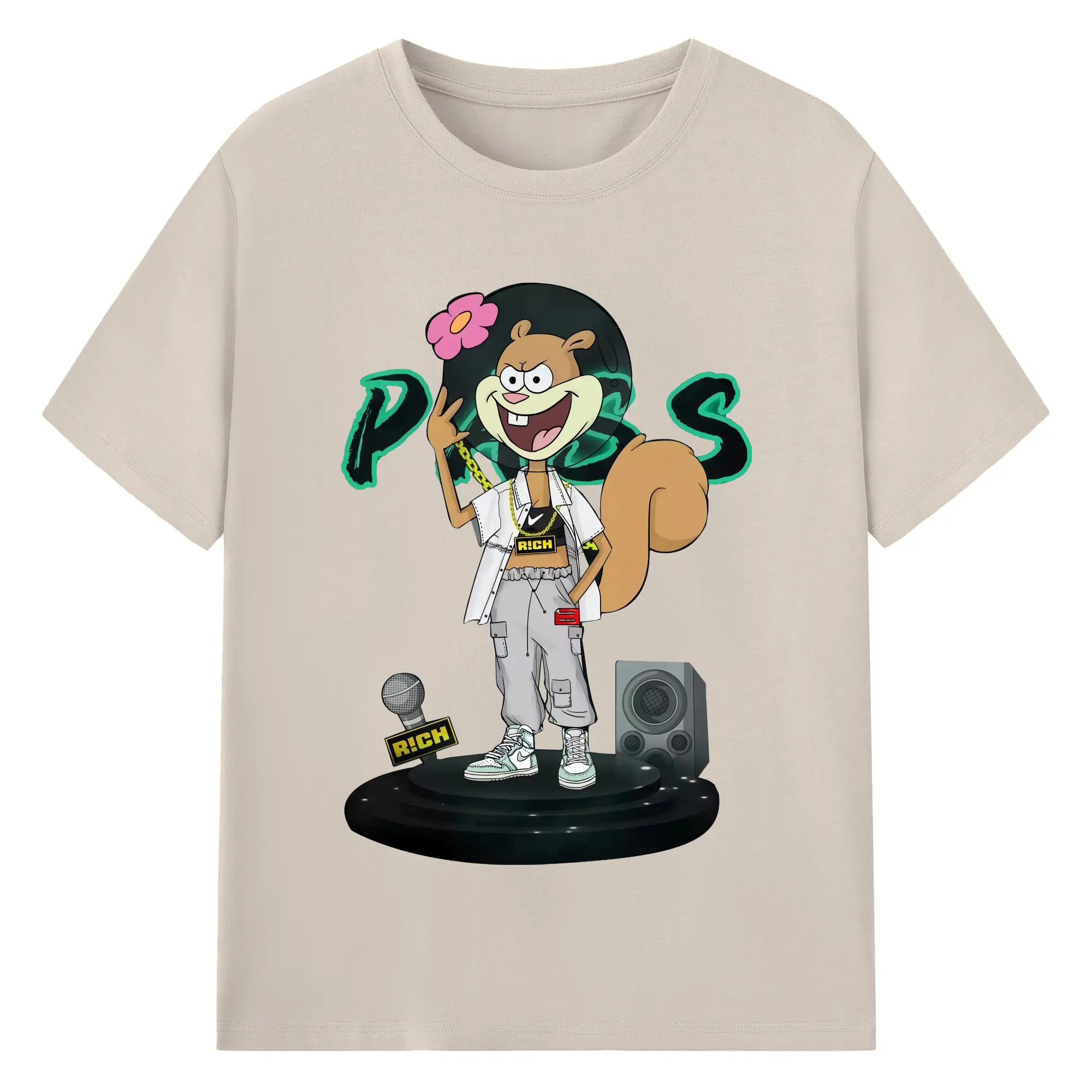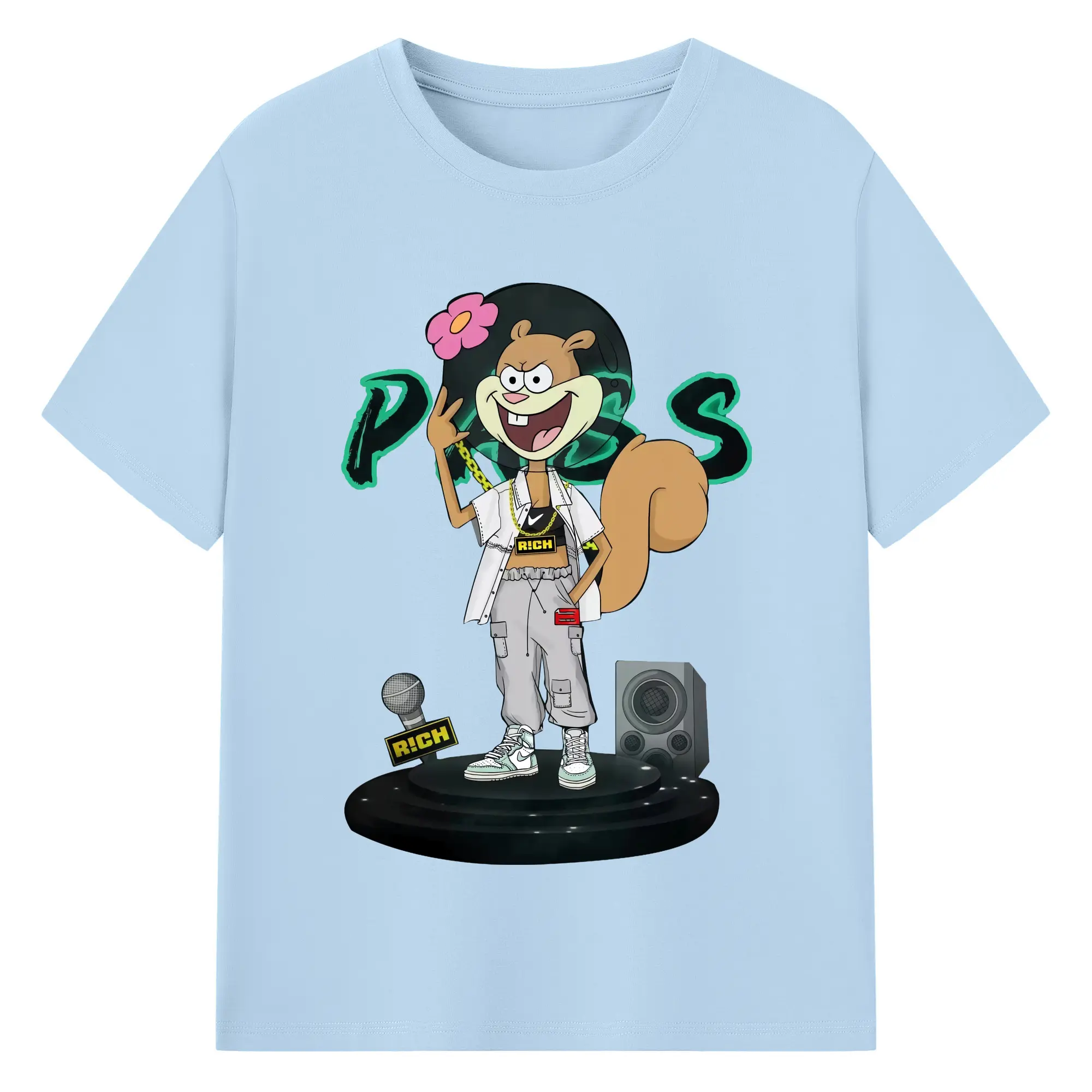 SpongeBob Sandy Cheeks hip hop Graphic Tee - 180g Cotton T-Shirt With Front Heat Transfer Print – Soft, Lightweight, Fitted Design – Comfortable Casual Wear For Sports & Everyday Use