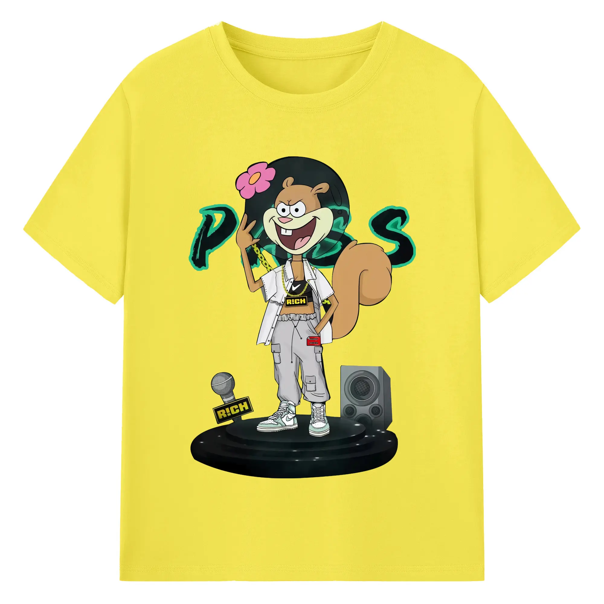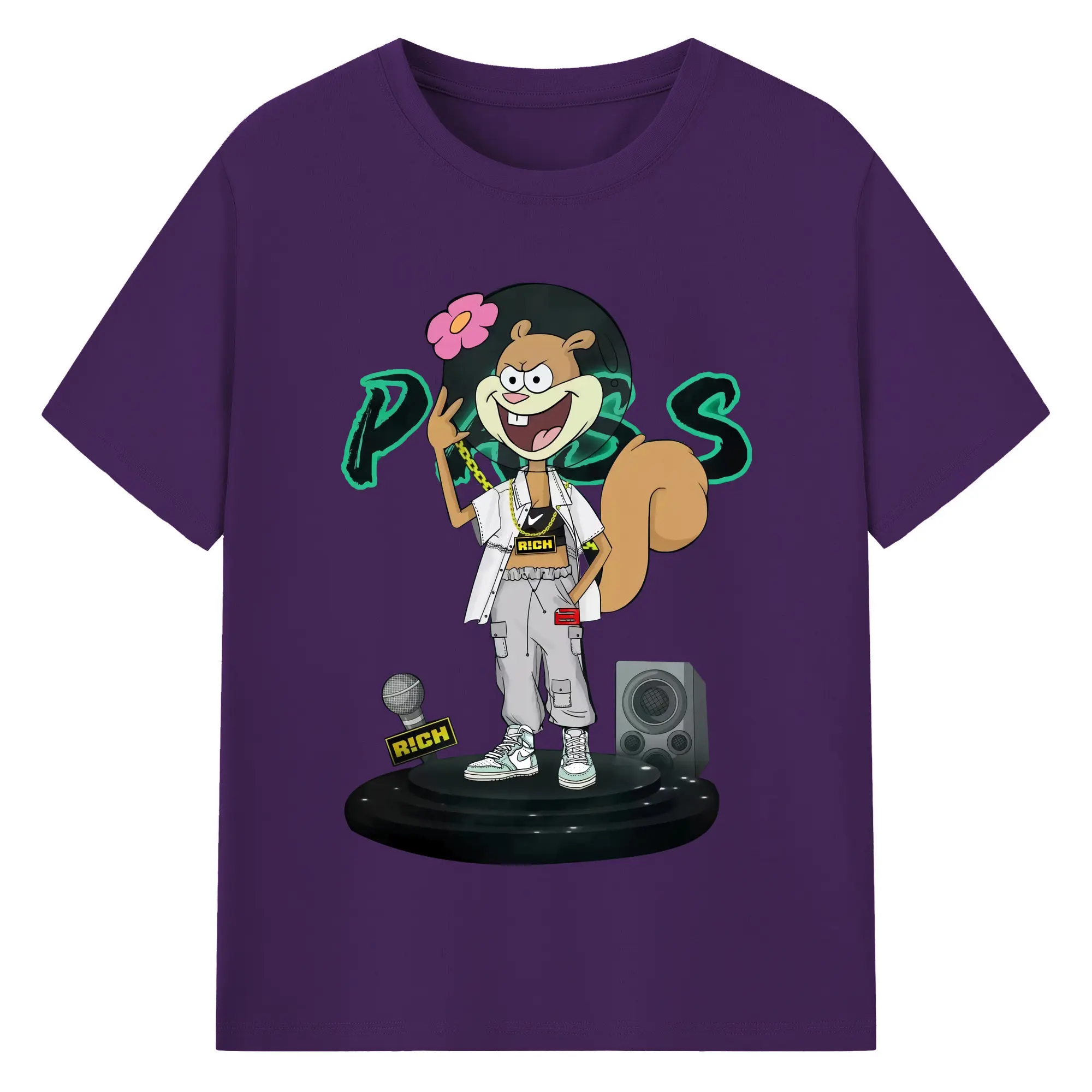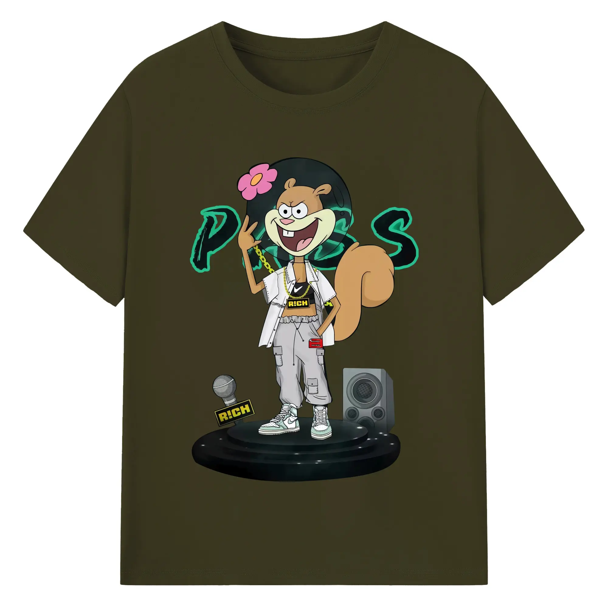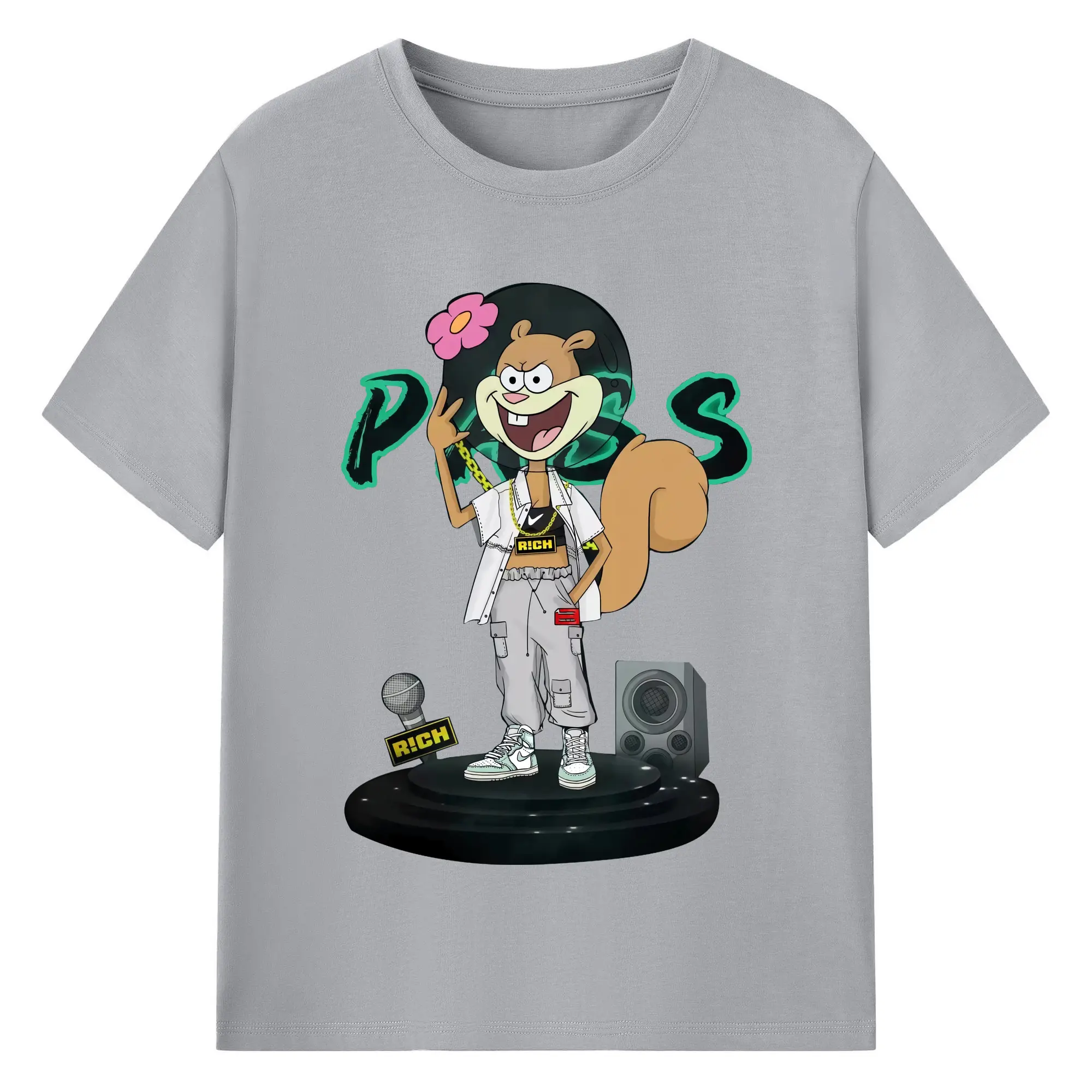 SpongeBob Sandy Cheeks hip hop Graphic Tee - 180g Cotton T-Shirt With Front Heat Transfer Print – Soft, Lightweight, Fitted Design – Comfortable Casual Wear For Sports & Everyday Use