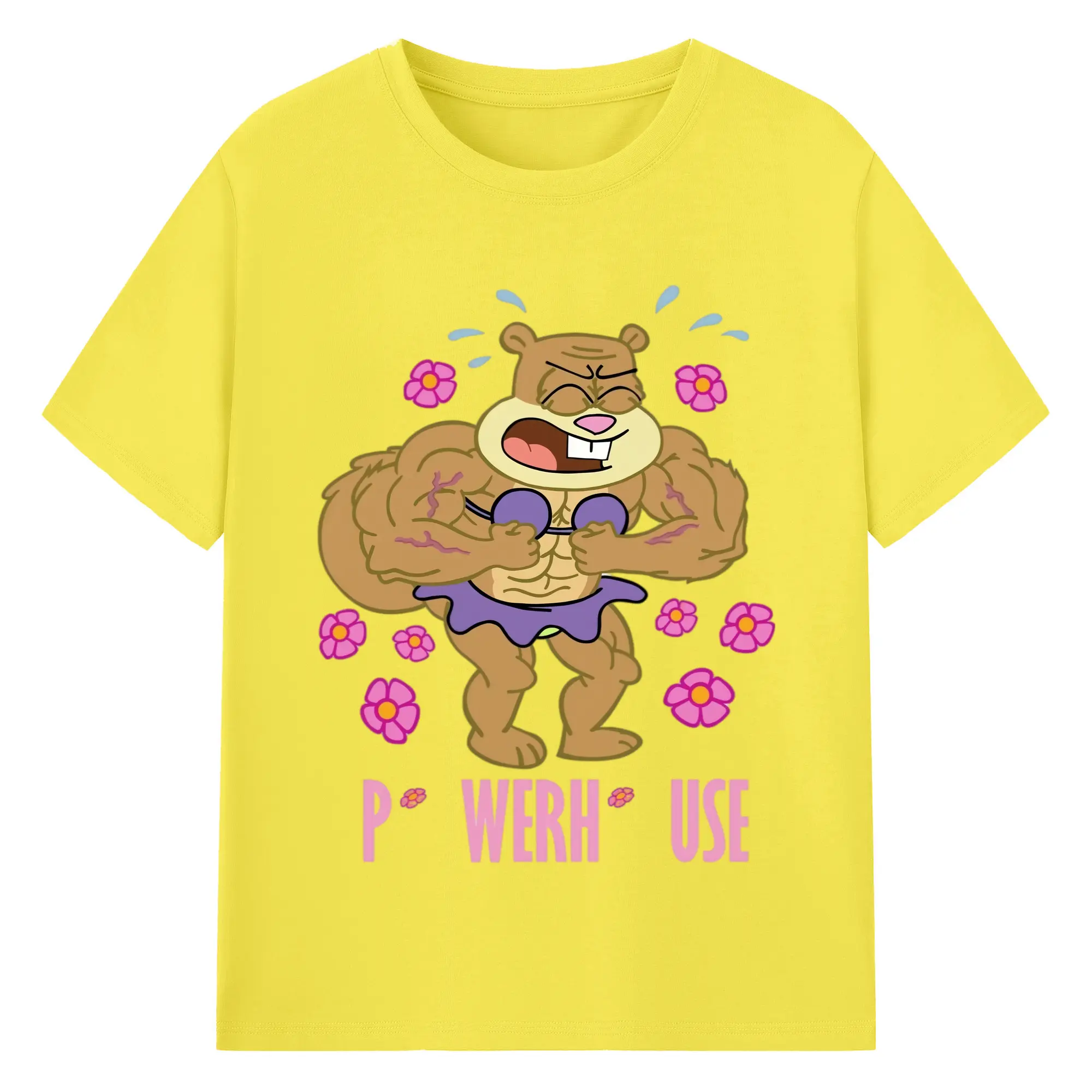 SpongeBob Sandy Cheeks show power Graphic Tee - 180g Cotton T-Shirt With Front Heat Transfer Print – Soft, Lightweight, Fitted Design – Comfortable Casual Wear For Sports & Everyday Use