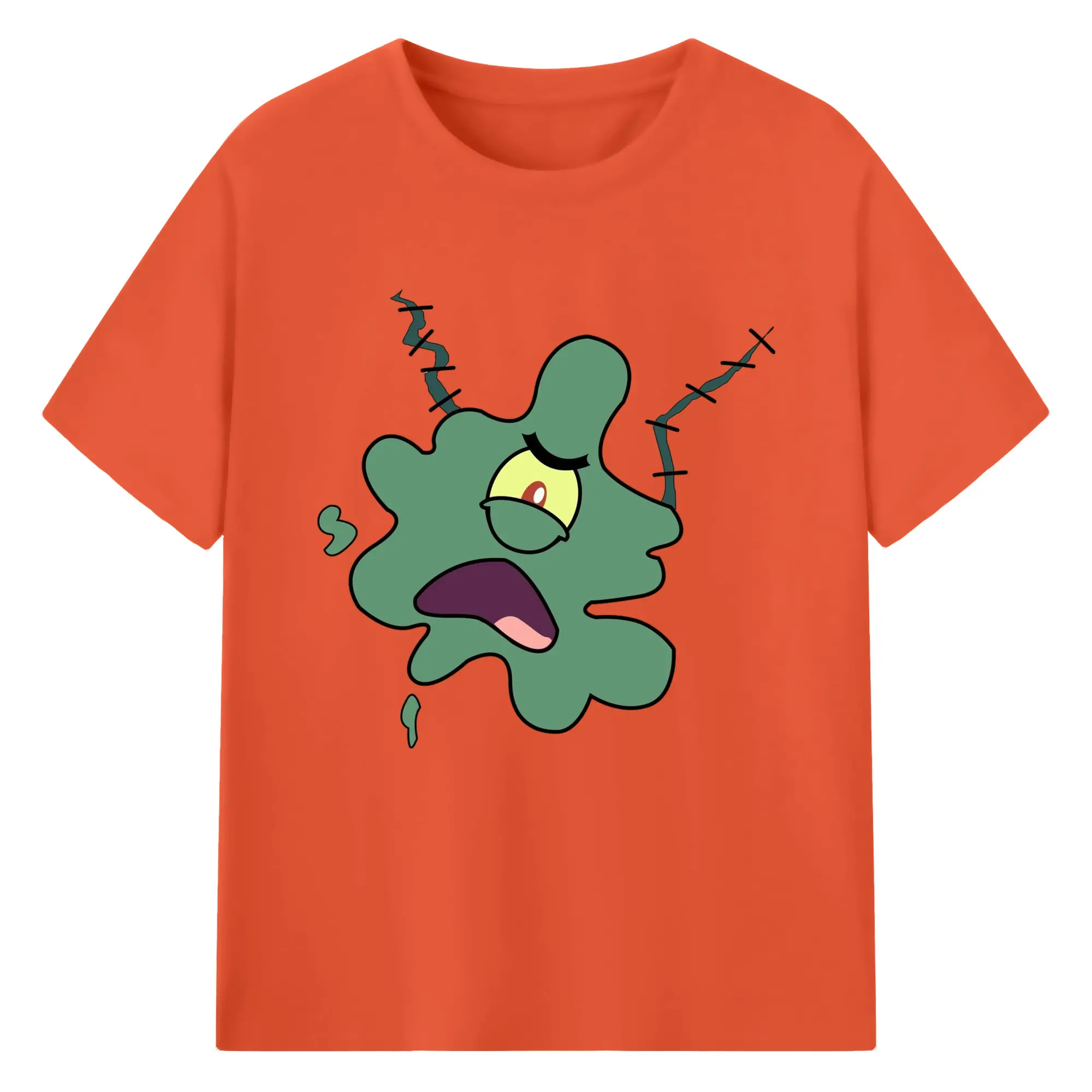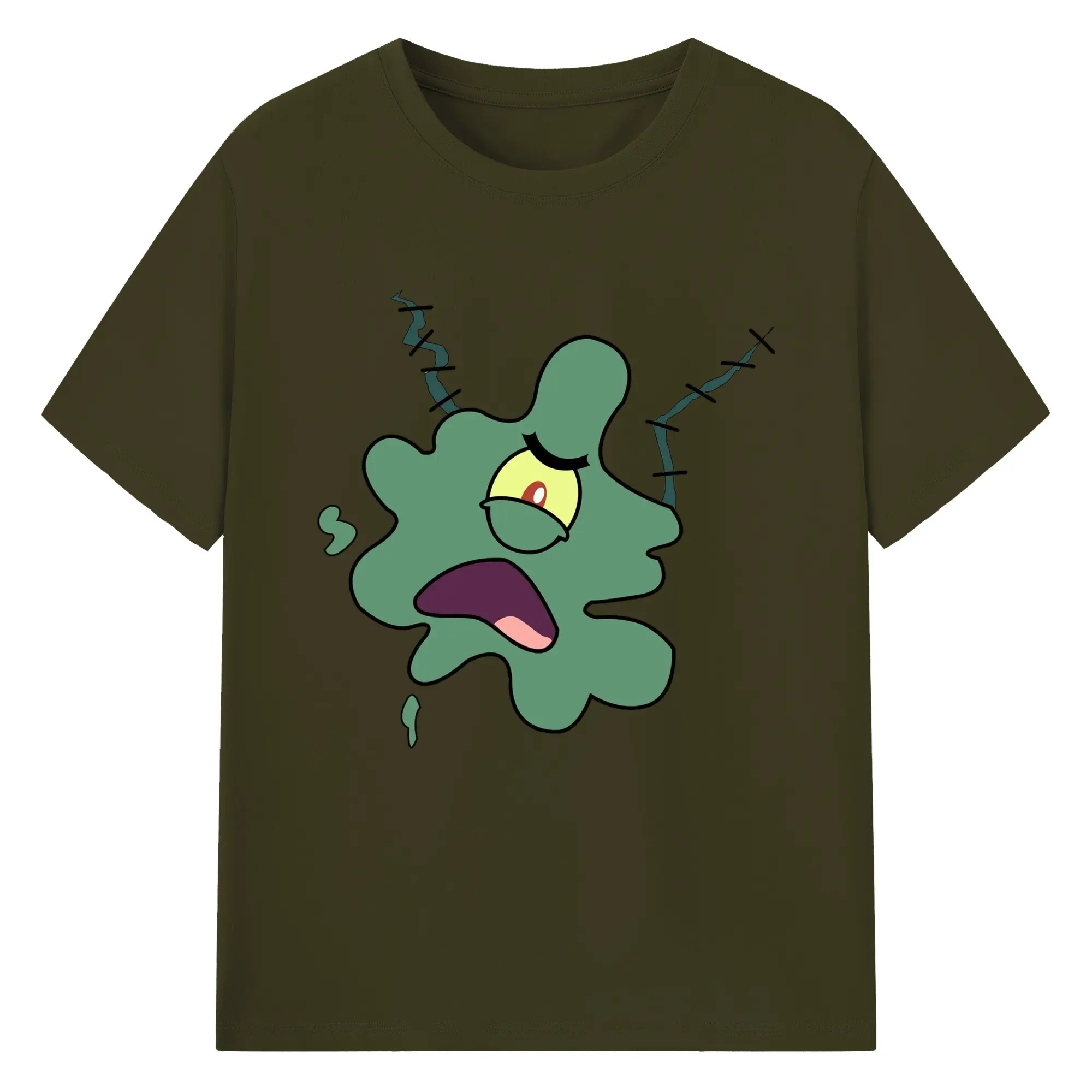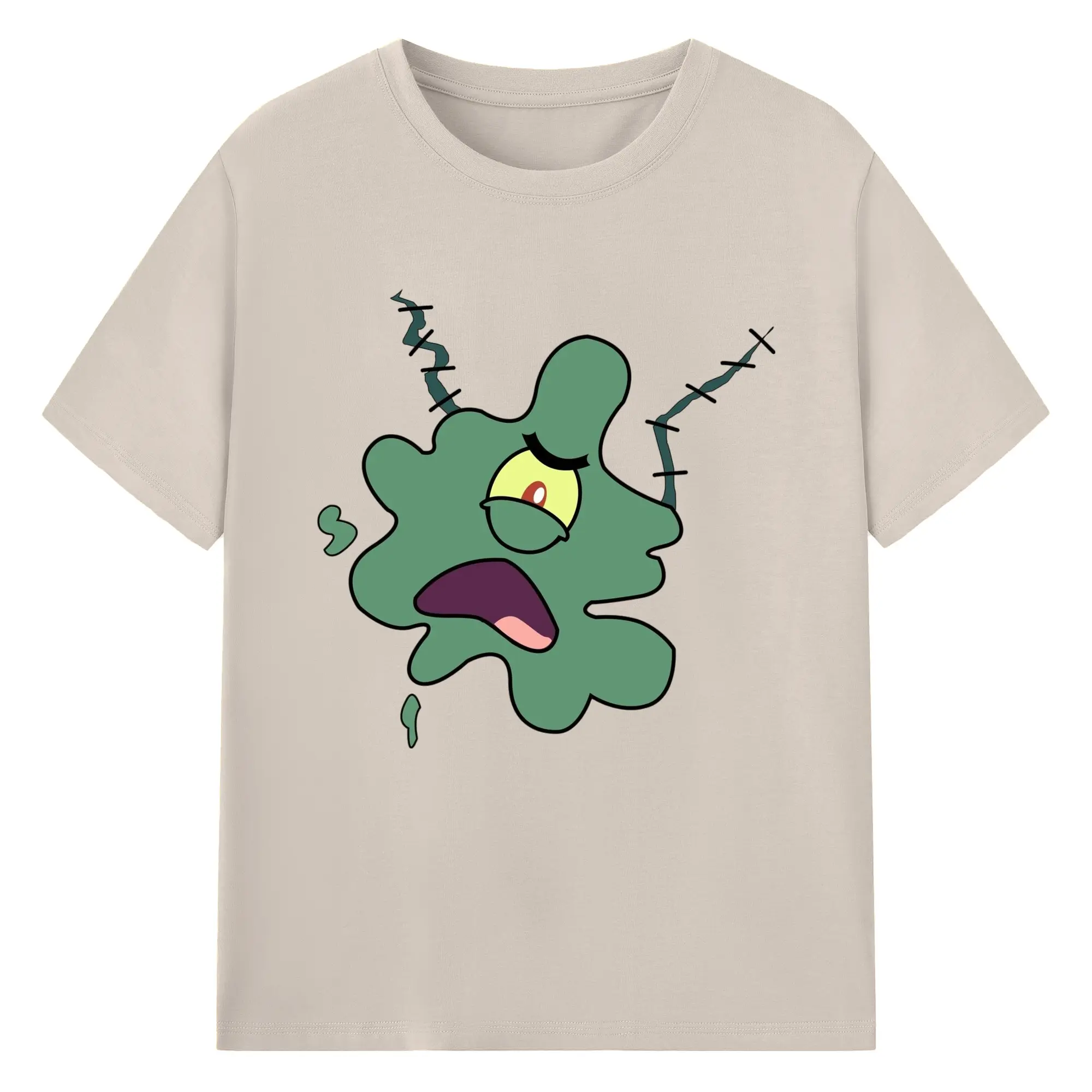 Spongebob Sheldon J. Plankton flaser mudface tee - 180g Cotton T-Shirt With Front Heat Transfer Print – Soft, Lightweight, Fitted Design – Comfortable Casual Wear For Sports & Everyday Use