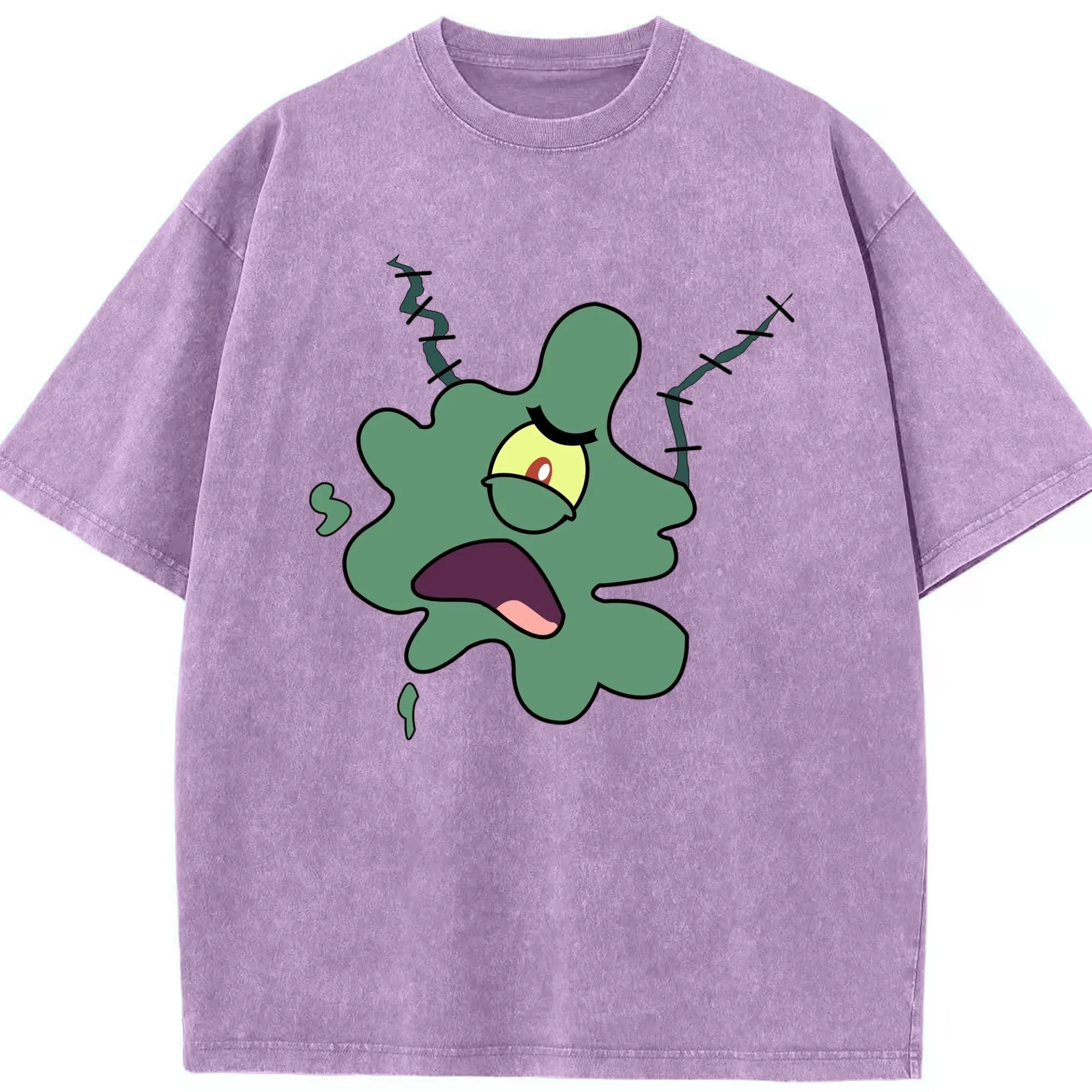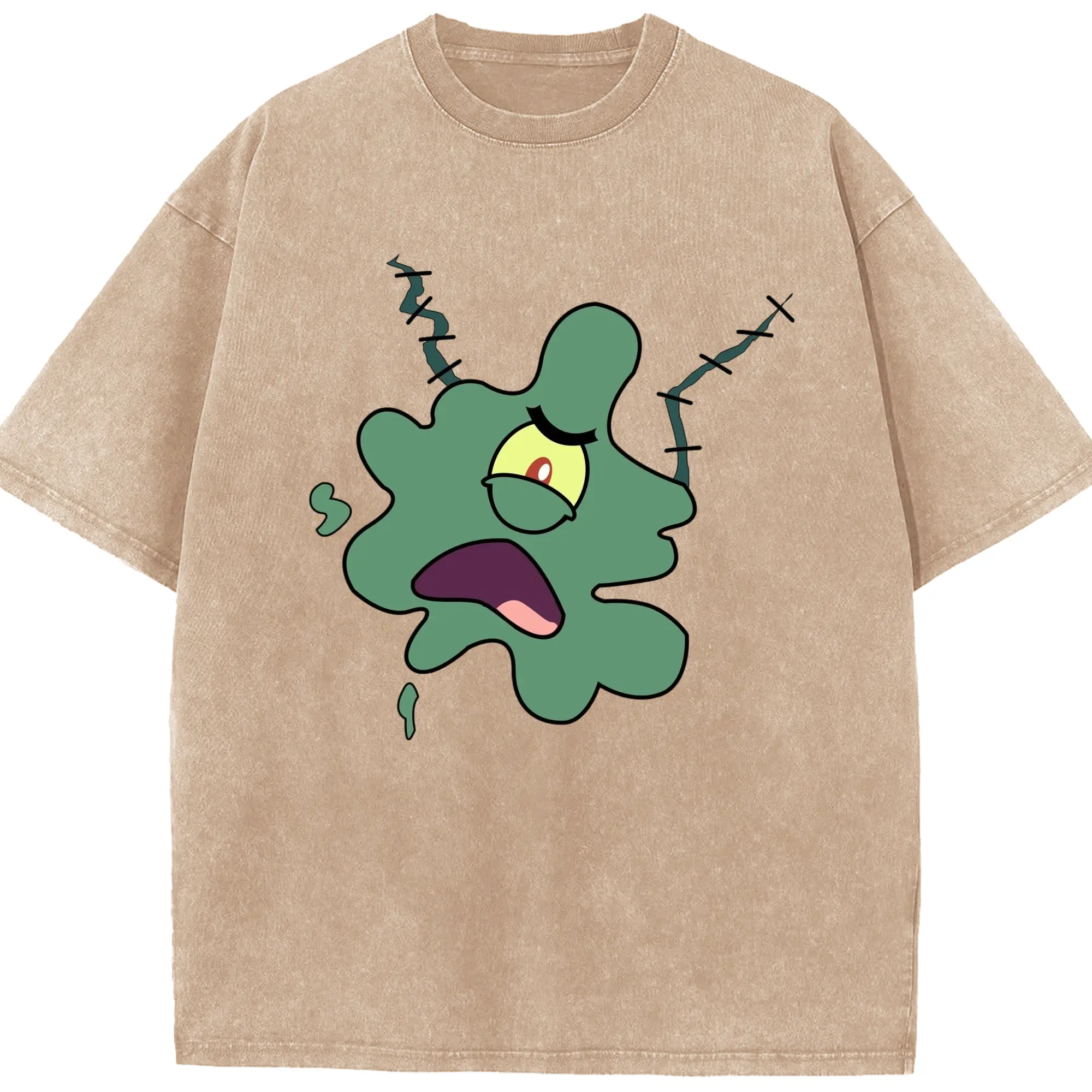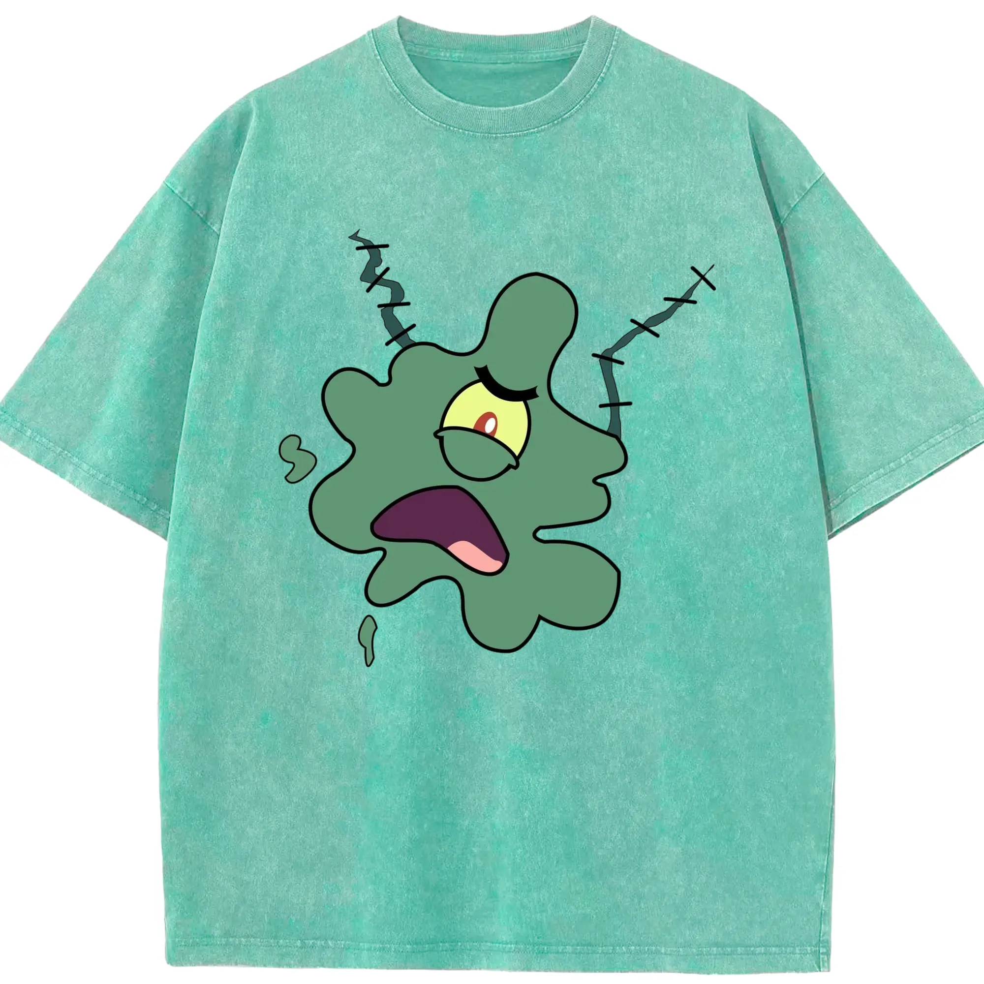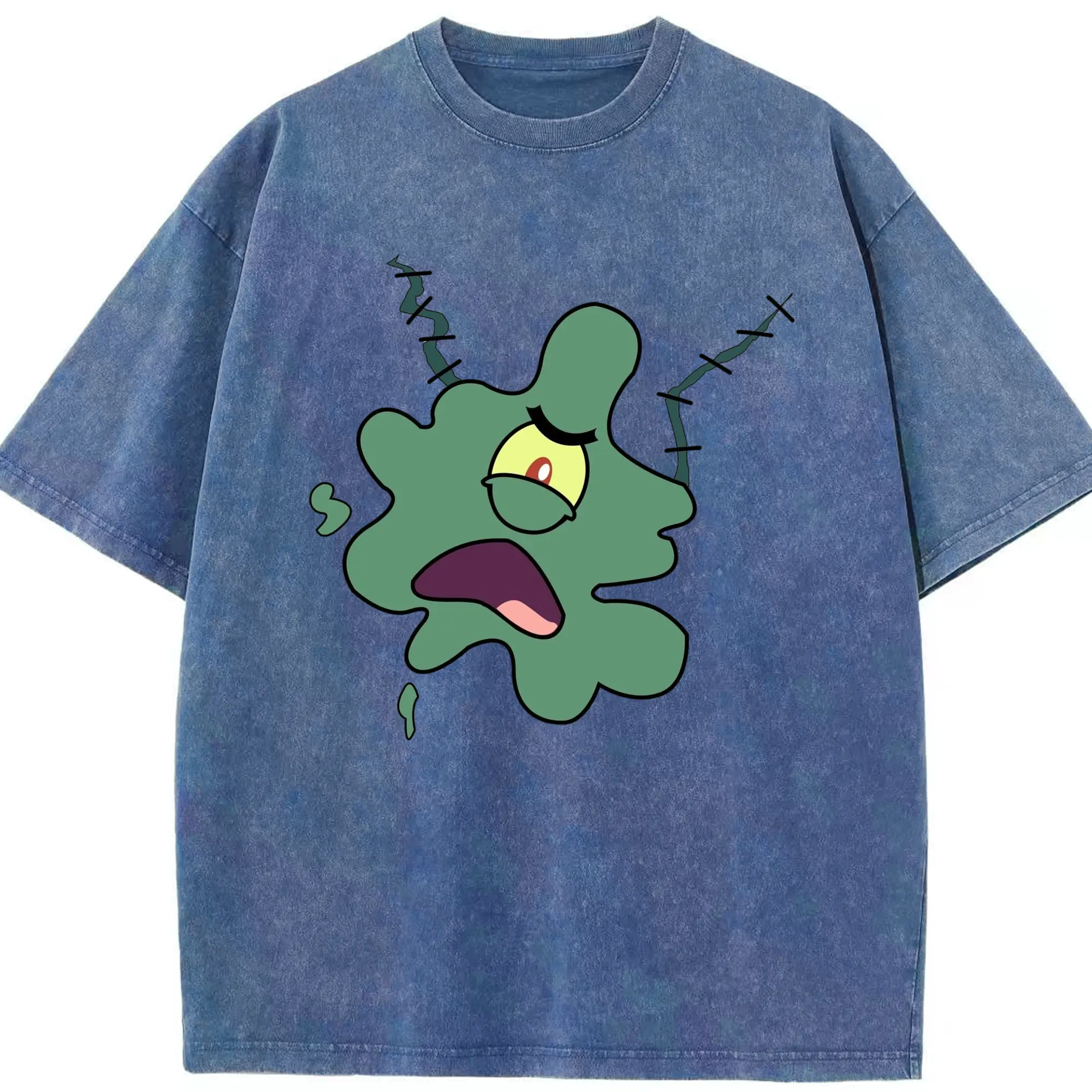 Spongebob Sheldon J. Plankton flaser mudface tee - Washed Vintage Look 230g Cotton Oversized T-Shirt With Front Heat Transfer Print – Soft, Lightweight, Stylish Fit – Comfortable Casual Wear For Sports & Everyday Use