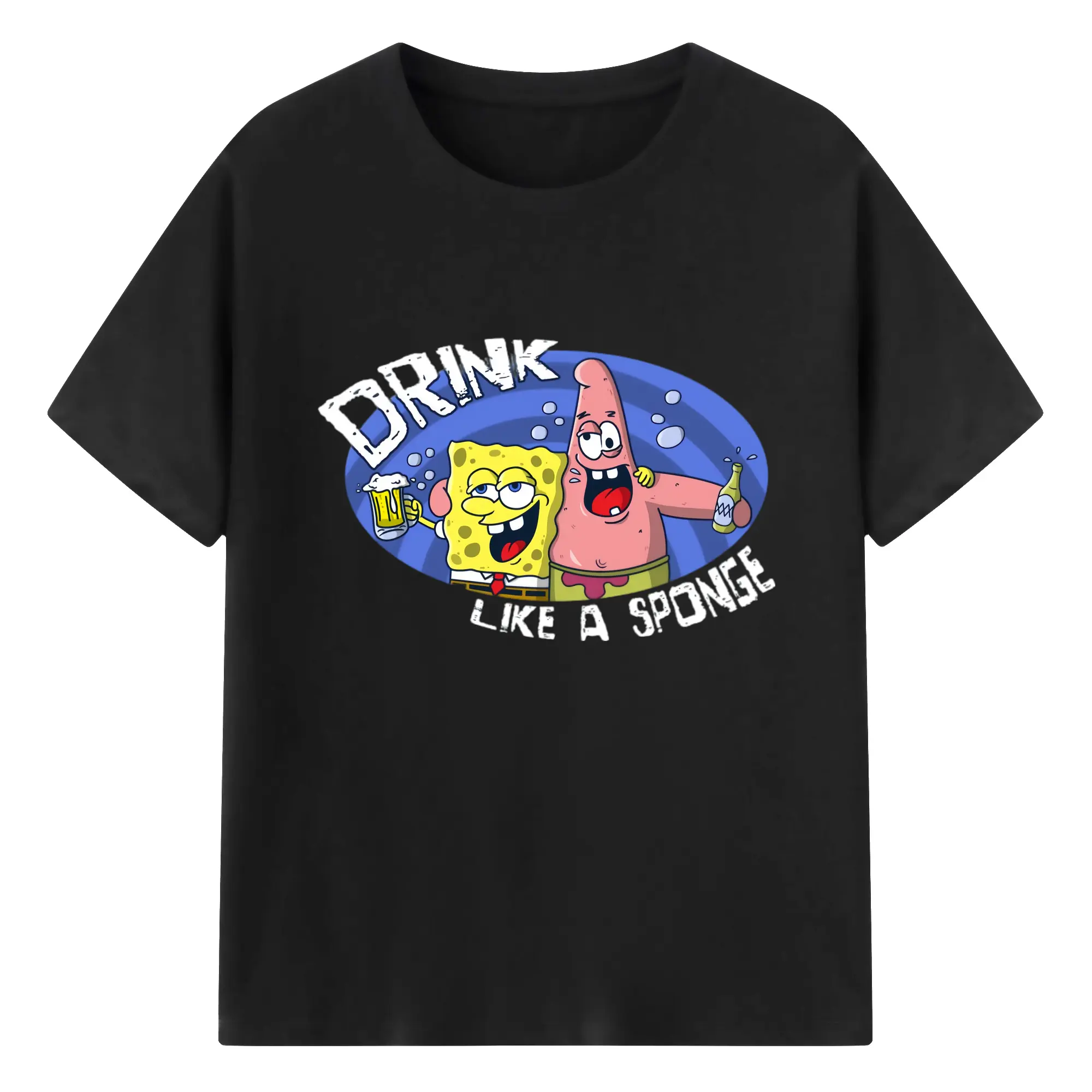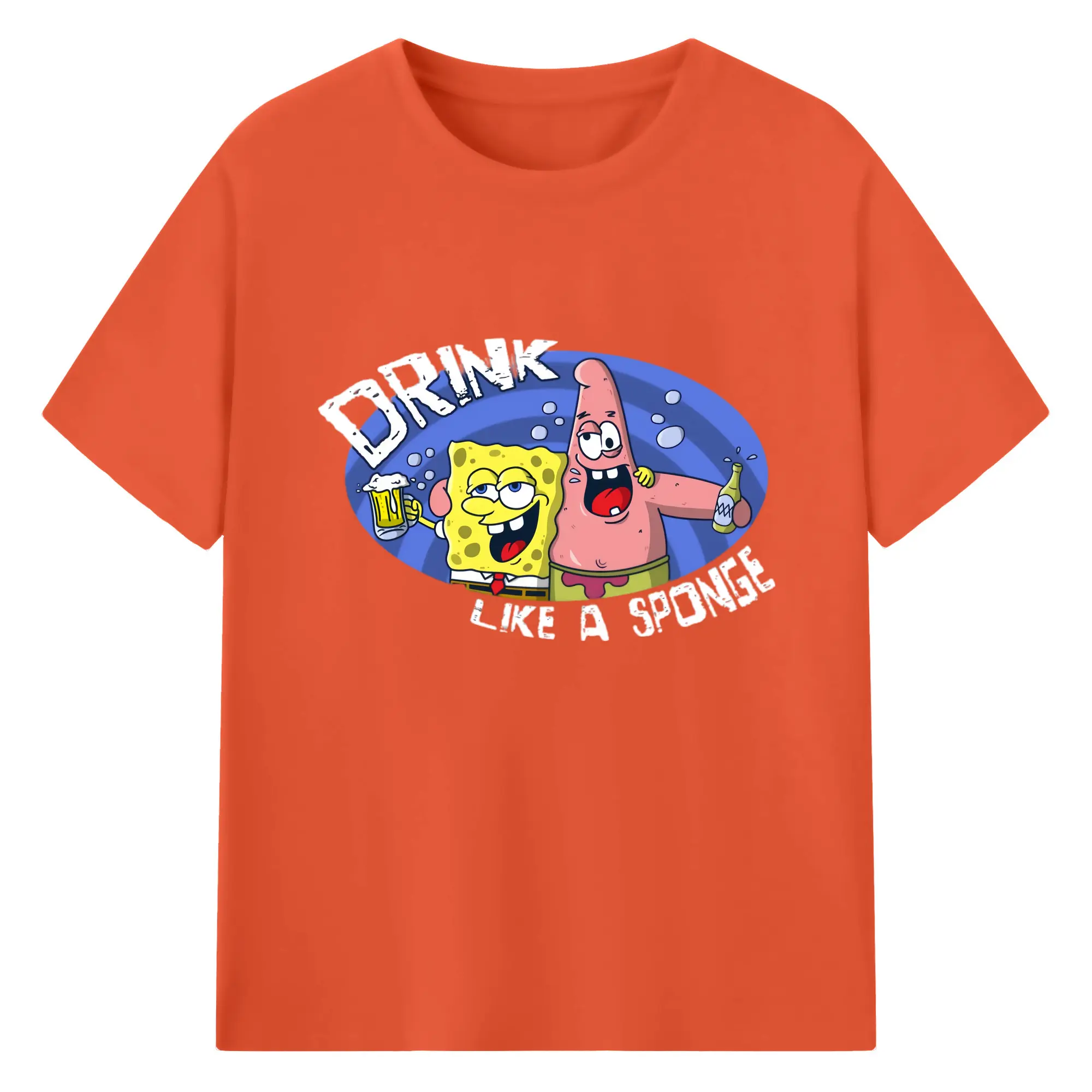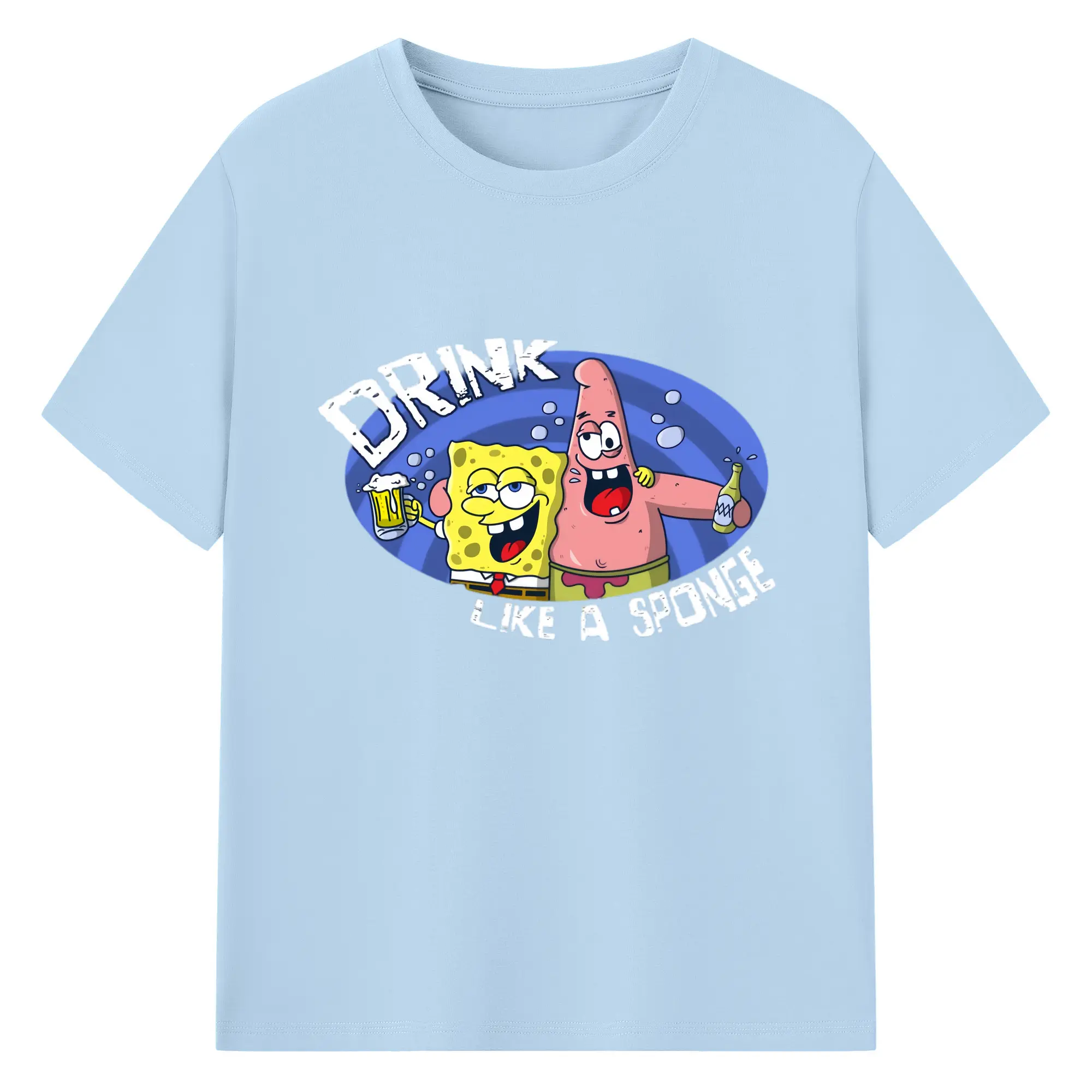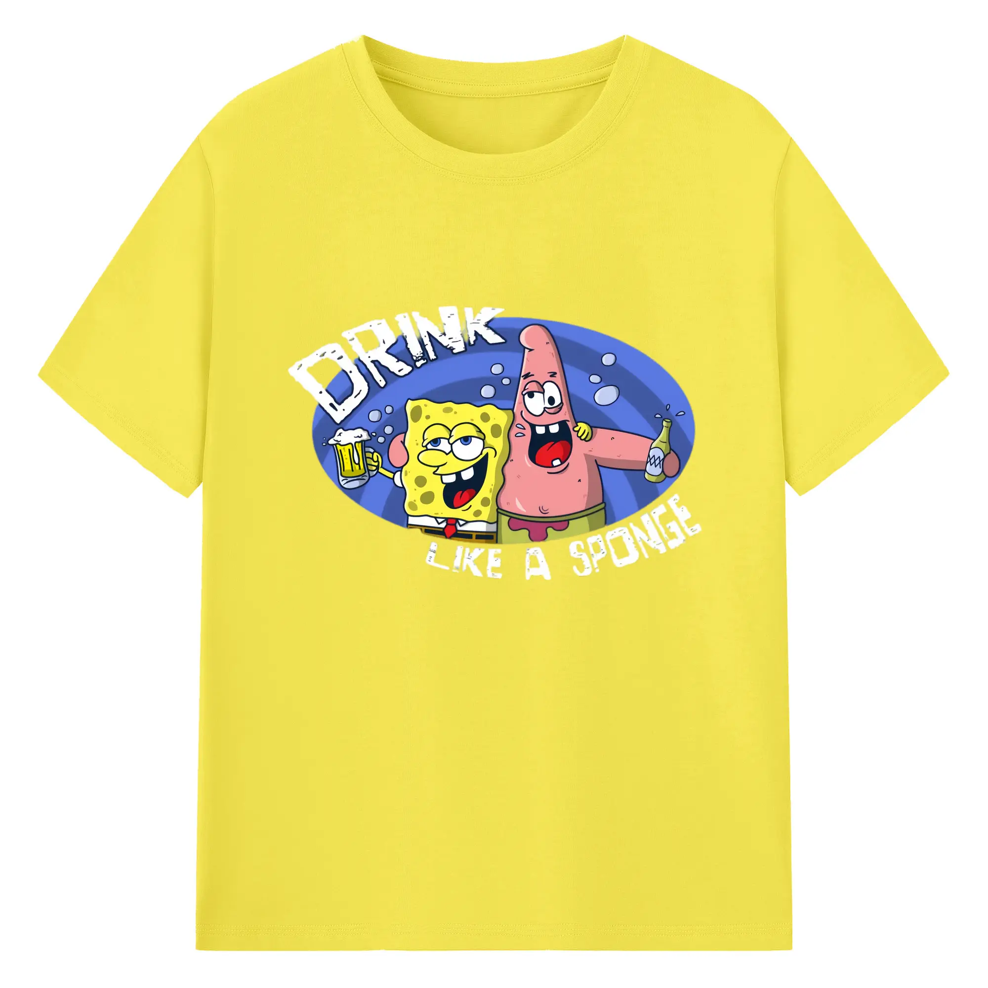 Spongebob squarepants and Patrick Star drink t-shirt - 180g Cotton T-Shirt With Front Heat Transfer Print – Soft, Lightweight, Fitted Design – Comfortable Casual Wear For Sports & Everyday Use