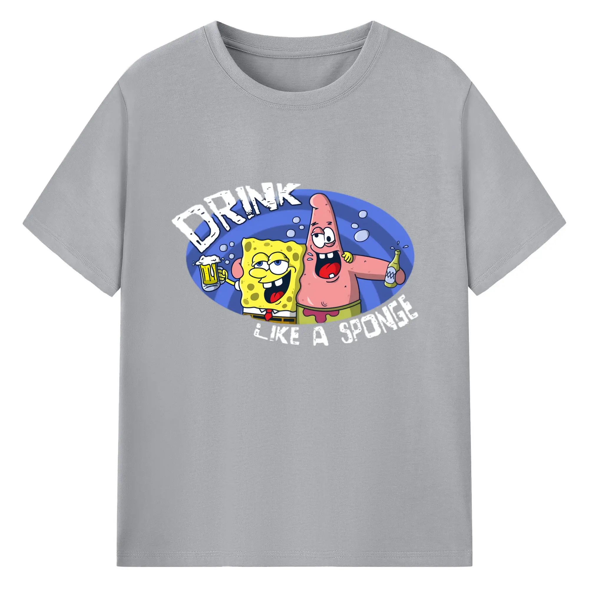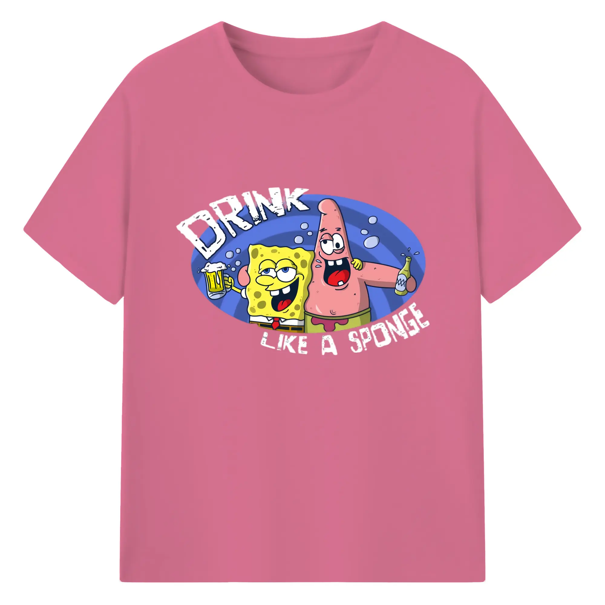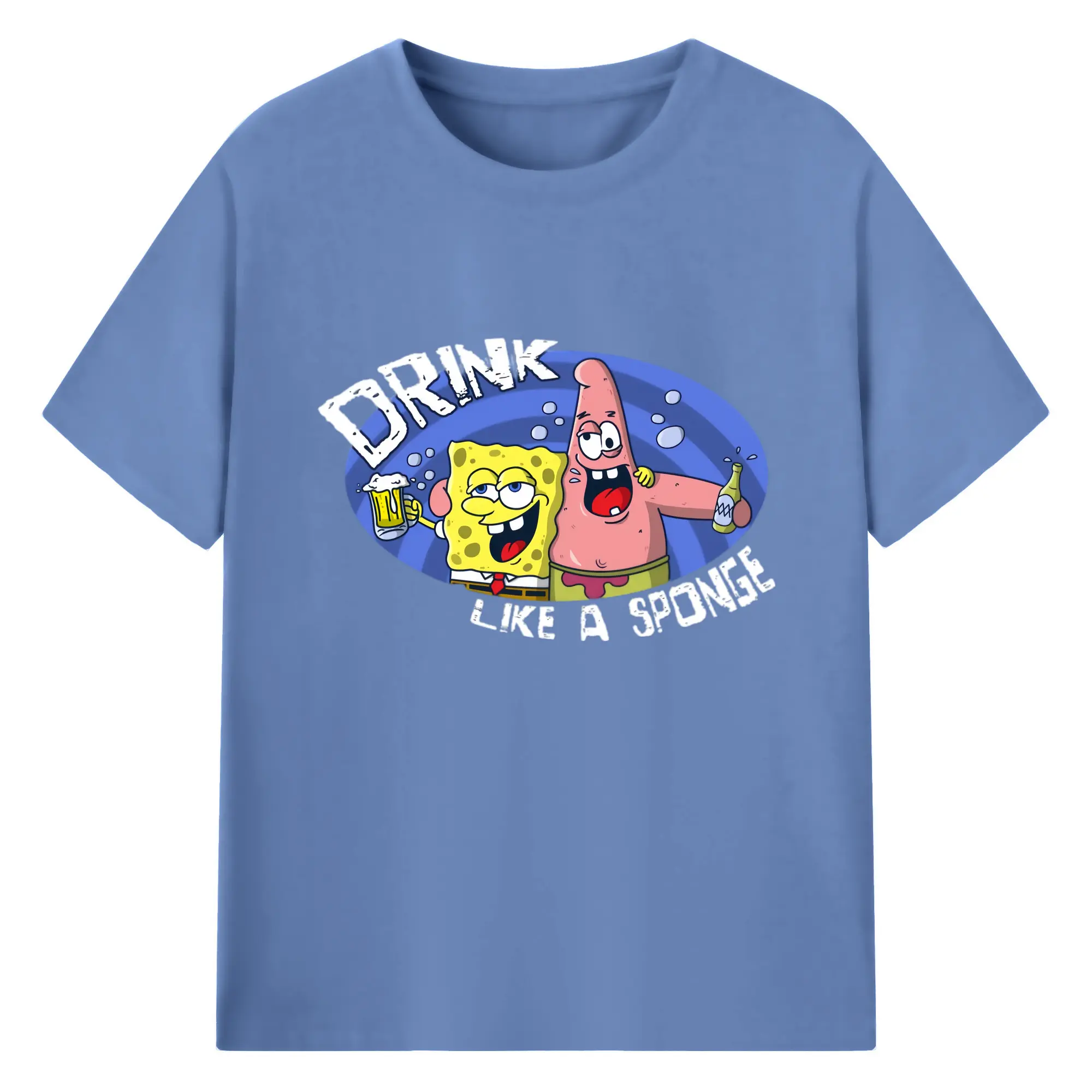 Spongebob squarepants and Patrick Star drink t-shirt - 180g Cotton T-Shirt With Front Heat Transfer Print – Soft, Lightweight, Fitted Design – Comfortable Casual Wear For Sports & Everyday Use