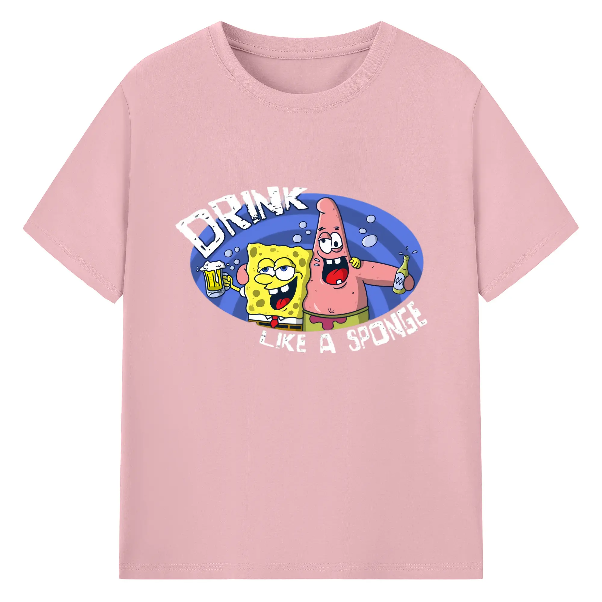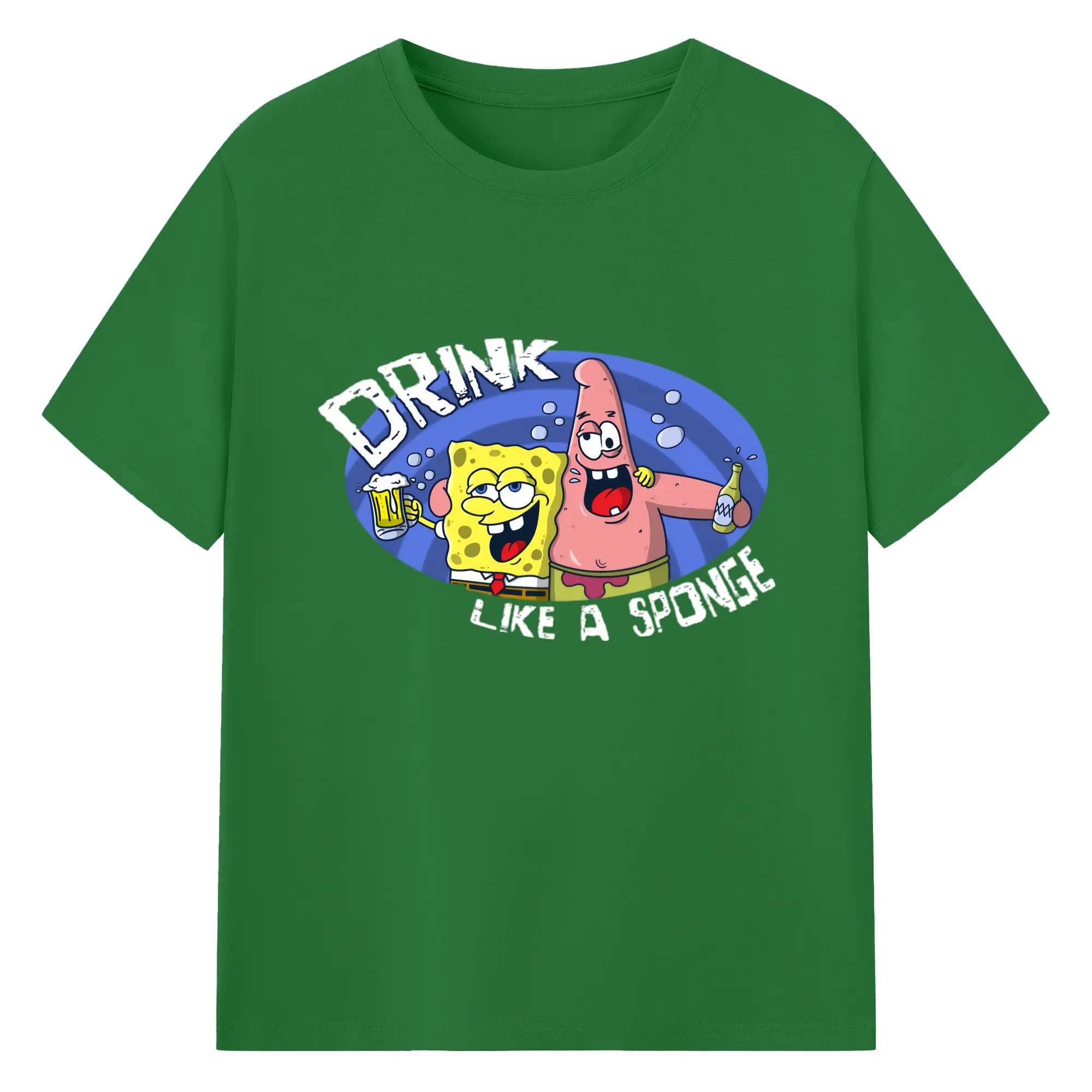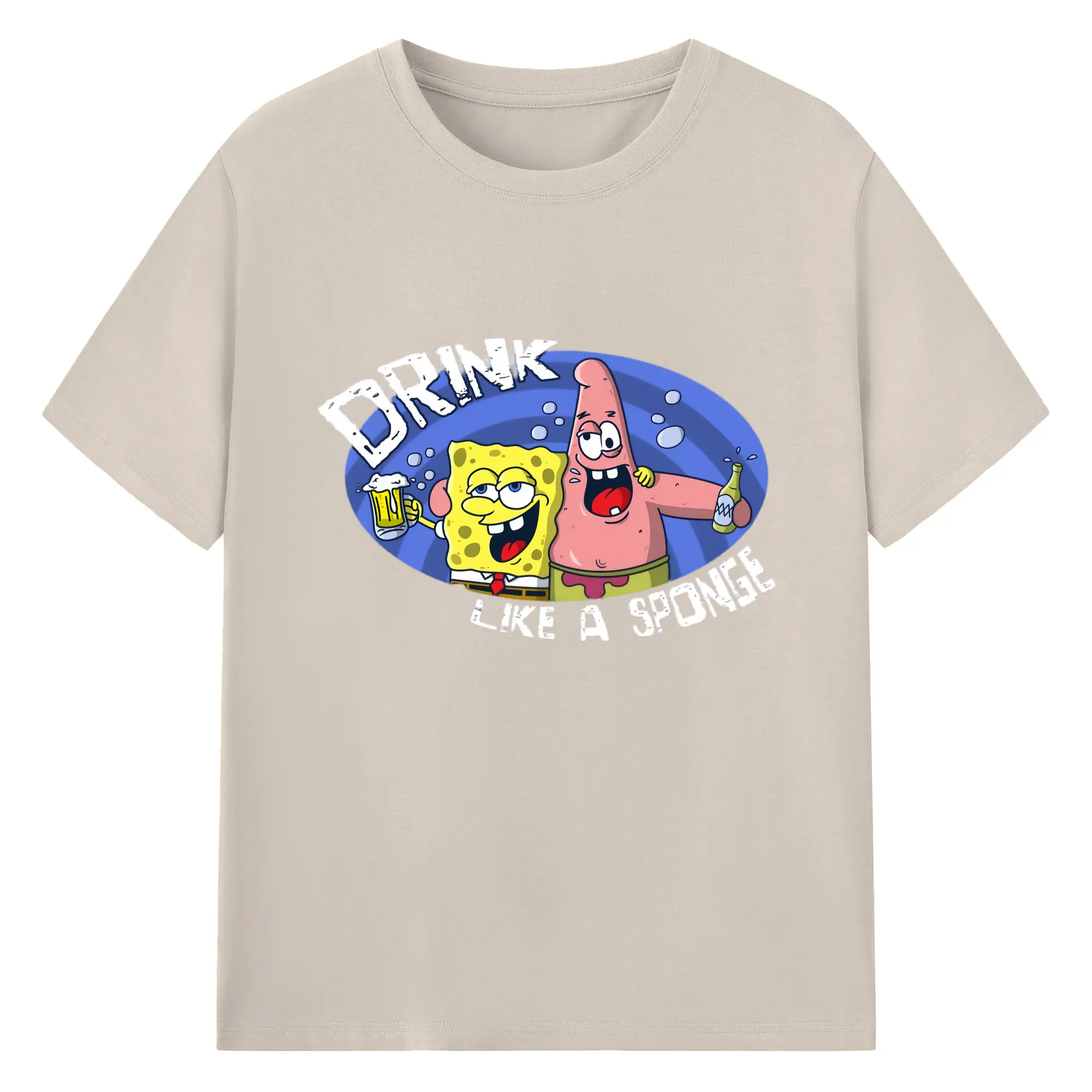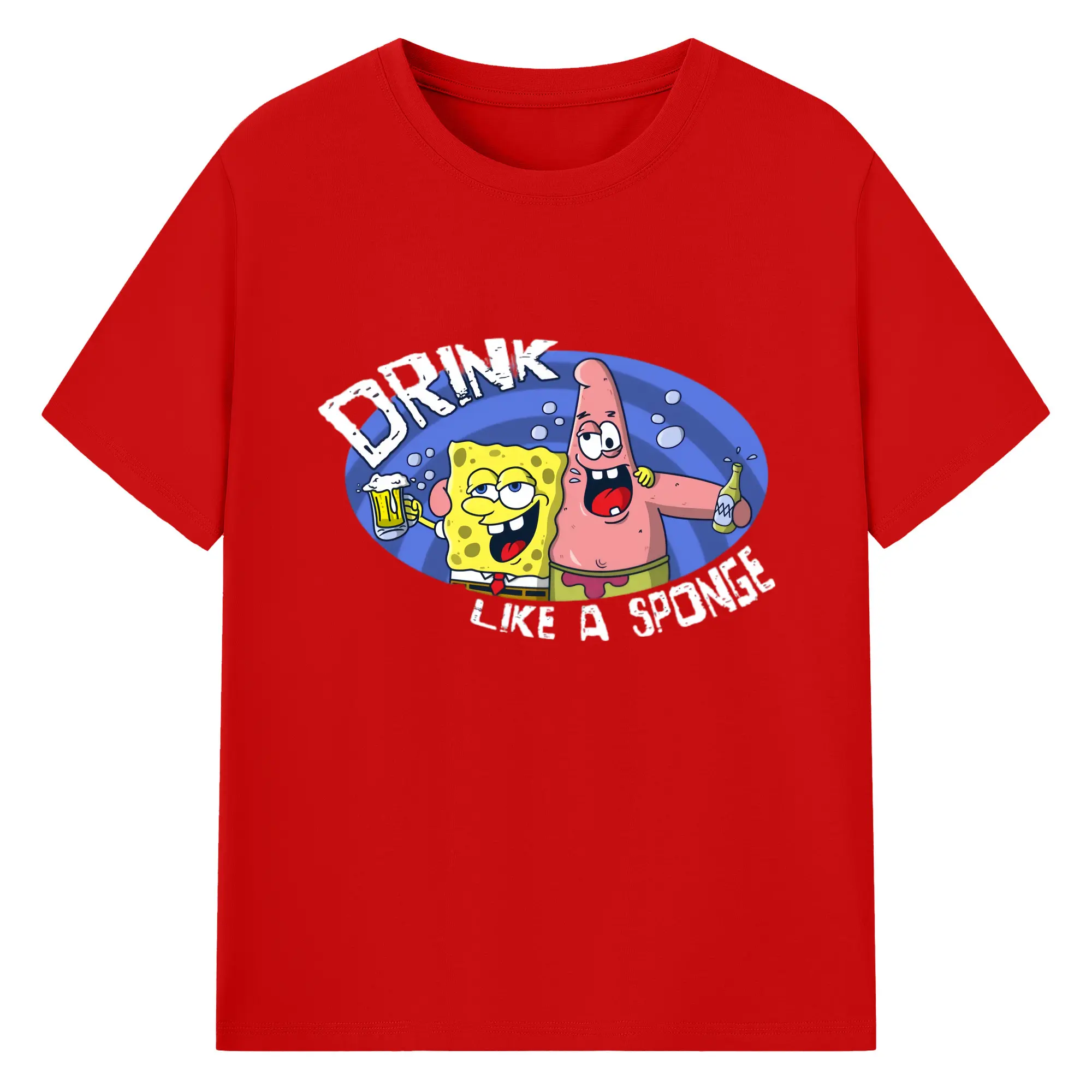 Spongebob squarepants and Patrick Star drink t-shirt - 180g Cotton T-Shirt With Front Heat Transfer Print – Soft, Lightweight, Fitted Design – Comfortable Casual Wear For Sports & Everyday Use