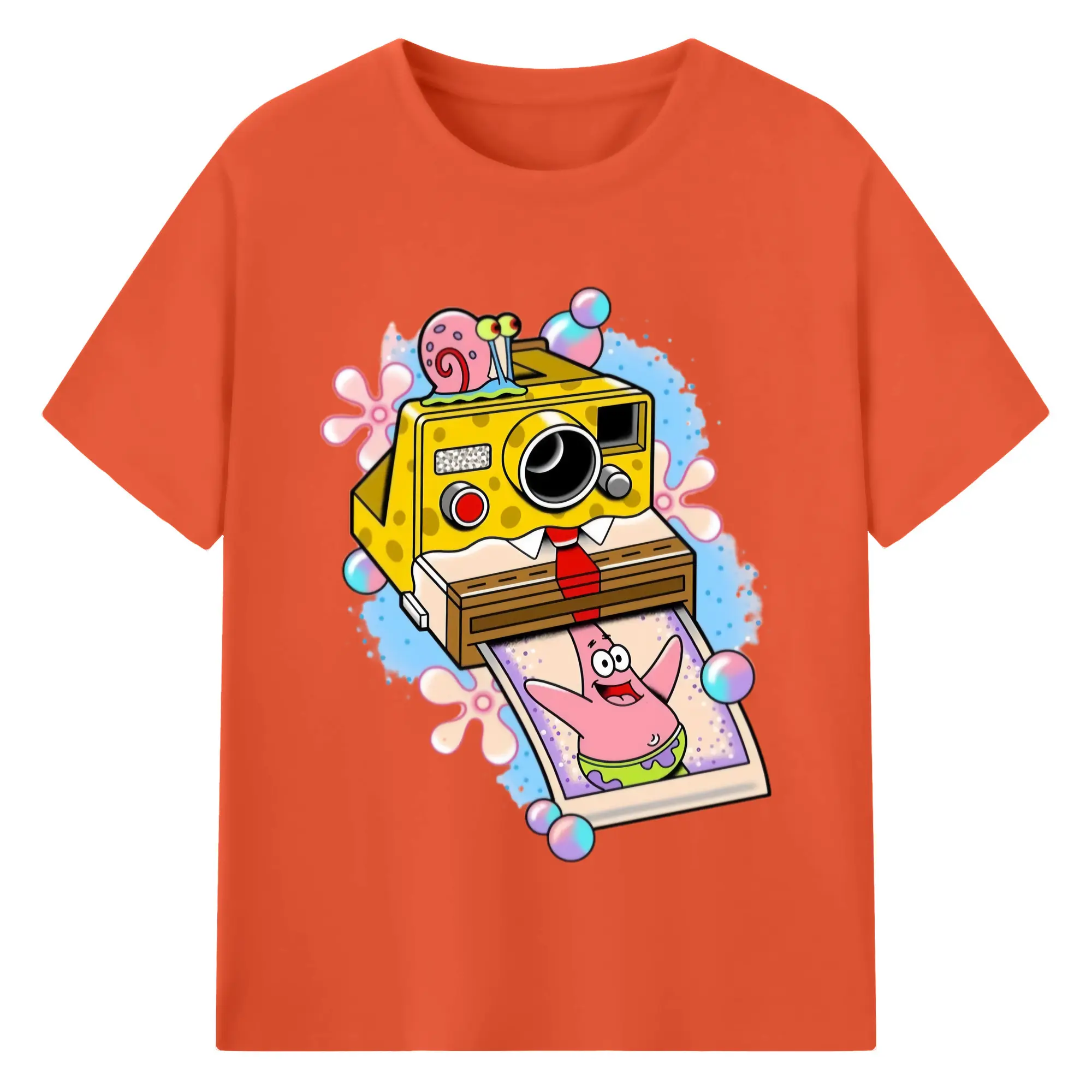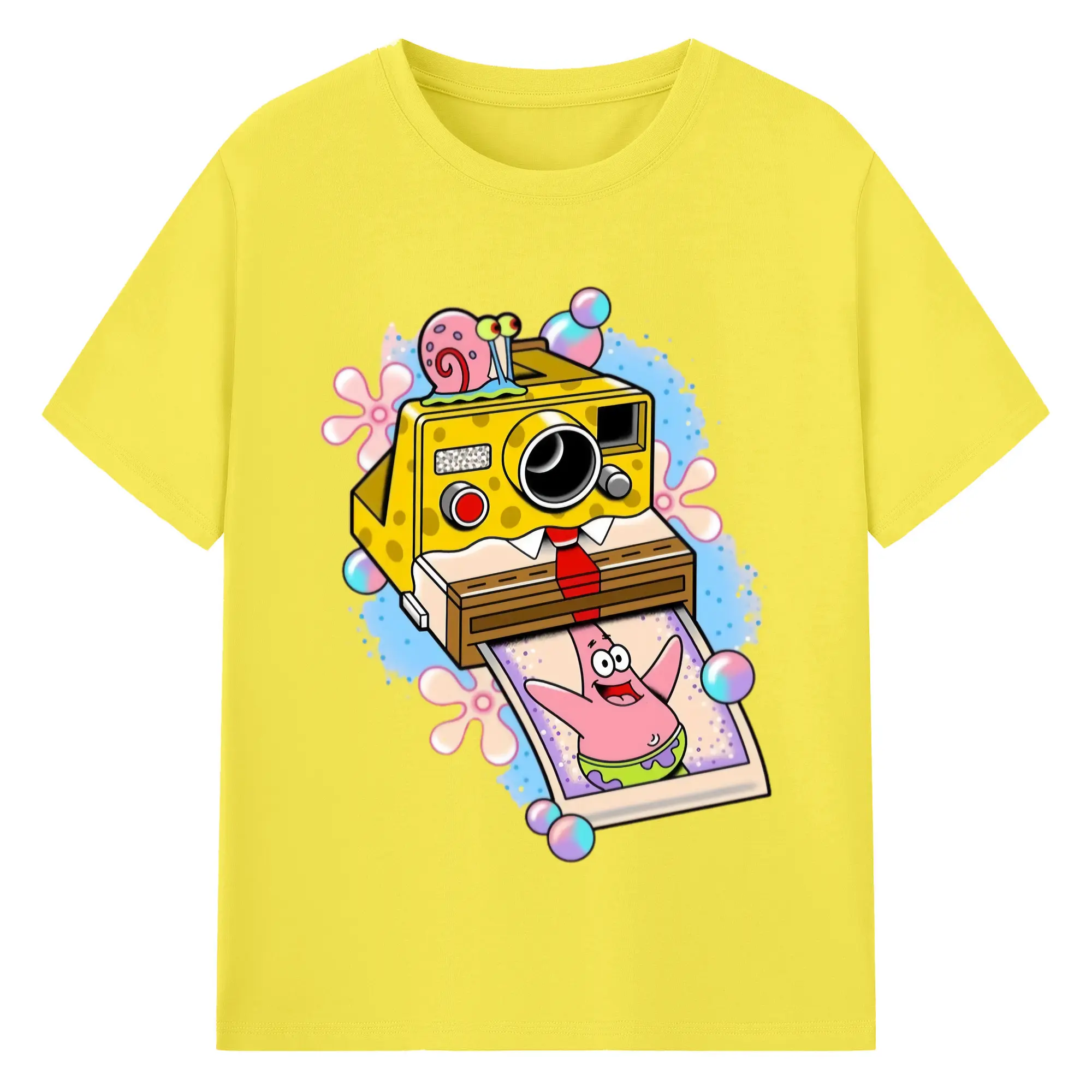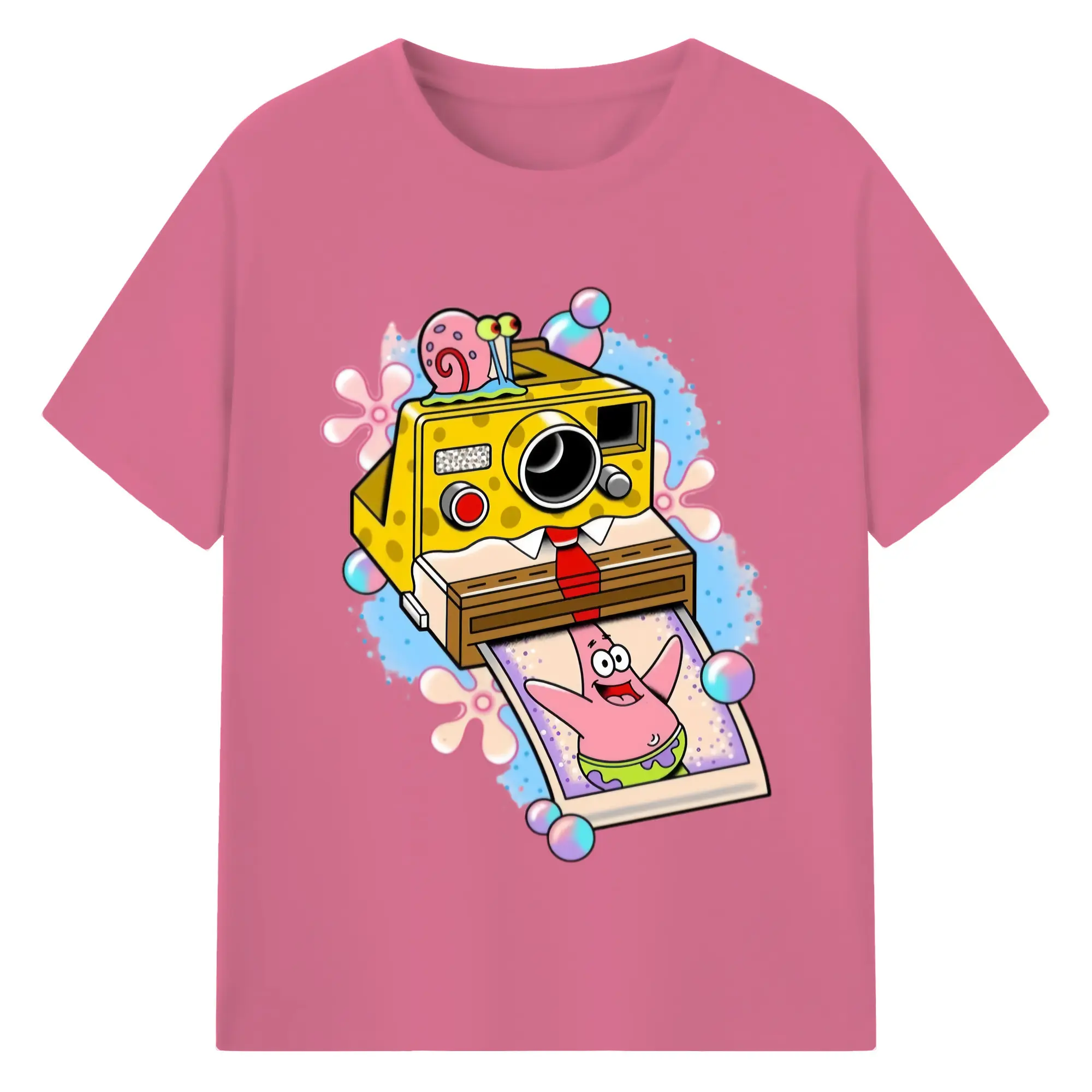 Spongebob squarepants and Patrick Star photo t-shirt - 180g Cotton T-Shirt With Front Heat Transfer Print – Soft, Lightweight, Fitted Design – Comfortable Casual Wear For Sports & Everyday Use