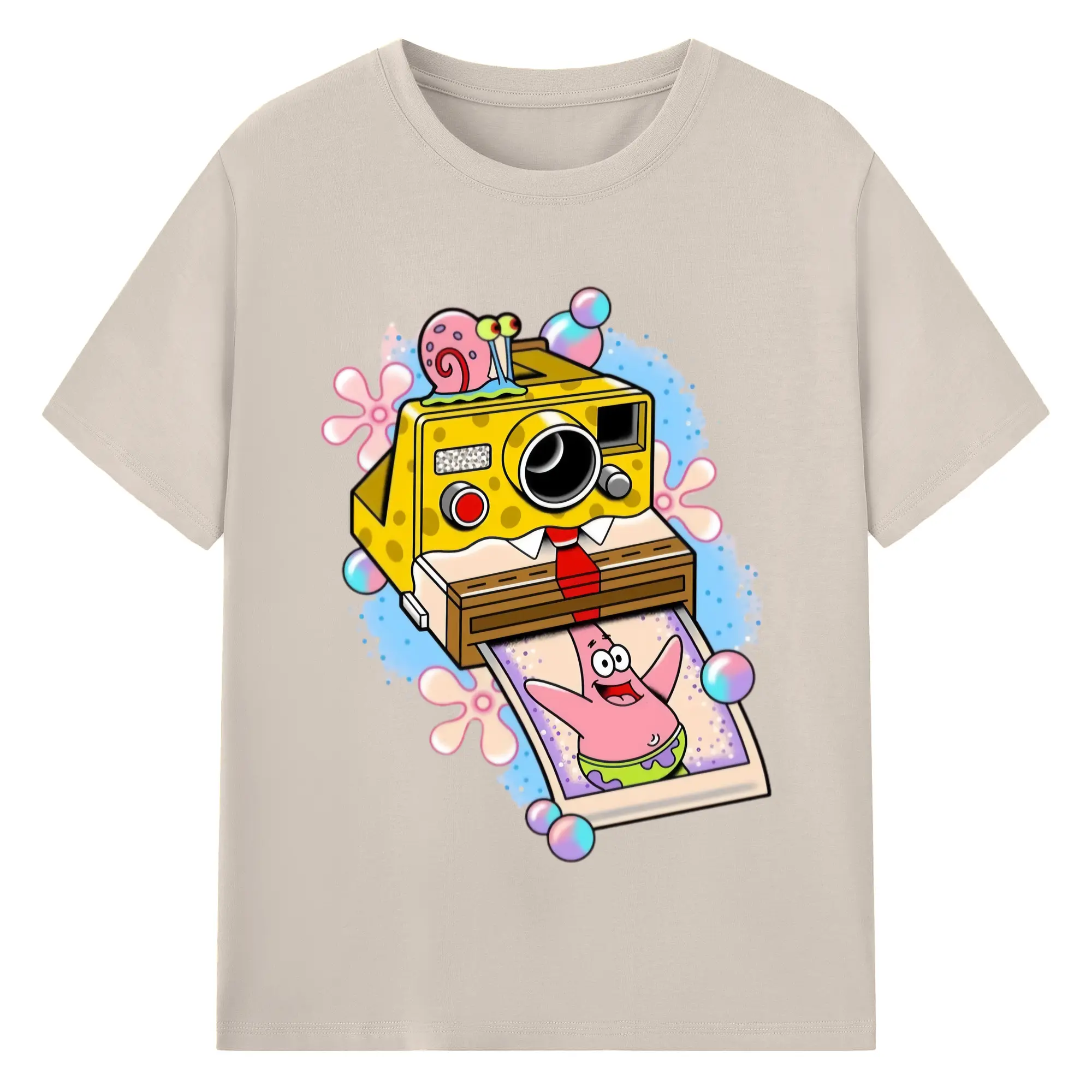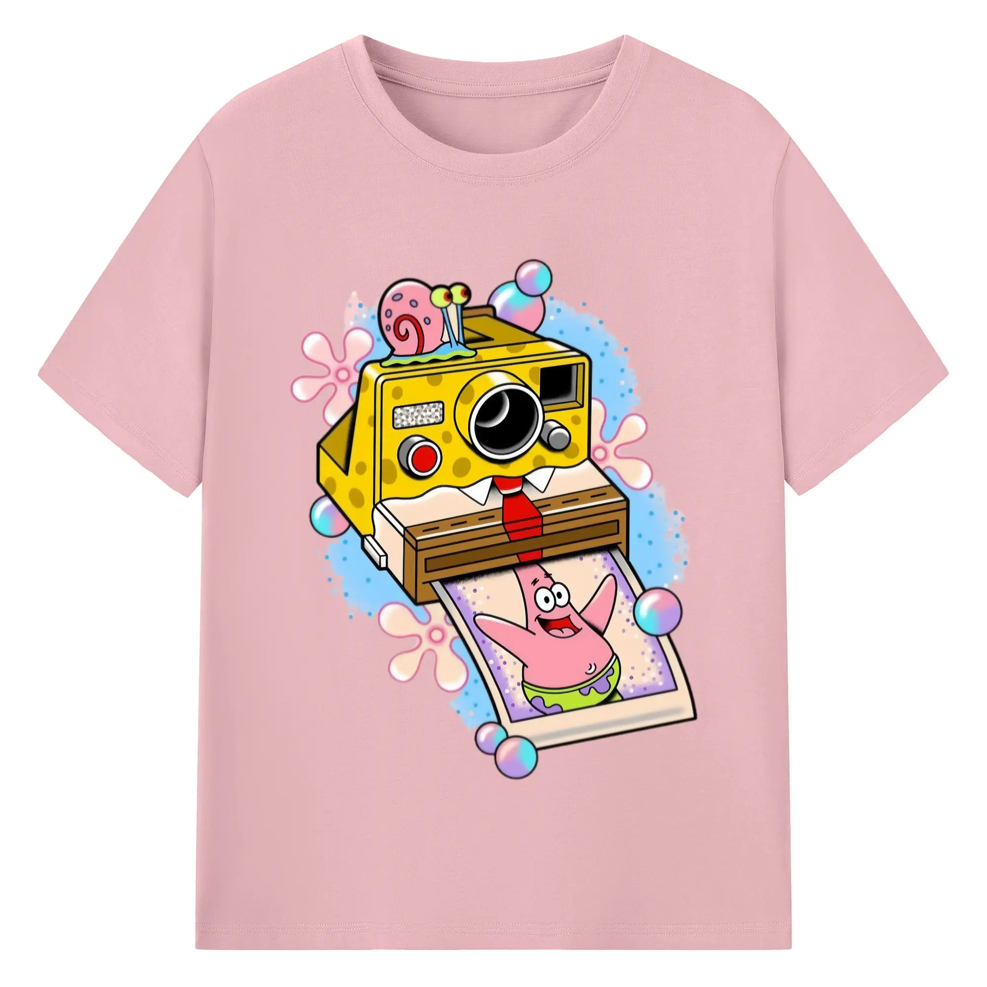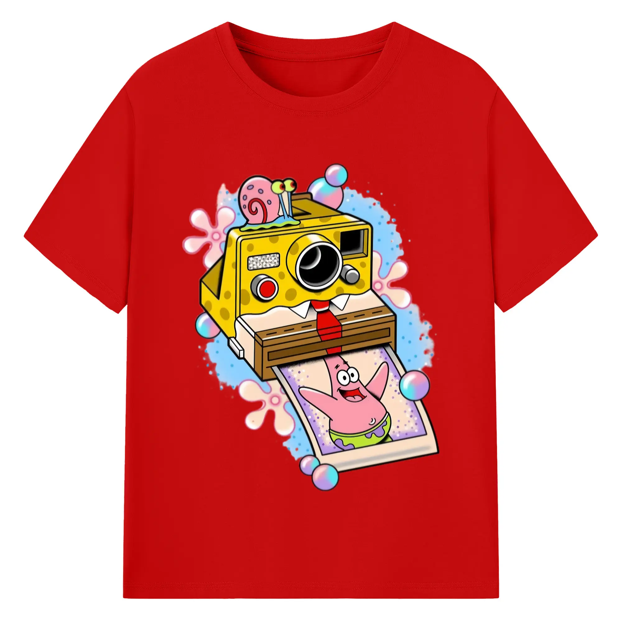 Spongebob squarepants and Patrick Star photo t-shirt - 180g Cotton T-Shirt With Front Heat Transfer Print – Soft, Lightweight, Fitted Design – Comfortable Casual Wear For Sports & Everyday Use