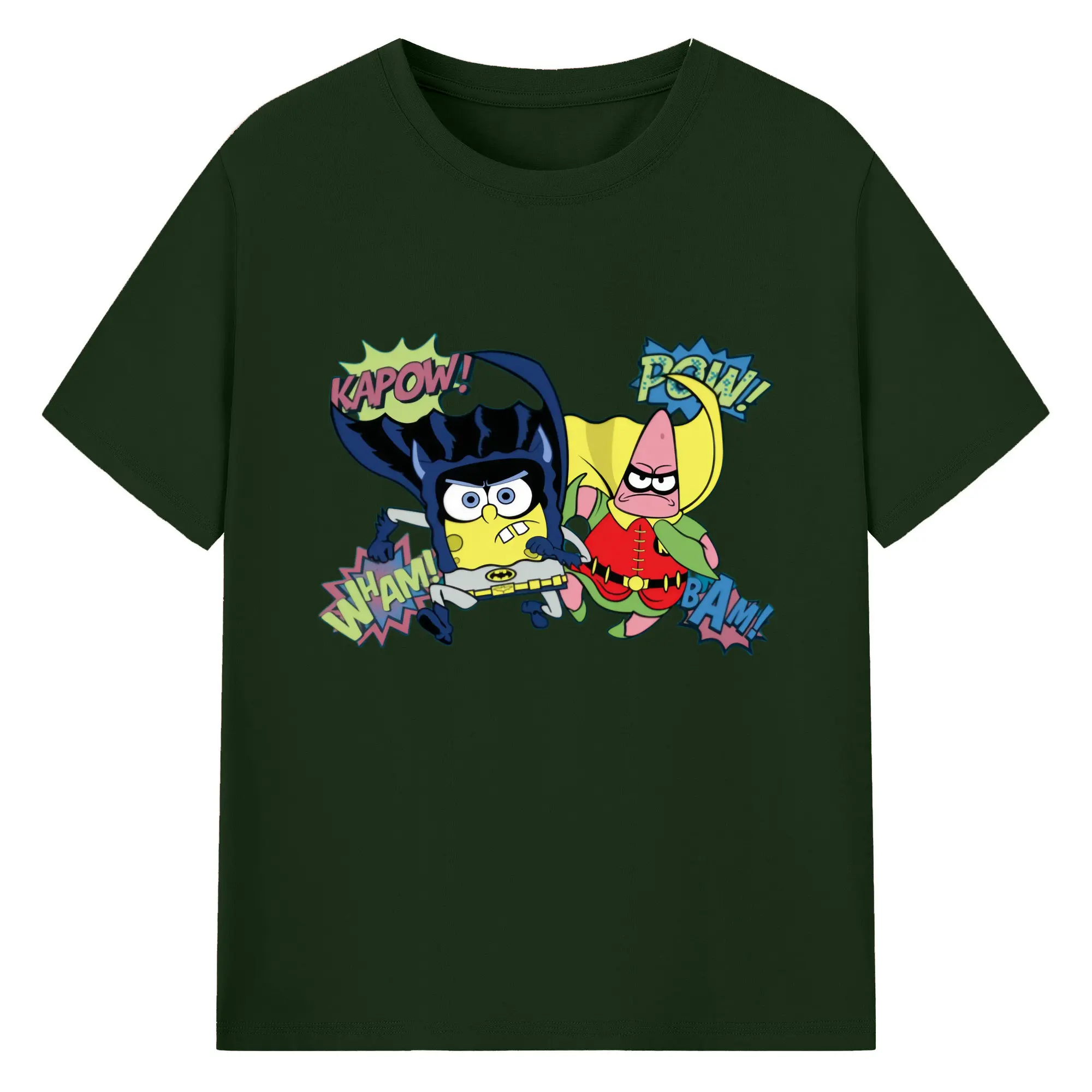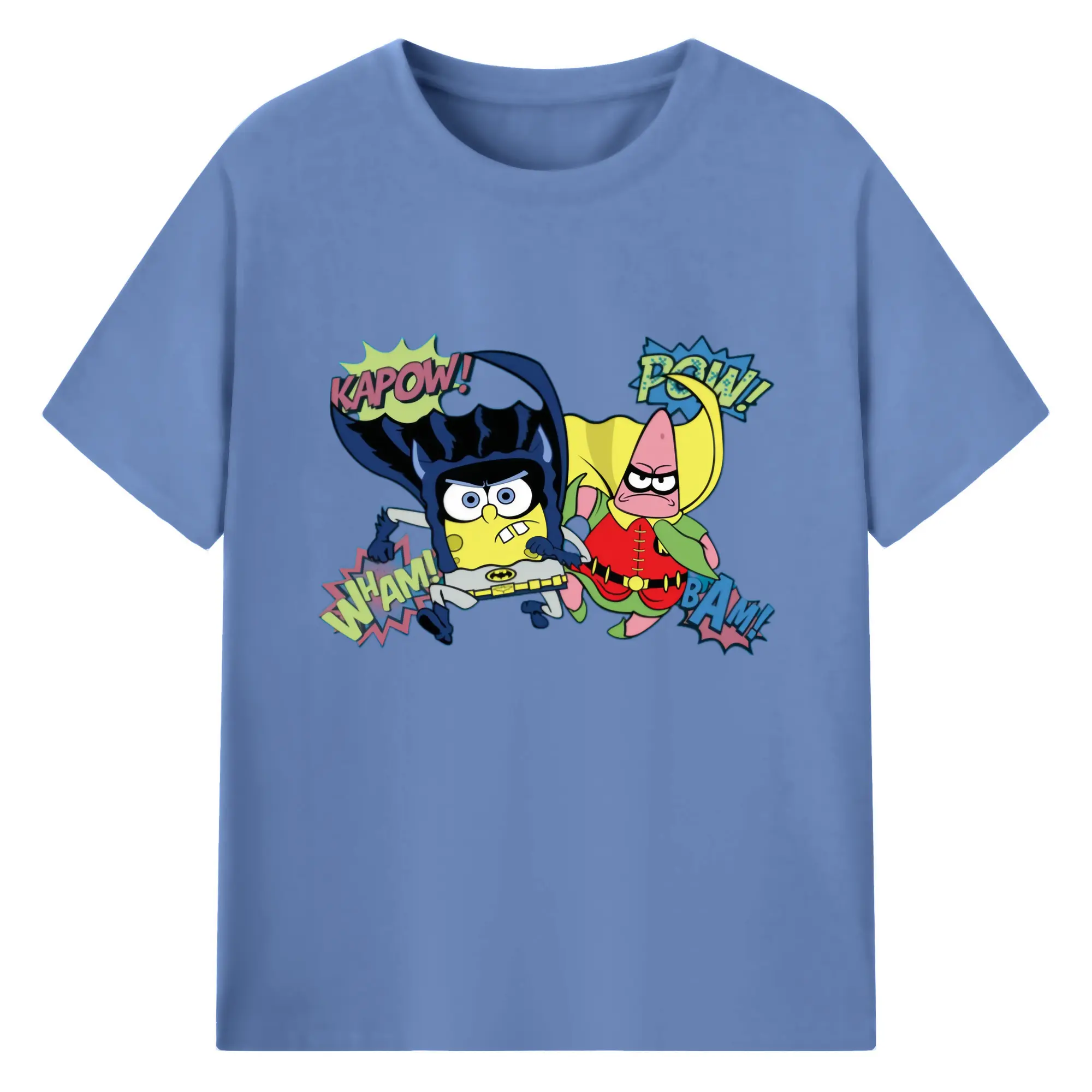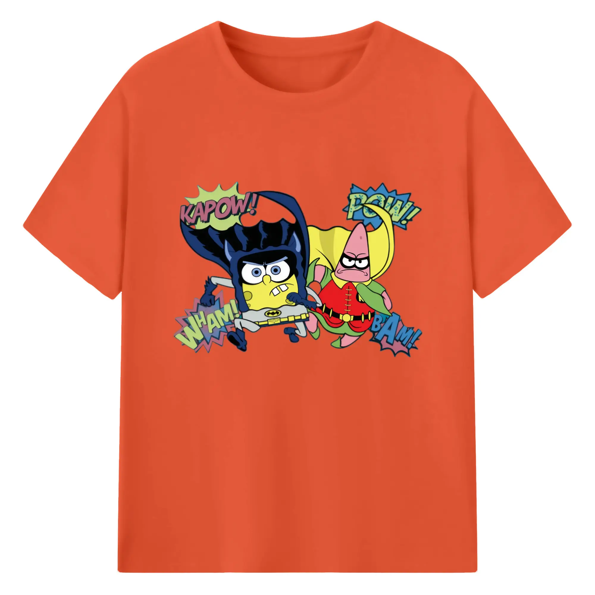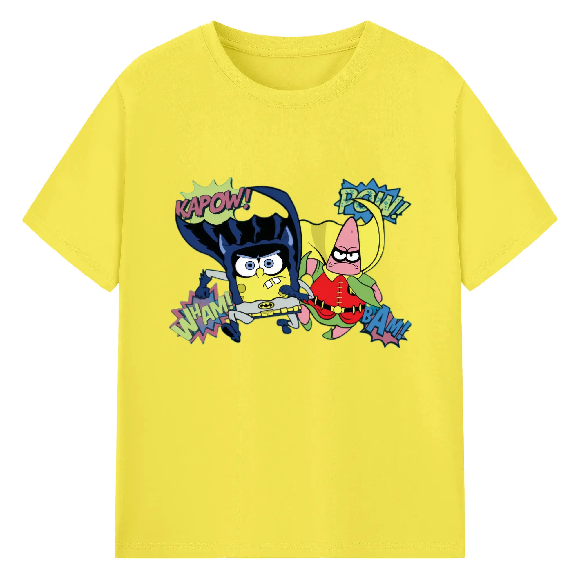 Spongebob squarepants and Patrick Star super hero t-shirt - 180g Cotton T-Shirt With Front Heat Transfer Print – Soft, Lightweight, Fitted Design – Comfortable Casual Wear For Sports & Everyday Use