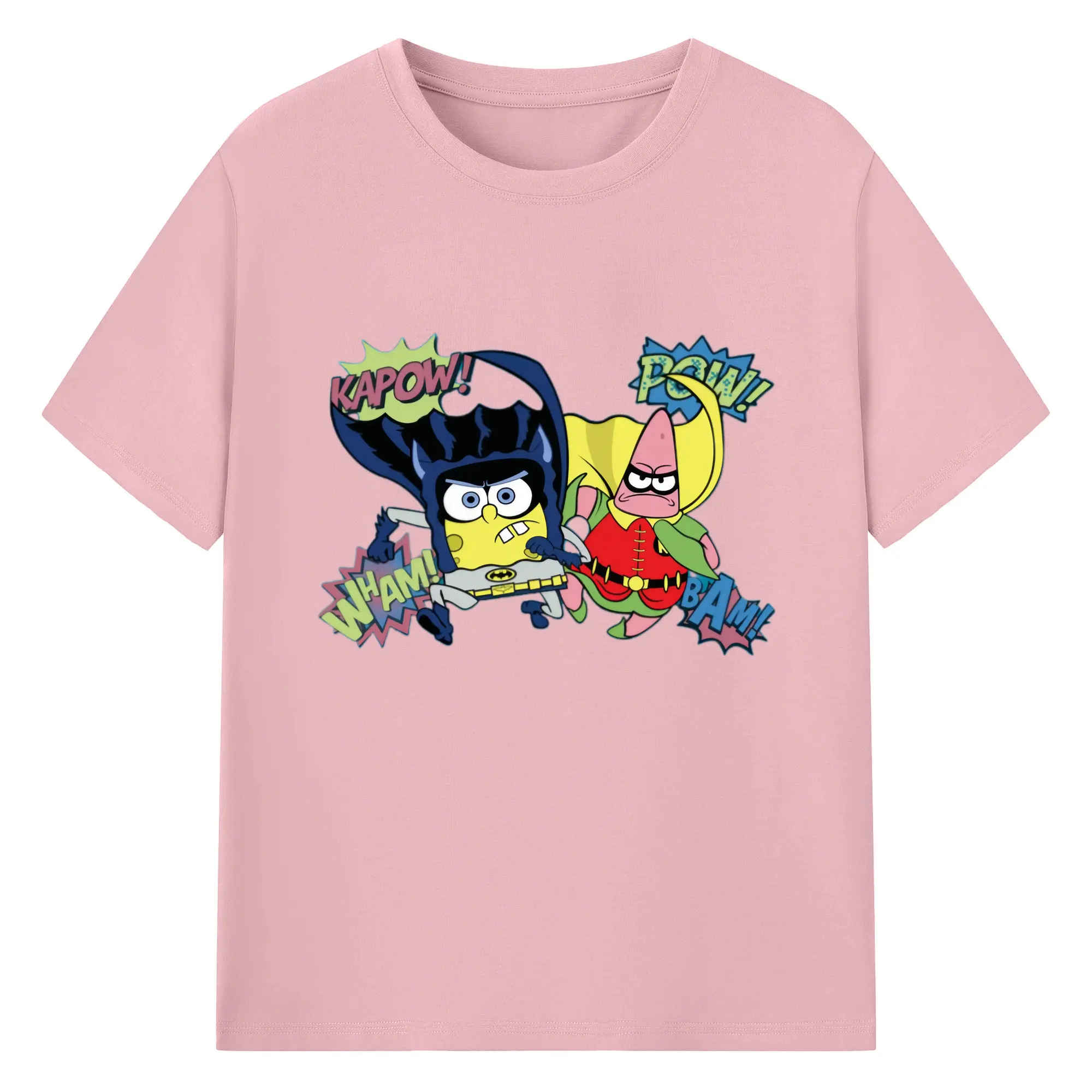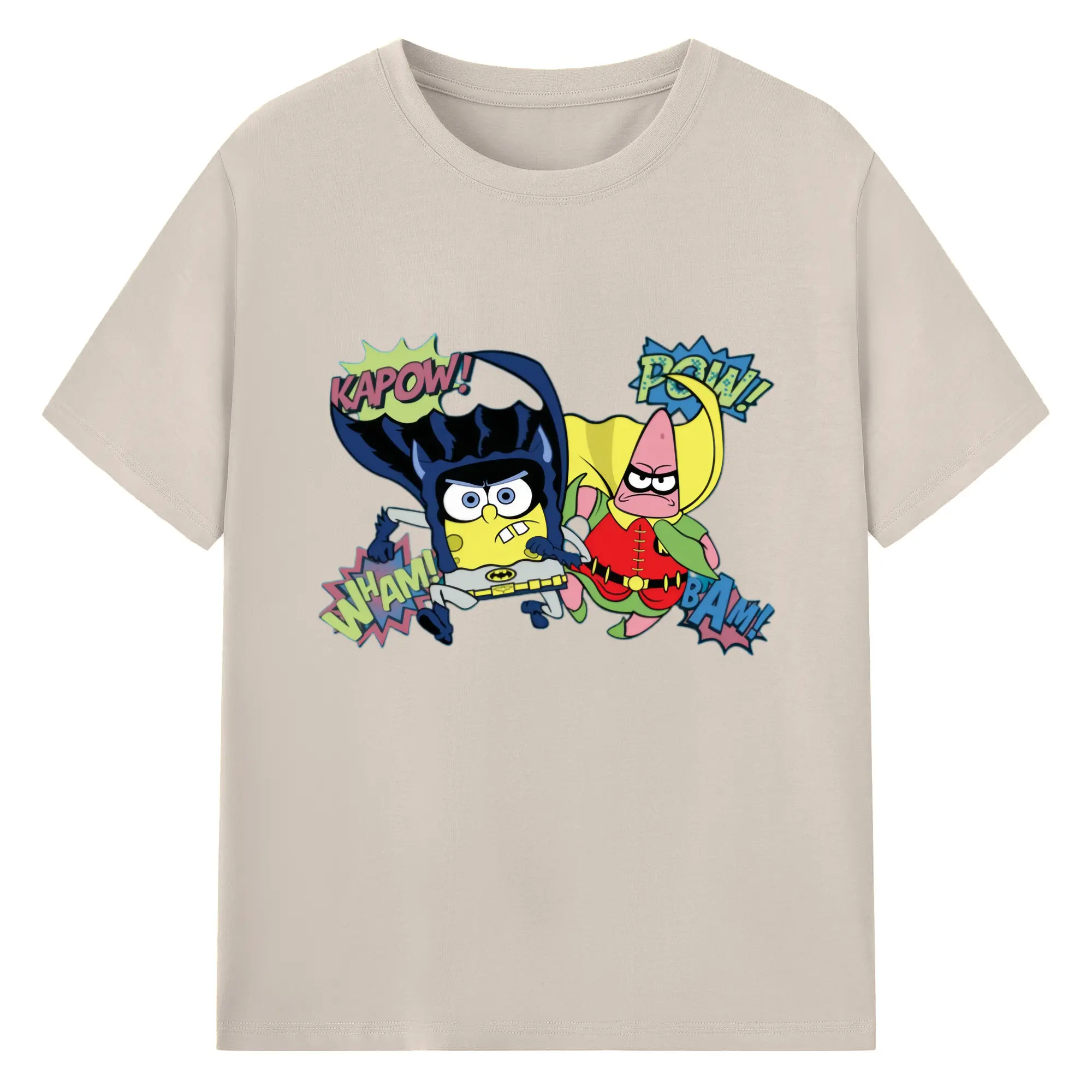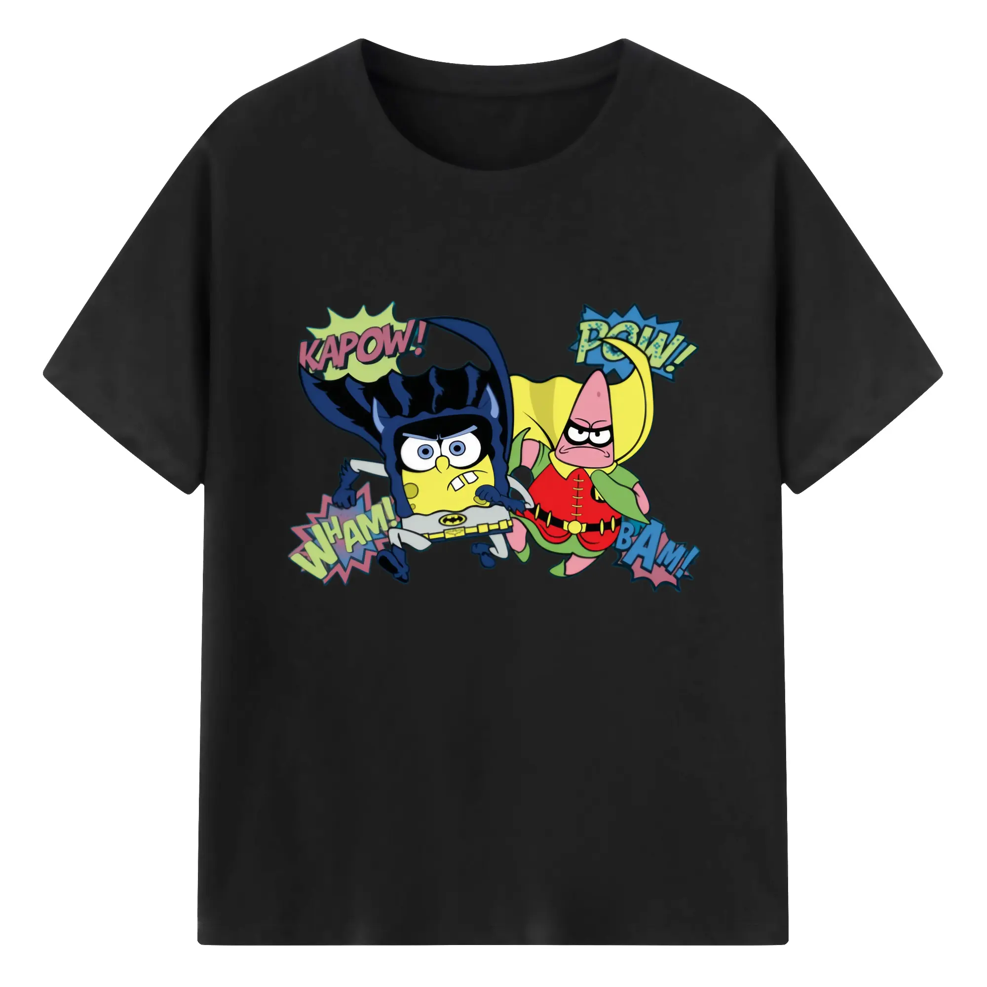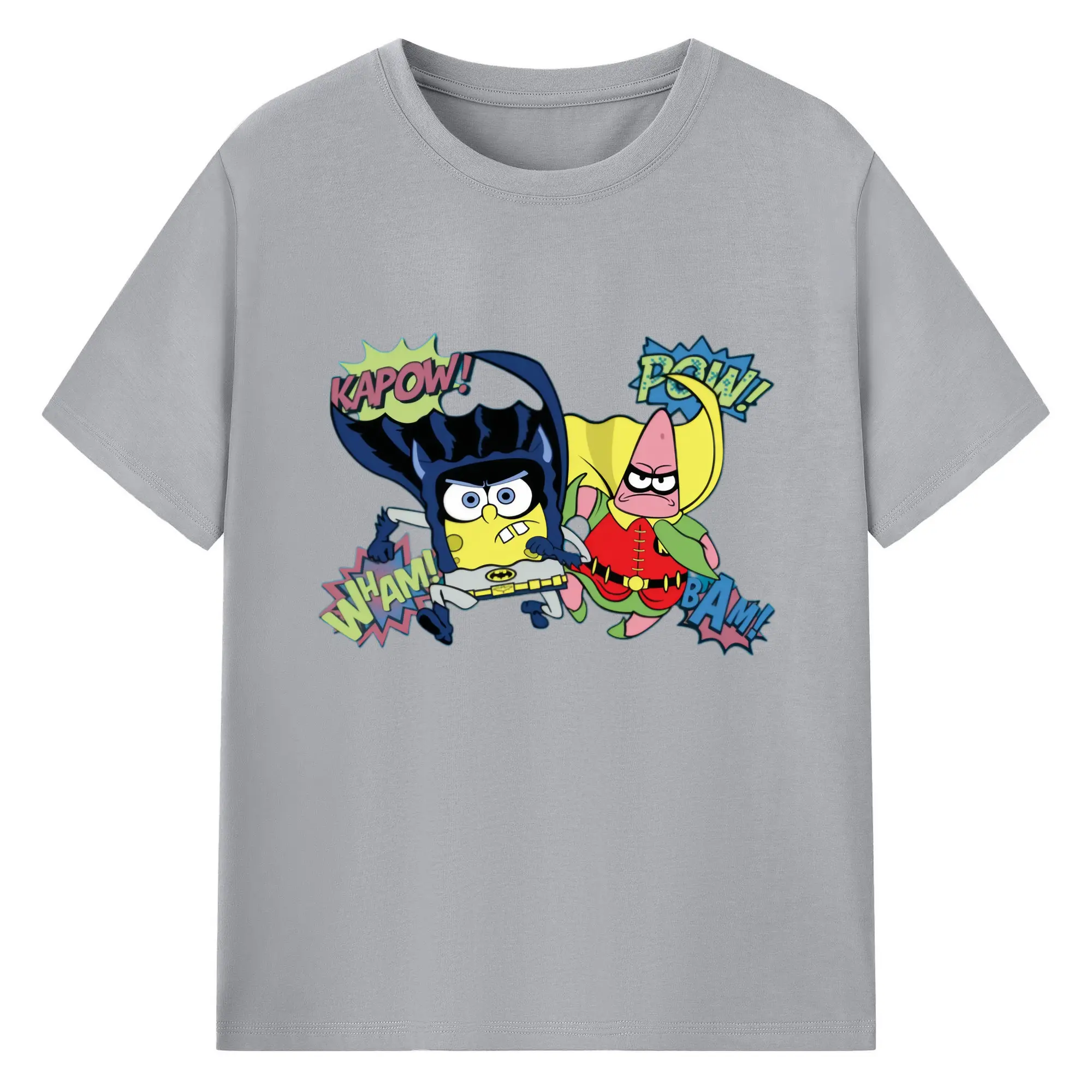 Spongebob squarepants and Patrick Star super hero t-shirt - 180g Cotton T-Shirt With Front Heat Transfer Print – Soft, Lightweight, Fitted Design – Comfortable Casual Wear For Sports & Everyday Use