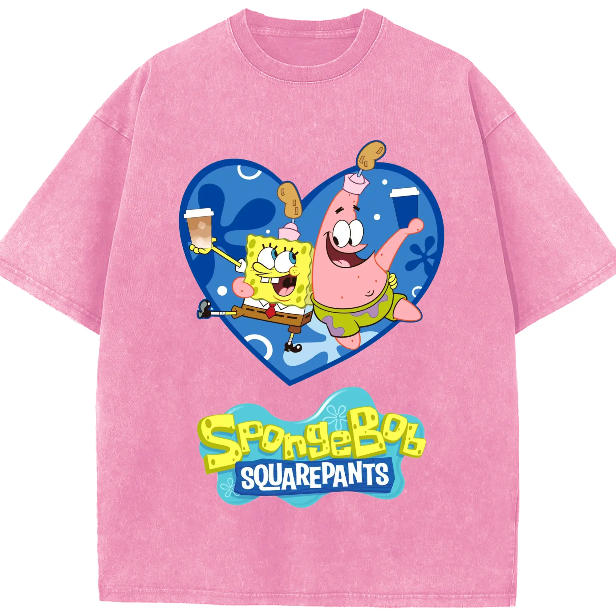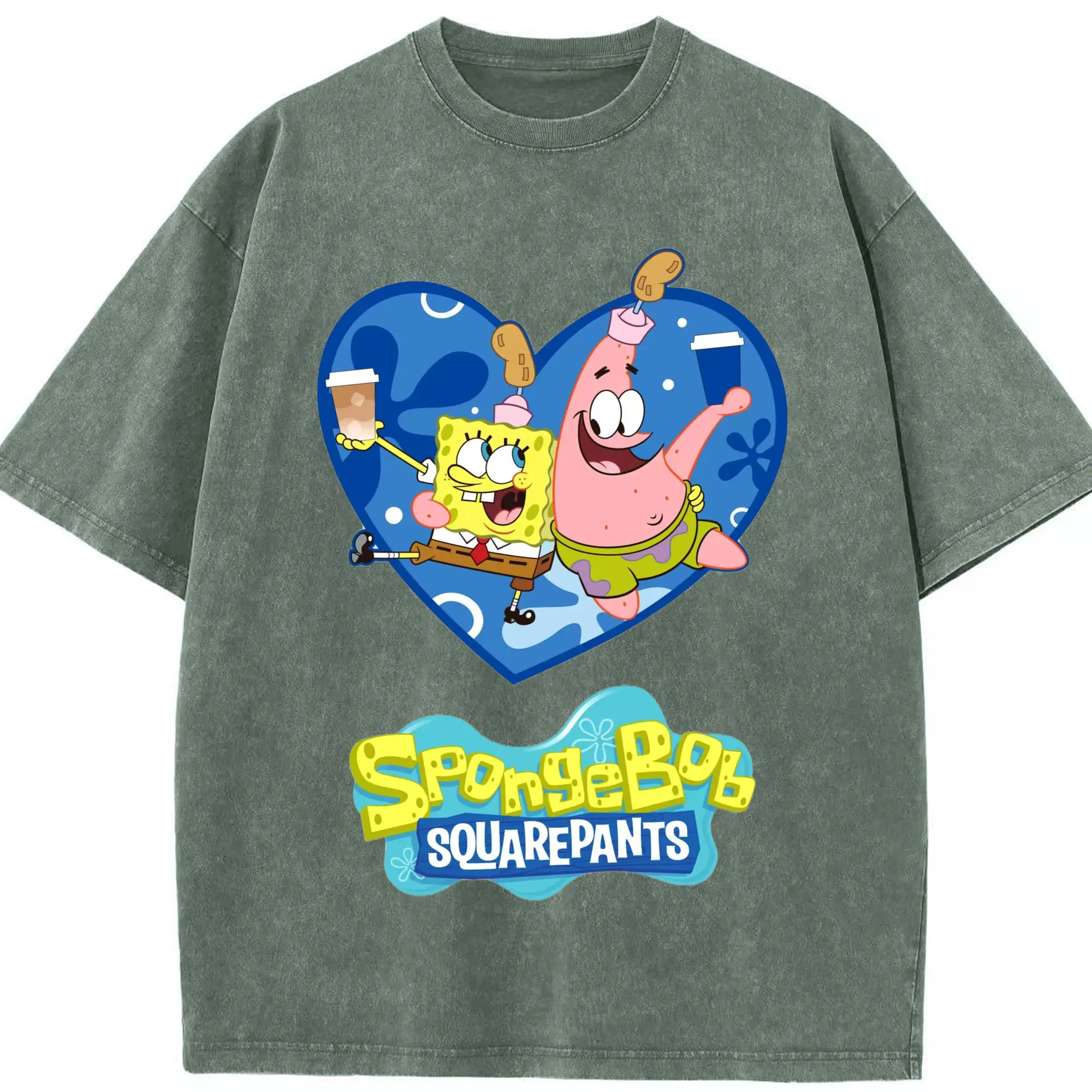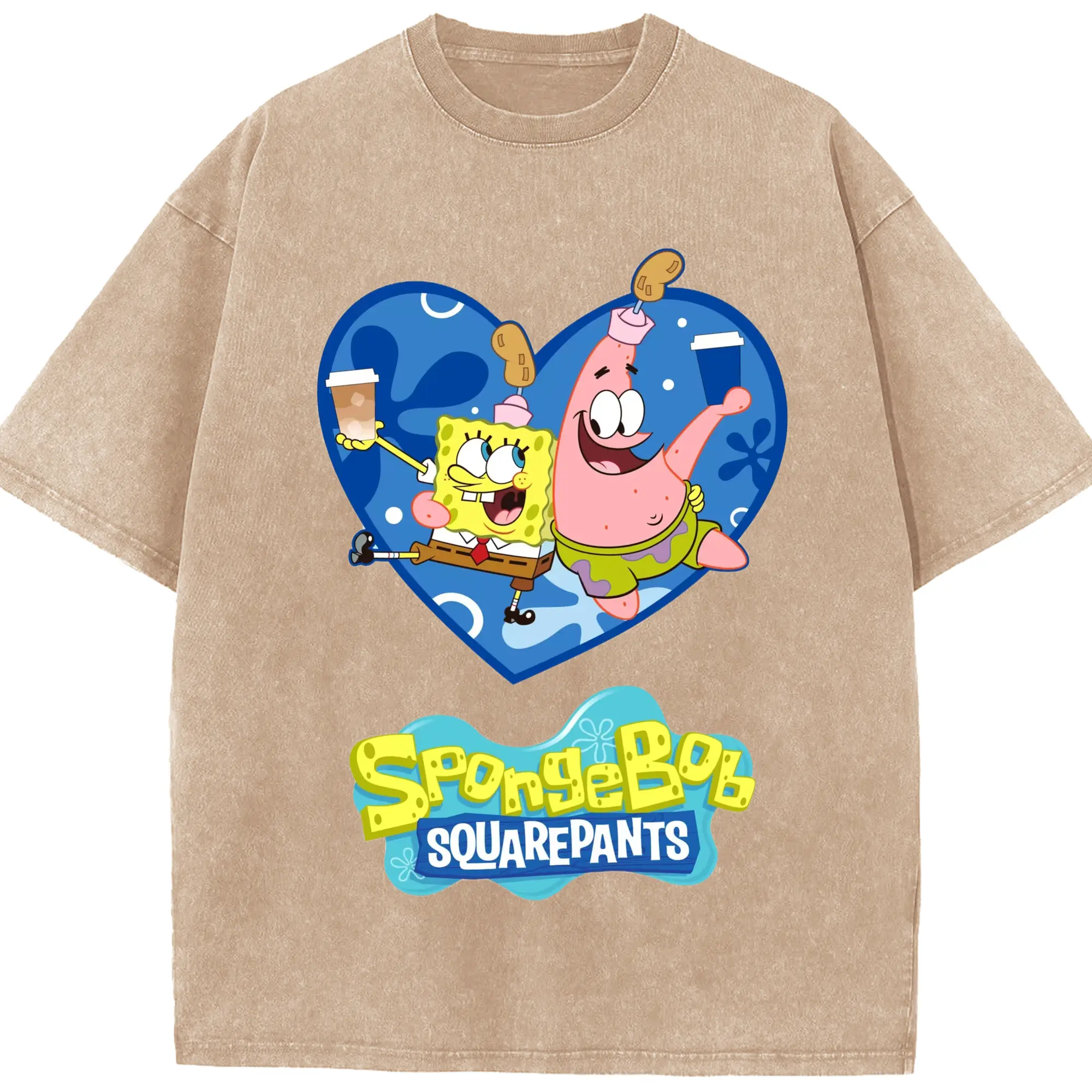 Spongebob squarepants and Patrick Star tee - Washed Vintage Look 230g Cotton Oversized T-Shirt With Front Heat Transfer Print – Soft, Lightweight, Stylish Fit – Comfortable Casual Wear For Sports & Everyday Use