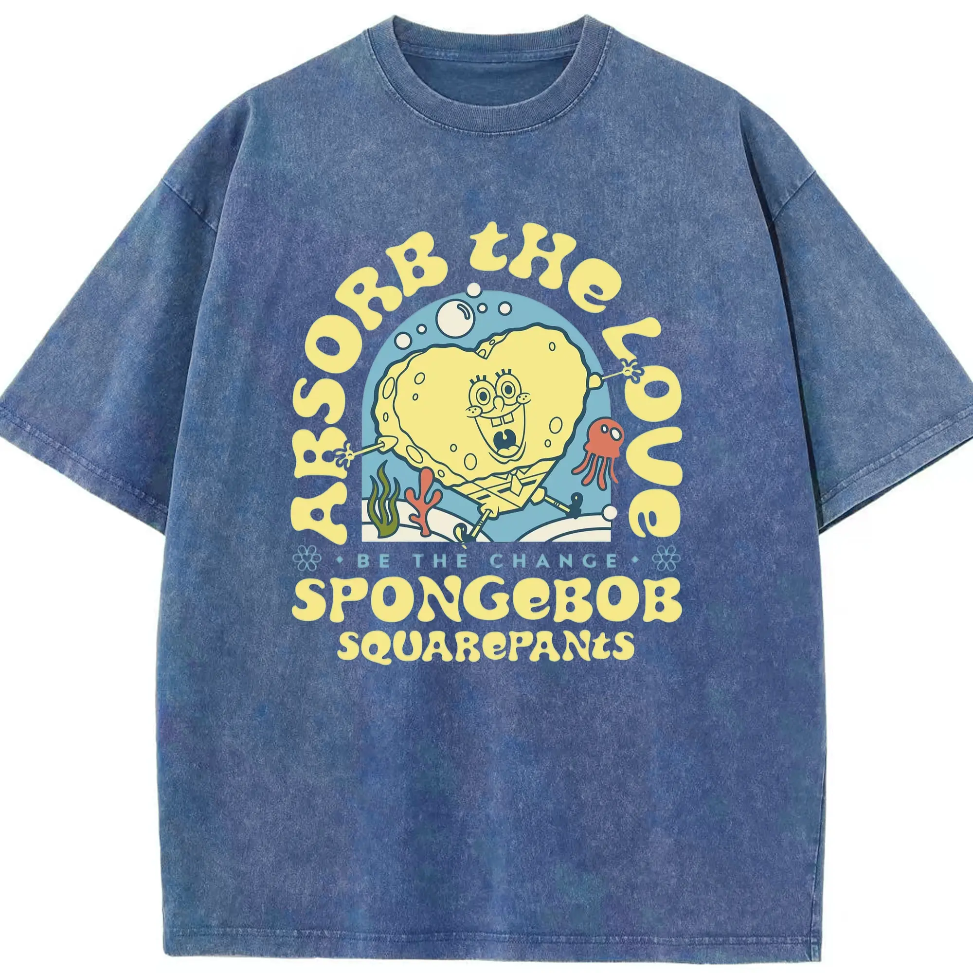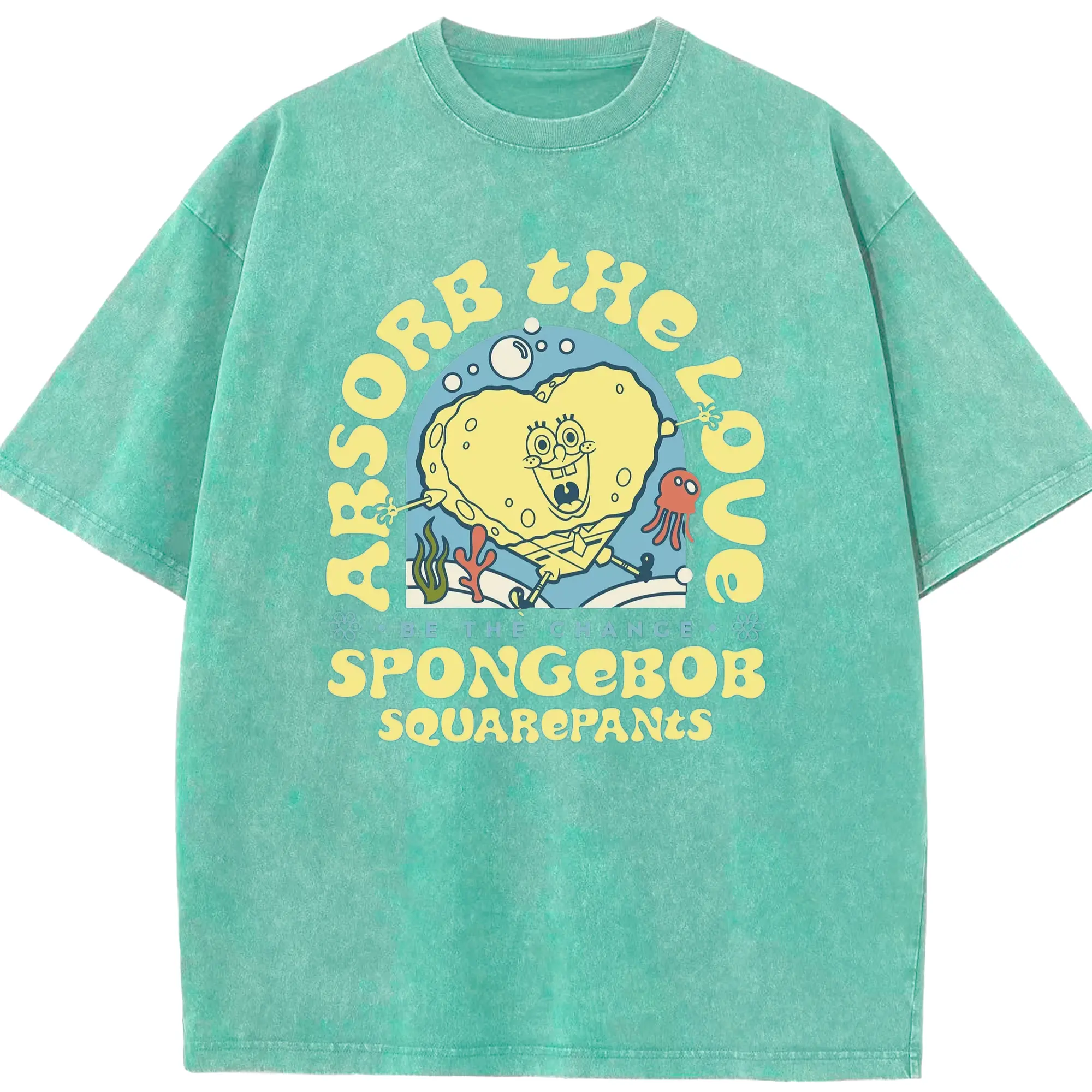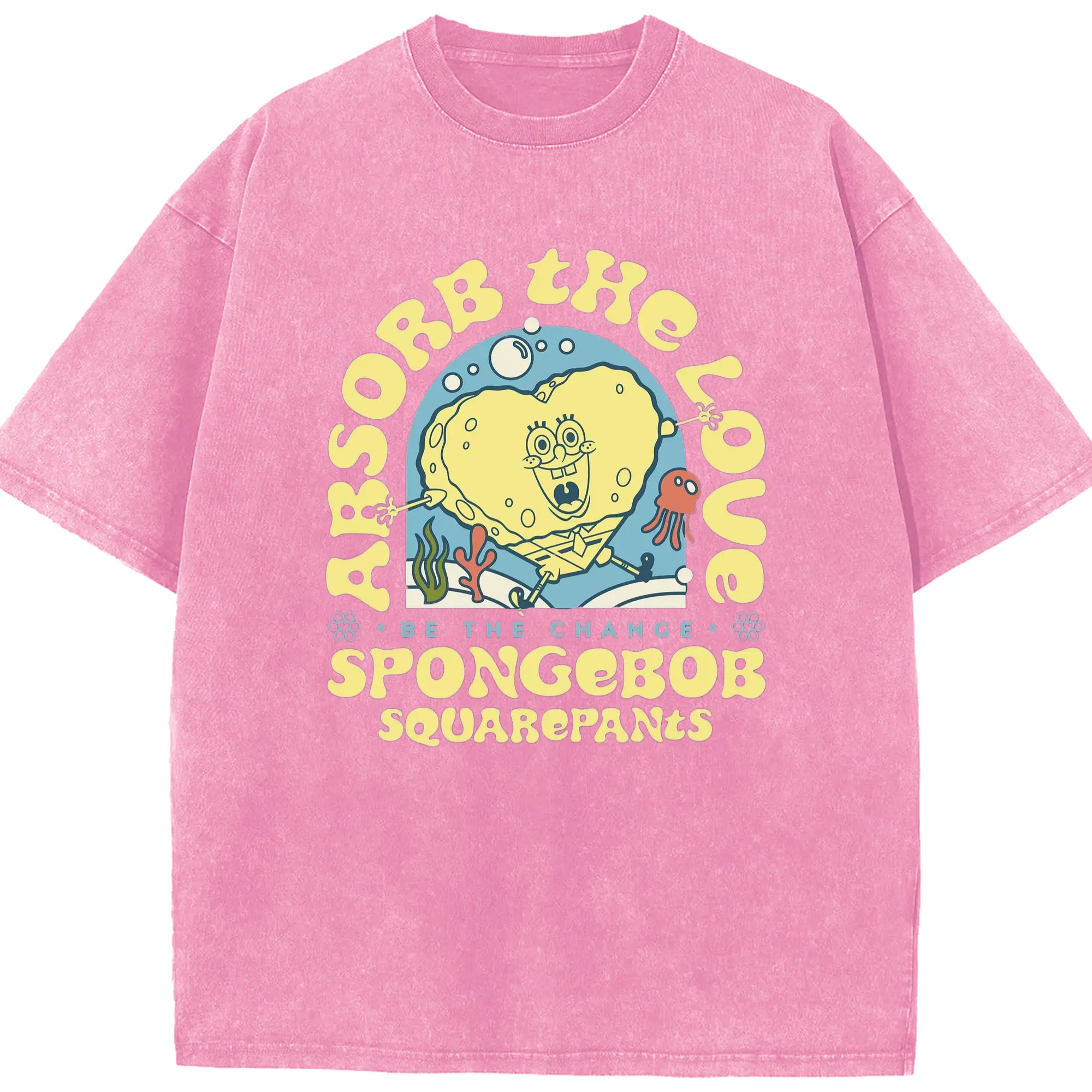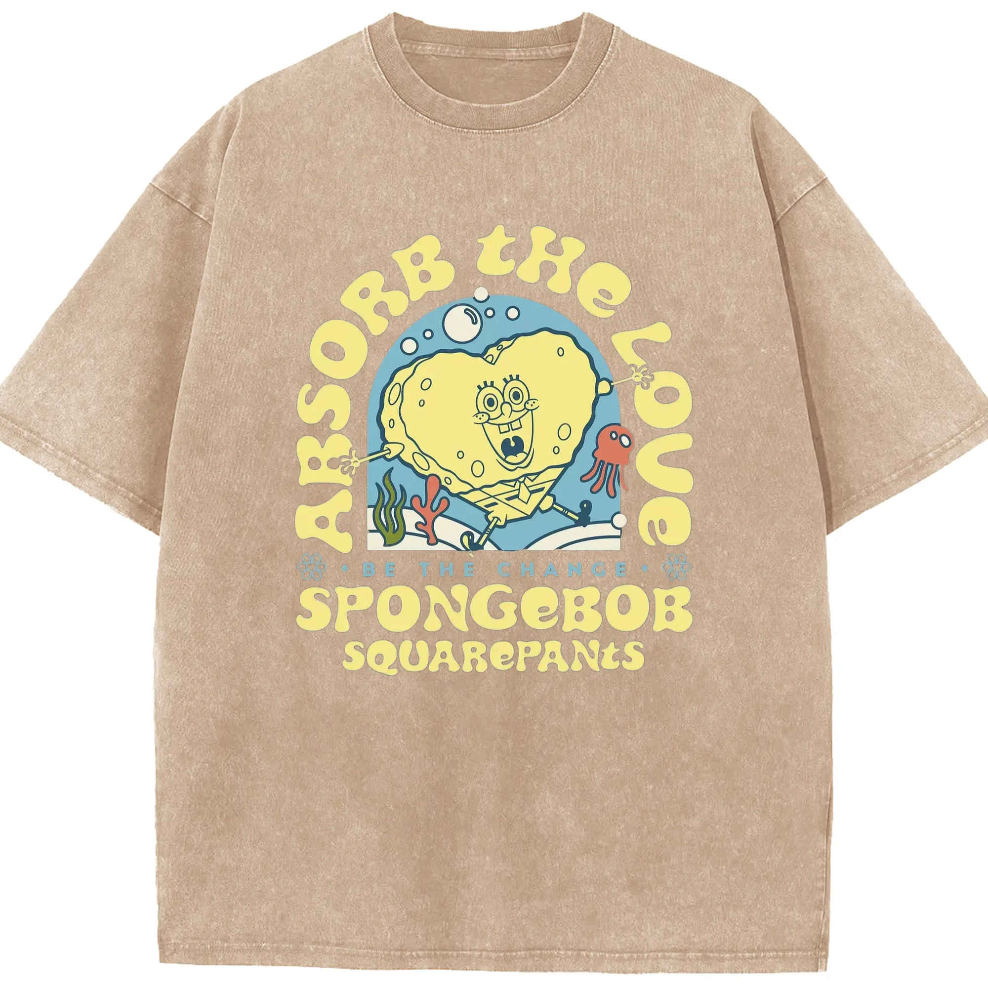 Spongebob squarepants art t shirt - Washed Vintage Look 230g Cotton Oversized T-Shirt With Front Heat Transfer Print – Soft, Lightweight, Stylish Fit – Comfortable Casual Wear For Sports & Everyday Use