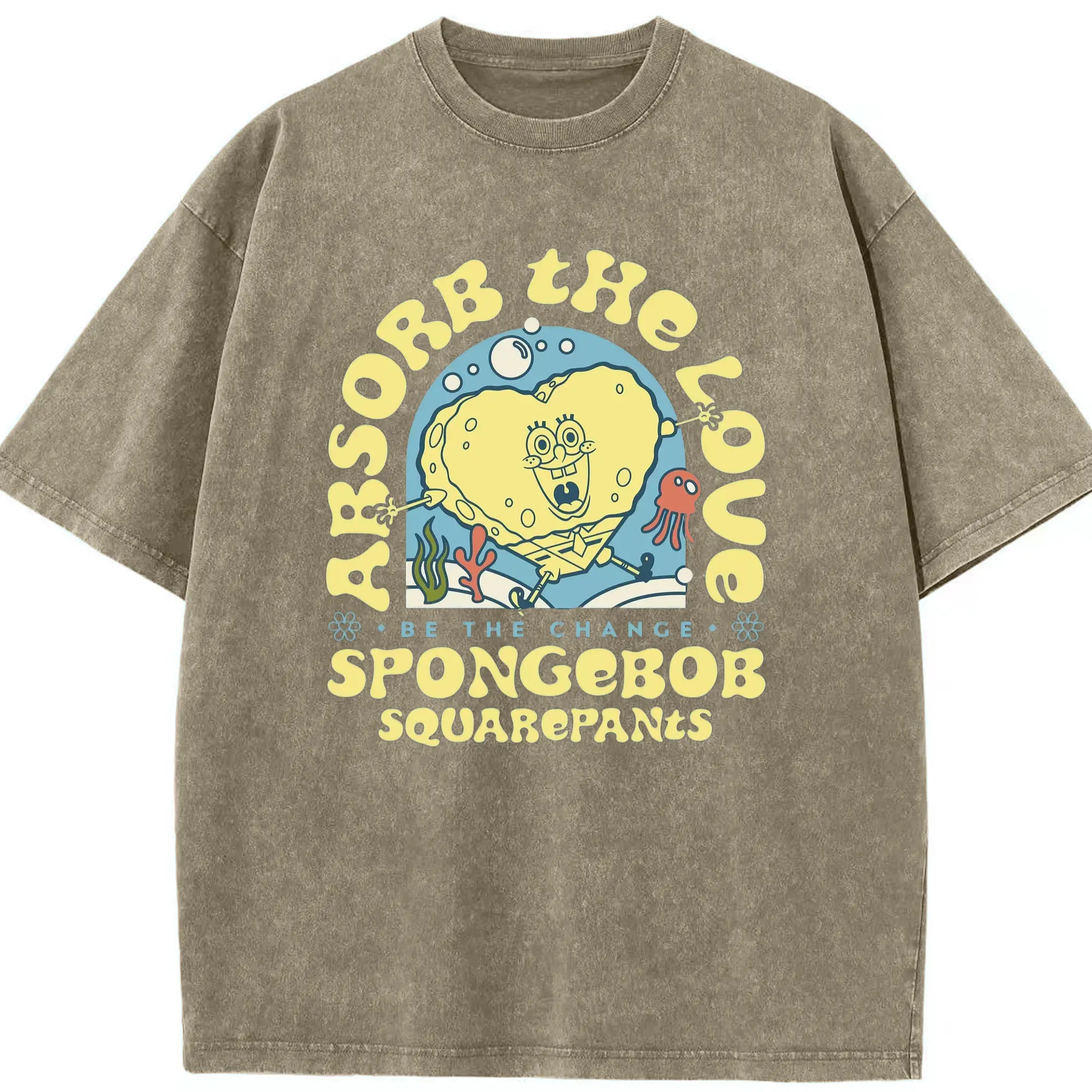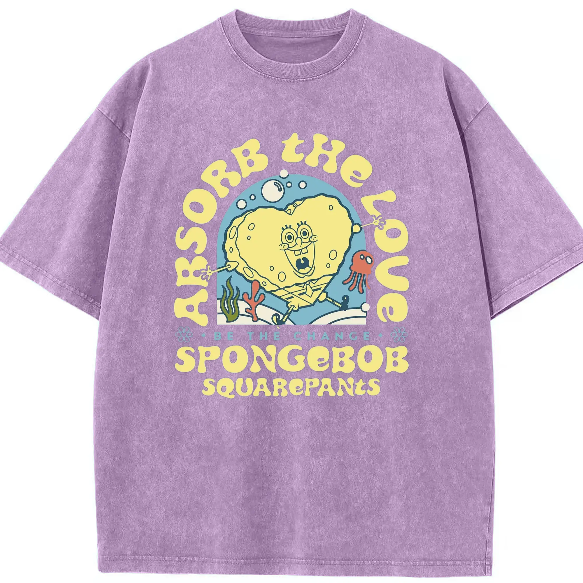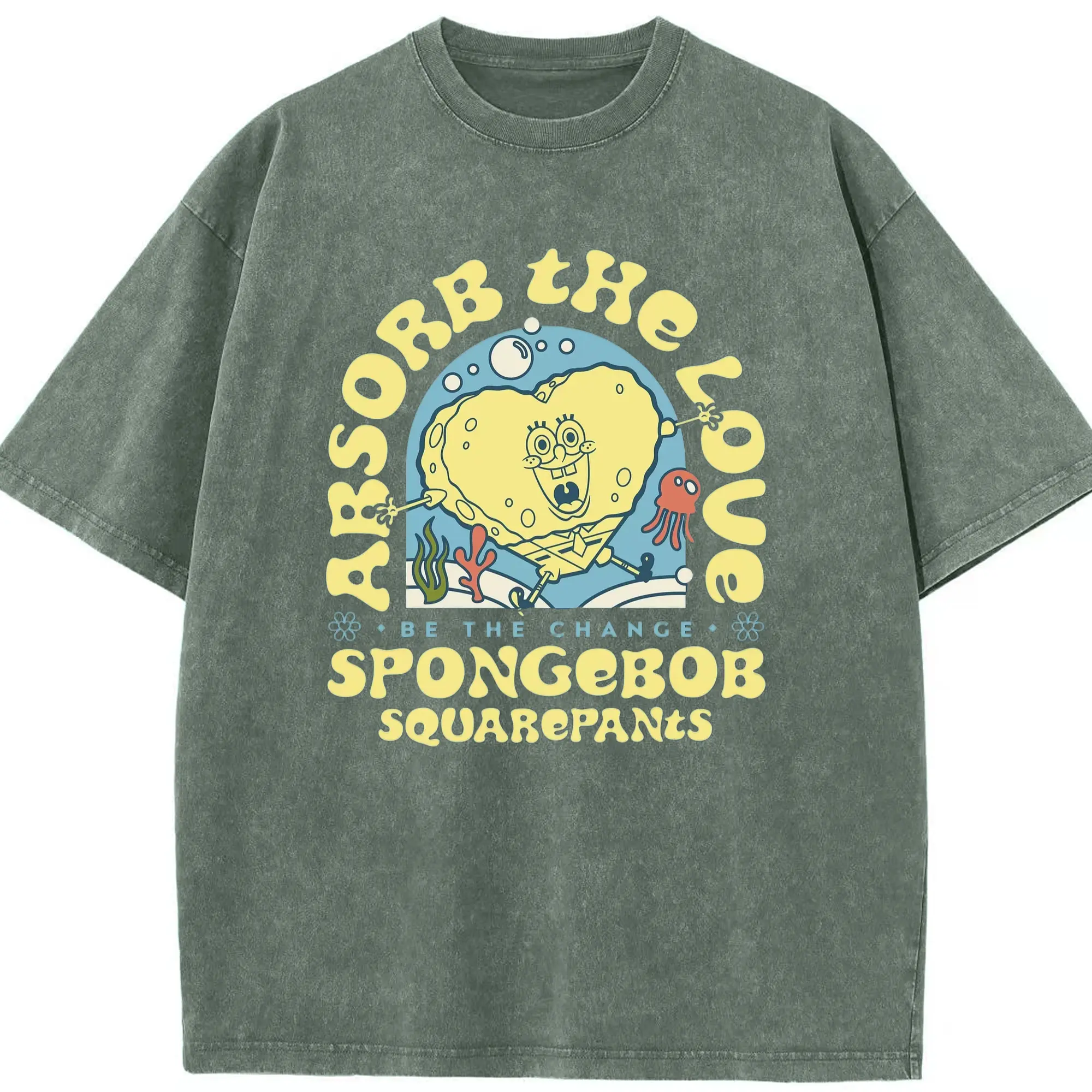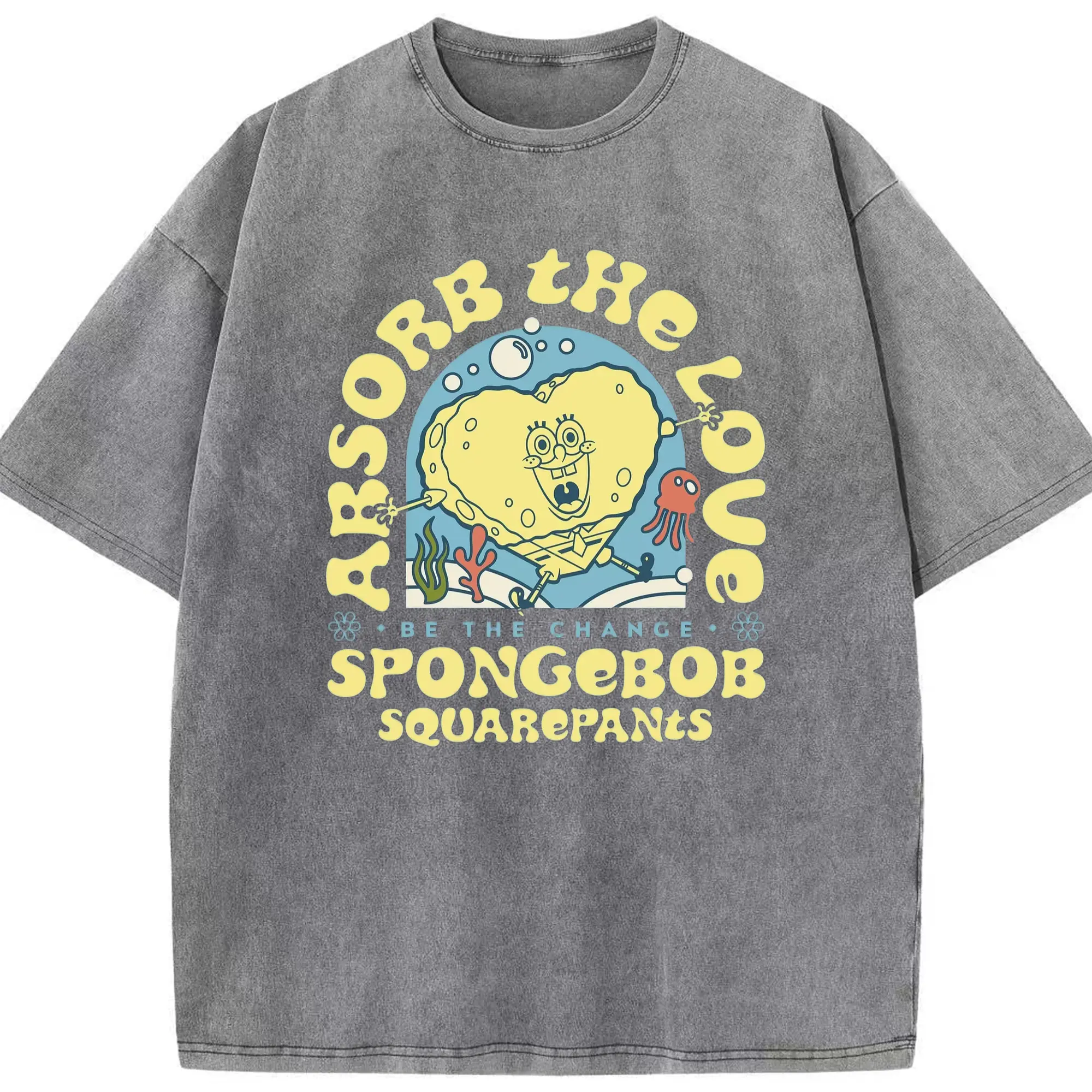 Spongebob squarepants art t shirt - Washed Vintage Look 230g Cotton Oversized T-Shirt With Front Heat Transfer Print – Soft, Lightweight, Stylish Fit – Comfortable Casual Wear For Sports & Everyday Use