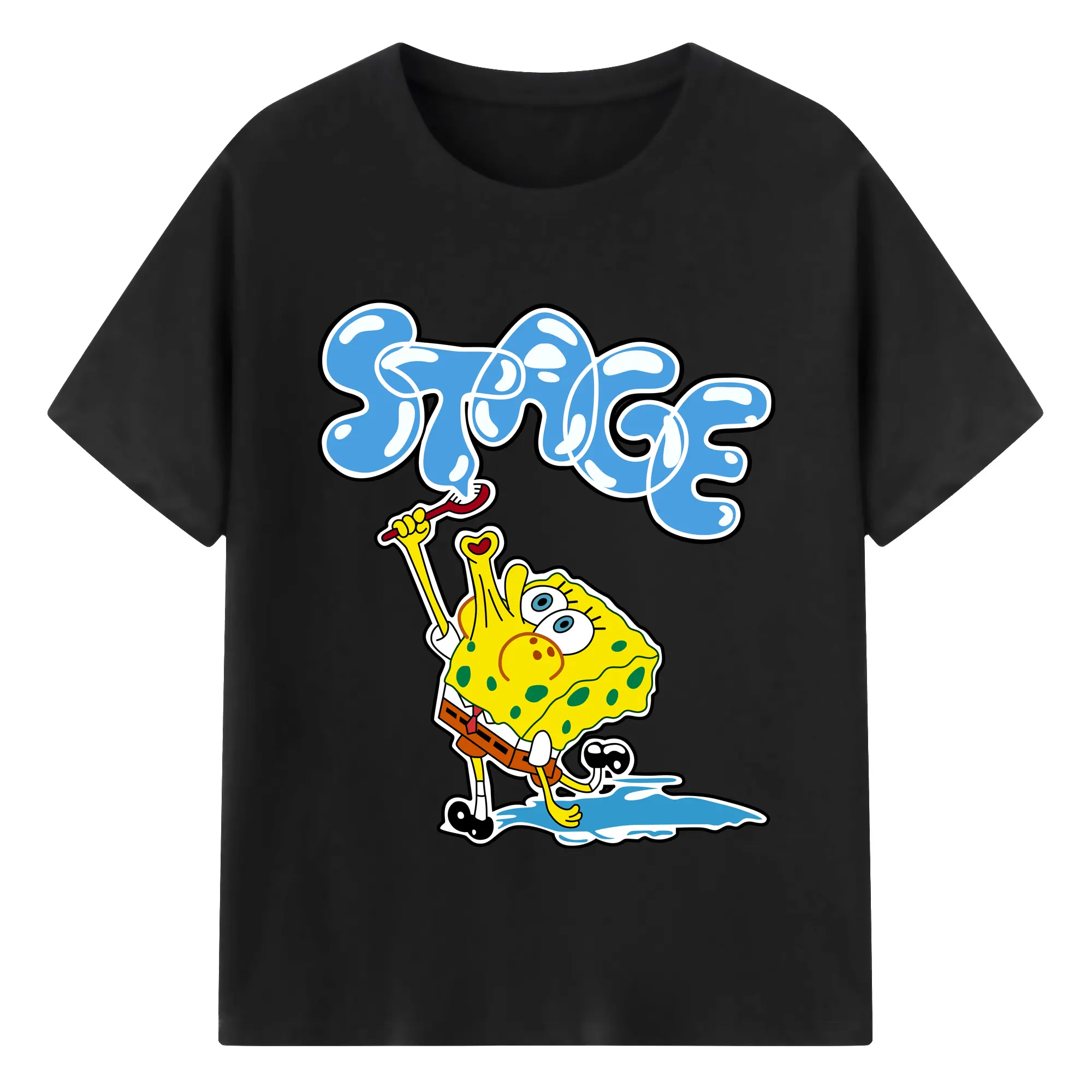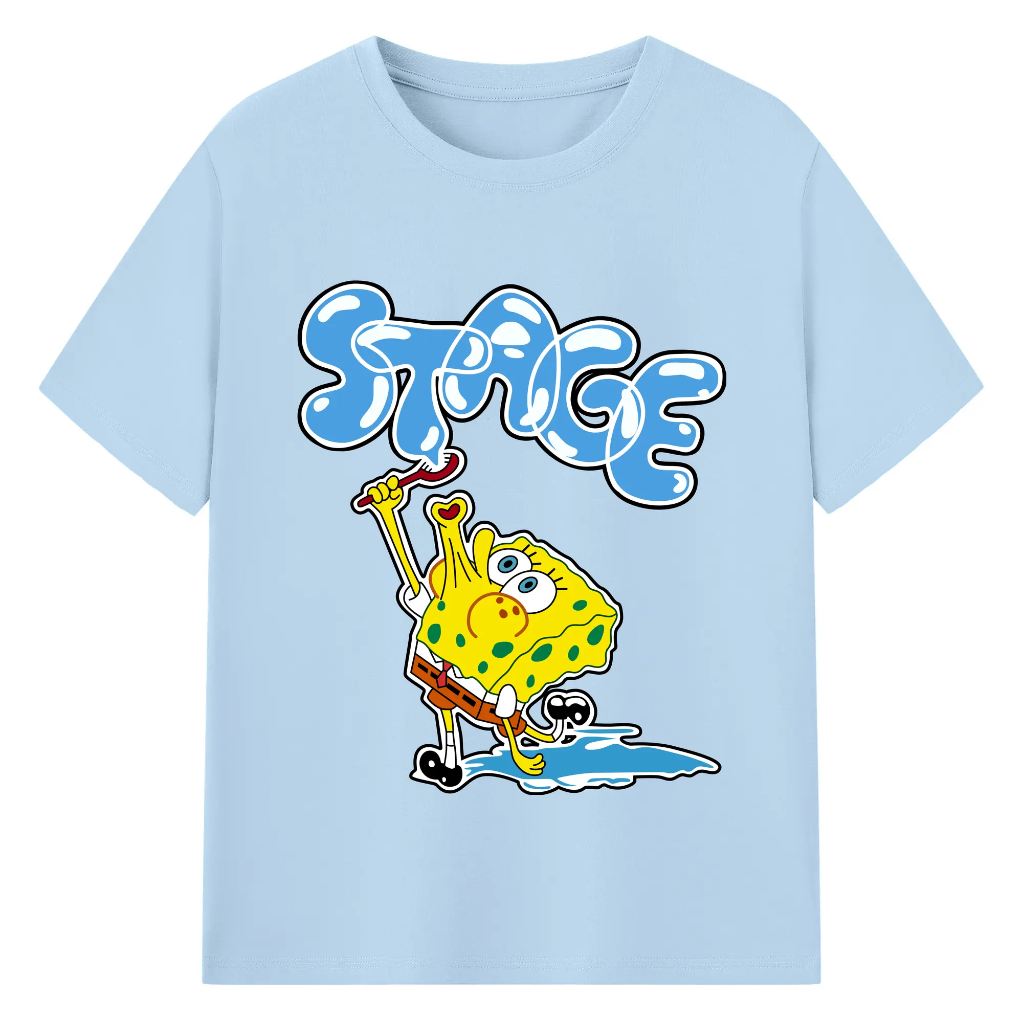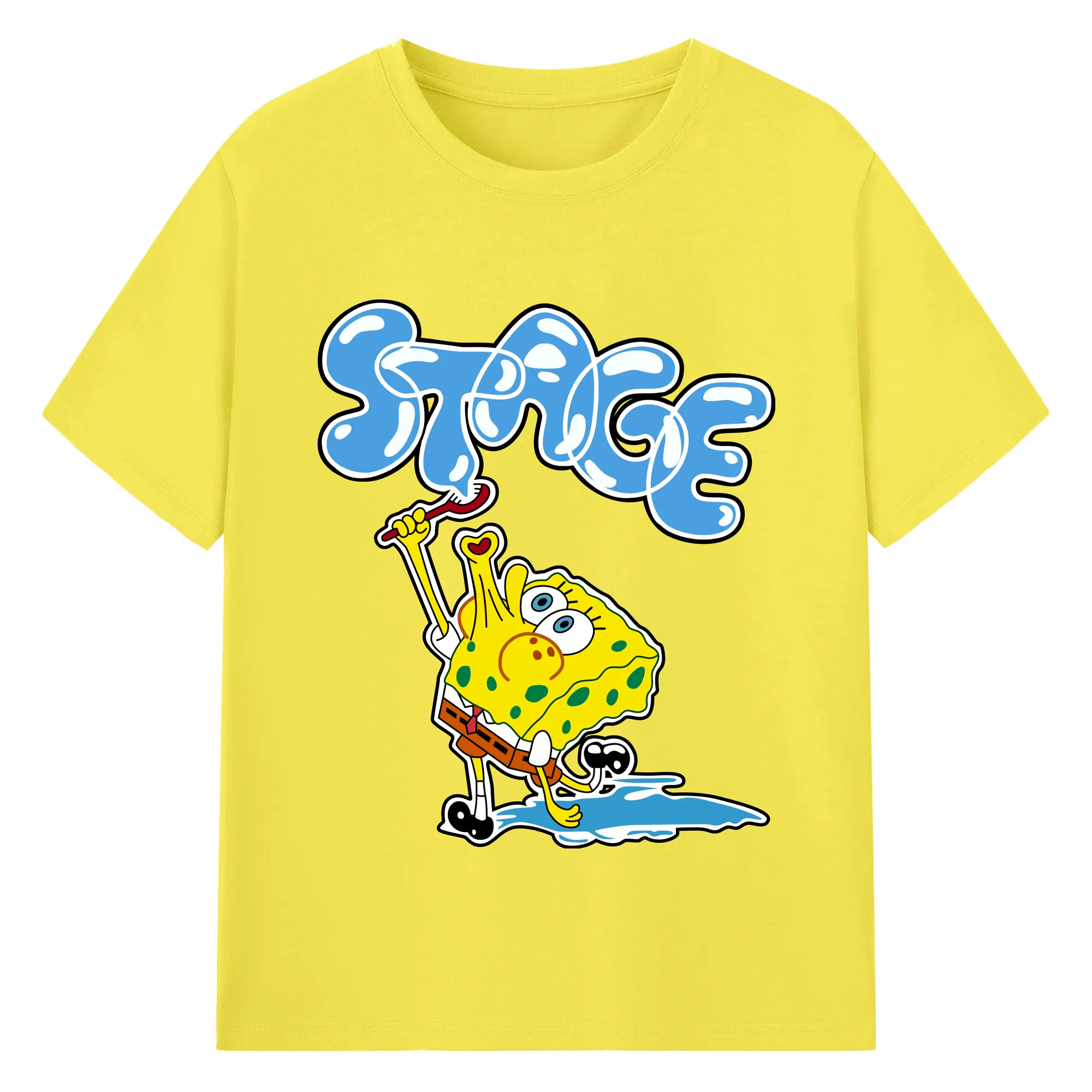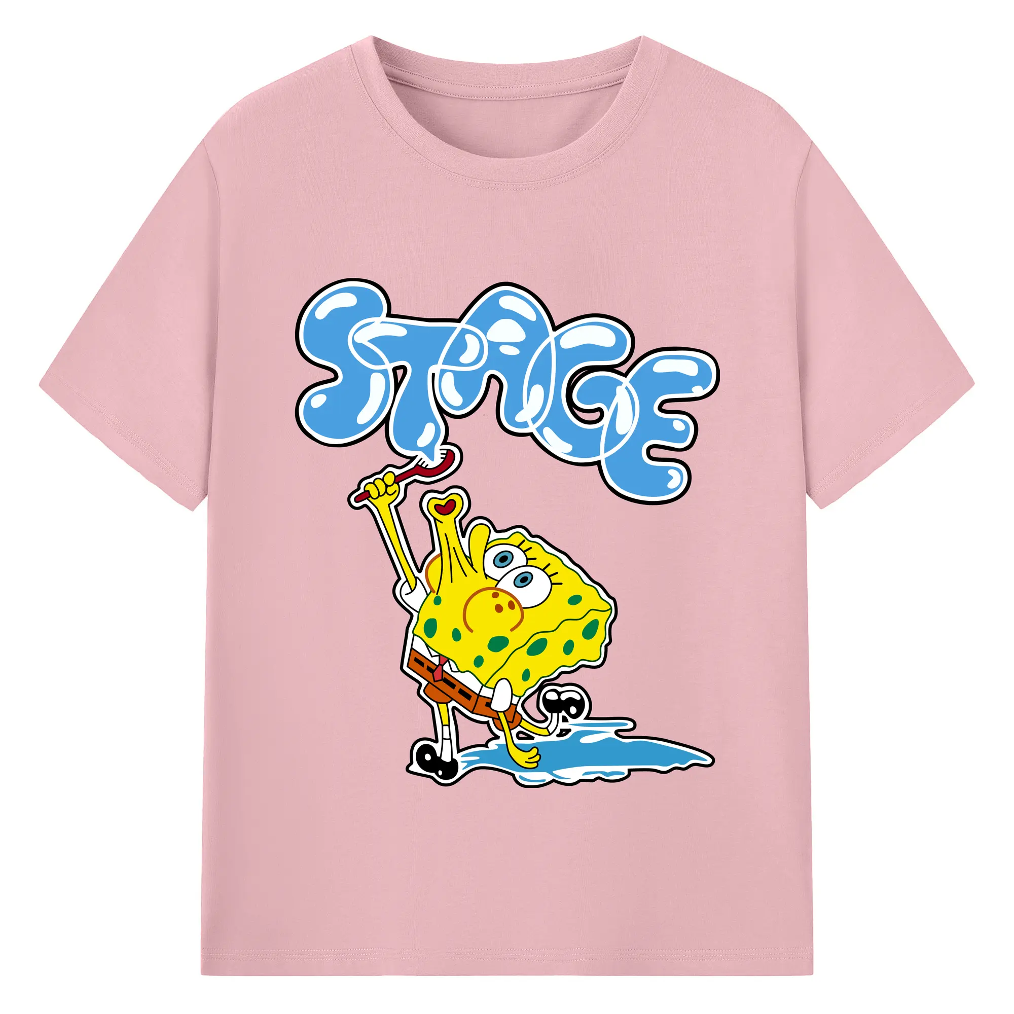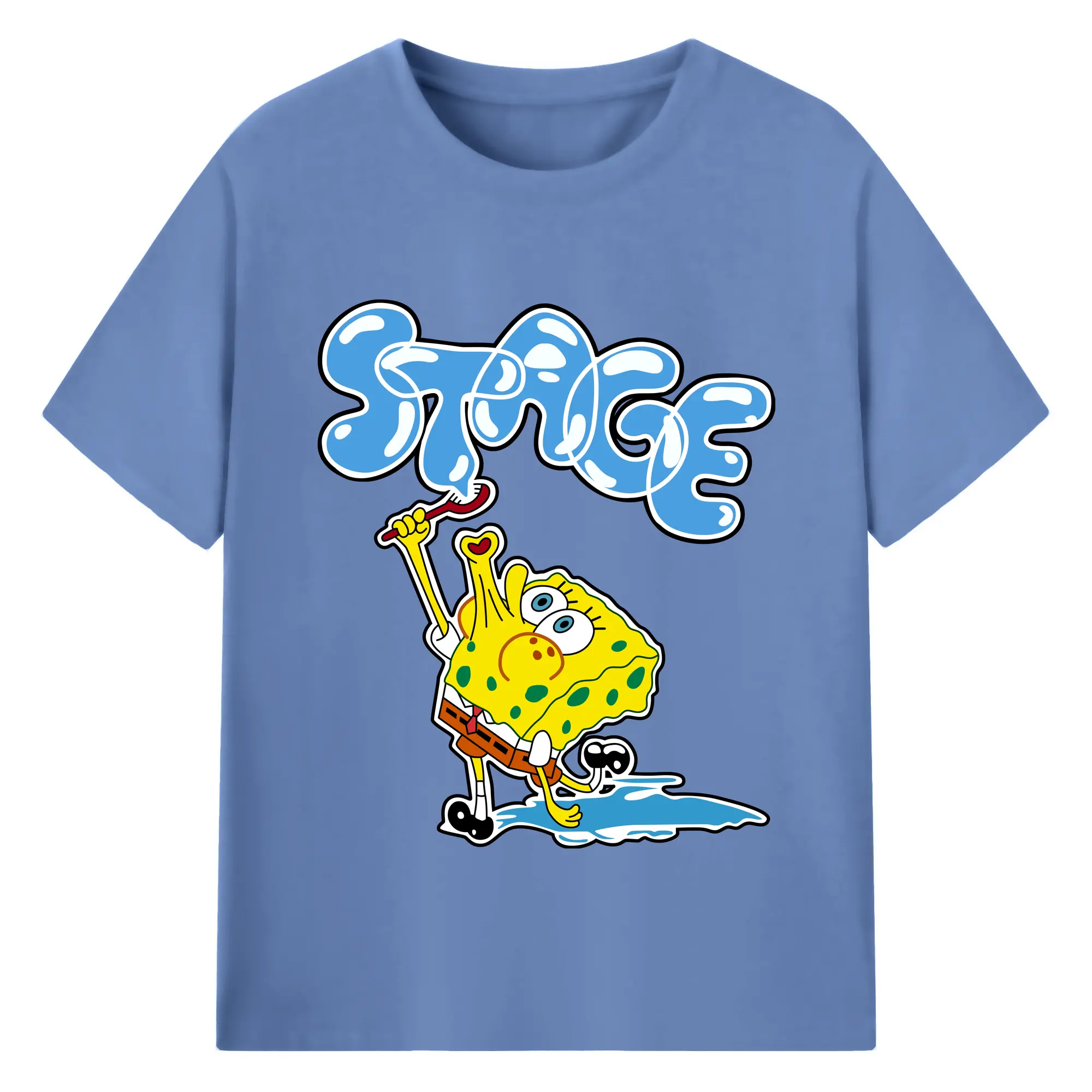 Spongebob squarepants blow bubbles designs t shirt - 180g Cotton T-Shirt With Front Heat Transfer Print – Soft, Lightweight, Fitted Design – Comfortable Casual Wear For Sports & Everyday Use