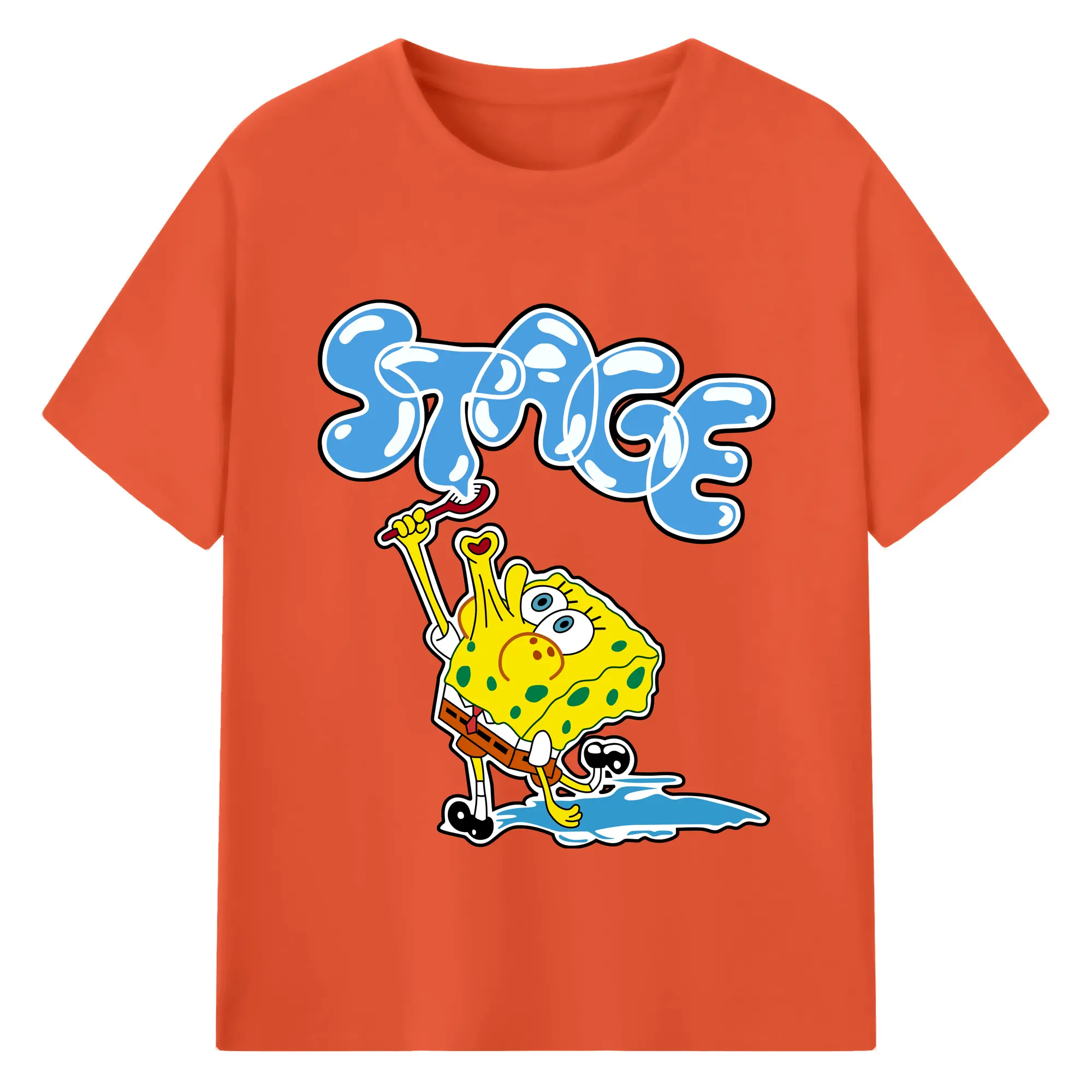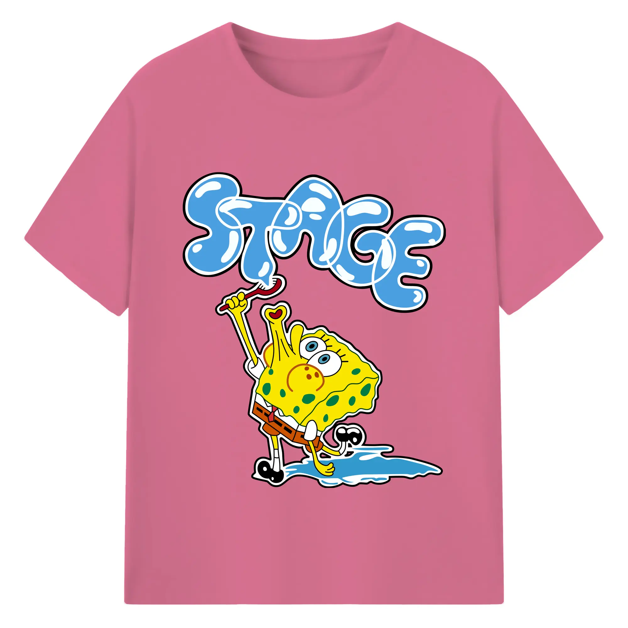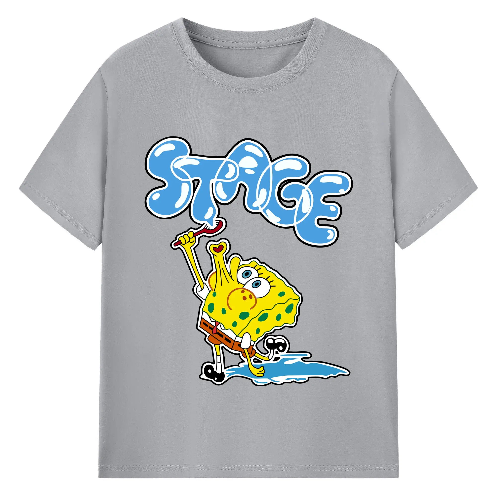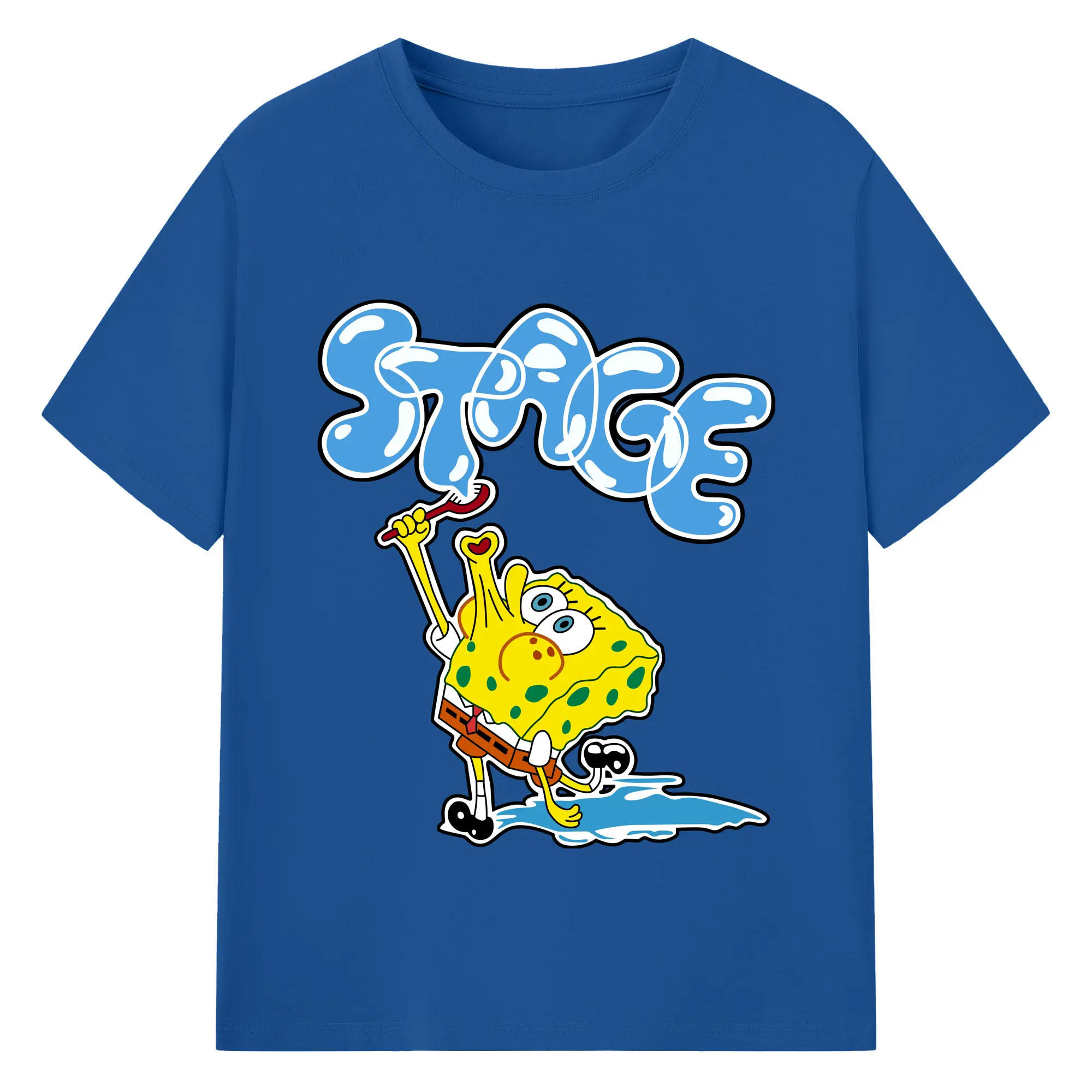 Spongebob squarepants blow bubbles designs t shirt - 180g Cotton T-Shirt With Front Heat Transfer Print – Soft, Lightweight, Fitted Design – Comfortable Casual Wear For Sports & Everyday Use