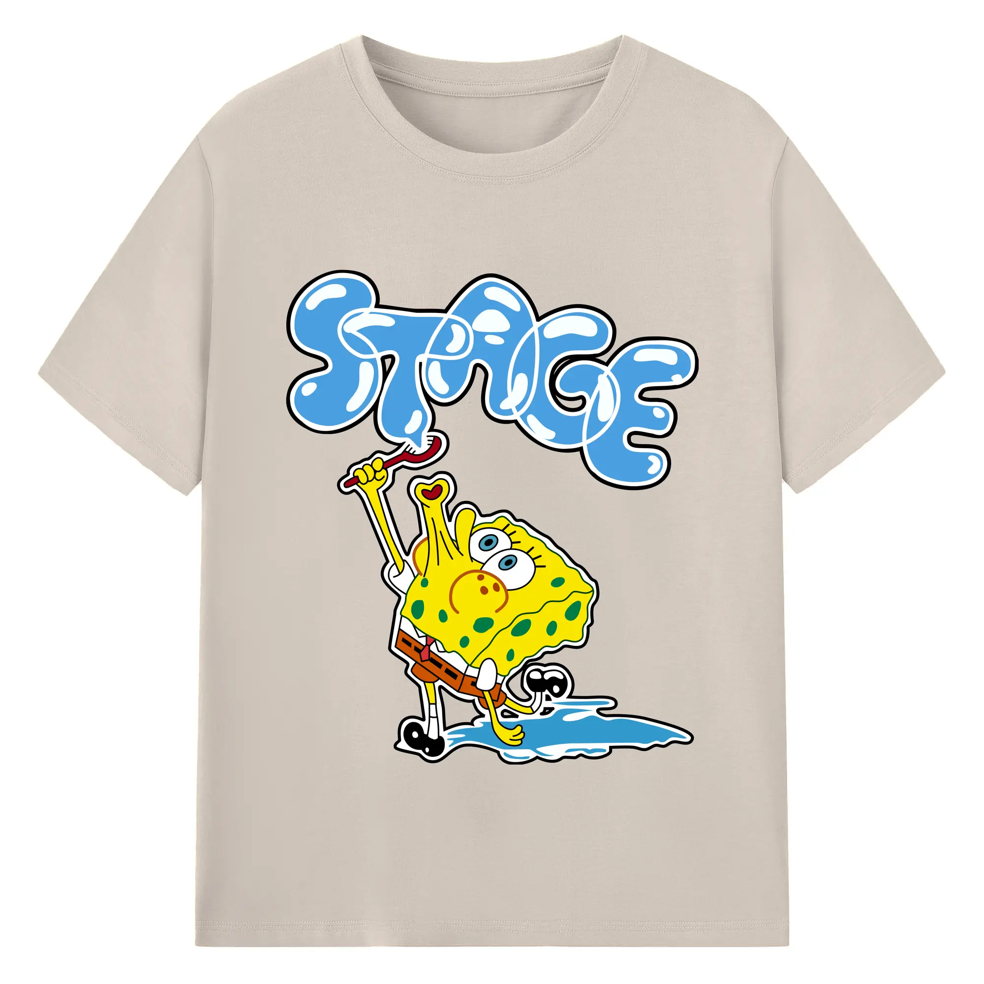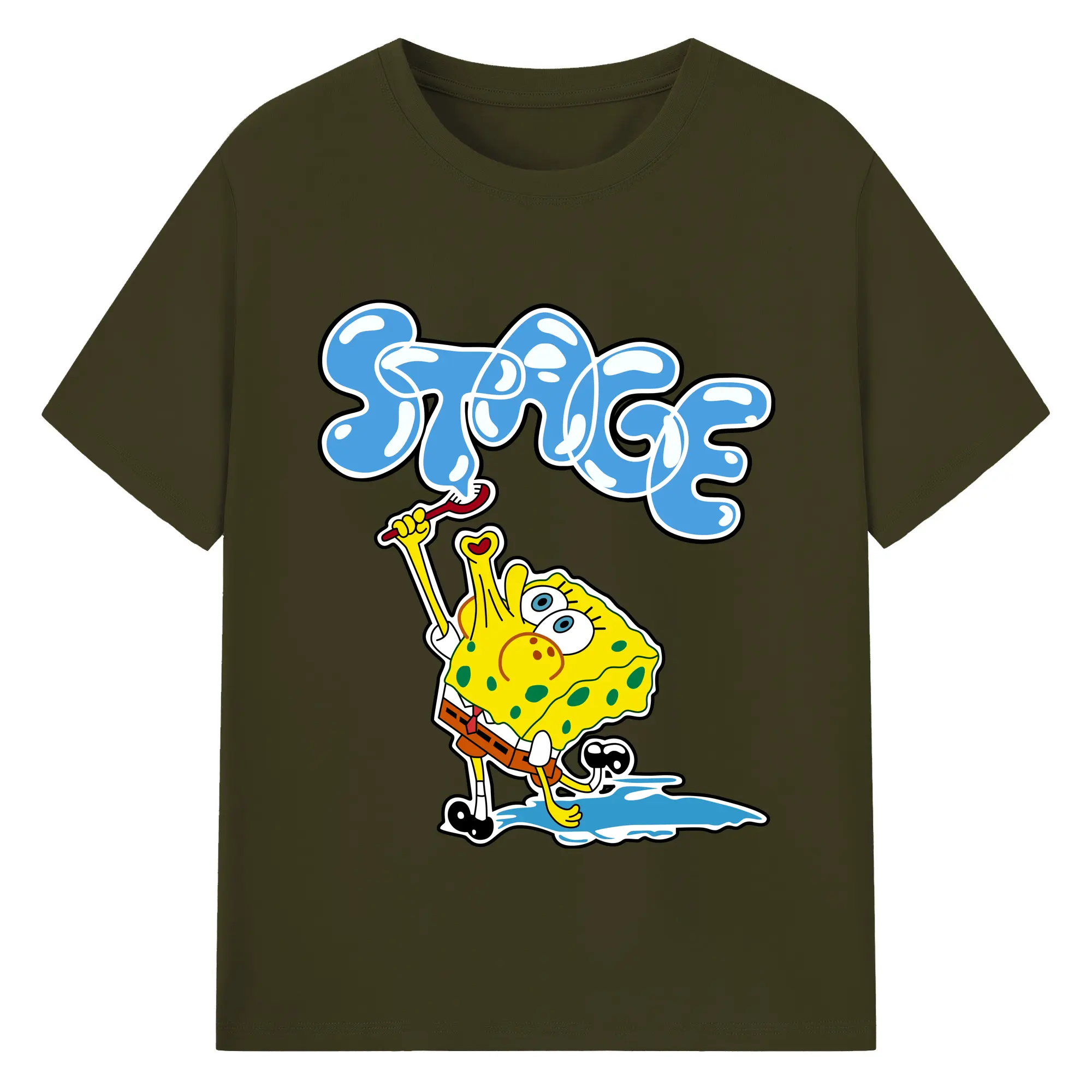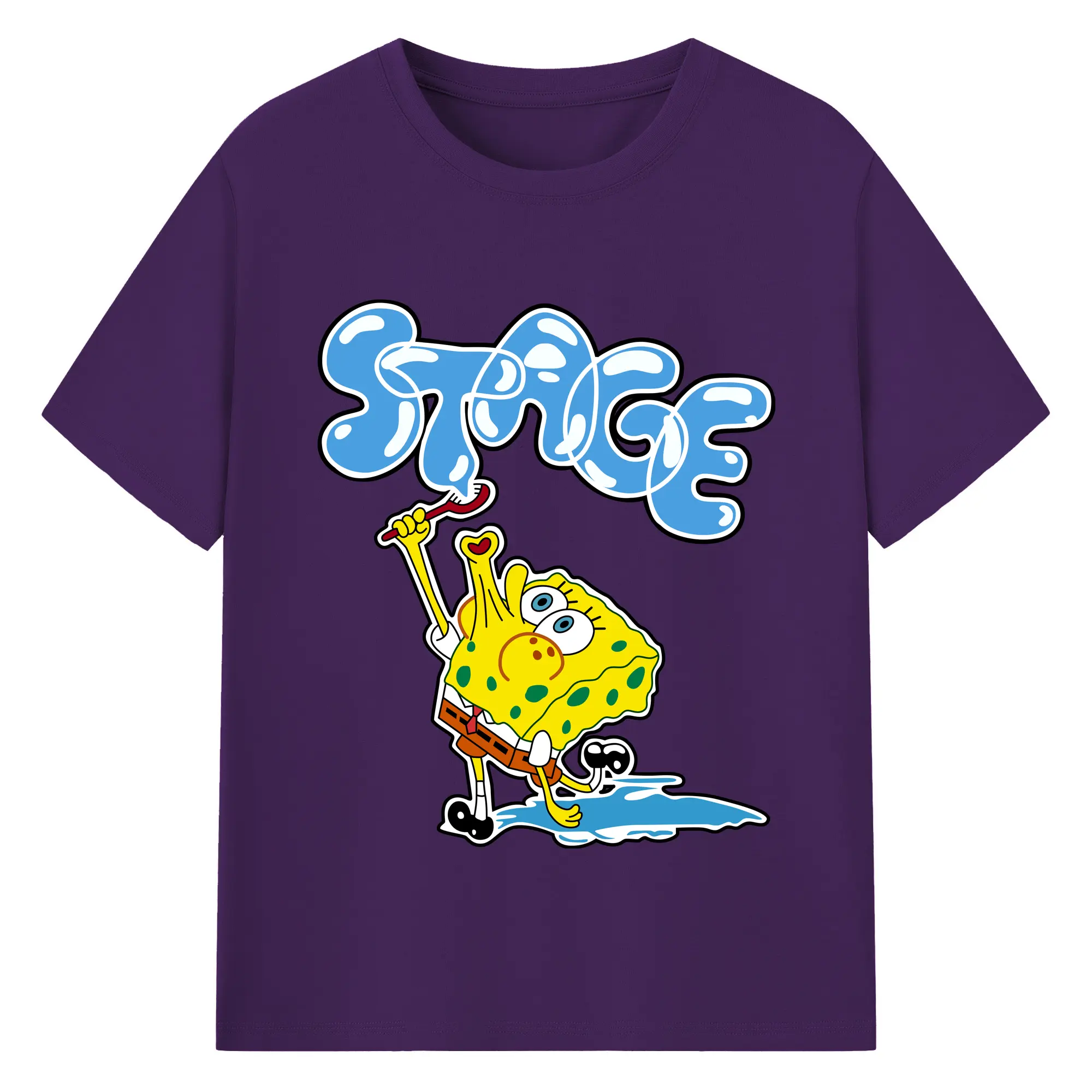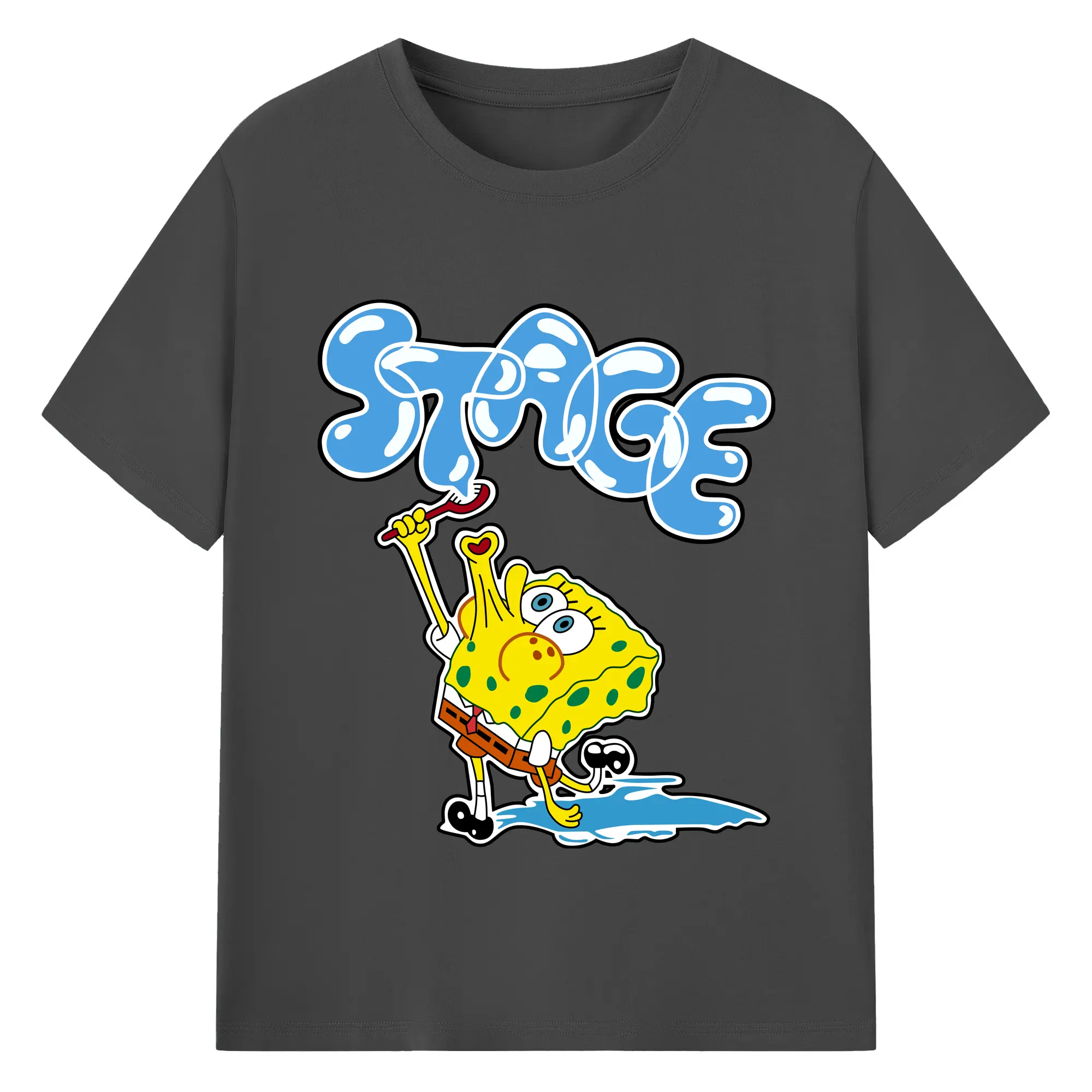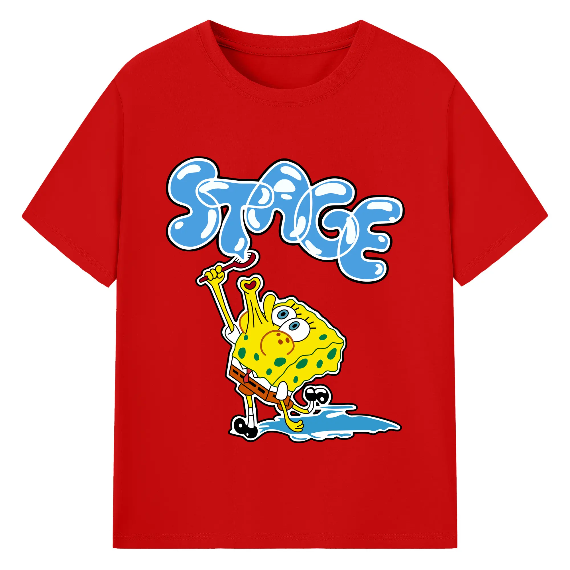 Spongebob squarepants blow bubbles designs t shirt - 180g Cotton T-Shirt With Front Heat Transfer Print – Soft, Lightweight, Fitted Design – Comfortable Casual Wear For Sports & Everyday Use