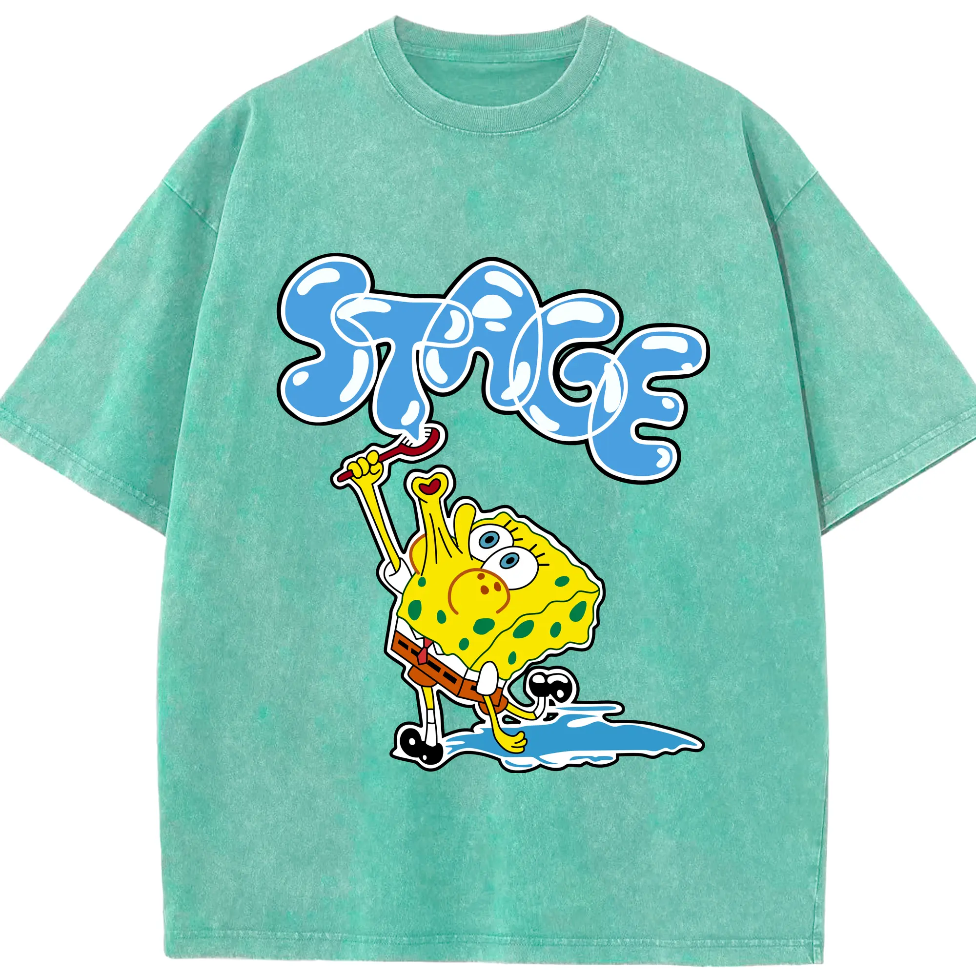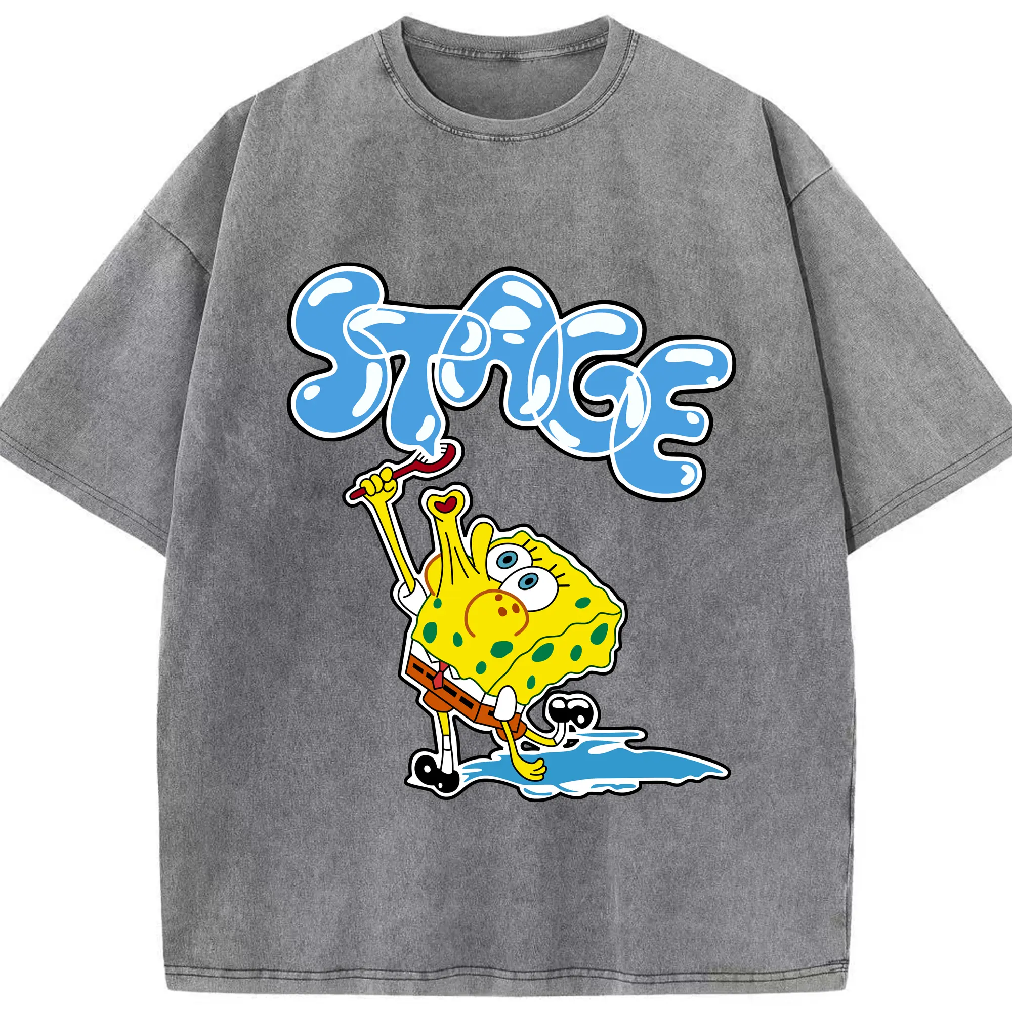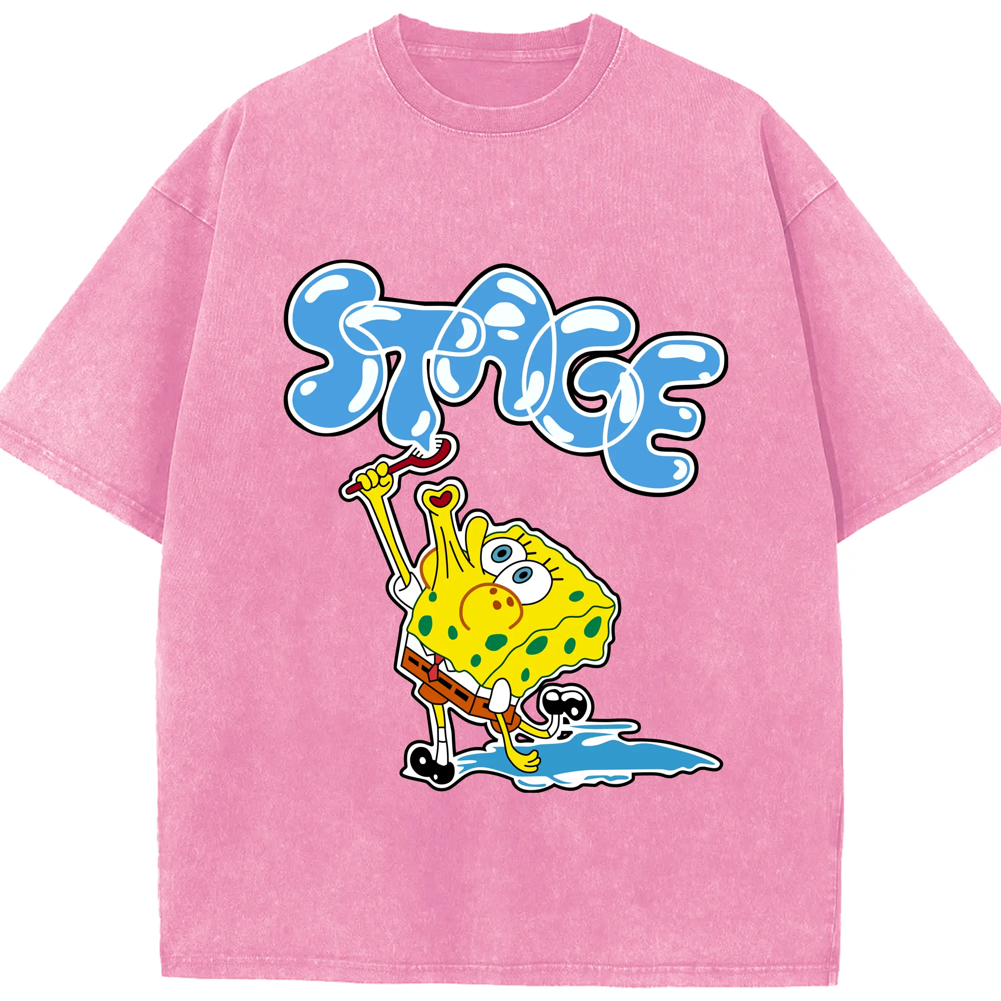 Spongebob squarepants blow bubbles designs t shirt - Washed Vintage Look 230g Cotton Oversized T-Shirt With Front Heat Transfer Print – Soft, Lightweight, Stylish Fit – Comfortable Casual Wear For Sports & Everyday Use