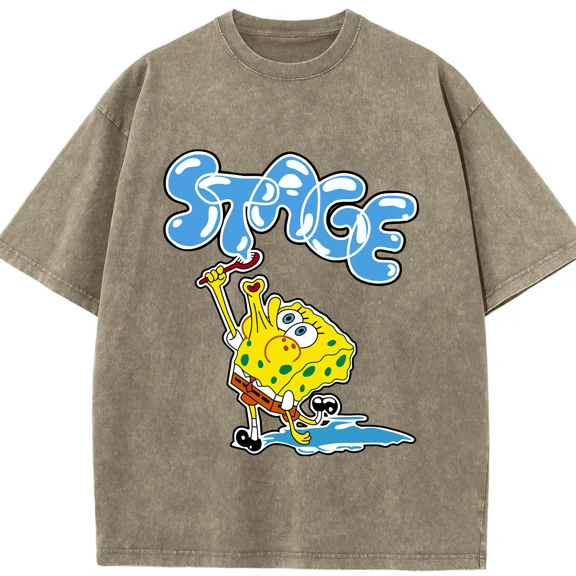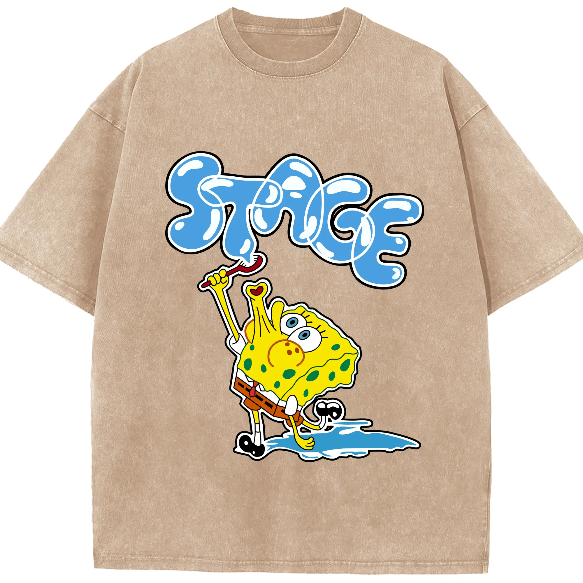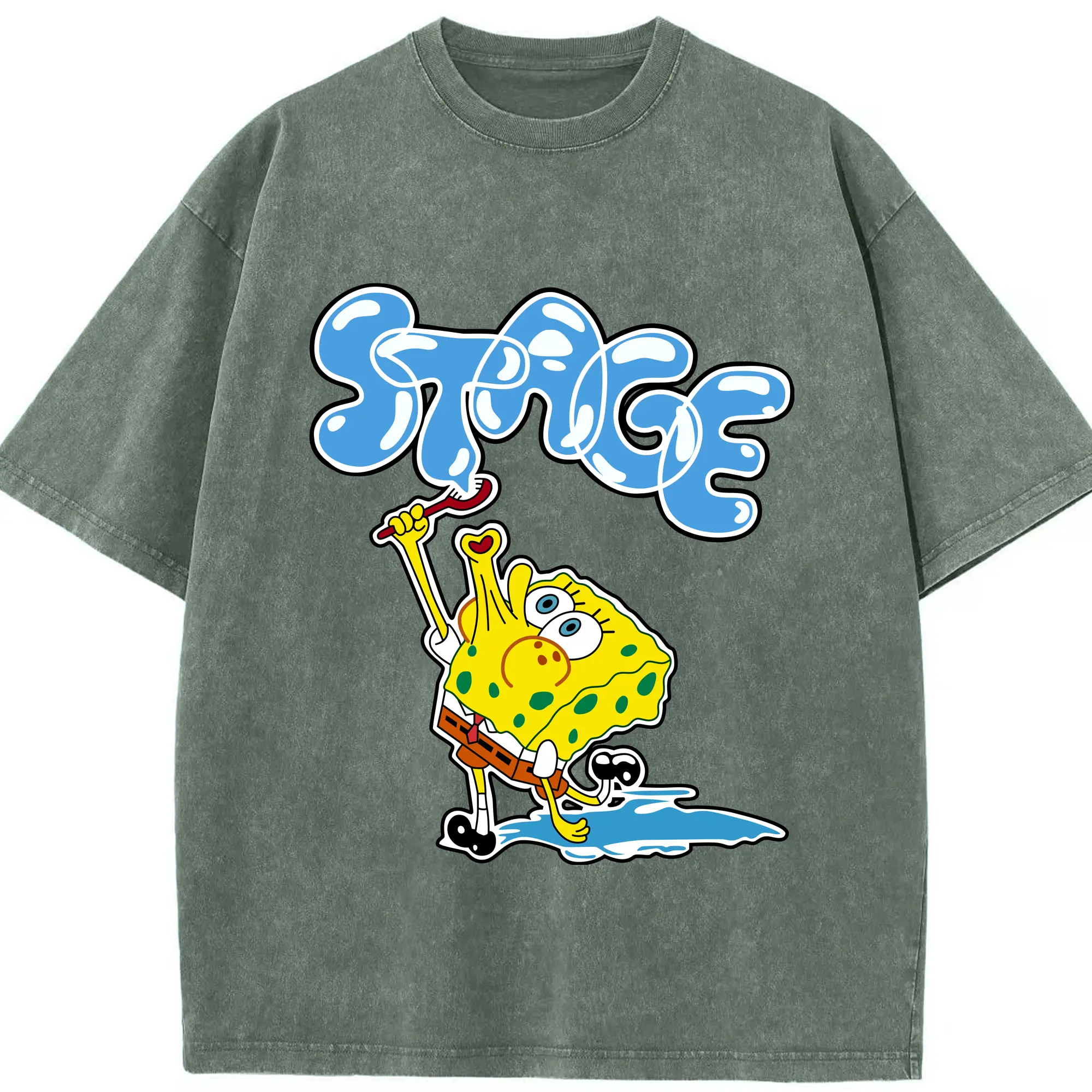 Spongebob squarepants blow bubbles designs t shirt - Washed Vintage Look 230g Cotton Oversized T-Shirt With Front Heat Transfer Print – Soft, Lightweight, Stylish Fit – Comfortable Casual Wear For Sports & Everyday Use
