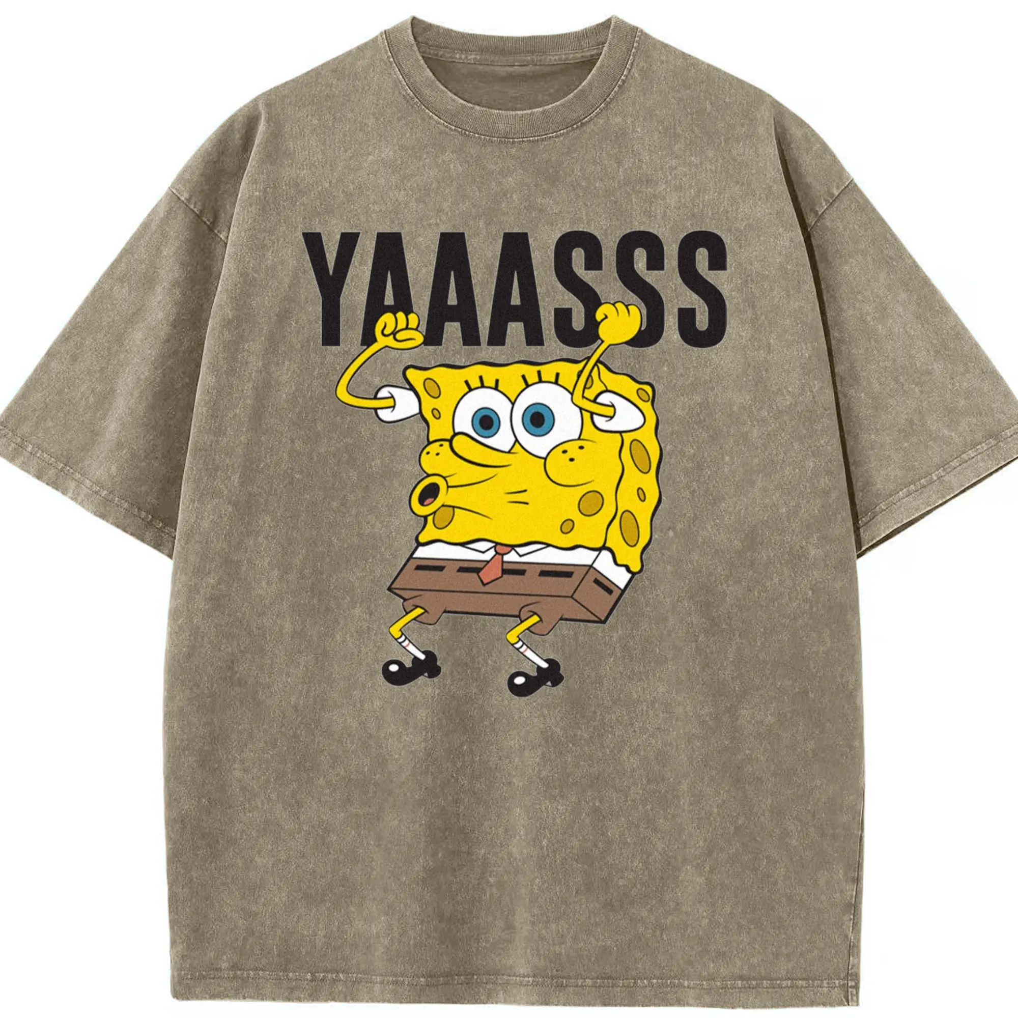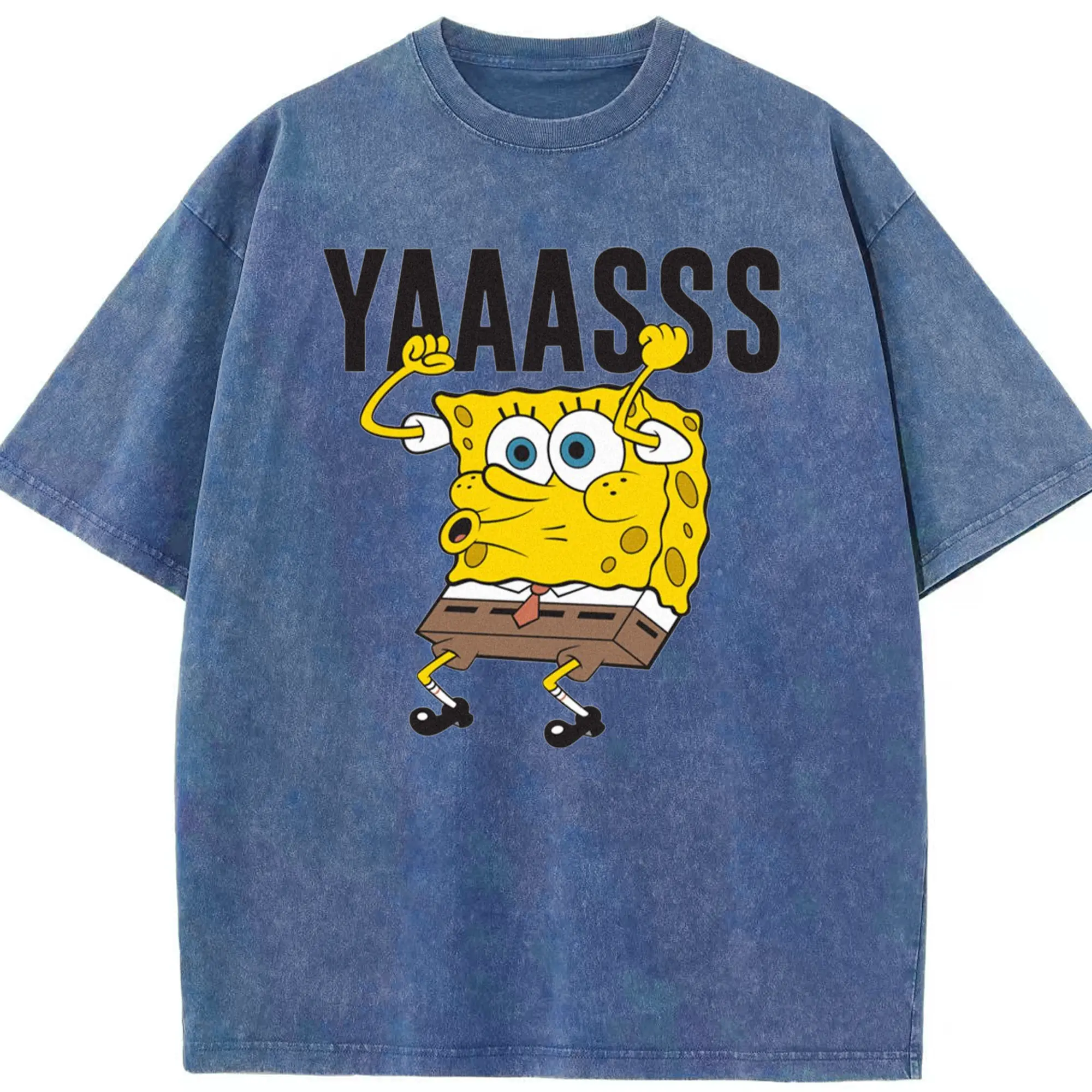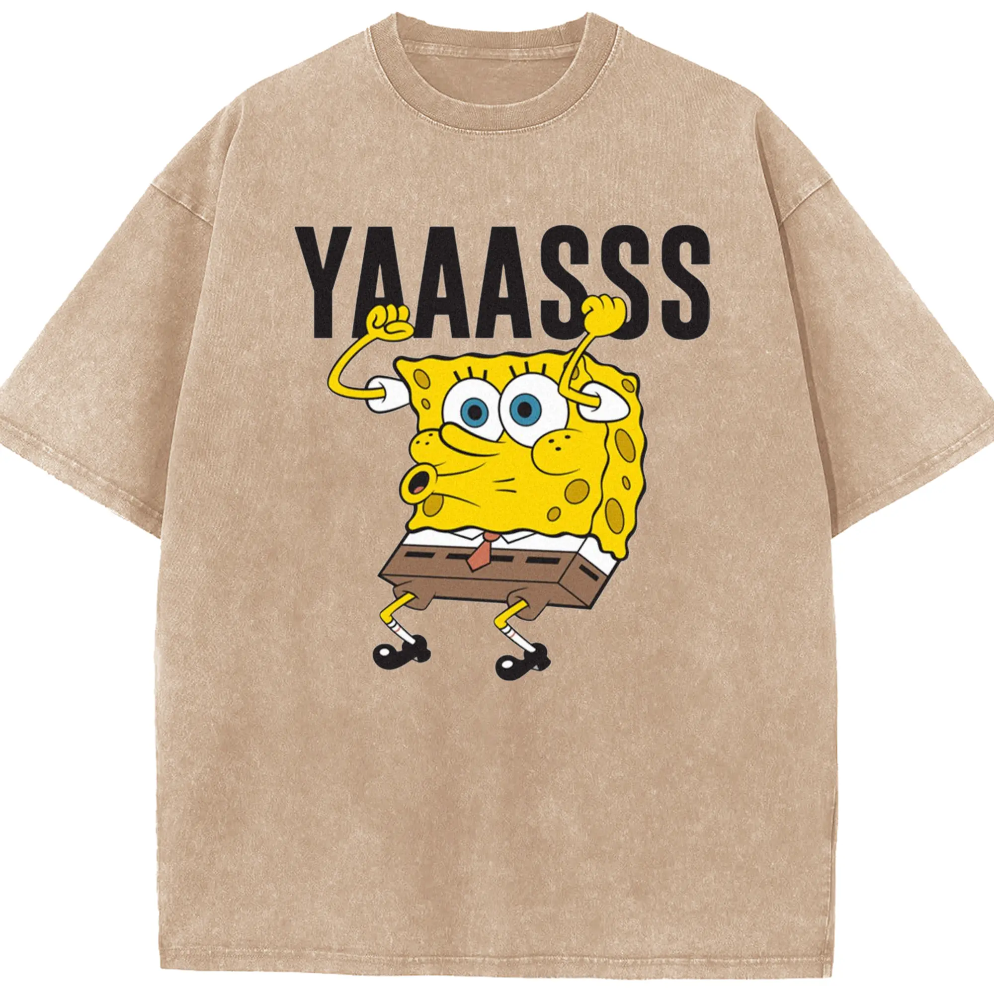 Spongebob squarepants cheer designs t shirt - Washed Vintage Look 230g Cotton Oversized T-Shirt With Front Heat Transfer Print – Soft, Lightweight, Stylish Fit – Comfortable Casual Wear For Sports & Everyday Use
