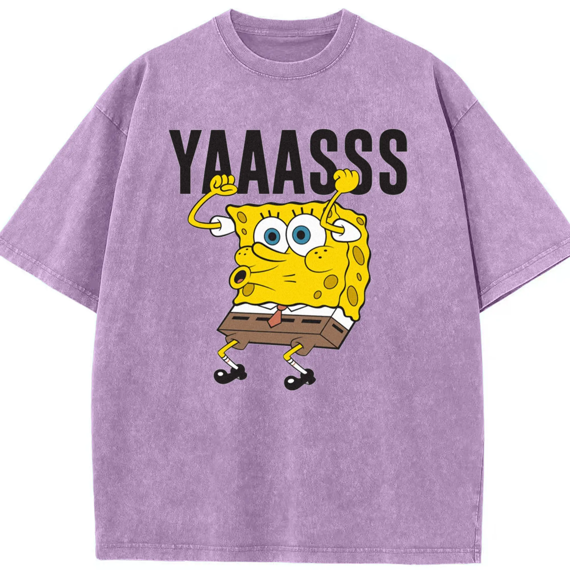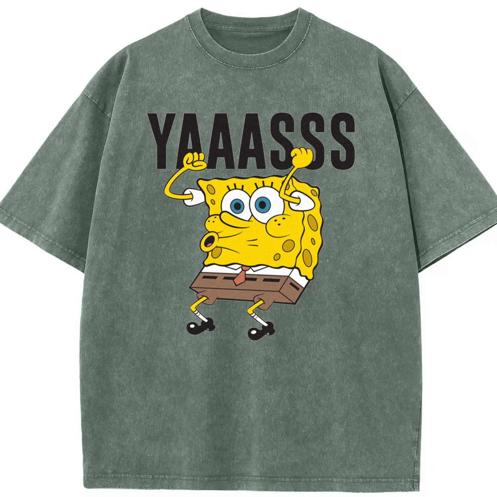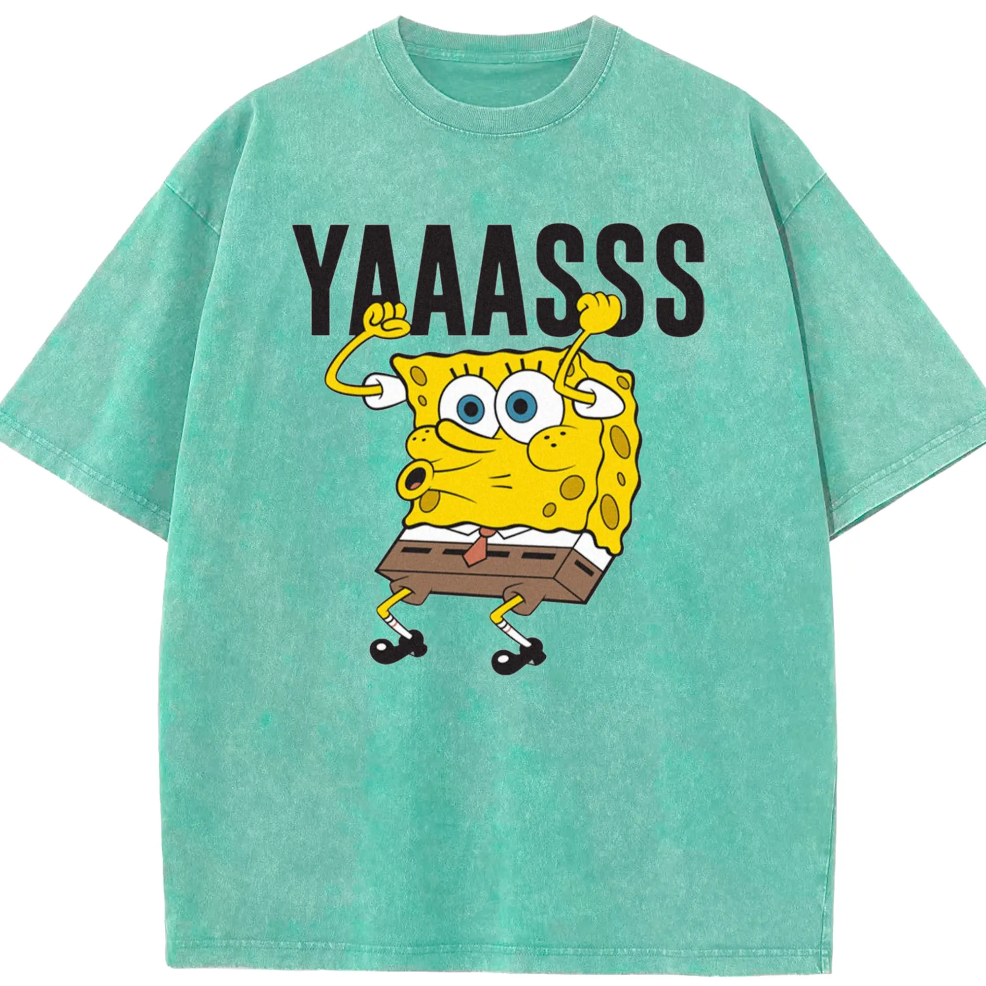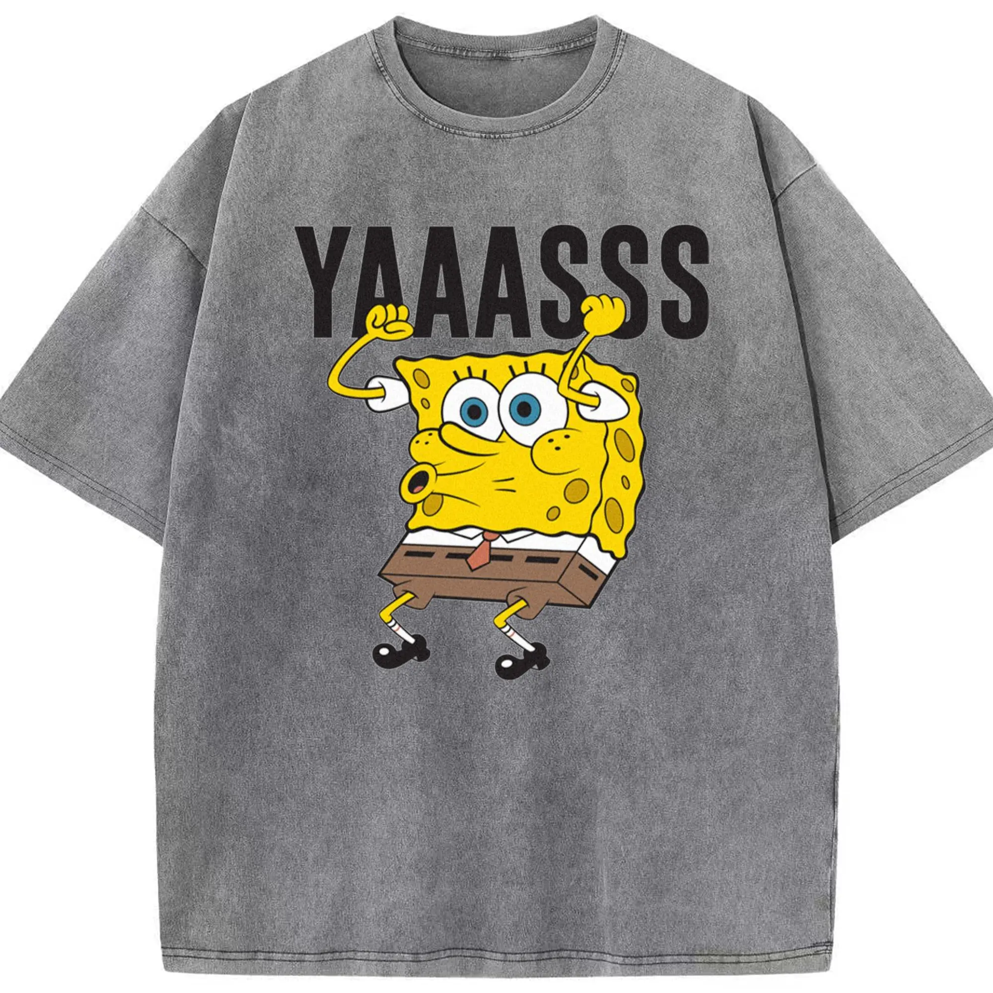 Spongebob squarepants cheer designs t shirt - Washed Vintage Look 230g Cotton Oversized T-Shirt With Front Heat Transfer Print – Soft, Lightweight, Stylish Fit – Comfortable Casual Wear For Sports & Everyday Use