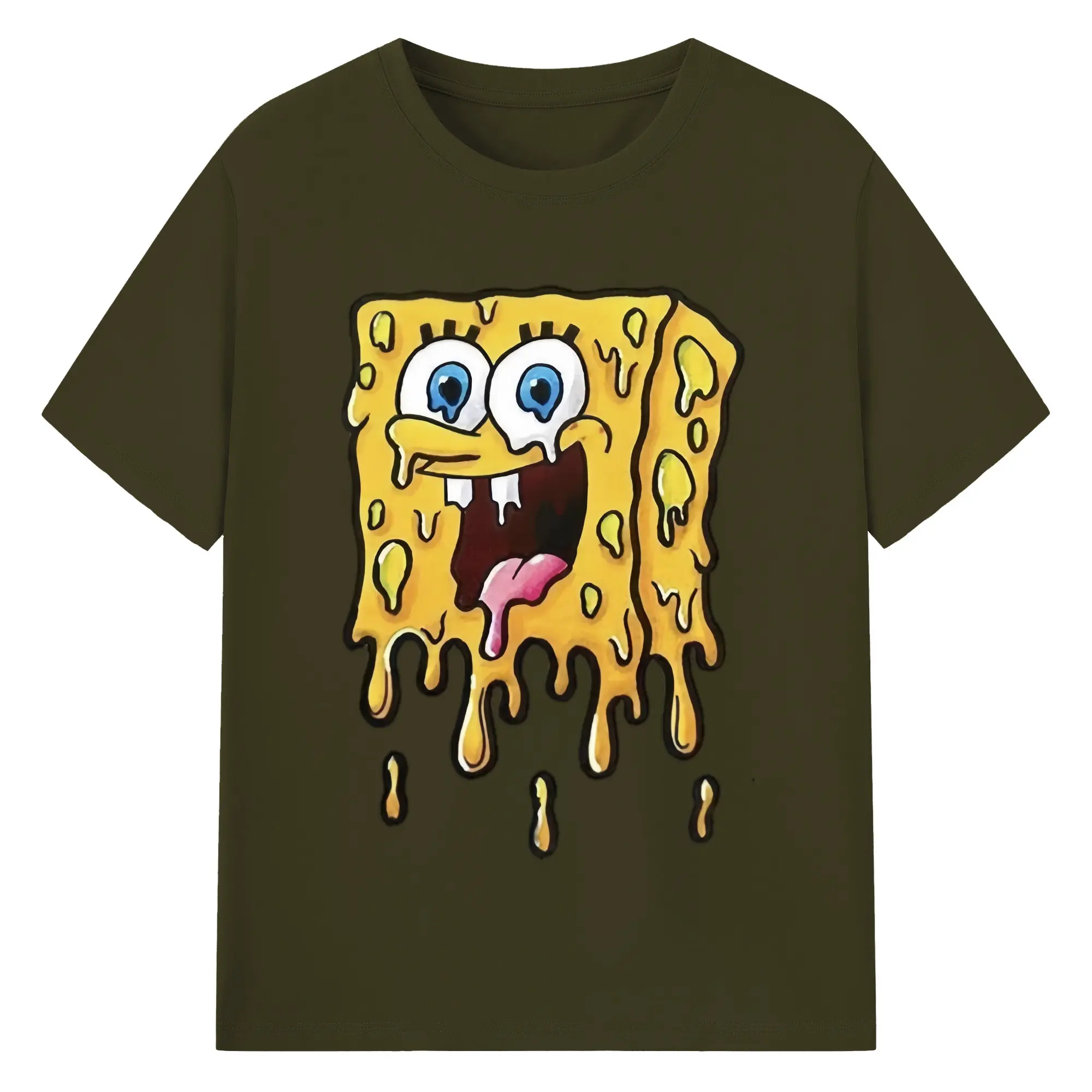 Spongebob squarepants dissolve the pattern t-shirt - 180g Cotton T-Shirt With Front Heat Transfer Print – Soft, Lightweight, Fitted Design – Comfortable Casual Wear For Sports & Everyday Use
