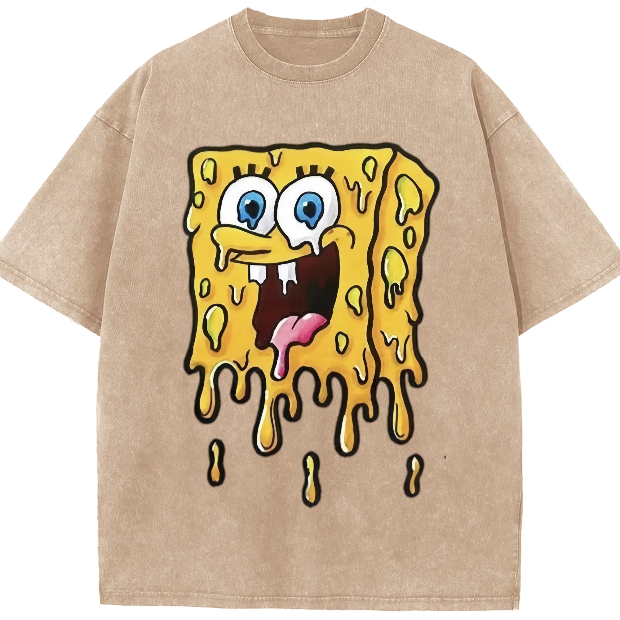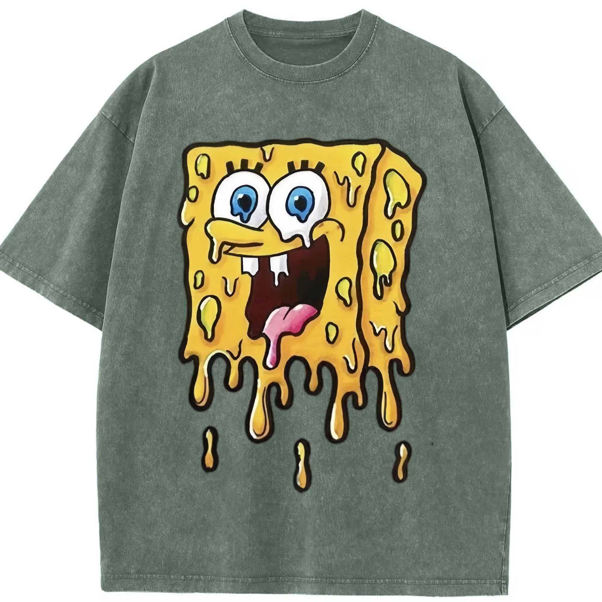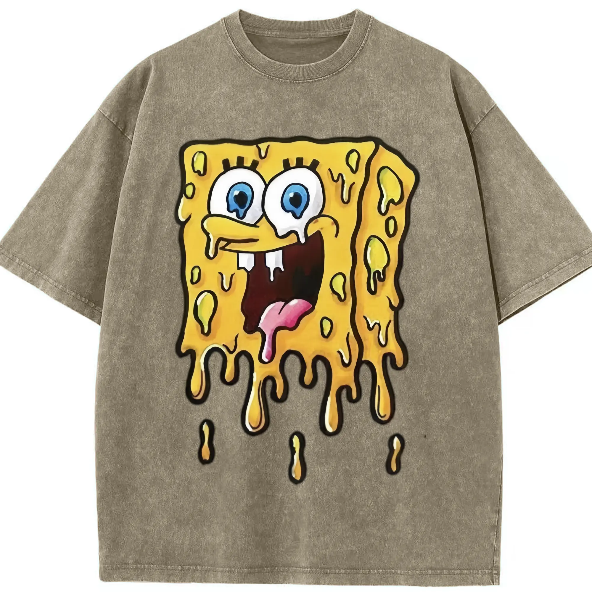 Spongebob squarepants dissolve the pattern t-shirt - Washed Vintage Look 230g Cotton Oversized T-Shirt With Front Heat Transfer Print – Soft, Lightweight, Stylish Fit – Comfortable Casual Wear For Sports & Everyday Use