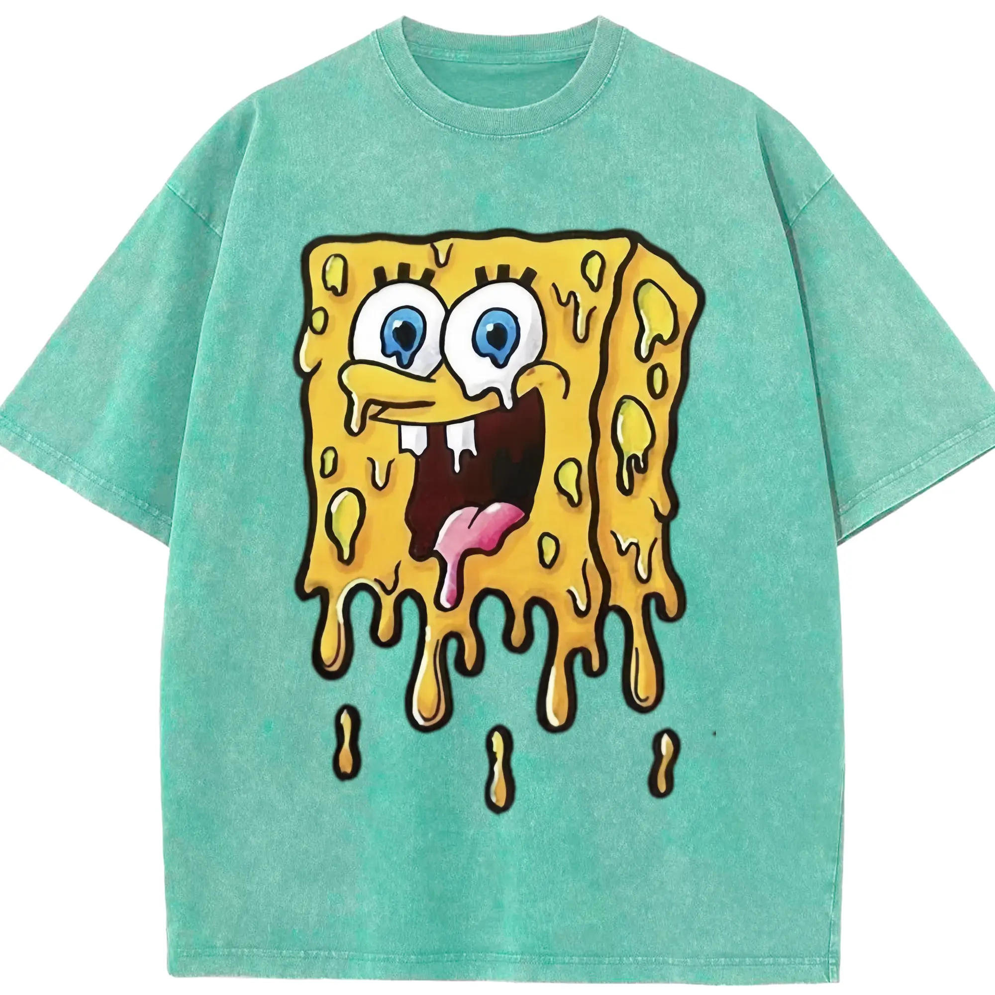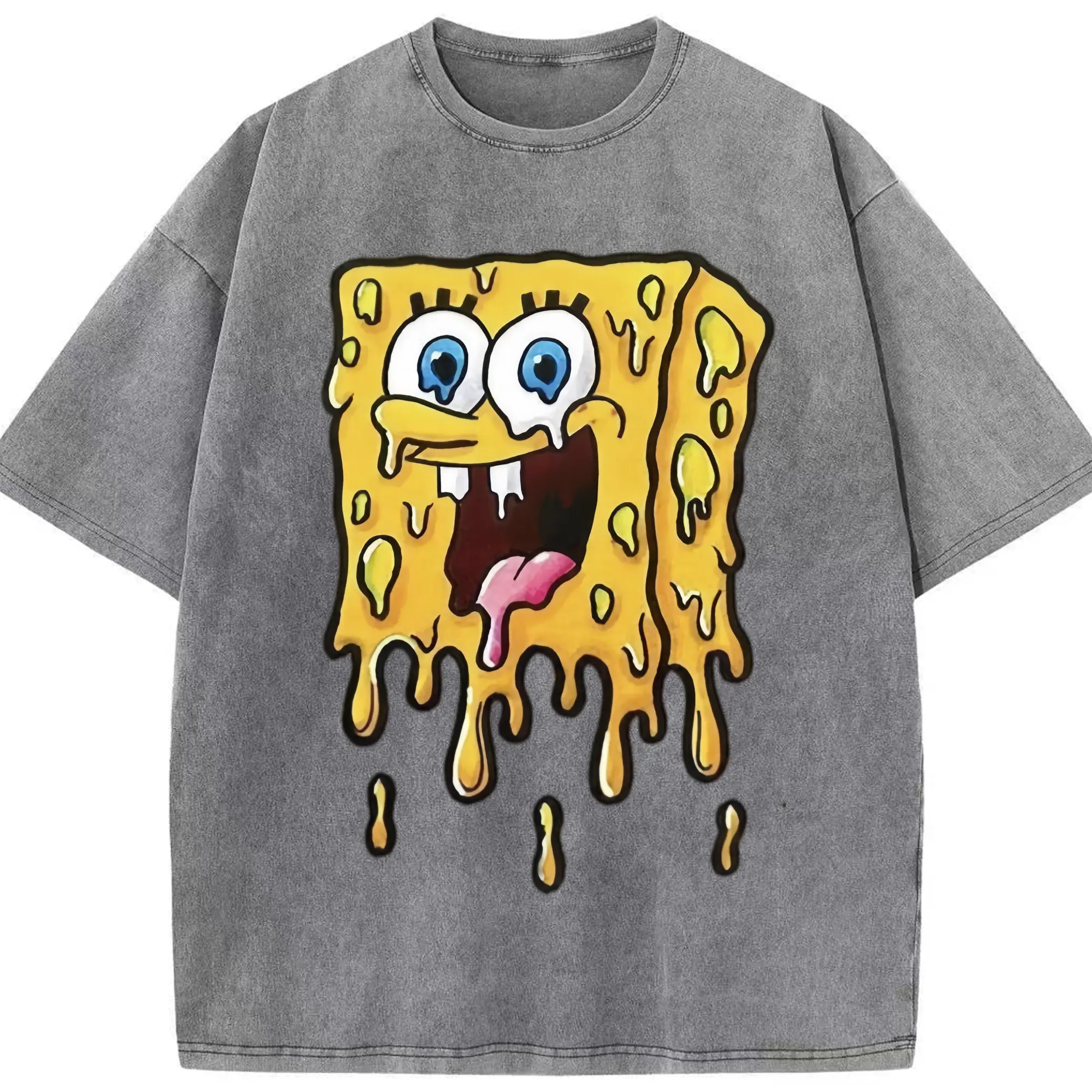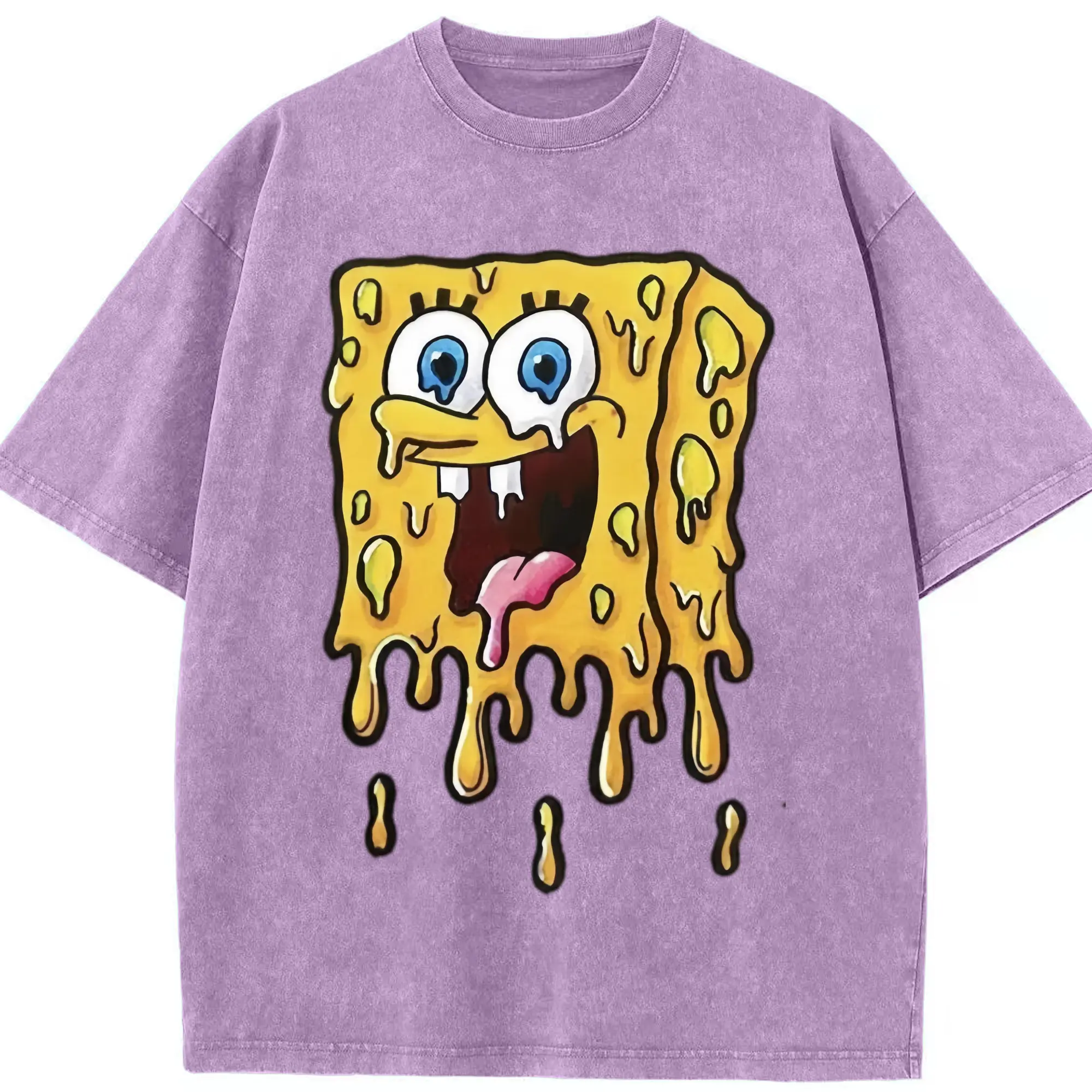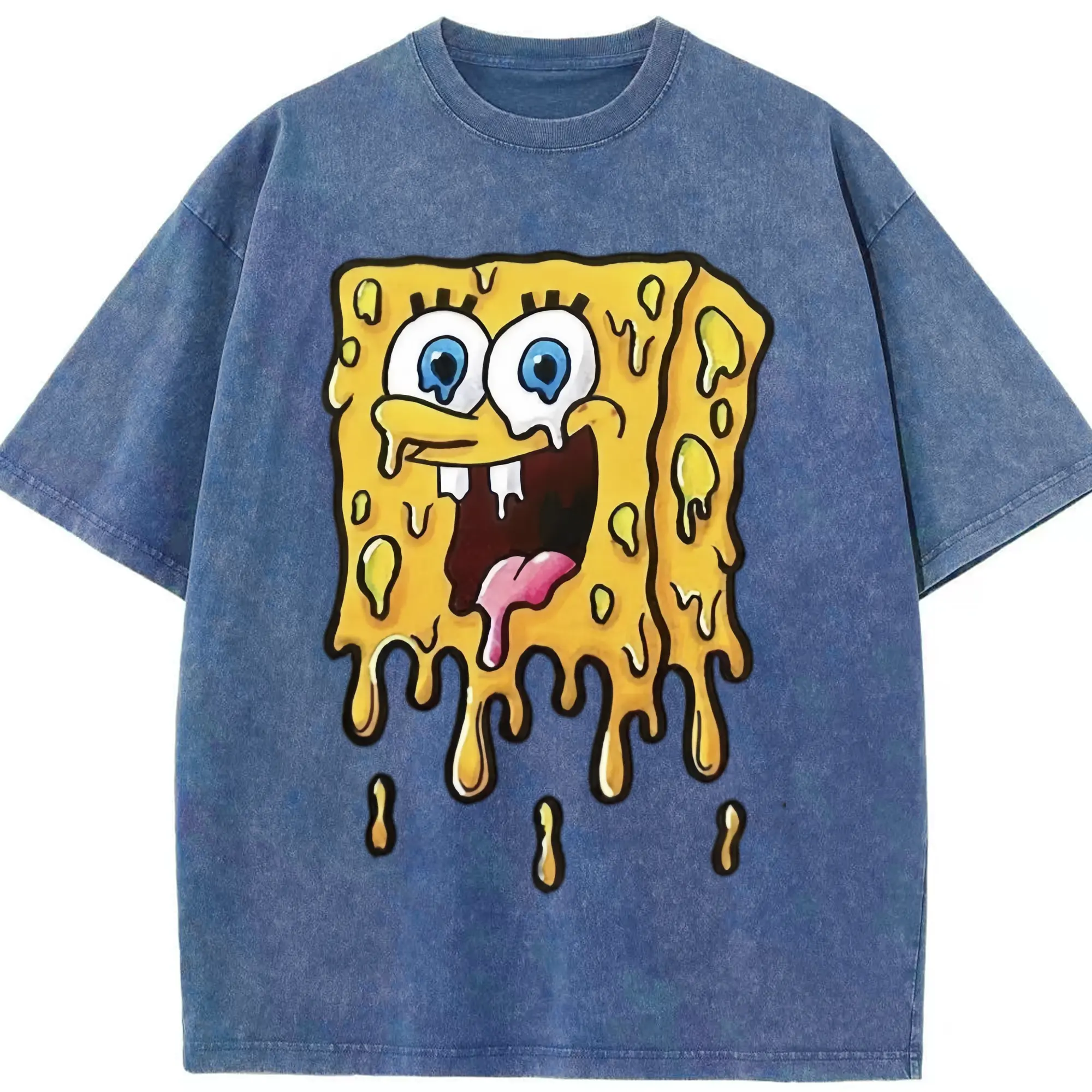 Spongebob squarepants dissolve the pattern t-shirt - Washed Vintage Look 230g Cotton Oversized T-Shirt With Front Heat Transfer Print – Soft, Lightweight, Stylish Fit – Comfortable Casual Wear For Sports & Everyday Use