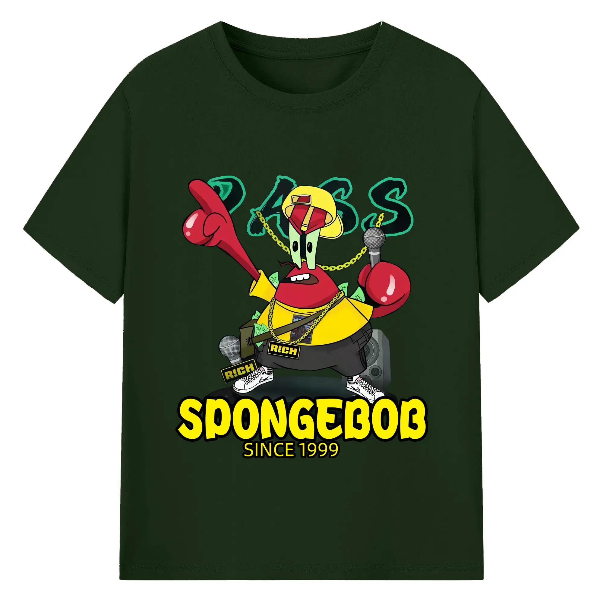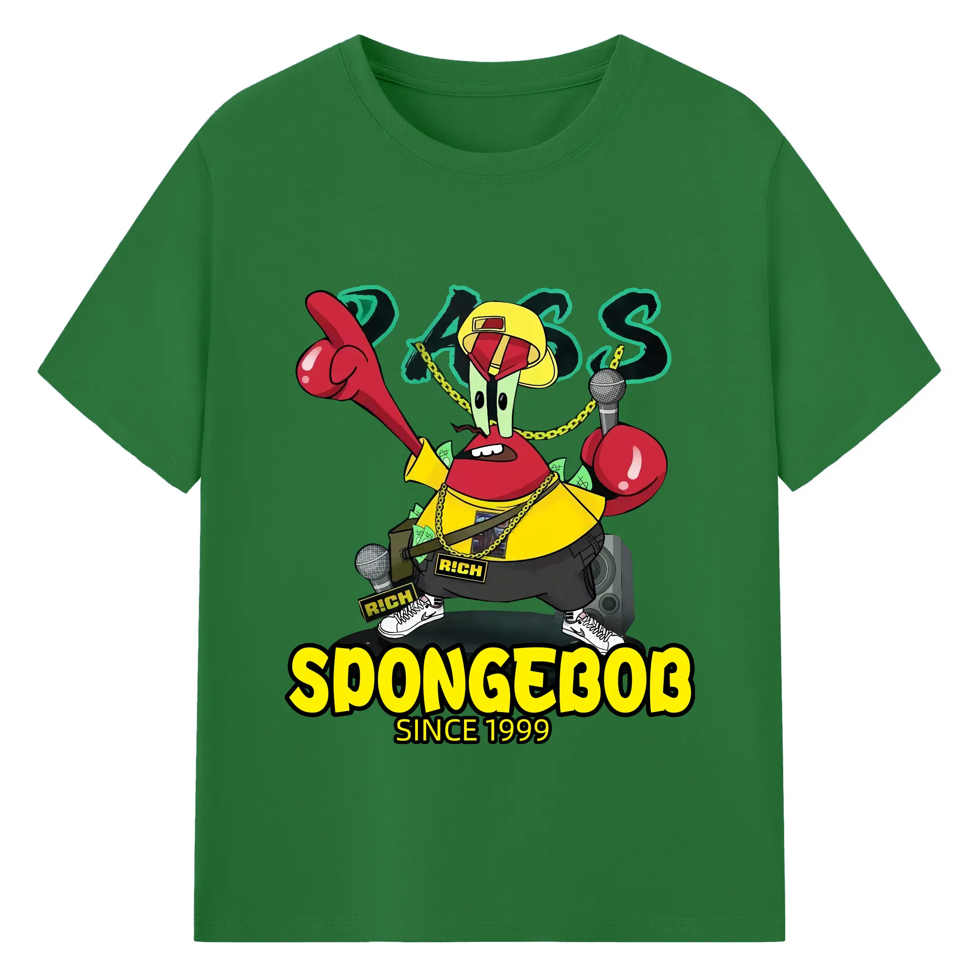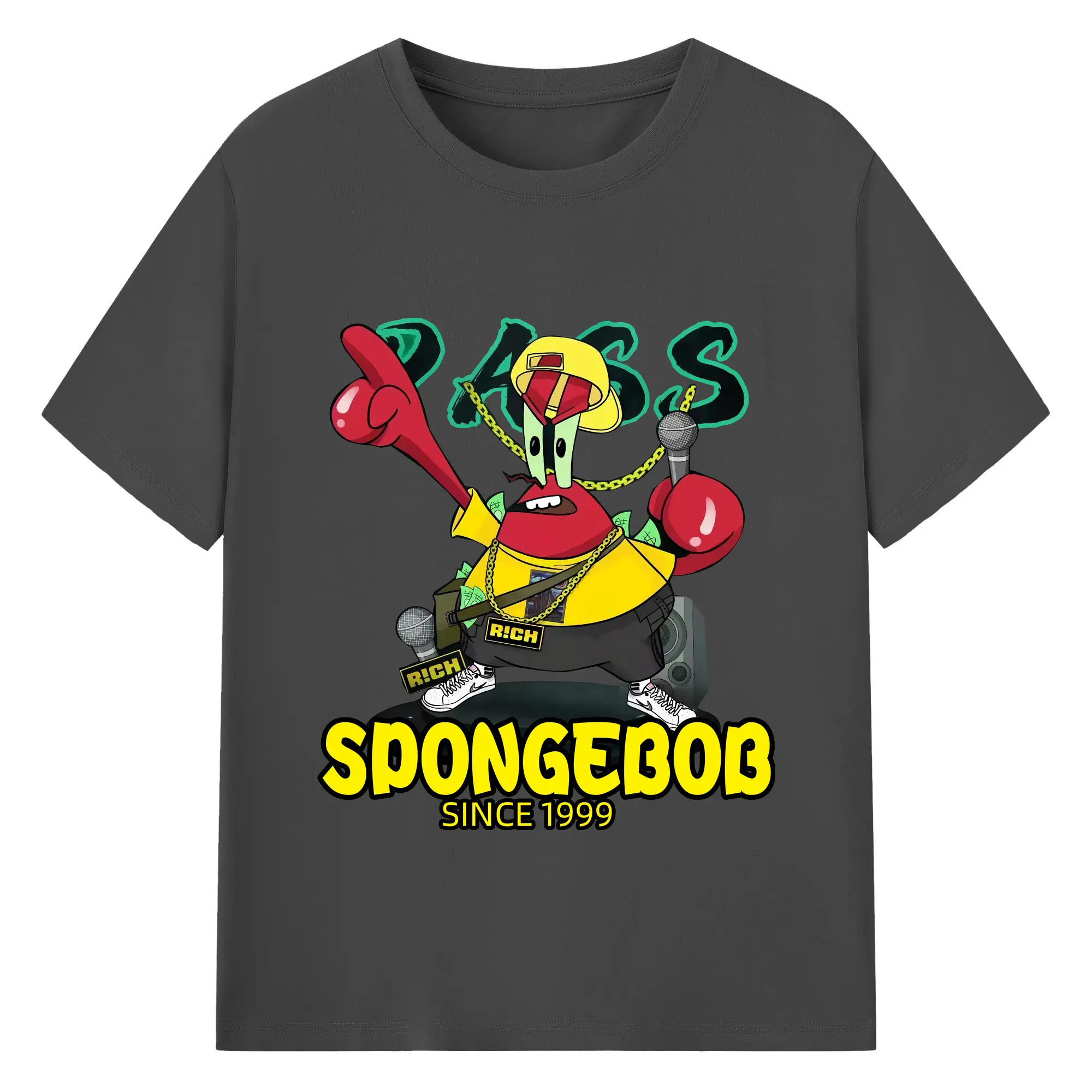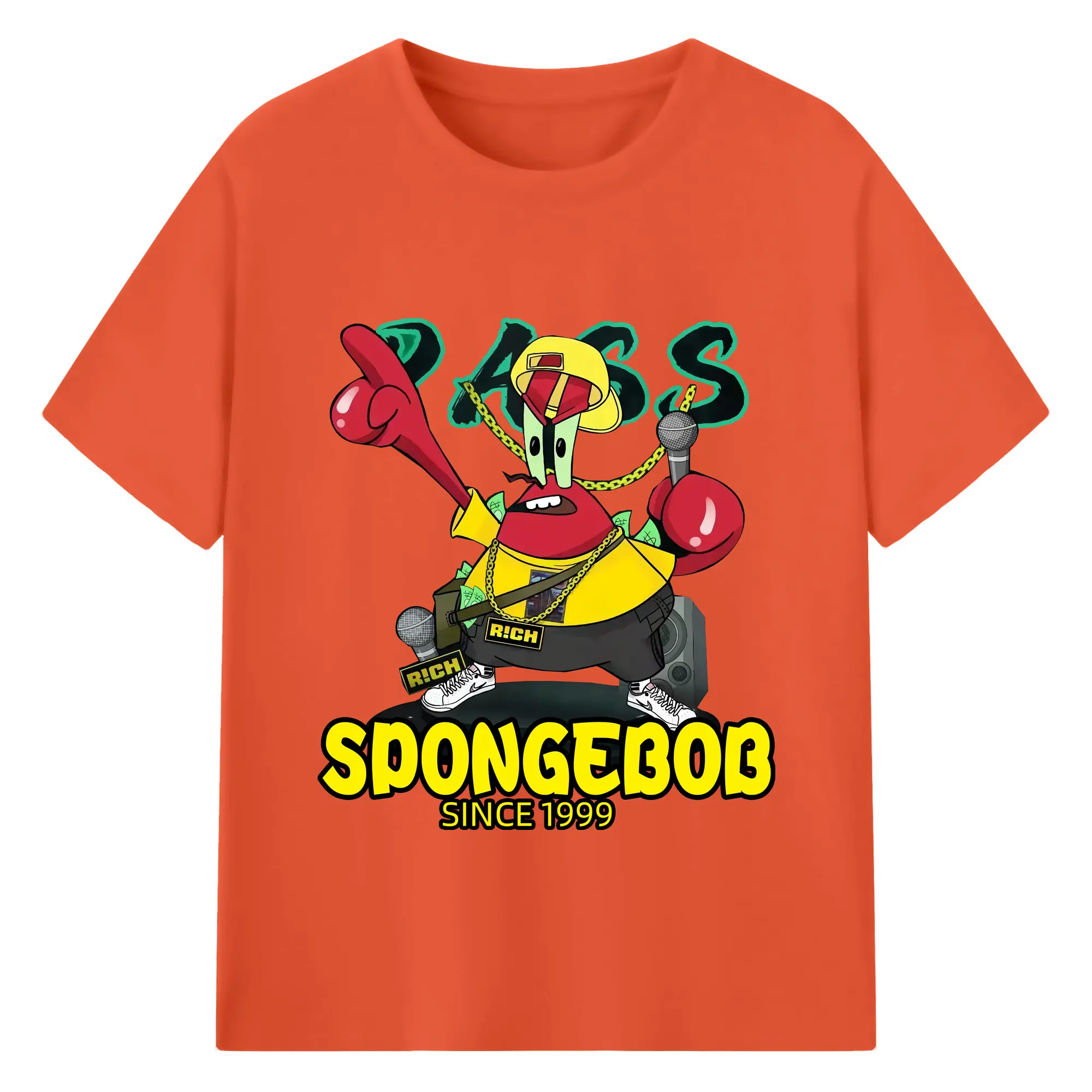 SpongeBob SquarePants Eugene Krabs hip hop style t-shirt - 180g Cotton T-Shirt With Front Heat Transfer Print – Soft, Lightweight, Fitted Design – Comfortable Casual Wear For Sports & Everyday Use