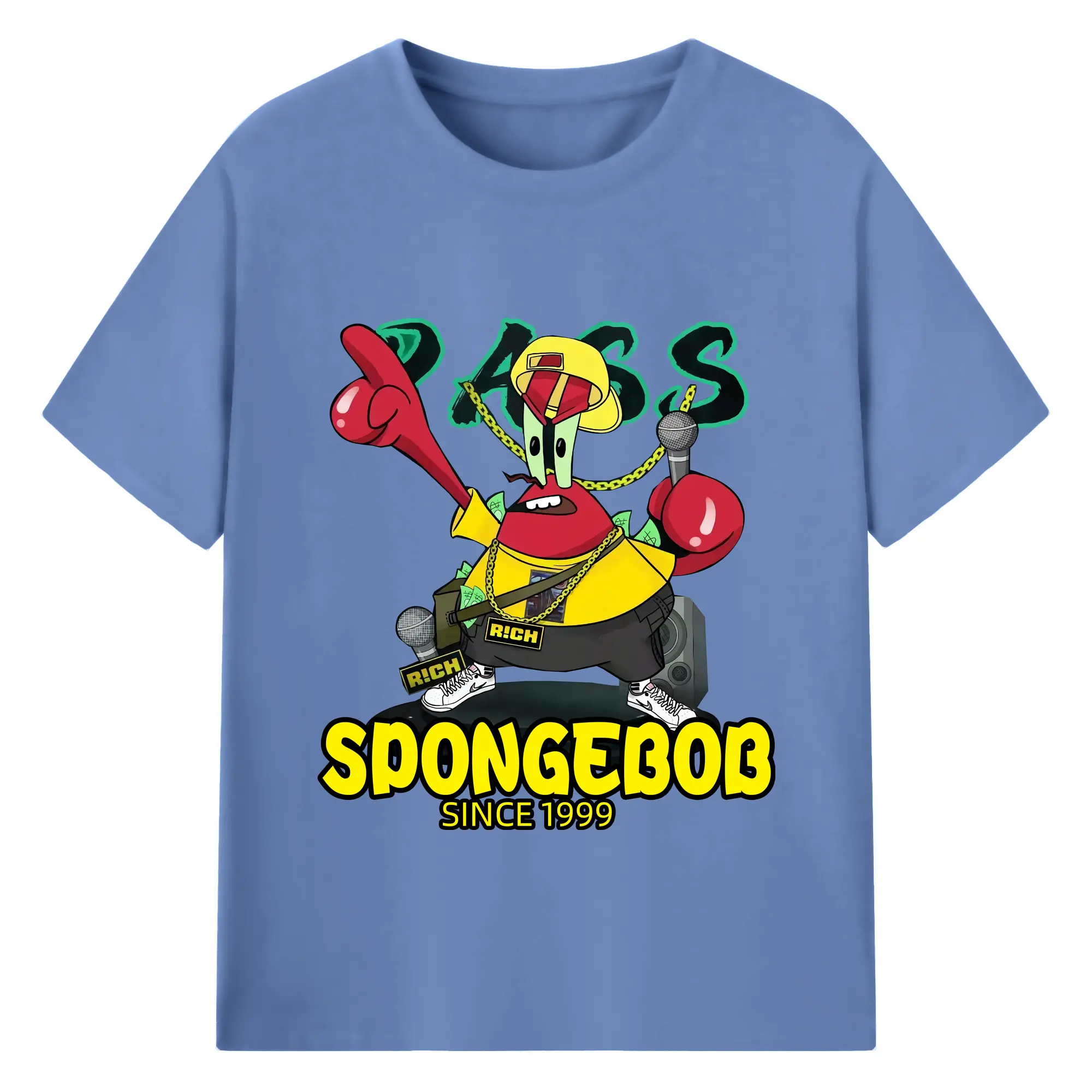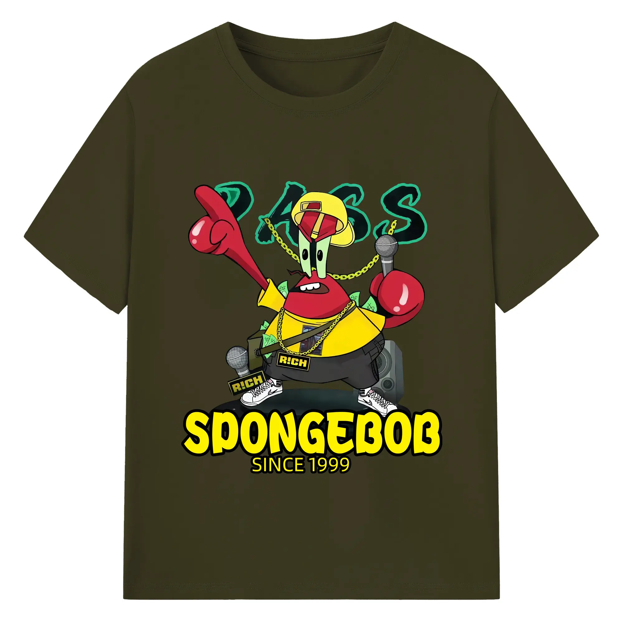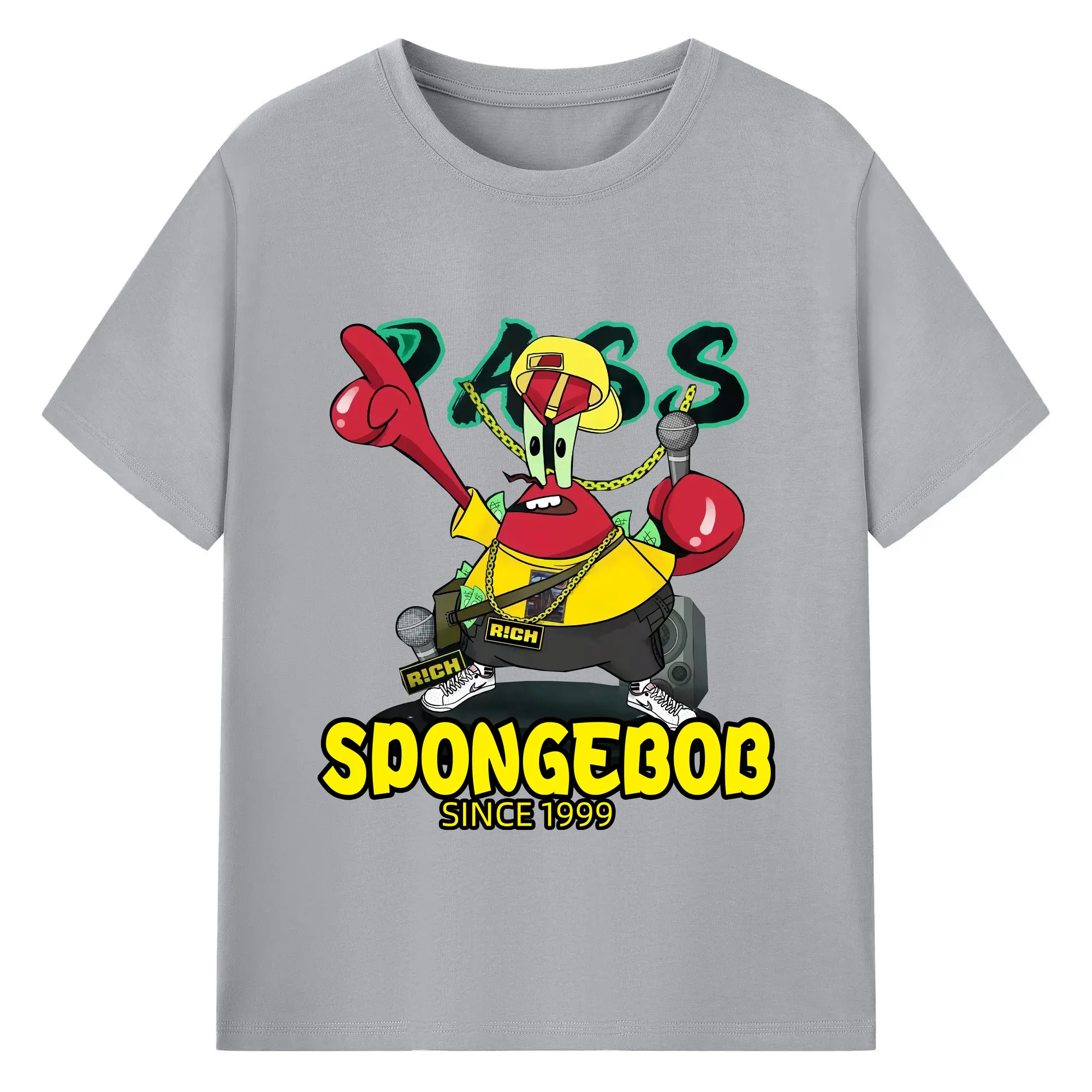 SpongeBob SquarePants Eugene Krabs hip hop style t-shirt - 180g Cotton T-Shirt With Front Heat Transfer Print – Soft, Lightweight, Fitted Design – Comfortable Casual Wear For Sports & Everyday Use