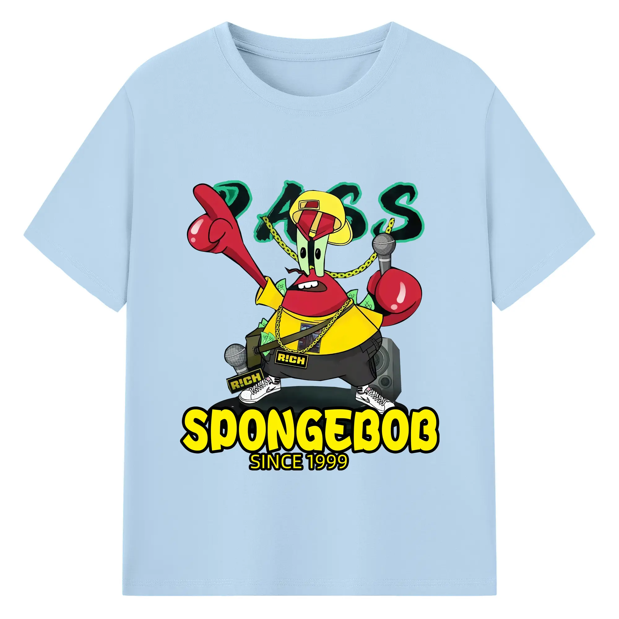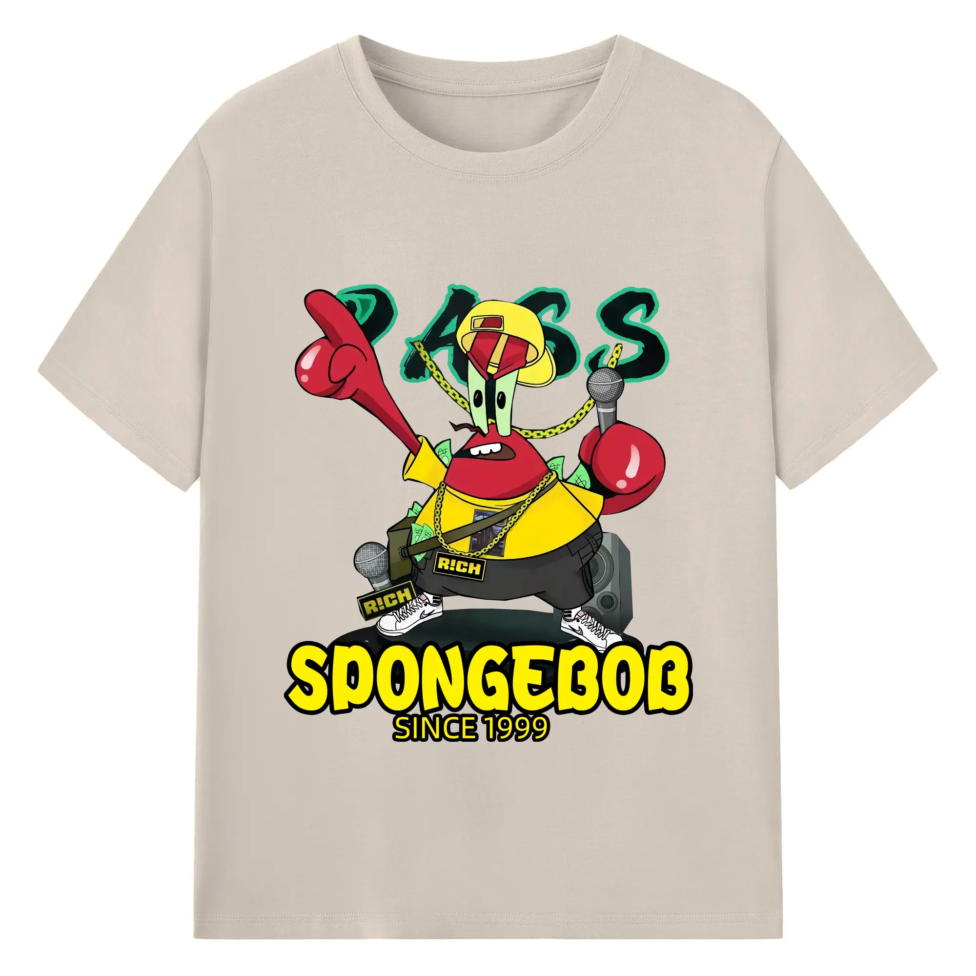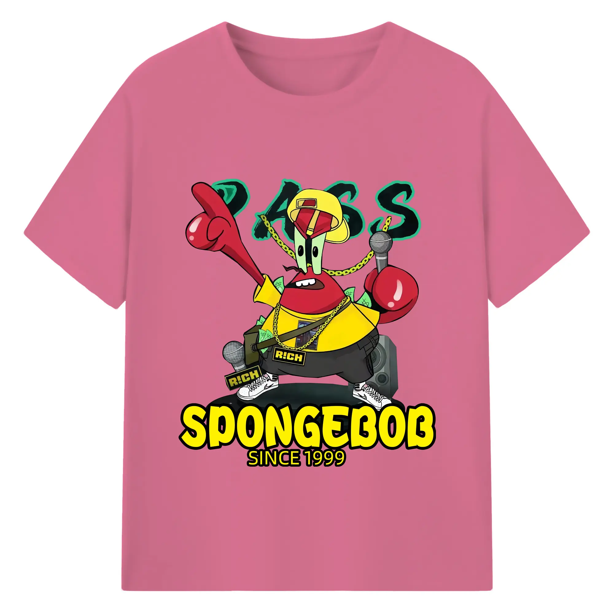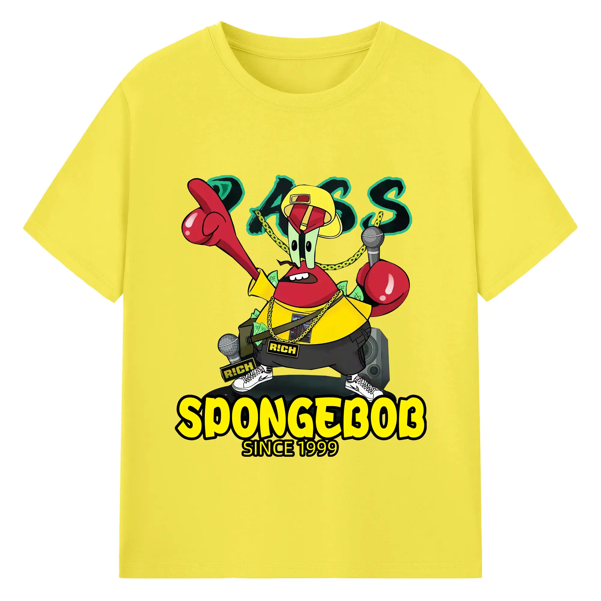 SpongeBob SquarePants Eugene Krabs hip hop style t-shirt - 180g Cotton T-Shirt With Front Heat Transfer Print – Soft, Lightweight, Fitted Design – Comfortable Casual Wear For Sports & Everyday Use