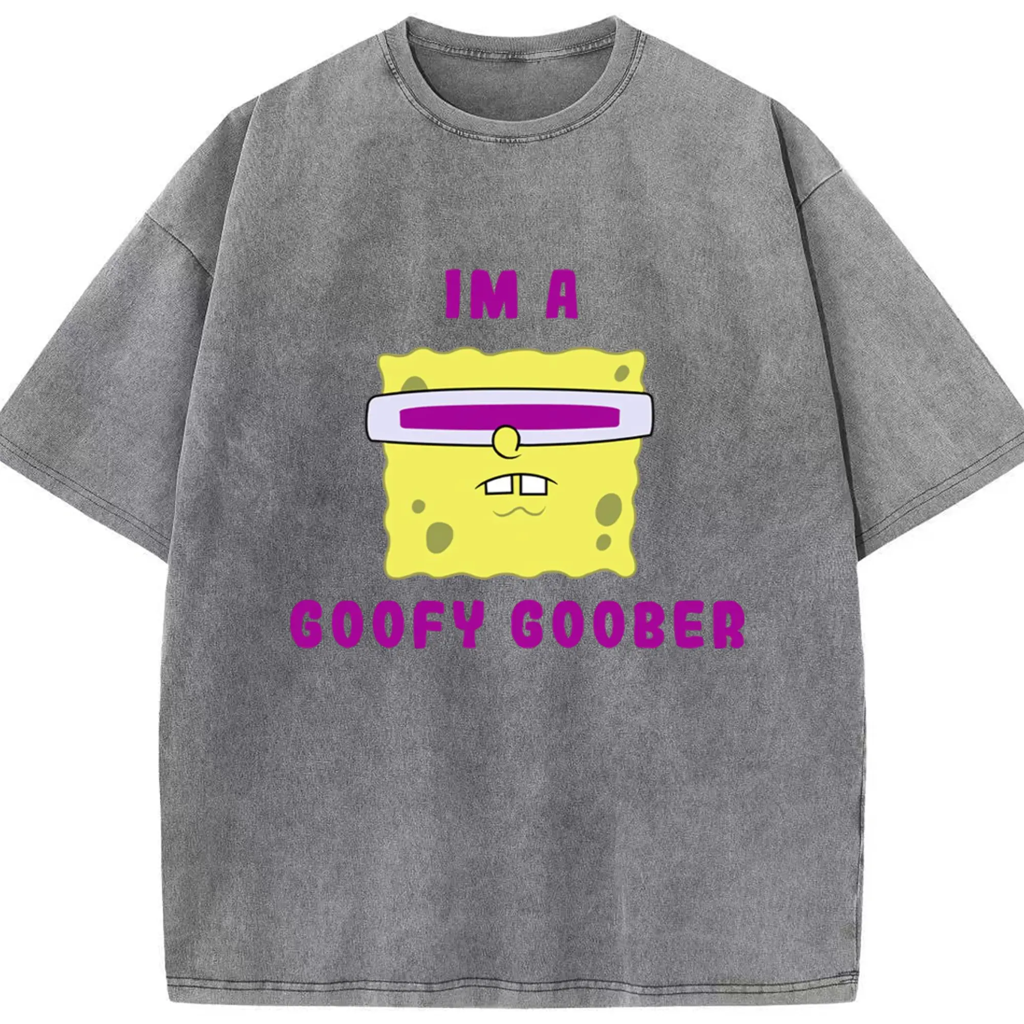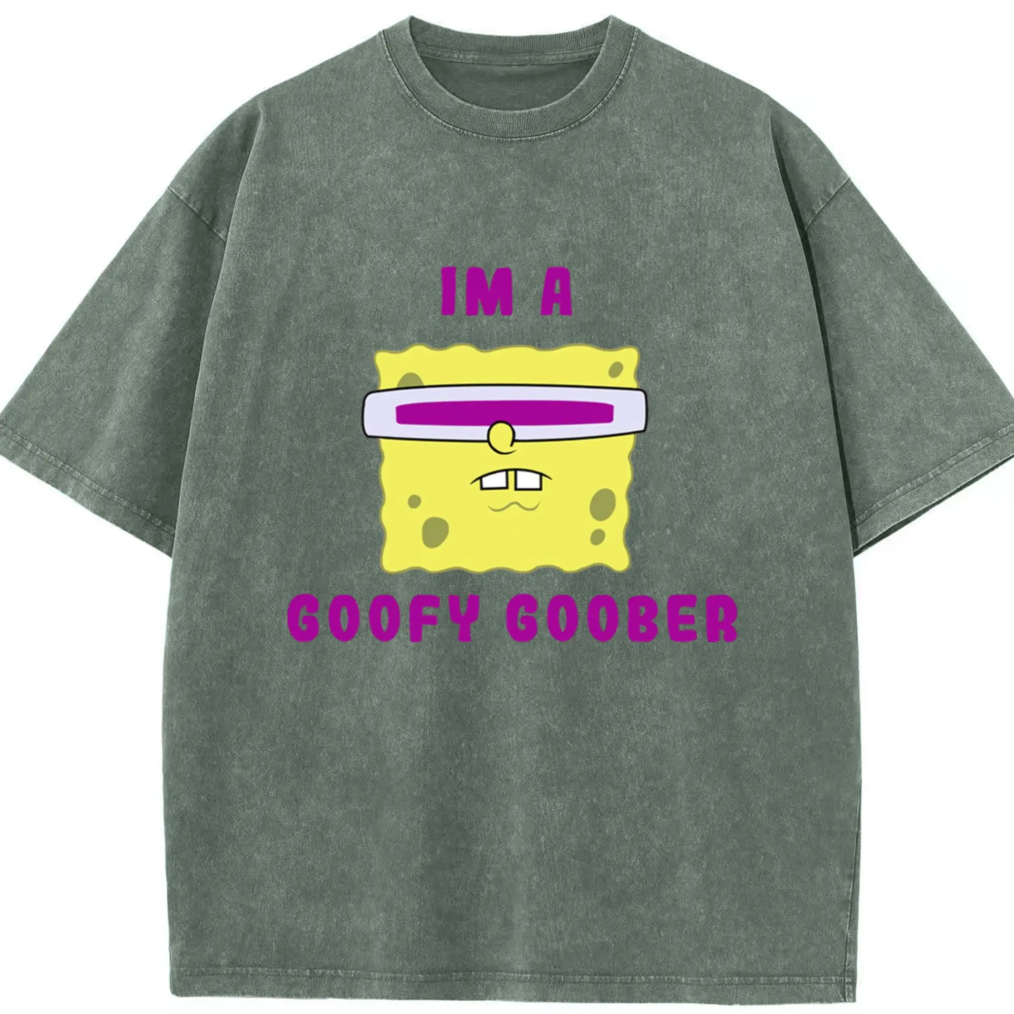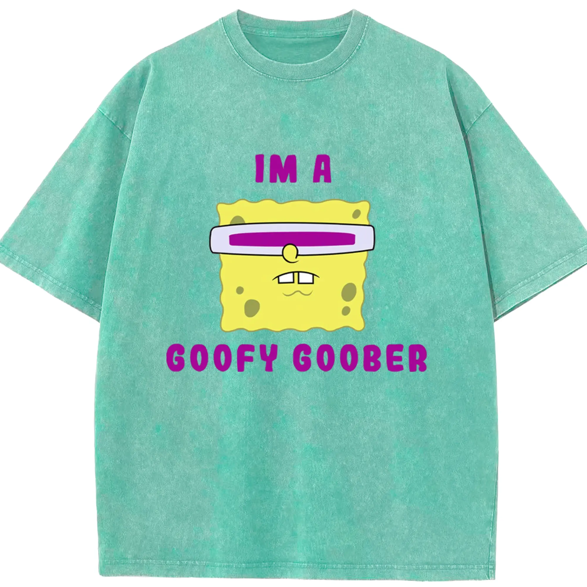 Spongebob squarepants face coofy goober t shirt - Washed Vintage Look 230g Cotton Oversized T-Shirt With Front Heat Transfer Print – Soft, Lightweight, Stylish Fit – Comfortable Casual Wear For Sports & Everyday Use