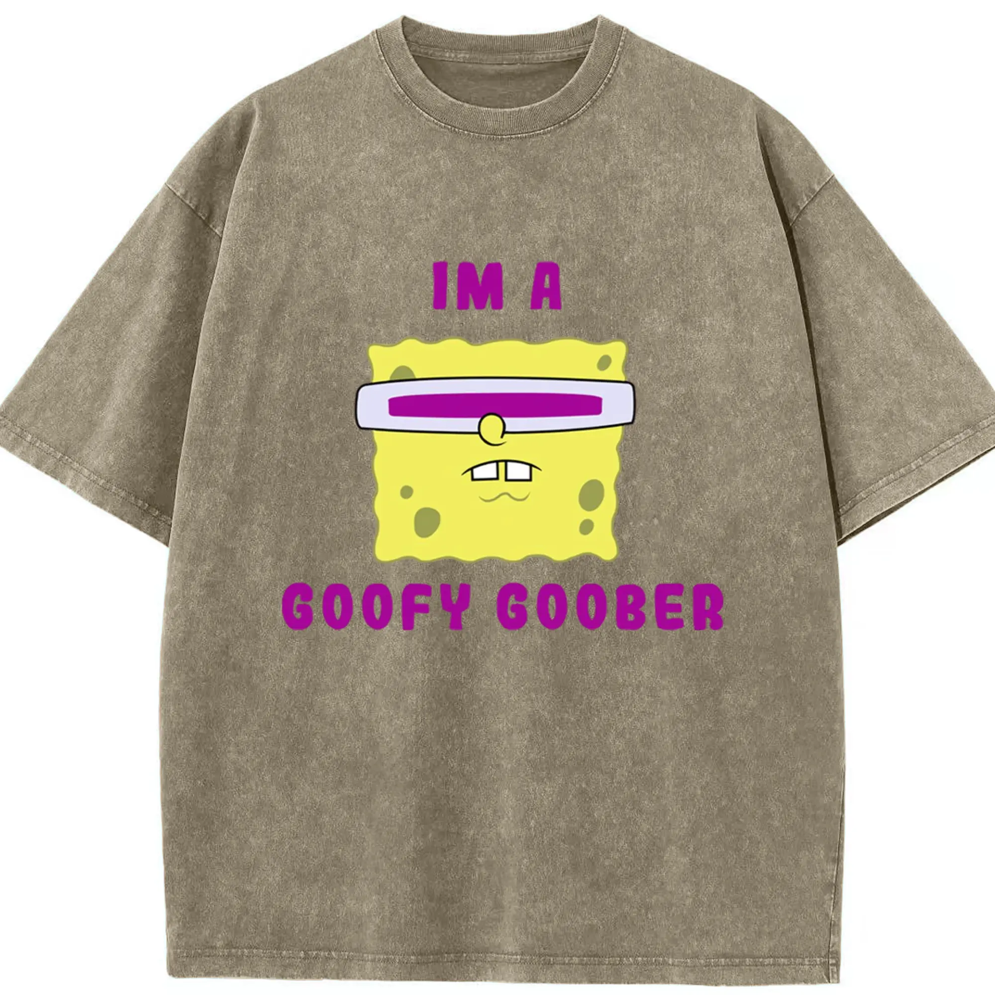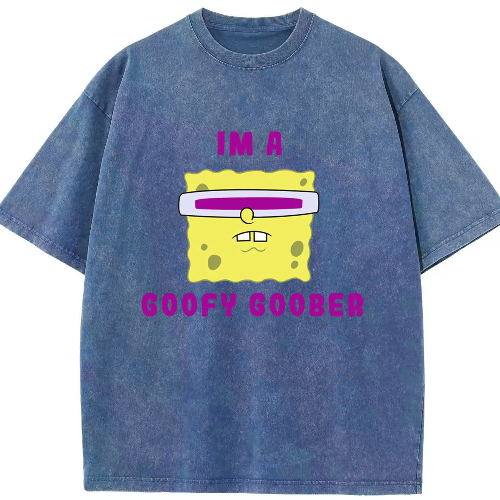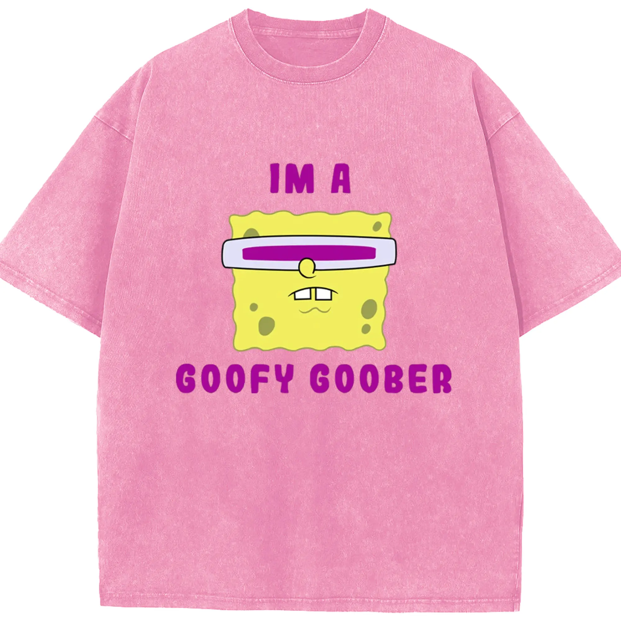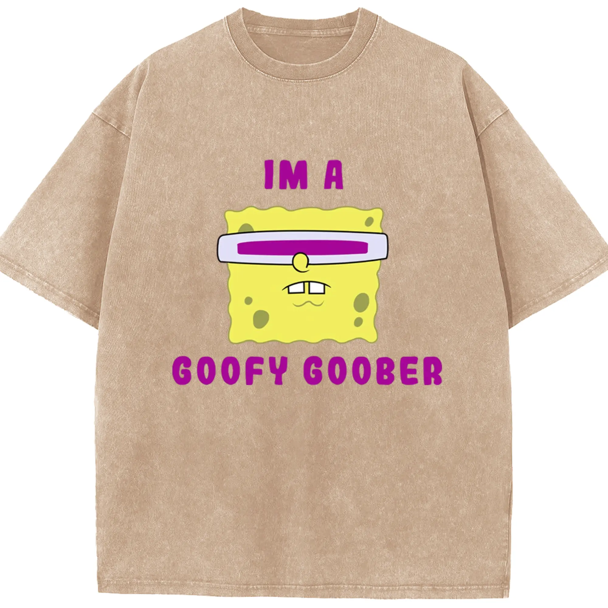 Spongebob squarepants face coofy goober t shirt - Washed Vintage Look 230g Cotton Oversized T-Shirt With Front Heat Transfer Print – Soft, Lightweight, Stylish Fit – Comfortable Casual Wear For Sports & Everyday Use