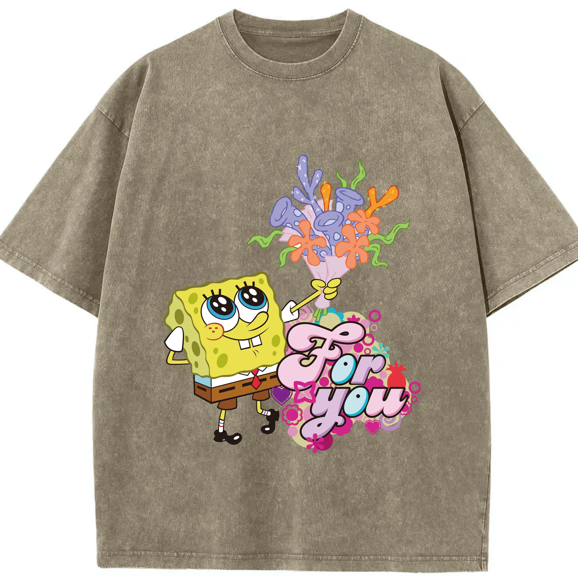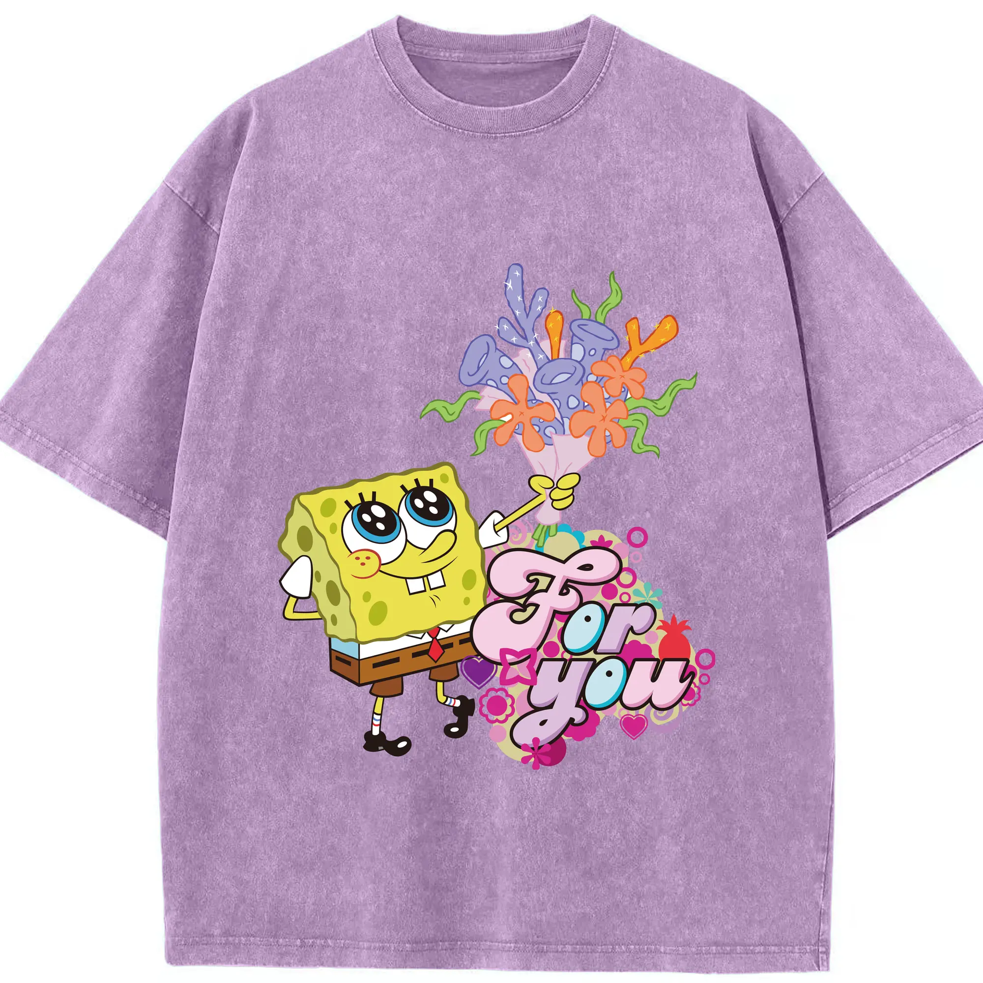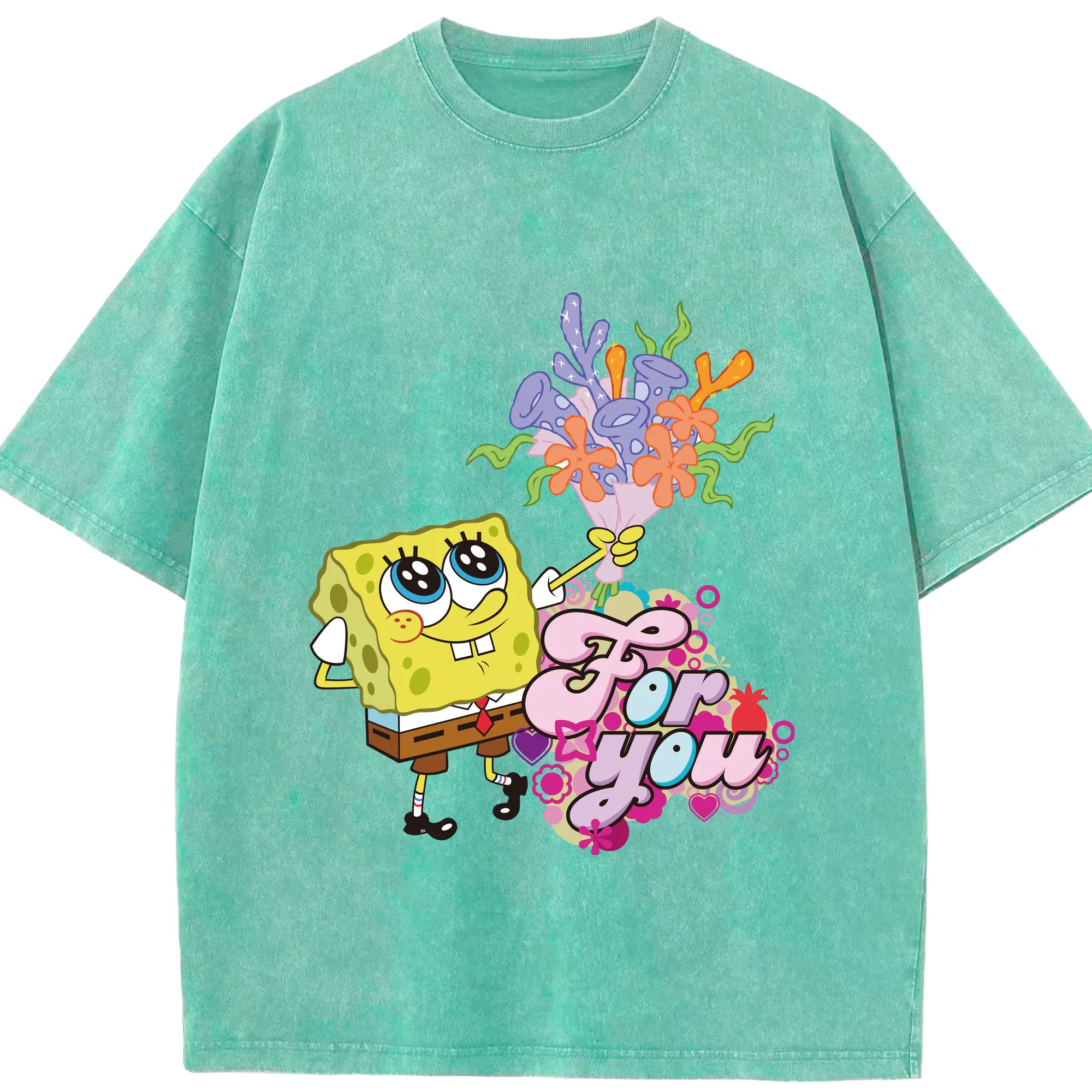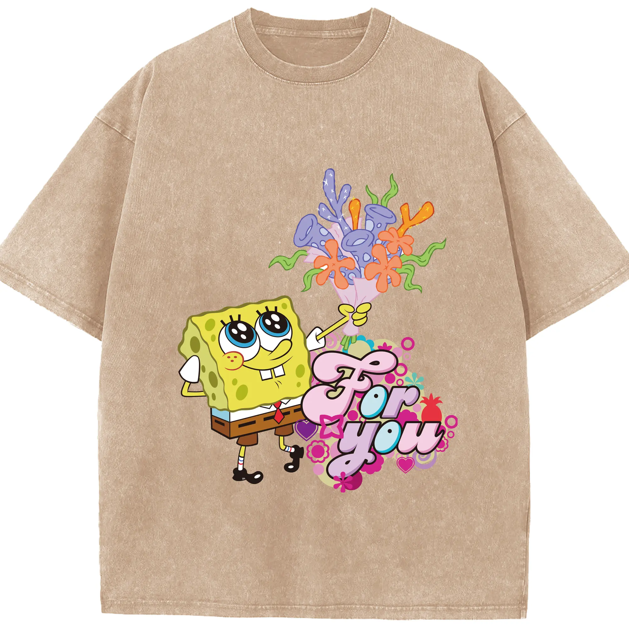 Spongebob squarepants for you t shirt - Washed Vintage Look 230g Cotton Oversized T-Shirt With Front Heat Transfer Print – Soft, Lightweight, Stylish Fit – Comfortable Casual Wear For Sports & Everyday Use