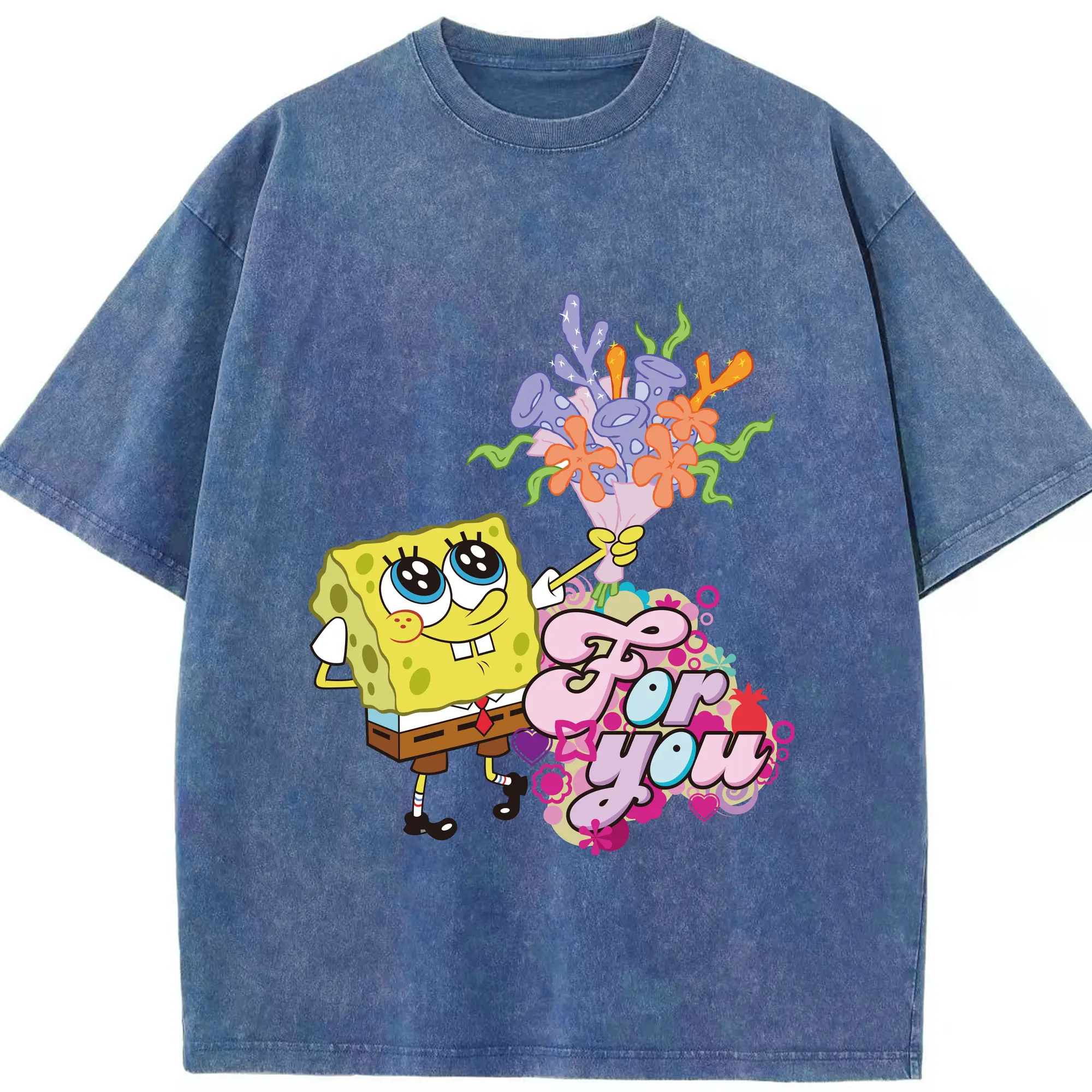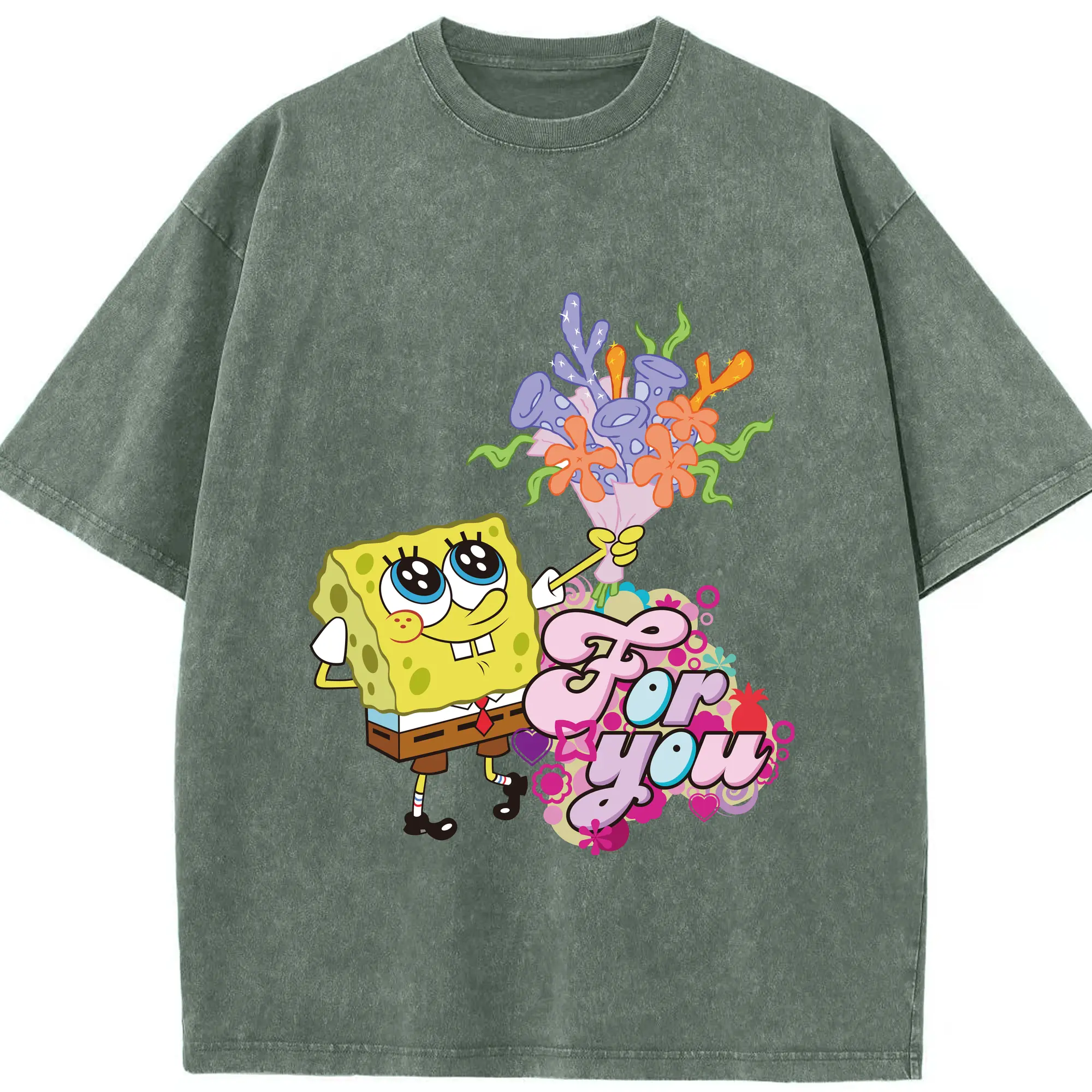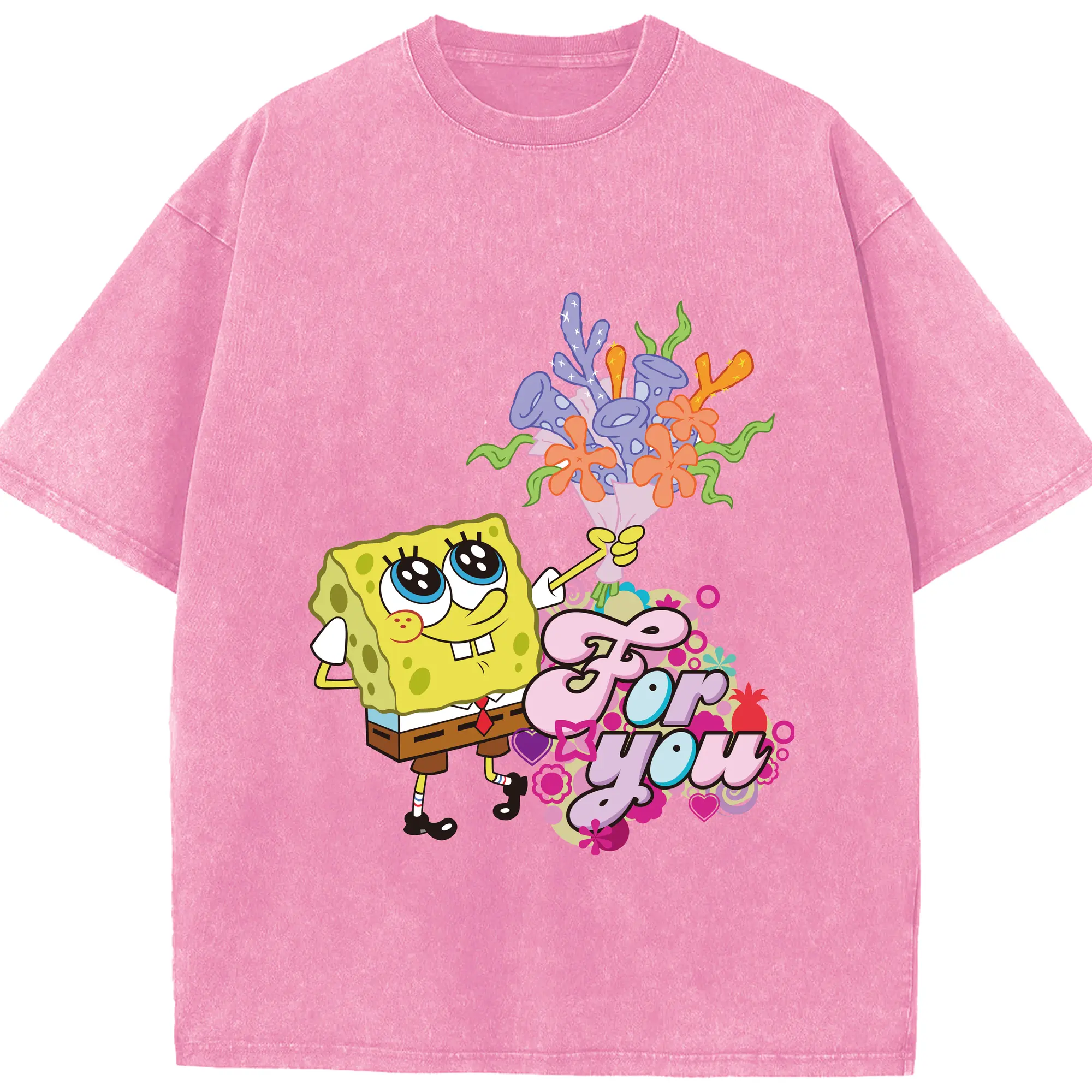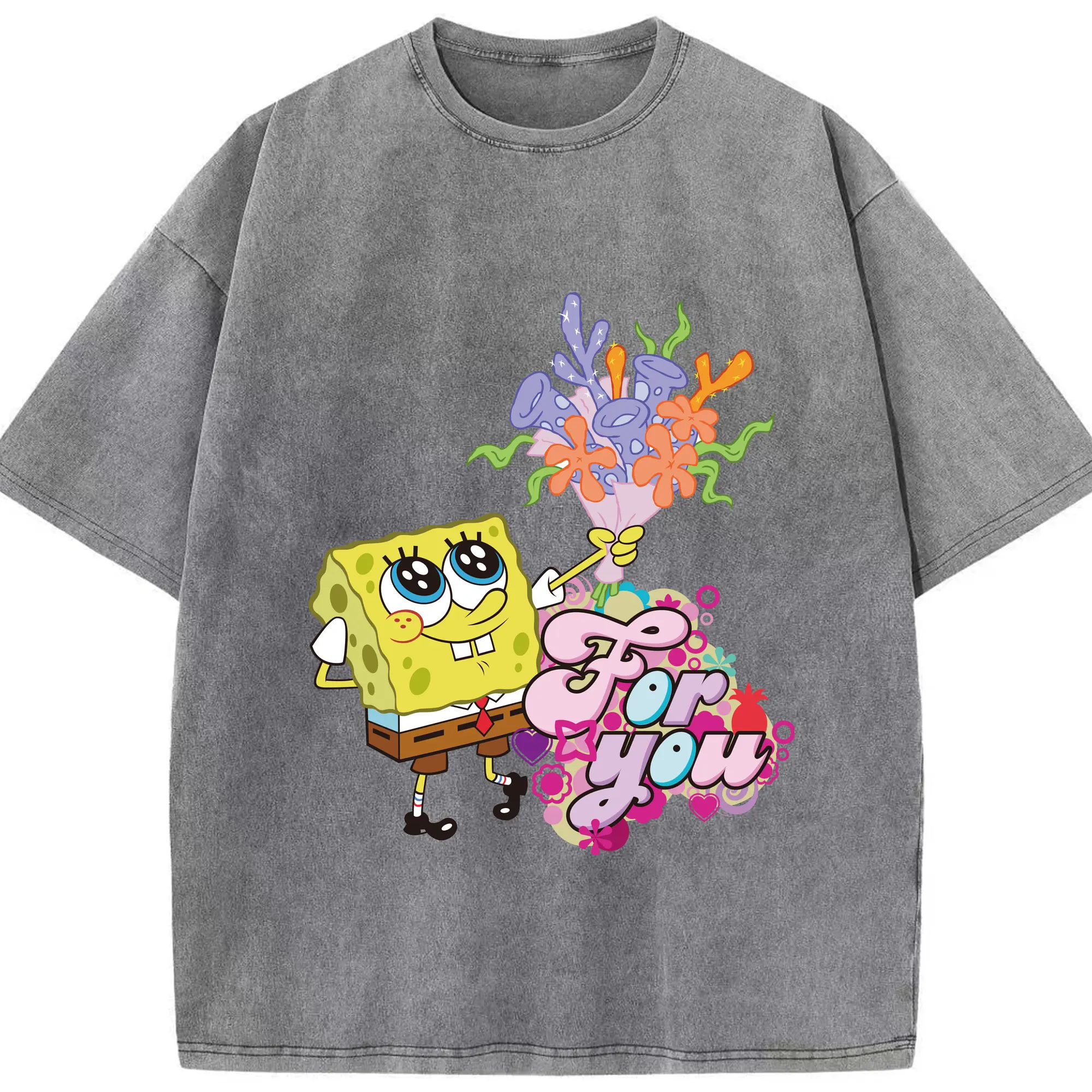 Spongebob squarepants for you t shirt - Washed Vintage Look 230g Cotton Oversized T-Shirt With Front Heat Transfer Print – Soft, Lightweight, Stylish Fit – Comfortable Casual Wear For Sports & Everyday Use